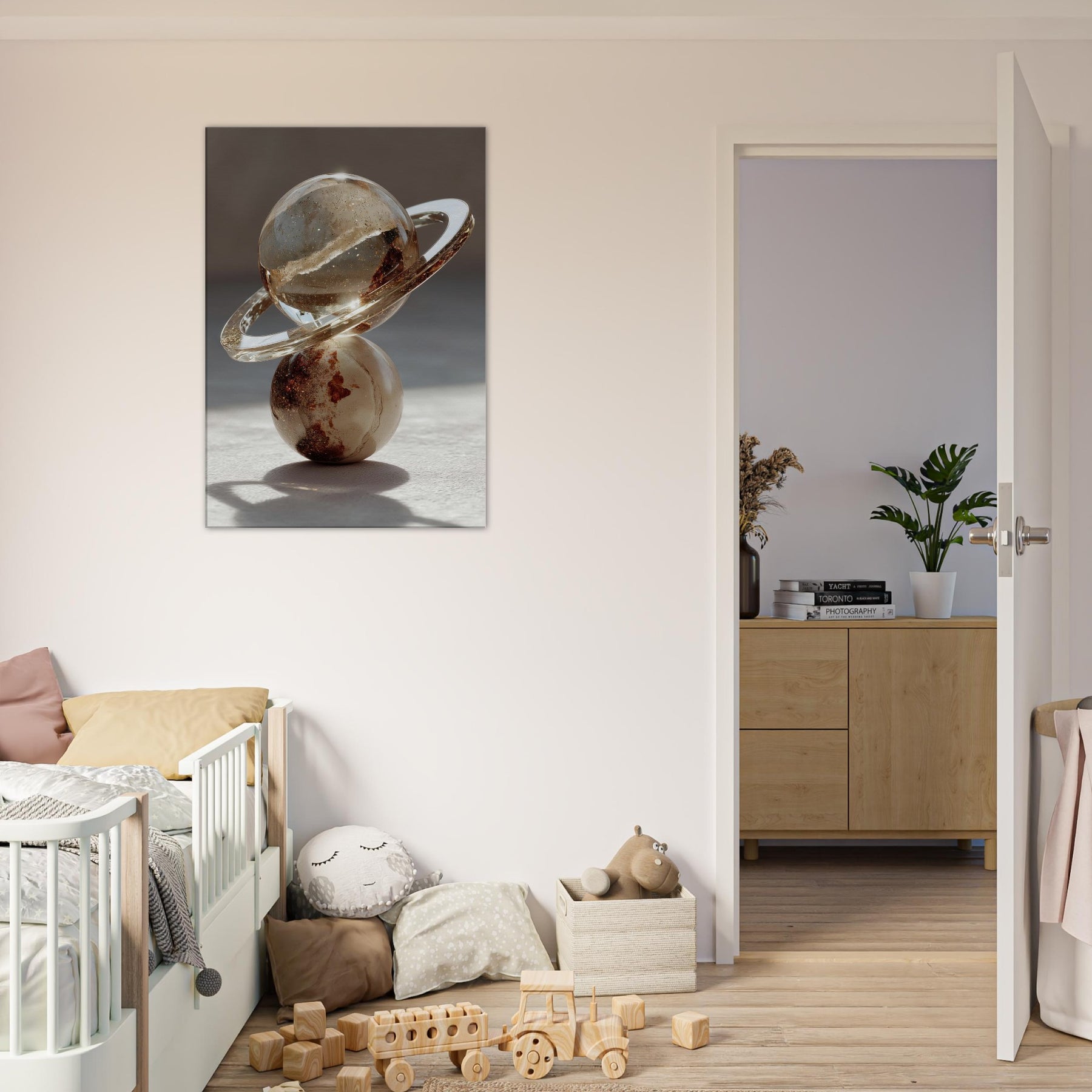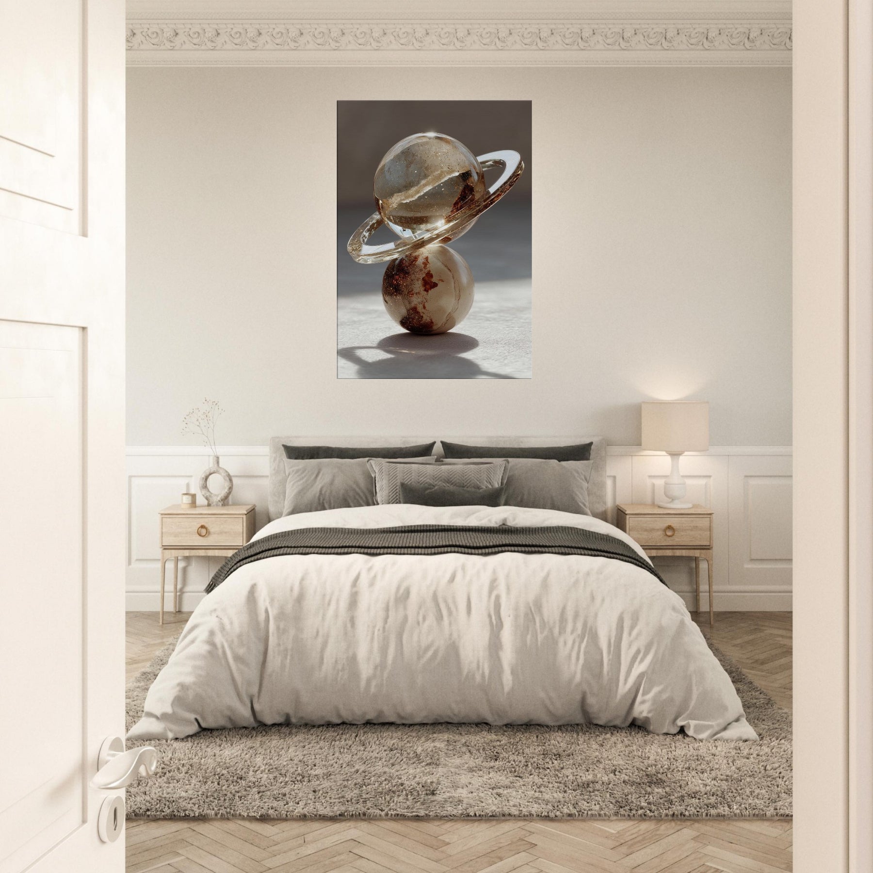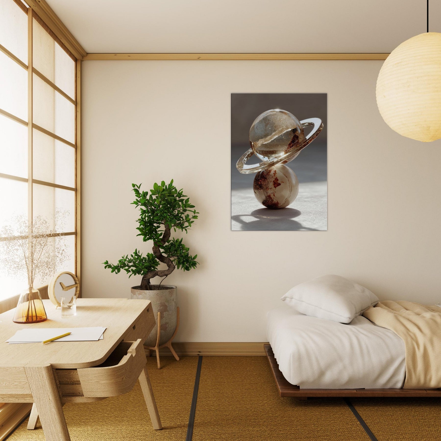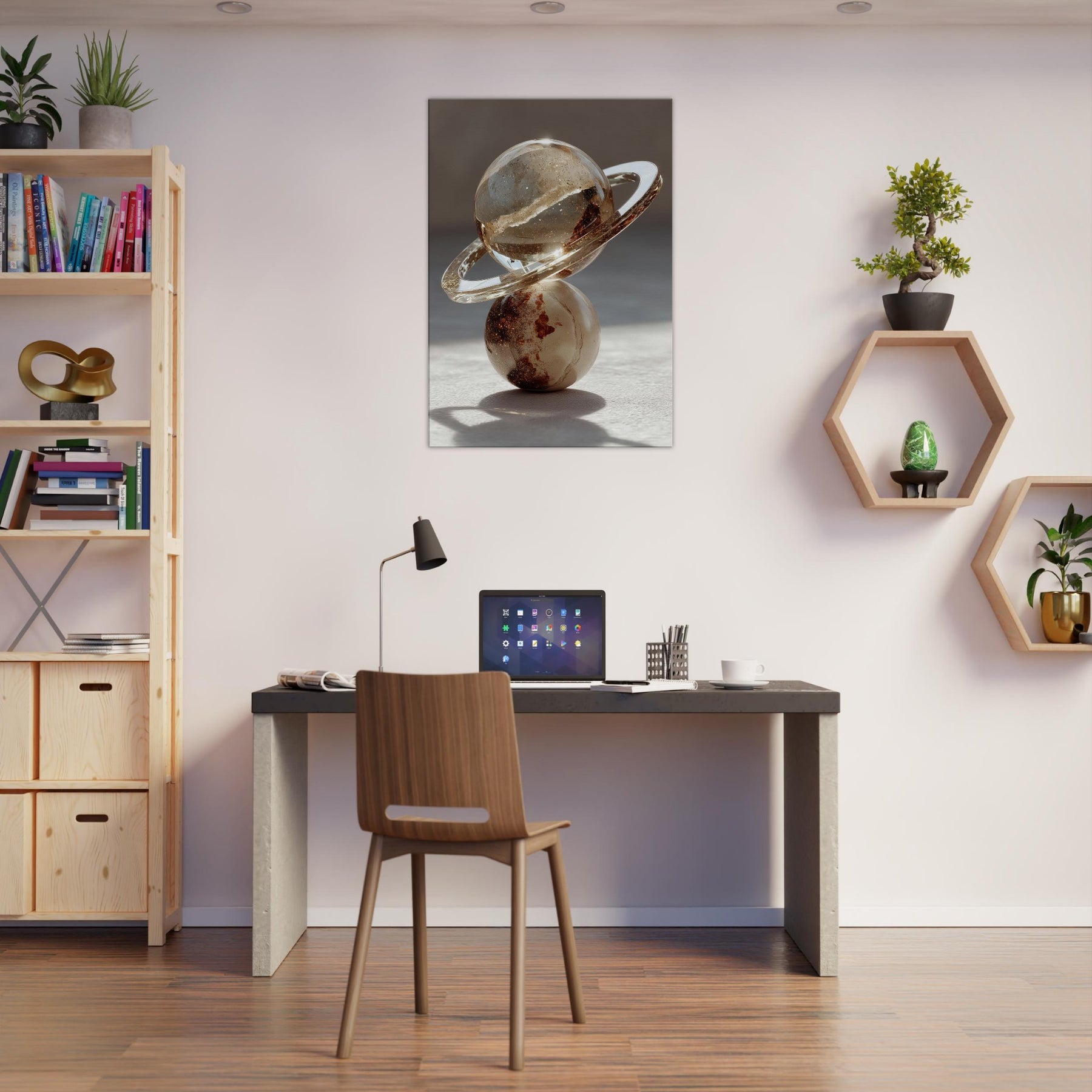 An illusion made tangible, this piece centers the Sun as a luminous, living companion in a dreamlike orbit. A crystal clear sphere rests atop a marbled core, encircled by a defiant ring that catches light and breathes it back in warm, molten tones. The surreal balance evokes dawn and a whispered prophecy, turning any wall into a window of possibility. Hang it in a living room or bedroom to invite quiet wonder, soft radiance, and a subtle sense of prophecy to your everyday space.