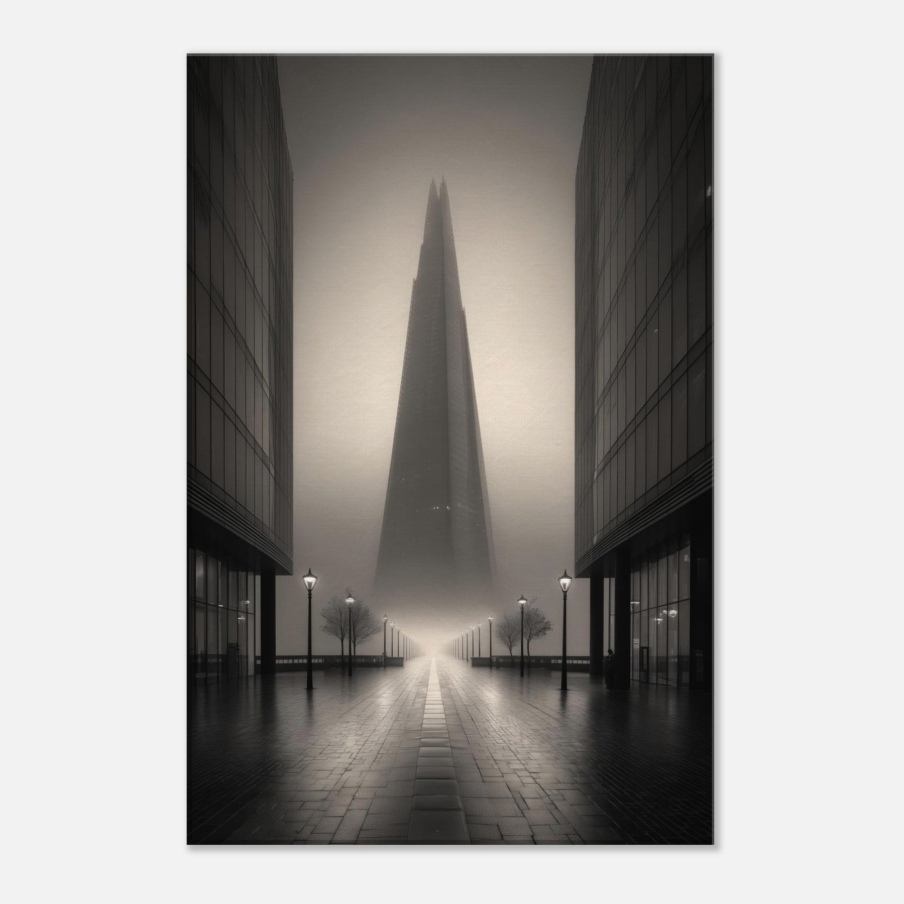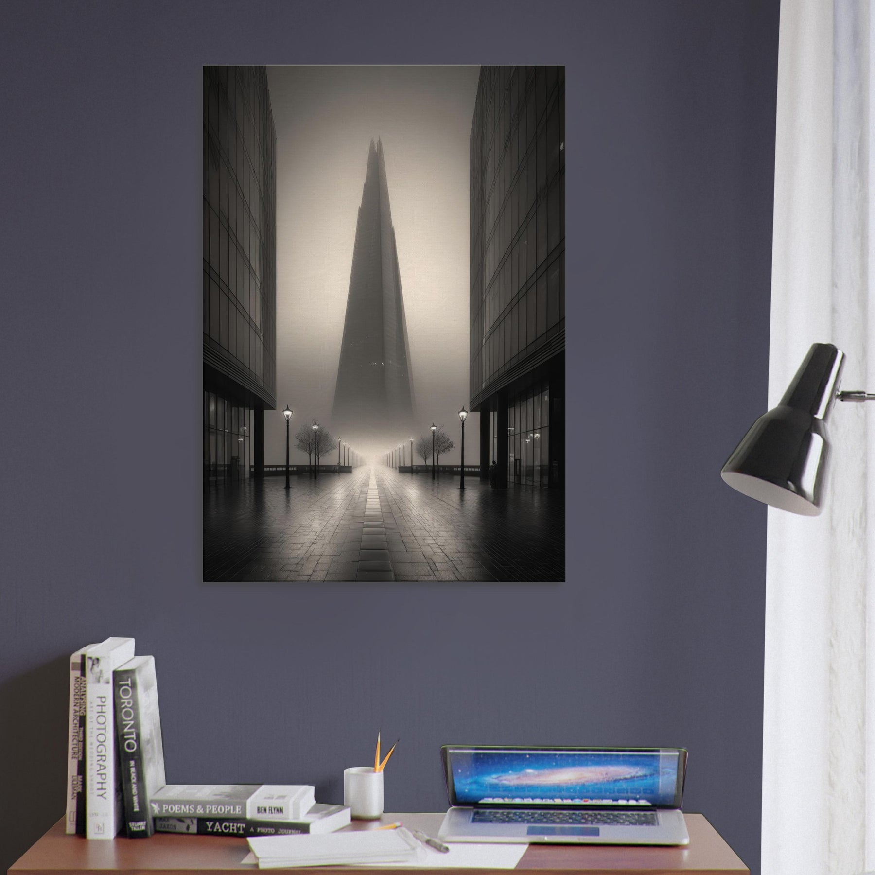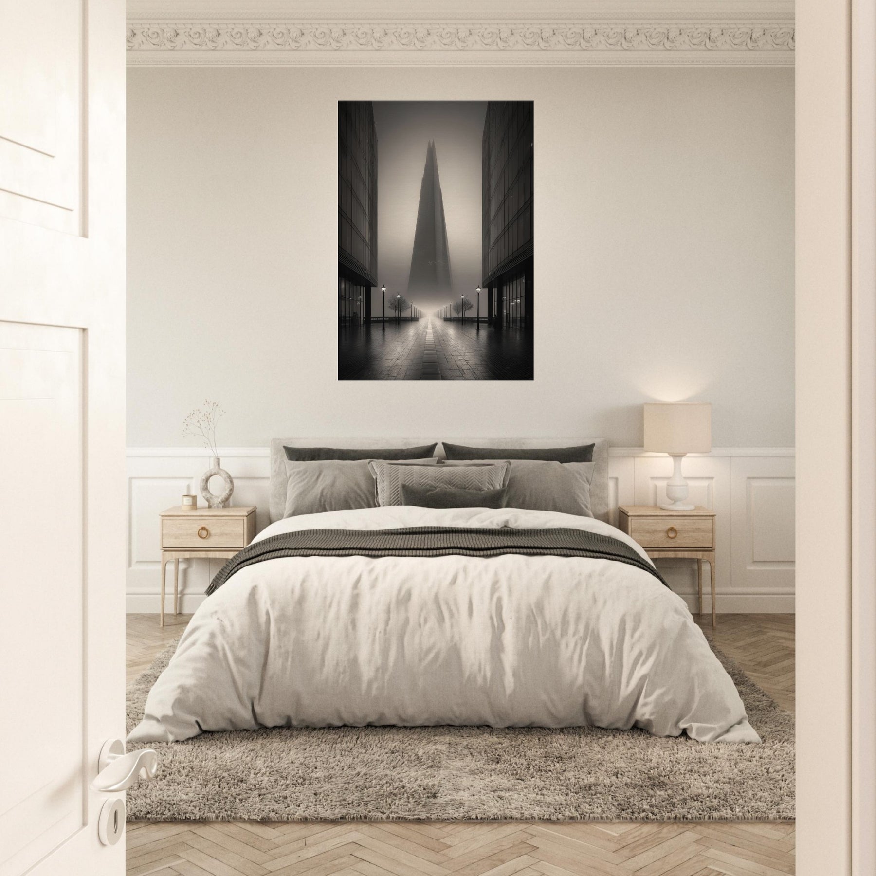 London bursts into a dream where fog drapes a central titan and the streetlights stand as patient guardians. This panorama folds the familiar into mystery: a razor edged tower rising between glass canyons, a long tiled avenue that dissolves into mist. The piece invites the room to breathe, with a soft metallic sheen, muted sepia tones, and a quiet resonance that shifts with the day's light. Hang it to center a living space, letting contemplation trickle from the horizon into the sofa, inspiring conversation, stillness, and wonder.