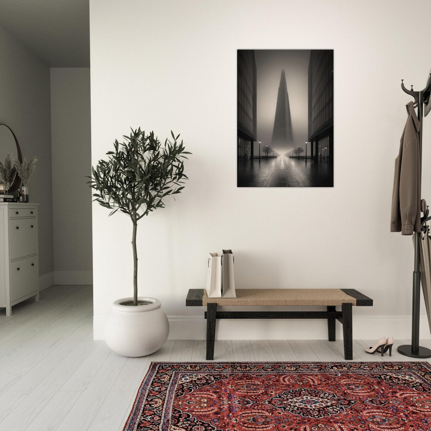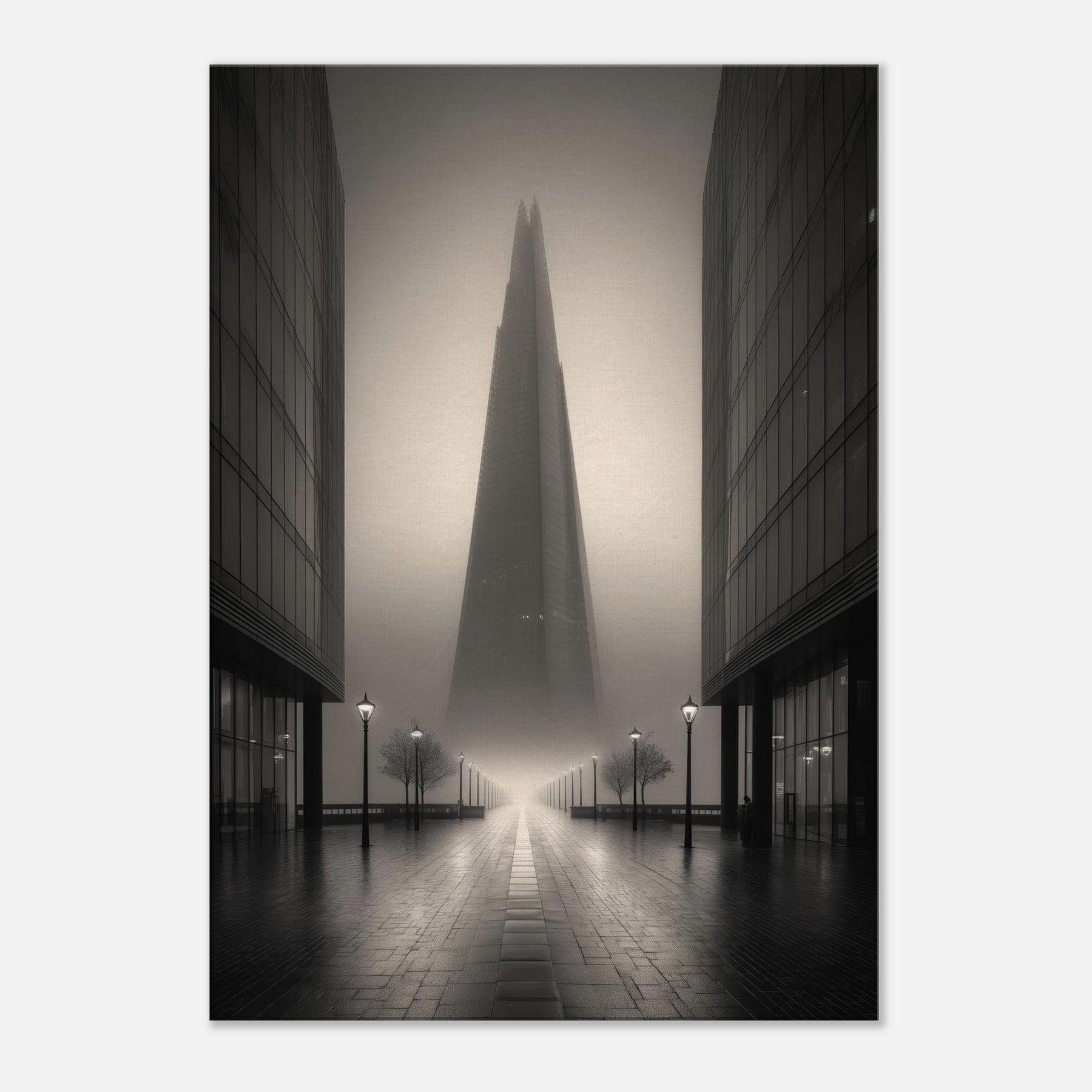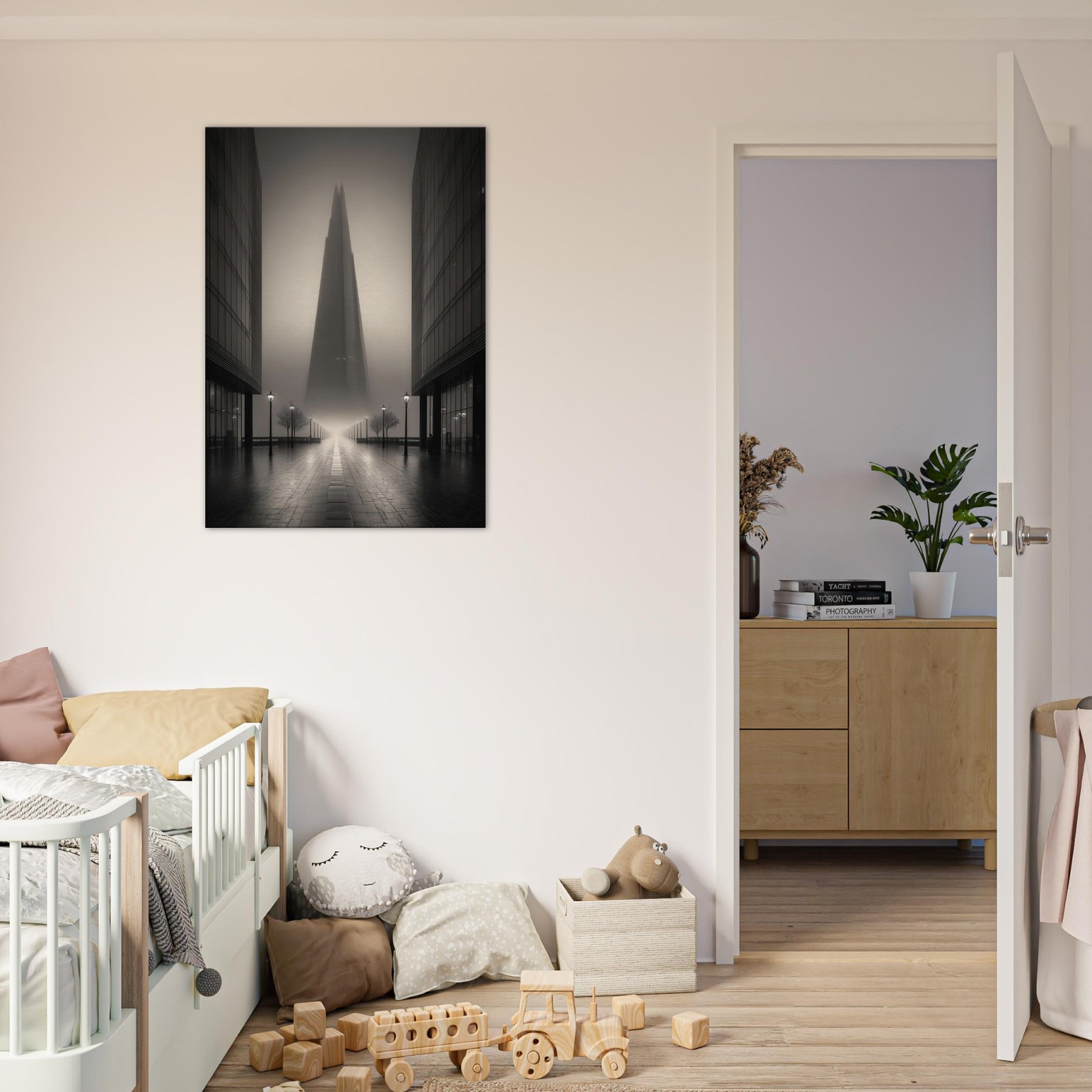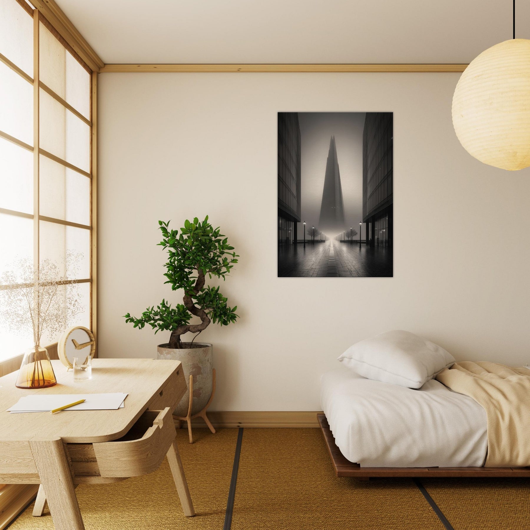 London bursts into a dream where fog drapes a central titan and the streetlights stand as patient guardians. This panorama folds the familiar into mystery: a razor edged tower rising between glass canyons, a long tiled avenue that dissolves into mist. The piece invites the room to breathe, with a soft metallic sheen, muted sepia tones, and a quiet resonance that shifts with the day's light. Hang it to center a living space, letting contemplation trickle from the horizon into the sofa, inspiring conversation, stillness, and wonder.