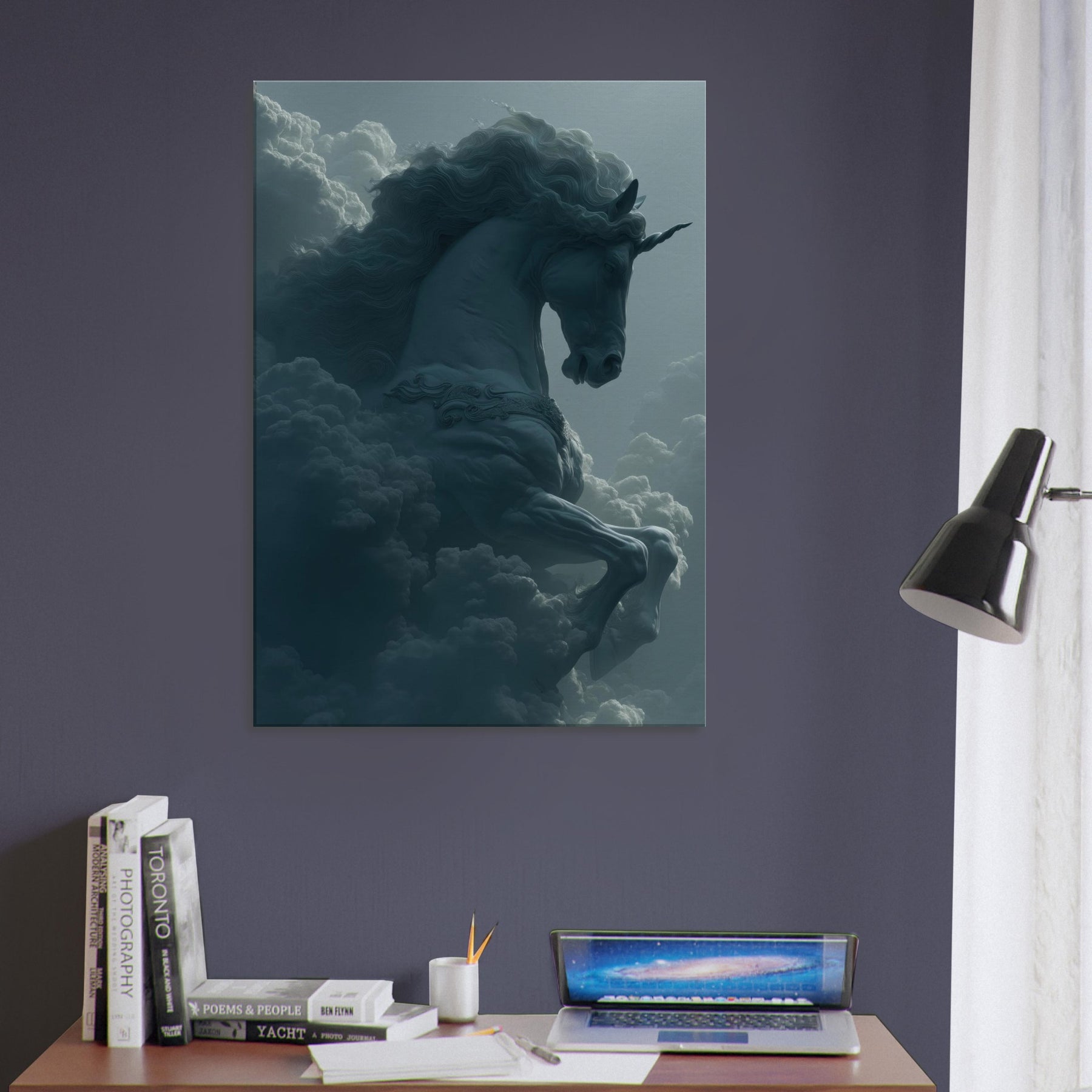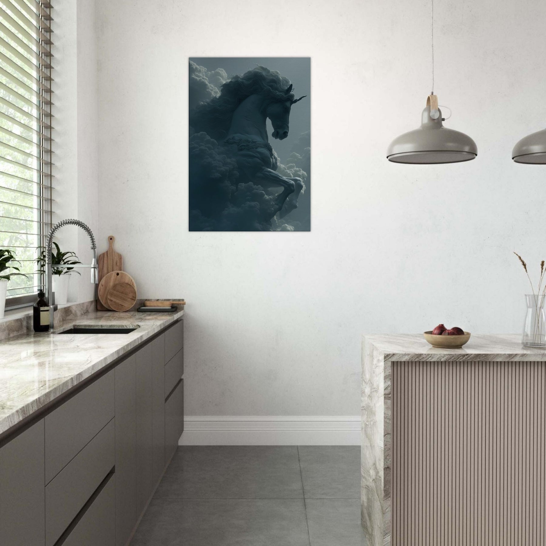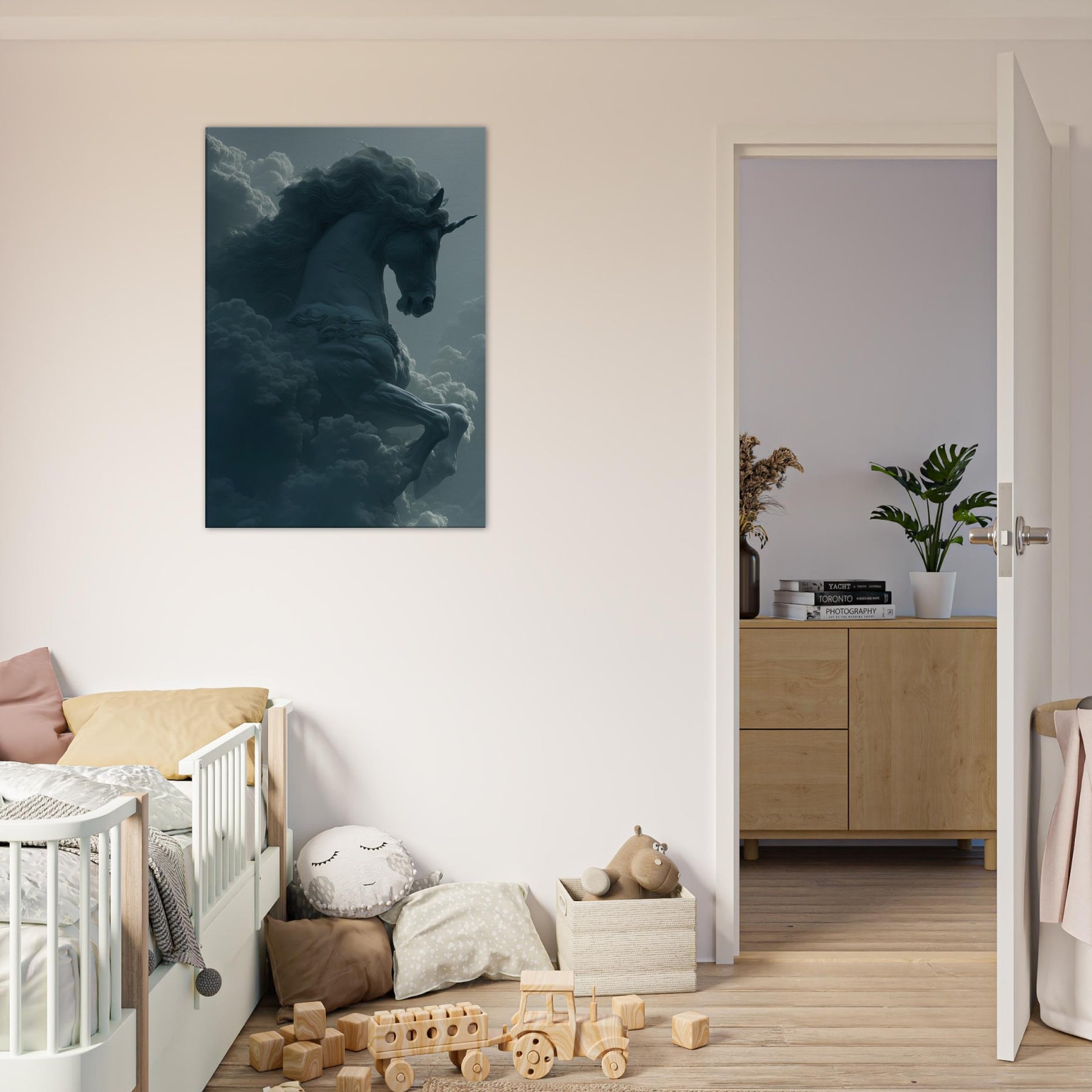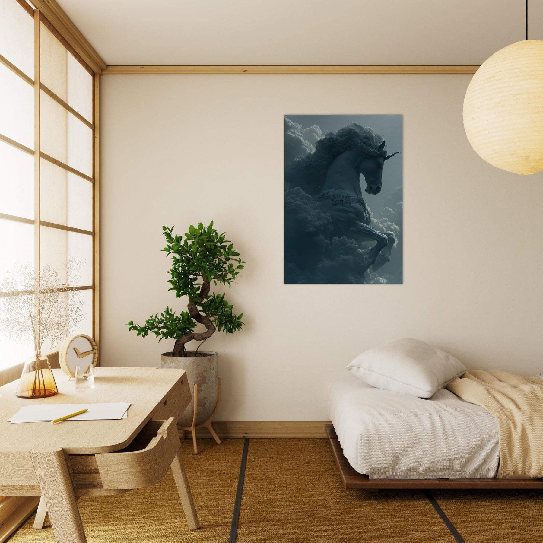 Step into a breath of velvet fog where a Qilin strides through a tide of soft cloud, a symbol of virtue rendered in otherworldly light. This surreal composition blends myth and imagination, inviting a quiet reverie as the room glows with amber and moonlit blues. The Qilin’s poised elegance, the swirling mane, and the misty halo create a sense of movement that softens sharp angles and elevates everyday spaces. Perfect for a living room or study, it awakens conversation and calm.