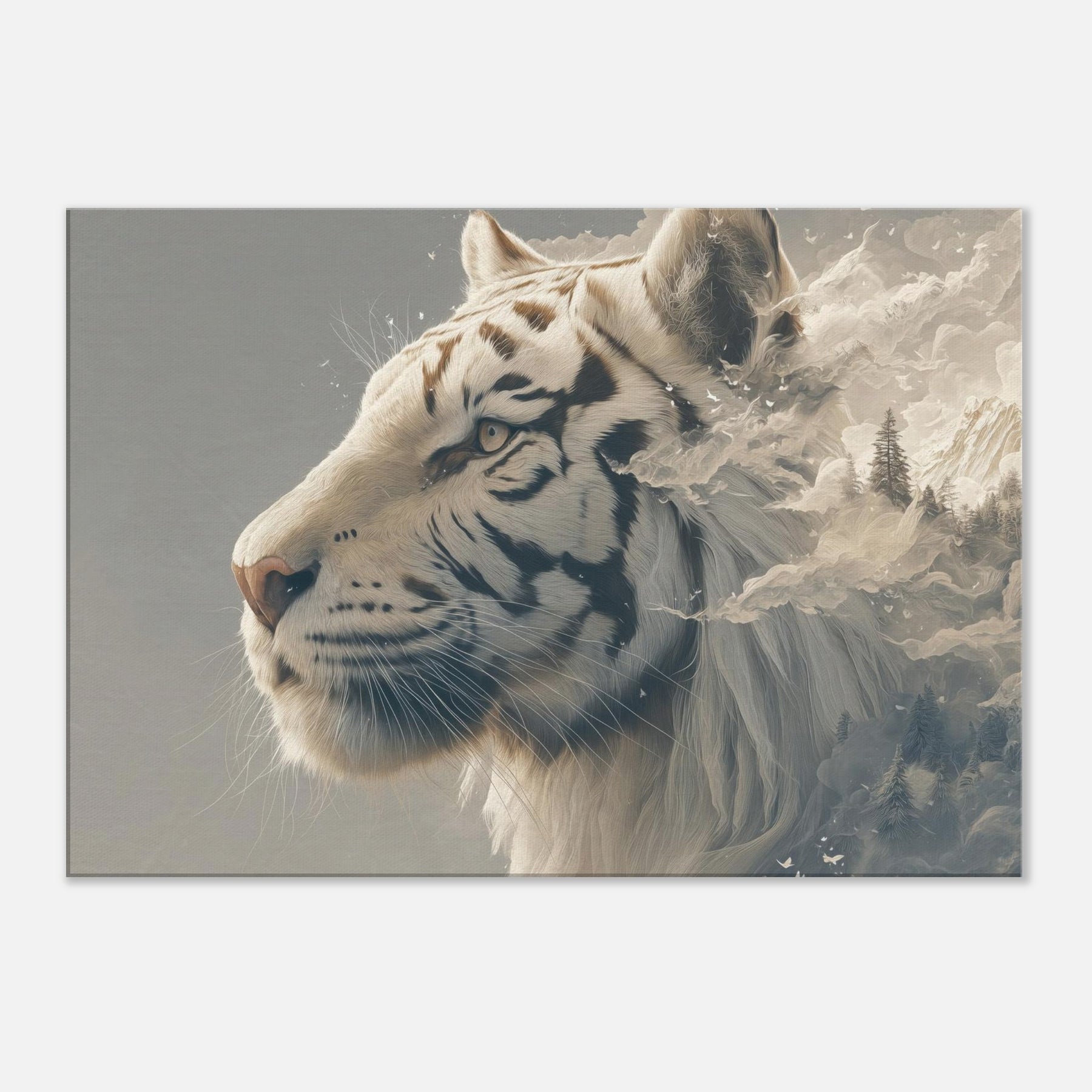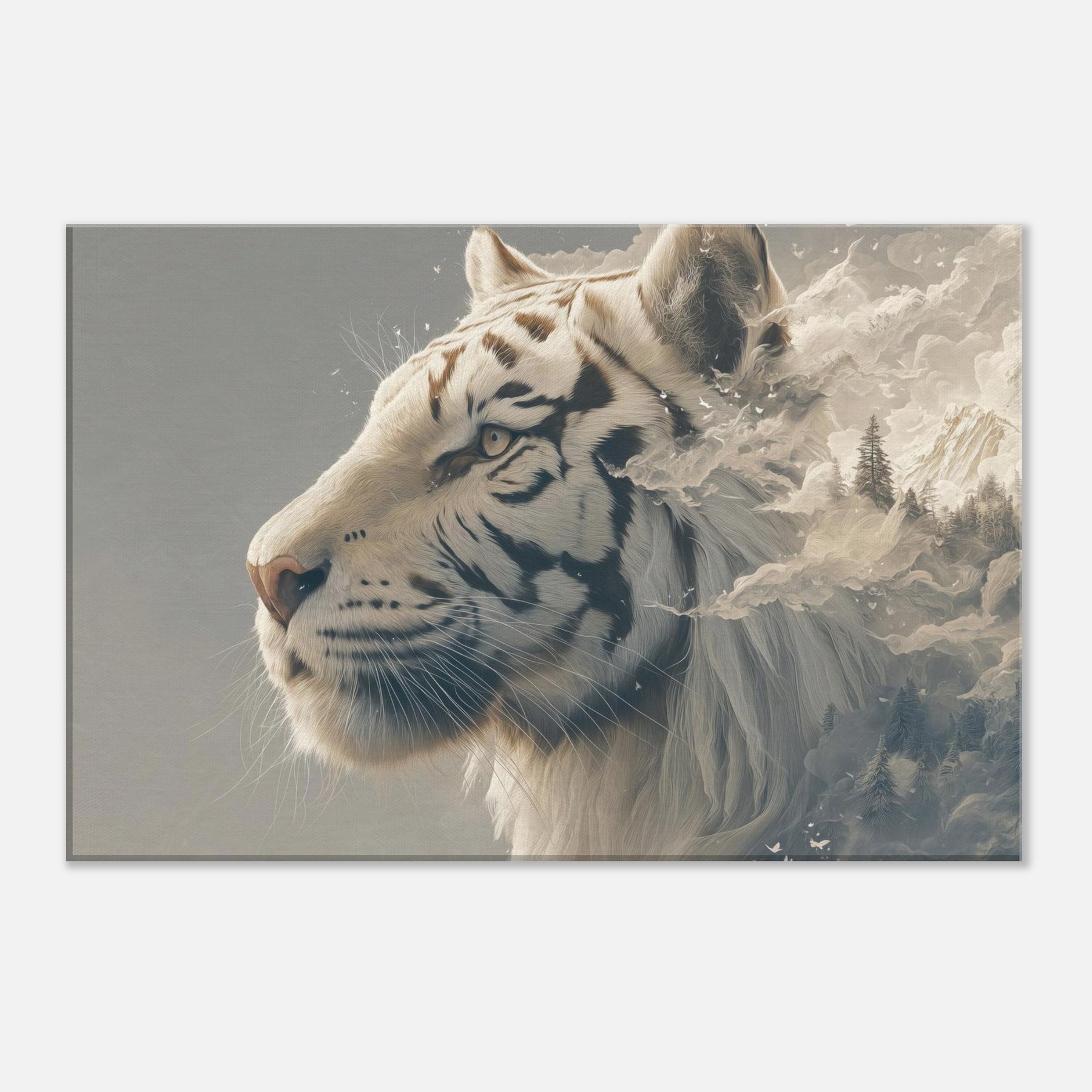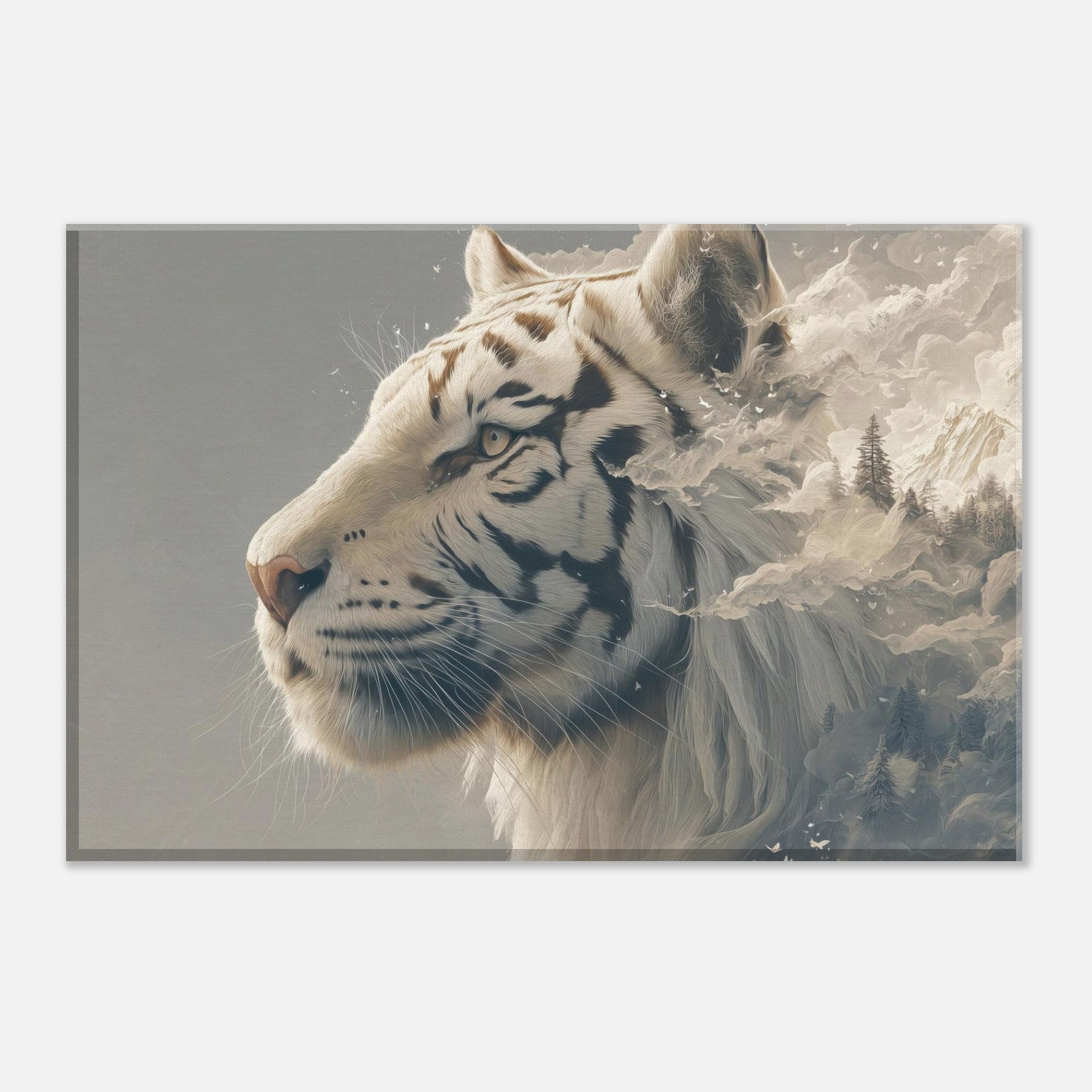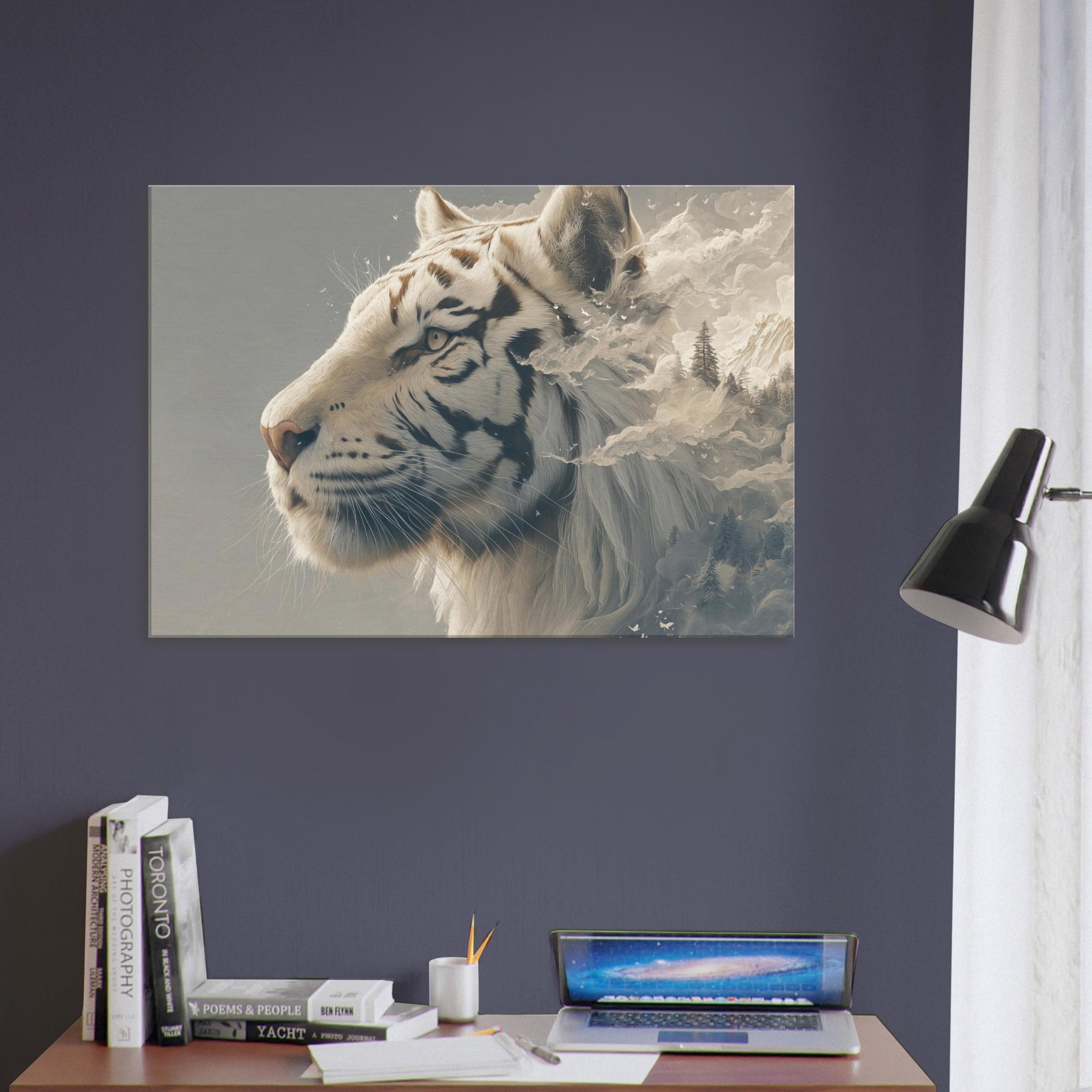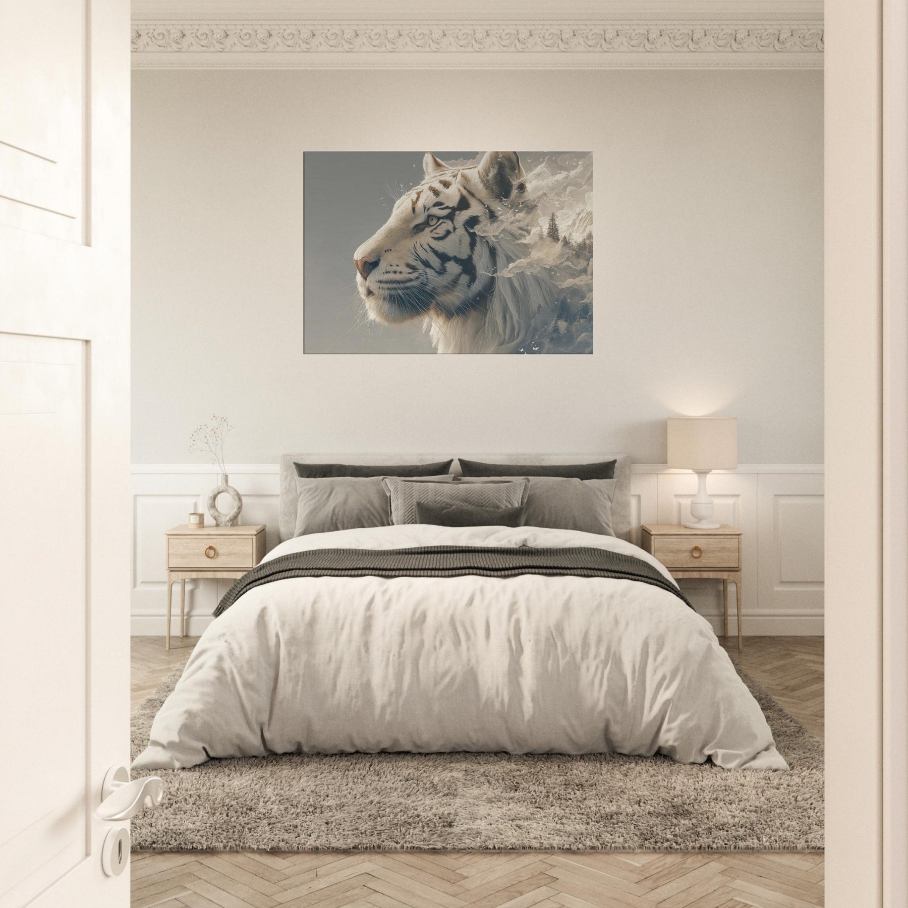 Immersed in a quiet dawn, this piece threads a Tiger through a hazy alpine dream. Wind swept fur glints with snowfall as mountains dissolve into soft smoke, creating a tension between wilderness and room. The image invites slow, thoughtful gazes, turning a living space into a contemplative . Hang it where light drifts across the wall, and let the tiger's calm, watchful presence echo in your lounge or study a reminder that strength can be graceful, and wildness can become art you live with daily.
