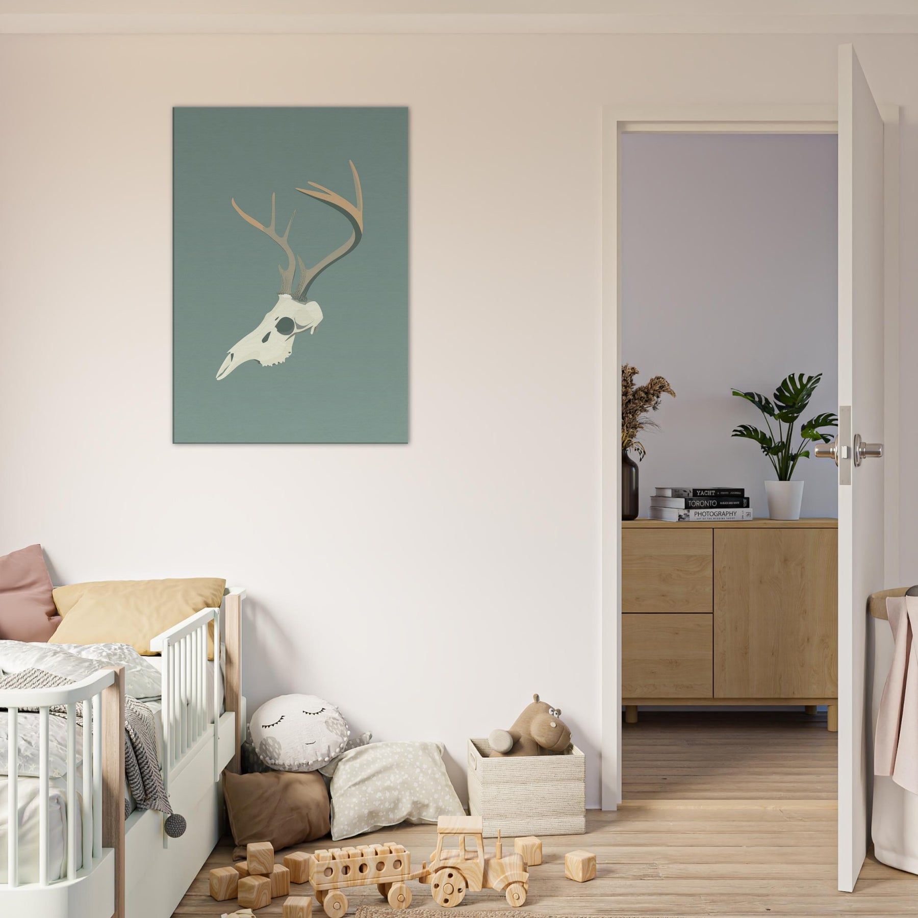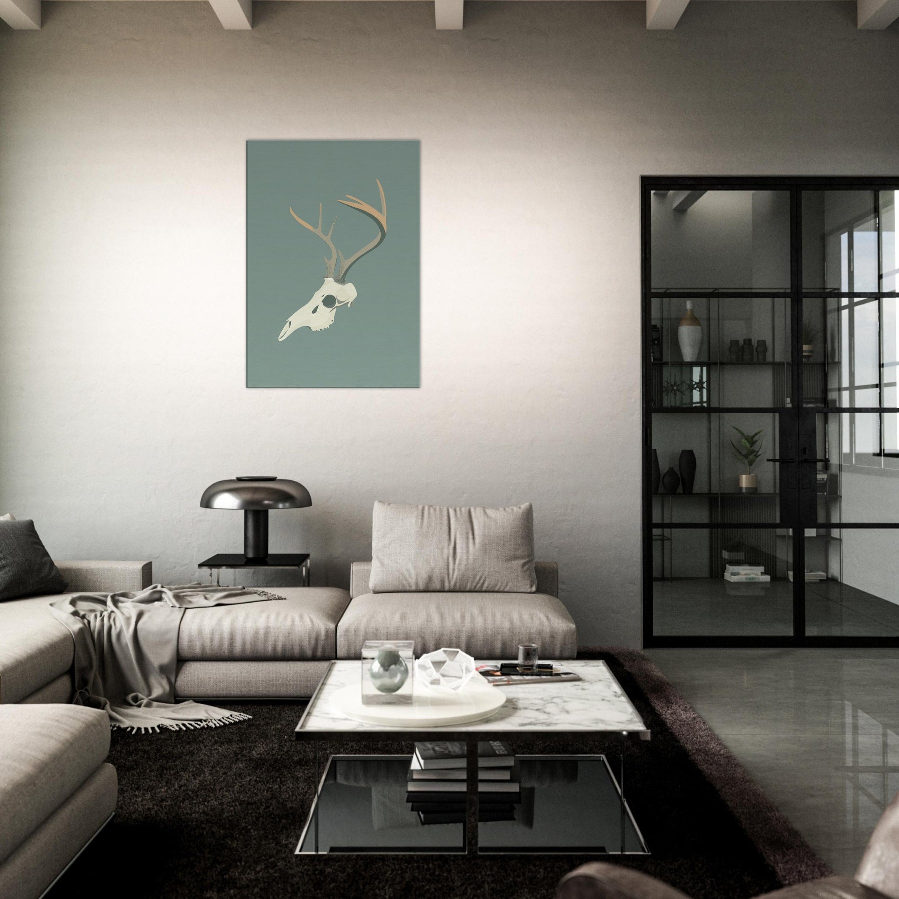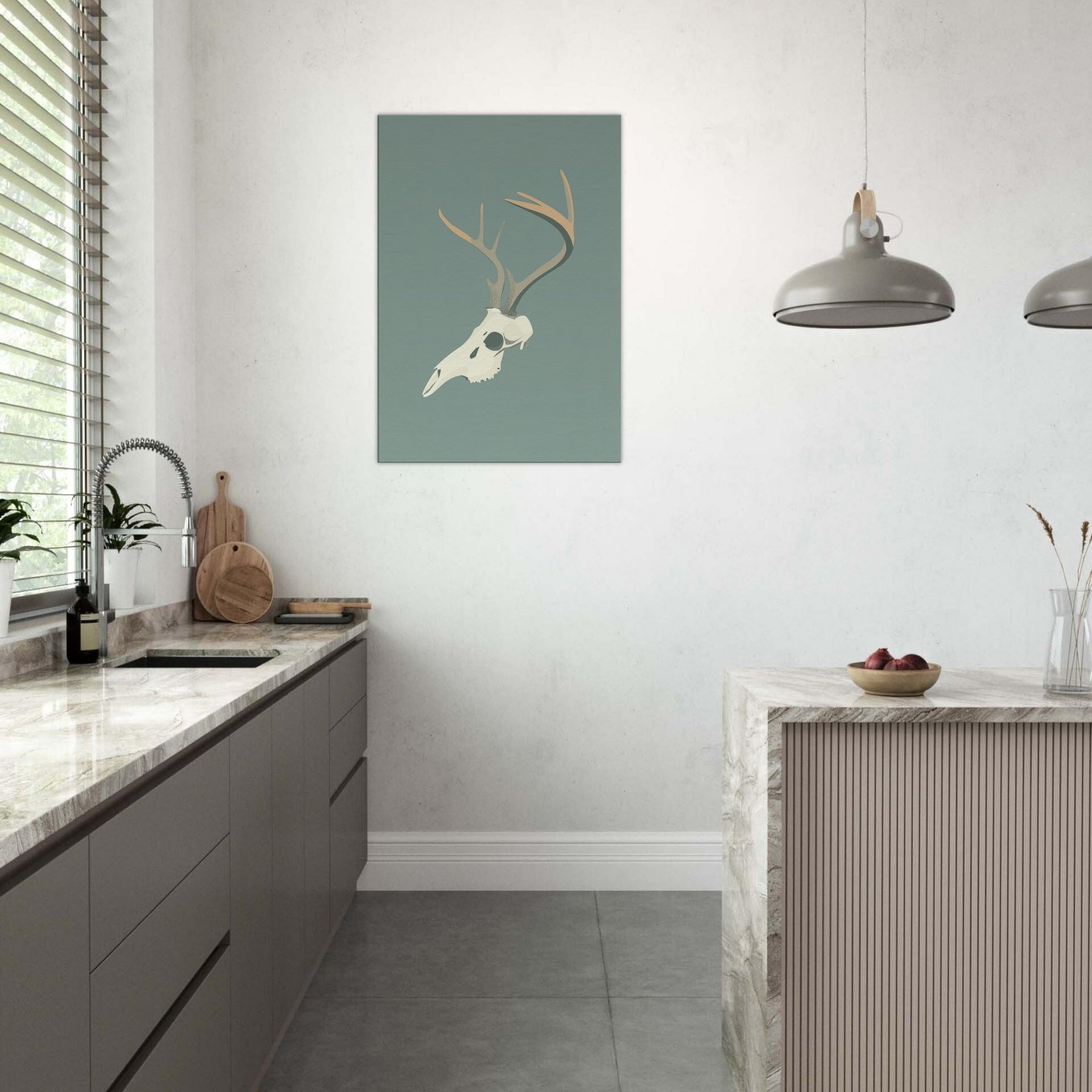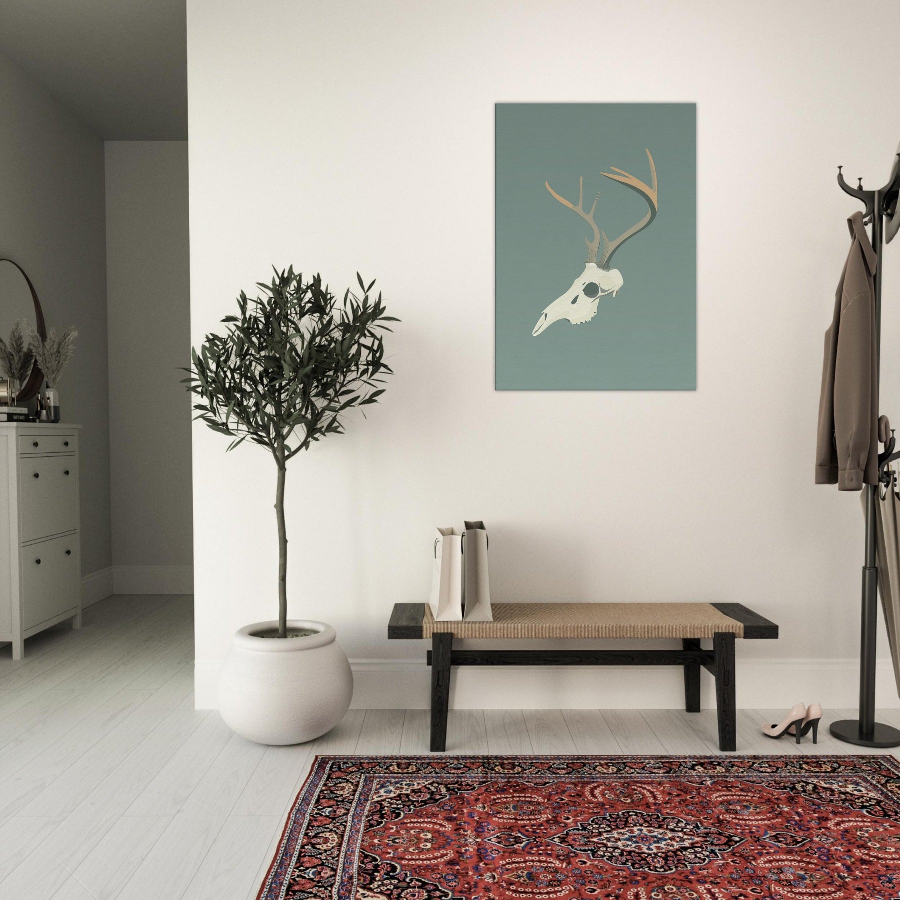 Stag/Deer Skull (Graphic) hangs like a whispered emblem of wilderness and memory. The stark, minimalist linework against a cool sage backdrop invites quiet reflection, turning a corner of your living space into a gallery of restraint and calm. The Stag/Deer Skull (Graphic) feels both ancient and contemporary, bridging natural history with modern interior sensibility. This piece adds atmosphere, depth, and a subtle sense of movement, guiding light and conversation. Perfect above a sofa or in a bedroom nook, it lends refined nocturnal edge to everyday spaces.