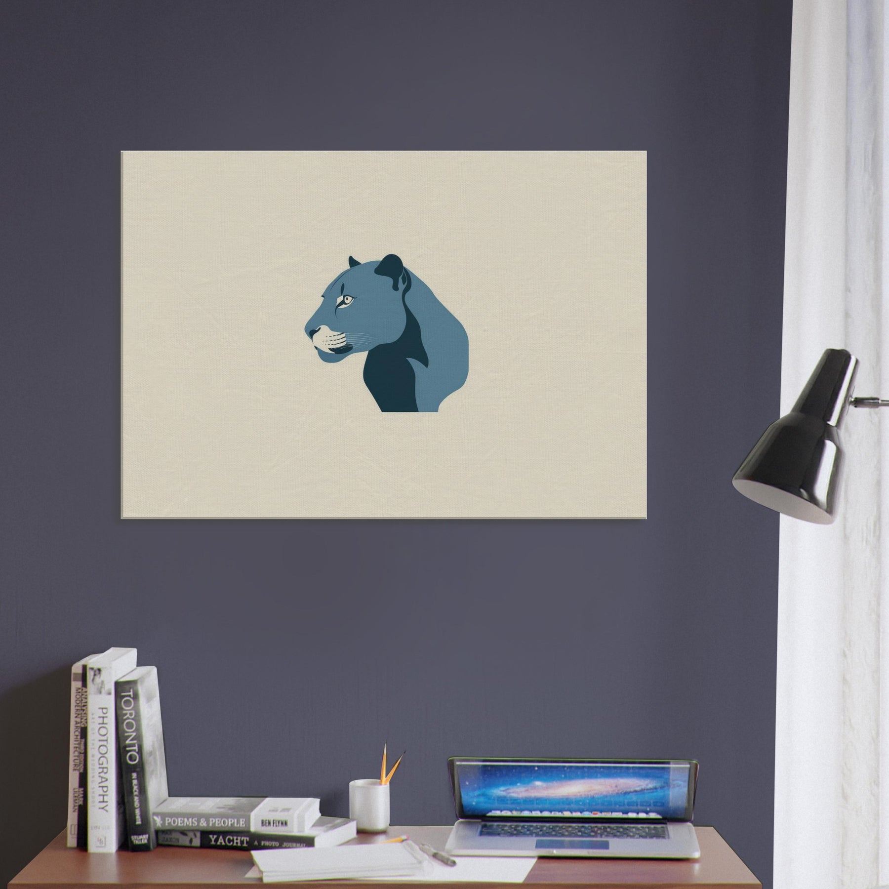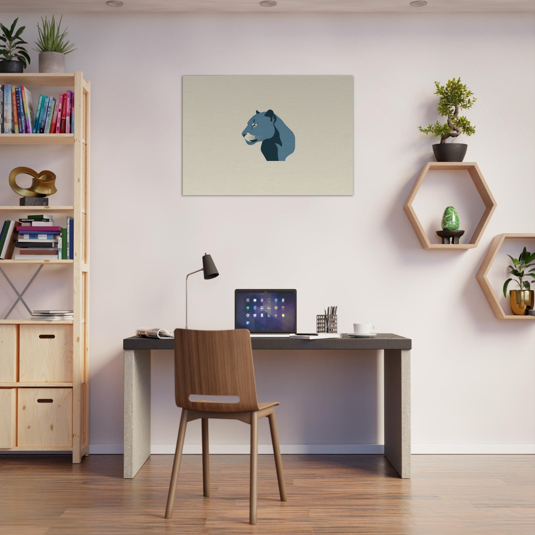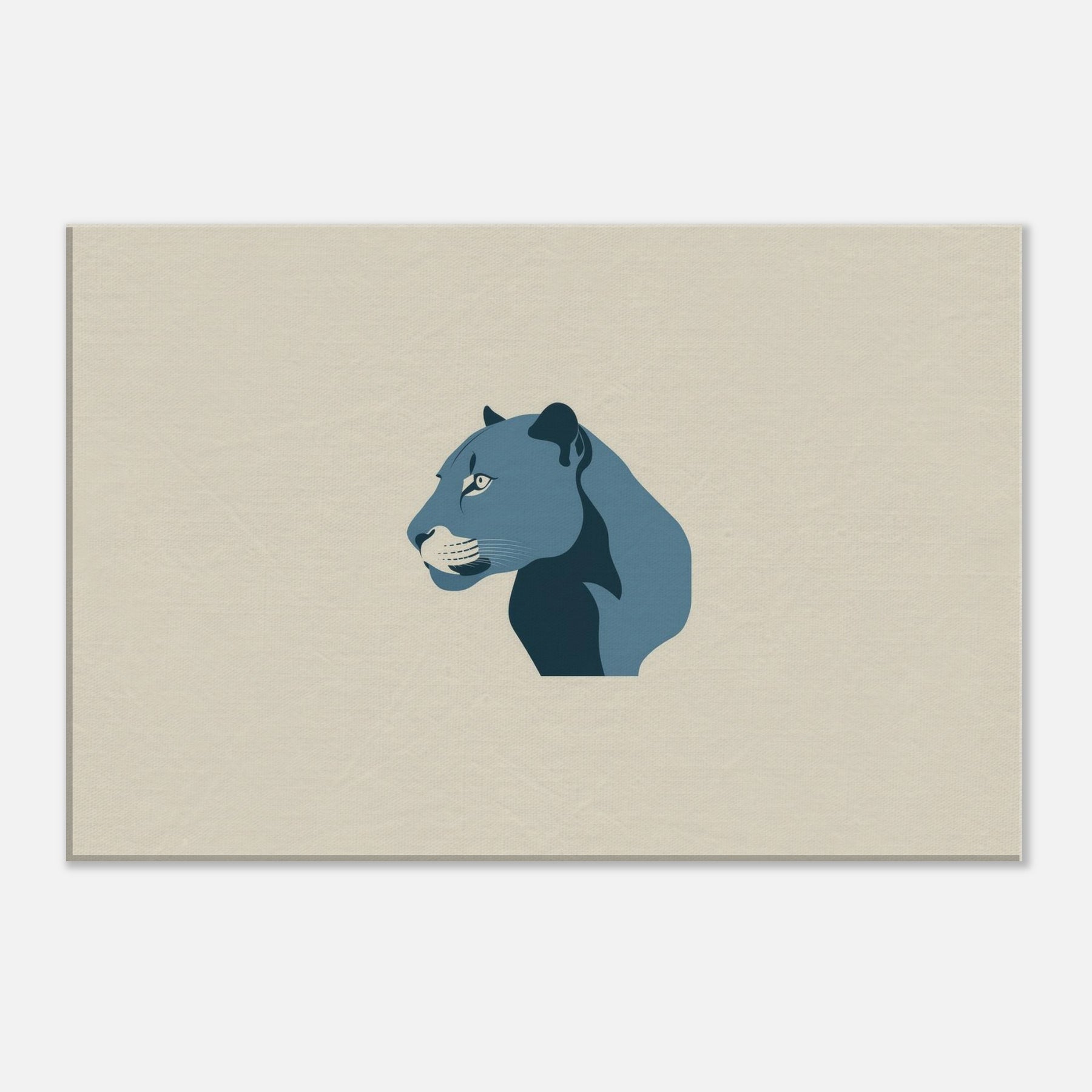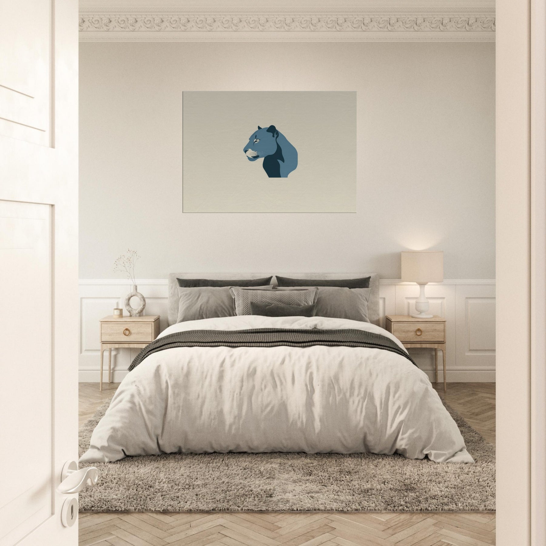 An understated of the Jaguar, rendered in clean, intersecting planes that suggest movement without excess. The cool blues against a warm, beige field evoke dusk over a quiet savanna, inviting contemplation rather than display. This piece breathes with a calm, architectural presence, casting a soft focus that highlights texture, light, and space. Hang it where you want a focal point that anchors a seating area or study an elegant reminder of grace, stealth, and the poetry of restraint.