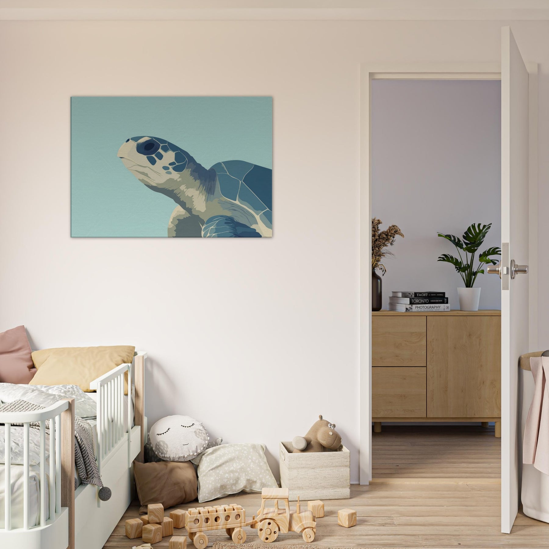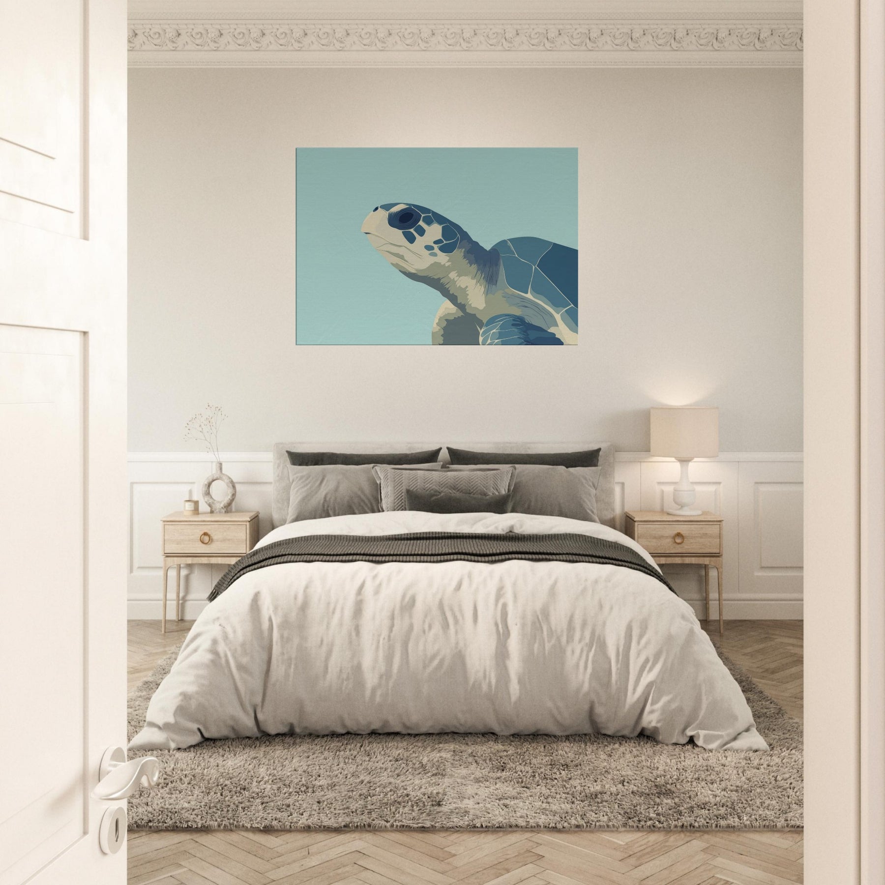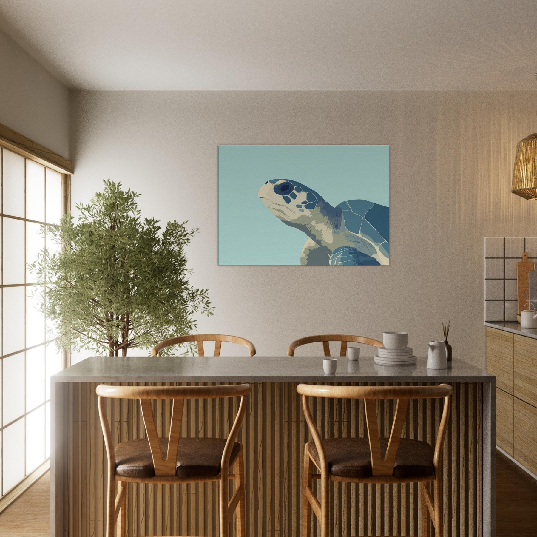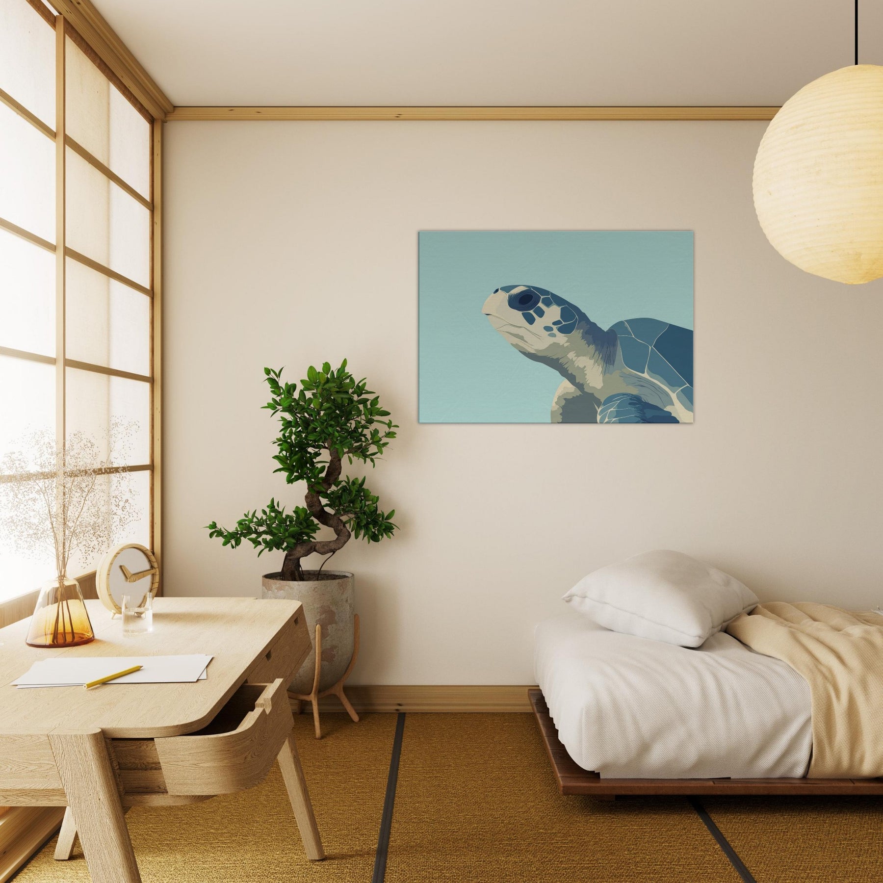 In serene, pared down lines, this Turtle minimalist wall art invites the quiet rhythm of sea and sky into your space. The turtle's form unfolds in soft, geometric patches, catching light with understated elegance. The cool blues and creamy neutrals create a tranquil mood that suits a living room, bedroom, or hallway, pairing effortlessly with textiles from linen to wool. Hang it where you want stillness to linger a contemplative focal point that turns everyday walls into a coastal pause.