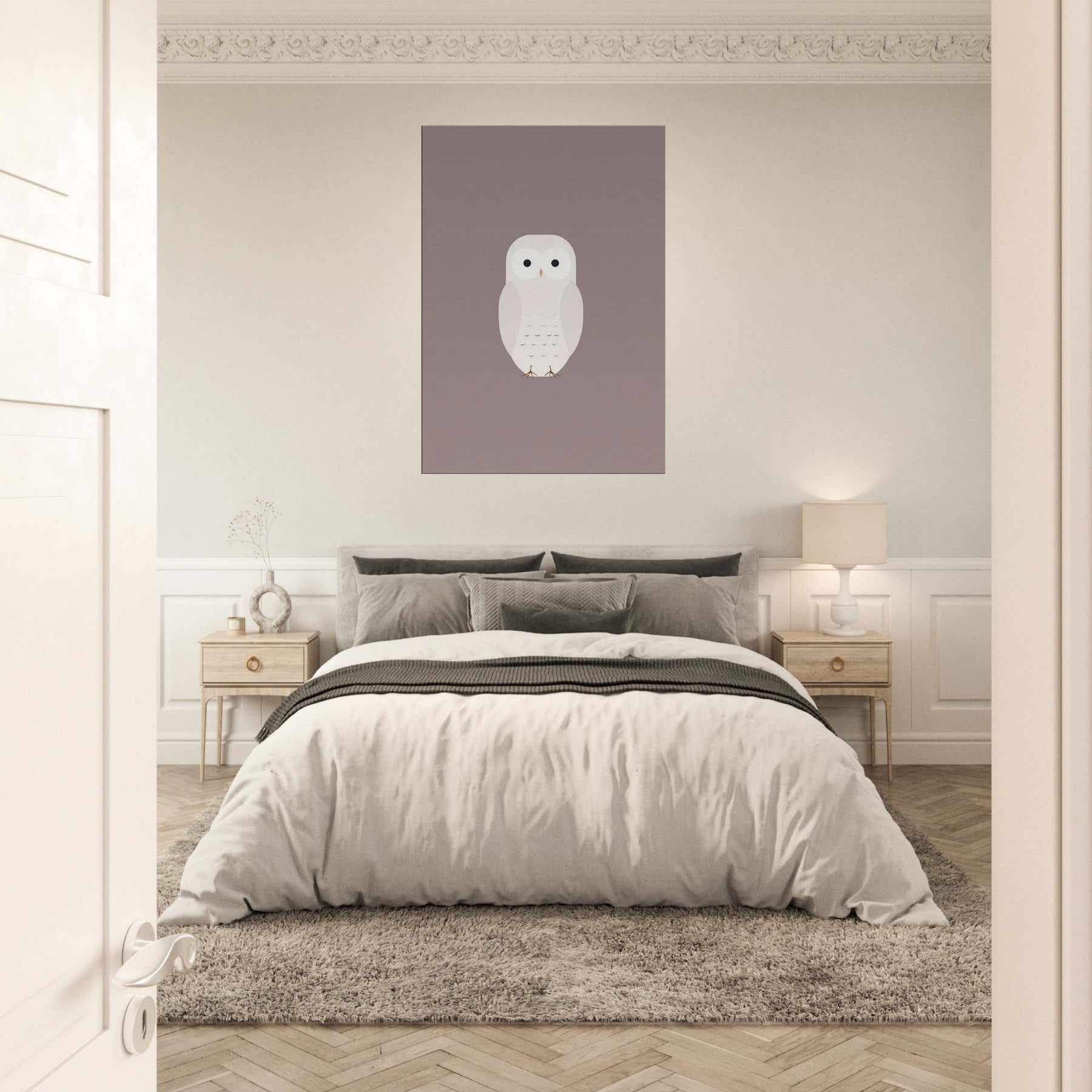 Soft taupe surrounding and a poised Owl form come together in a quietly confident composition. This minimalist illustration invites calm into any room, its uncluttered lines and gentle hues echoing a midnight moonrise. The Owl becomes a serene focal point an emblem of patience and watchful grace while the pared down design keeps walls feeling open and unhurried. Hang it above a sofa or in a bedroom alcove to cultivate a sense of refined stillness and subtle, everyday wonder.