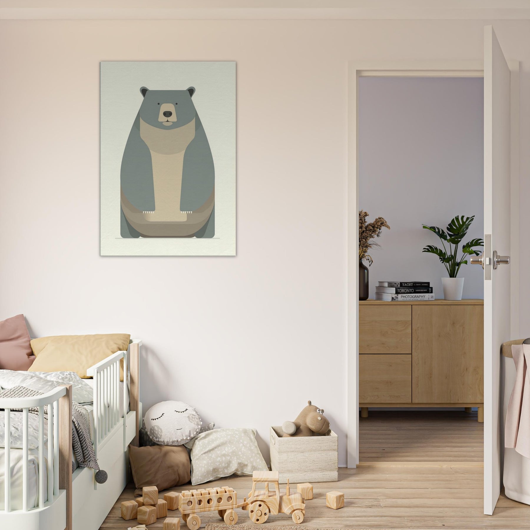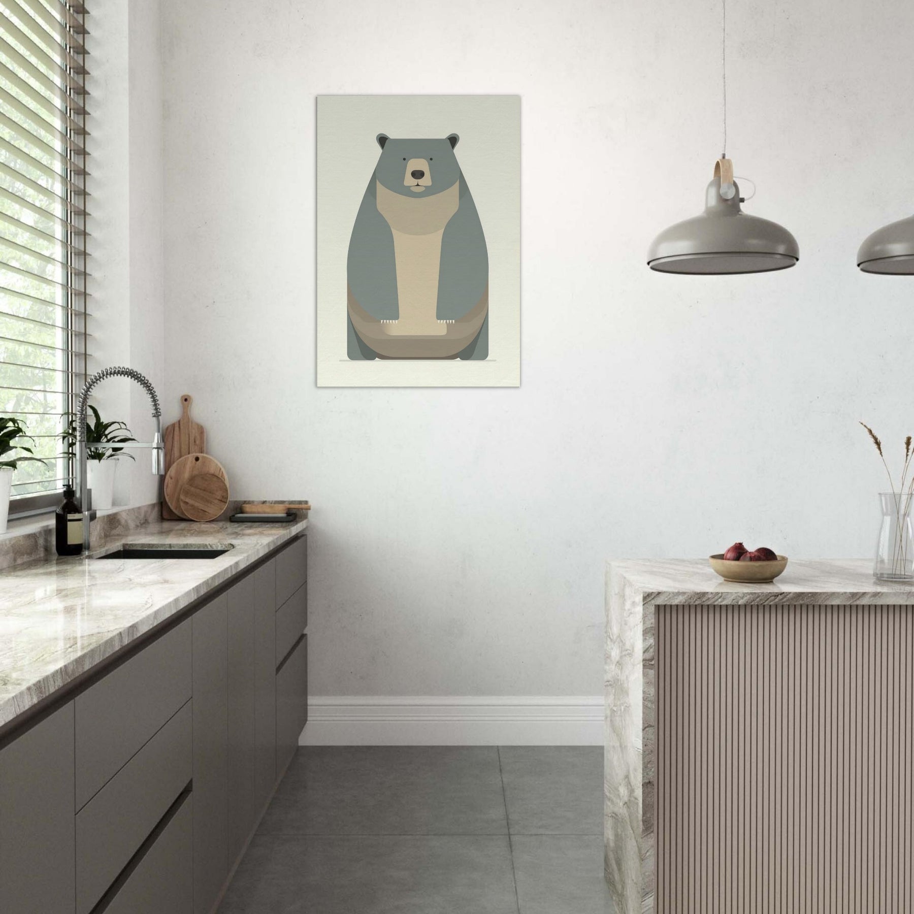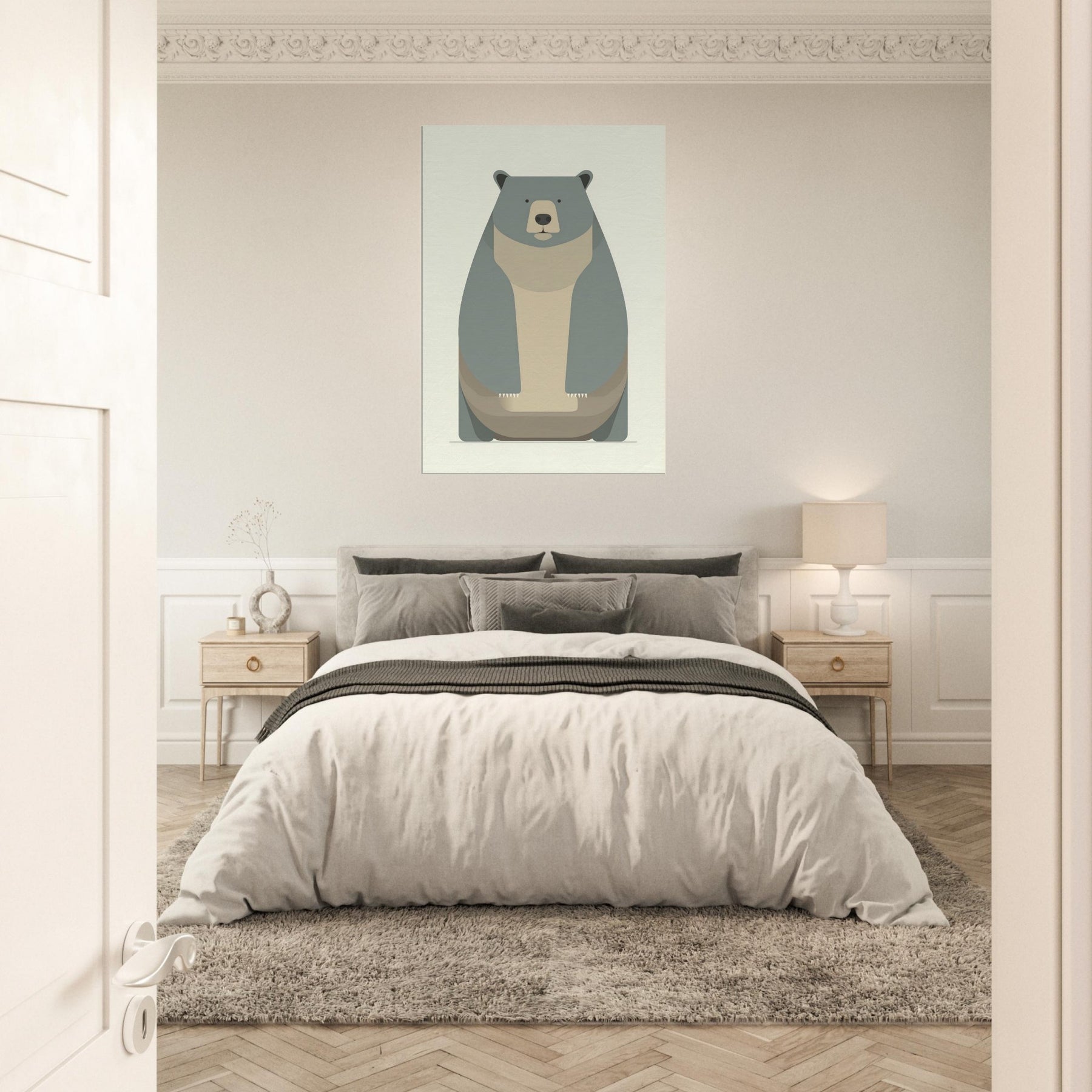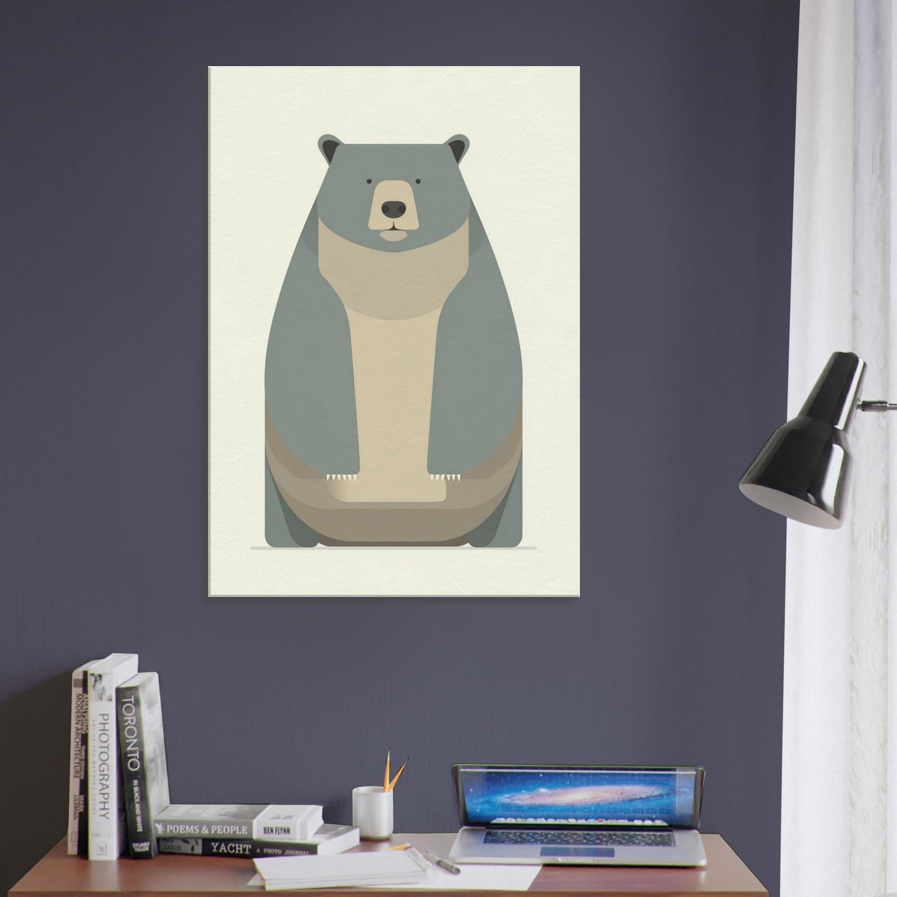 In this serene portrayal, a regal Bear sits upright in softly layered shapes and muted tones, inviting quiet contemplation. The clean geometry and restrained palette create a hushed presence that anchors a room without shouting. This minimalist composition evokes breath, balance, and warmth, turning blank walls into a sanctuary. Perfect for a living room or bedroom, it pairs with natural textures and subdued lighting to enhance everyday moments with a subtle, enduring grace.
