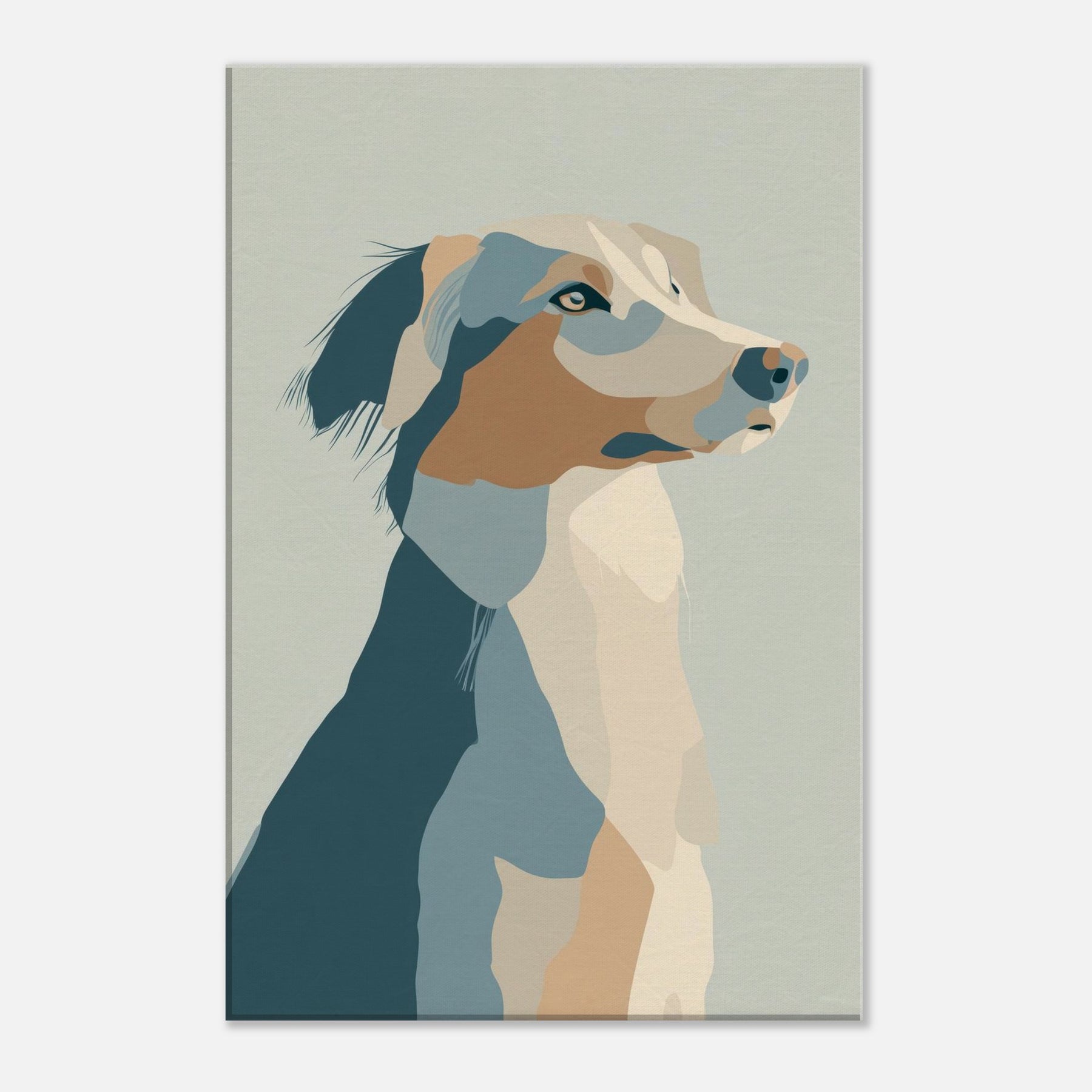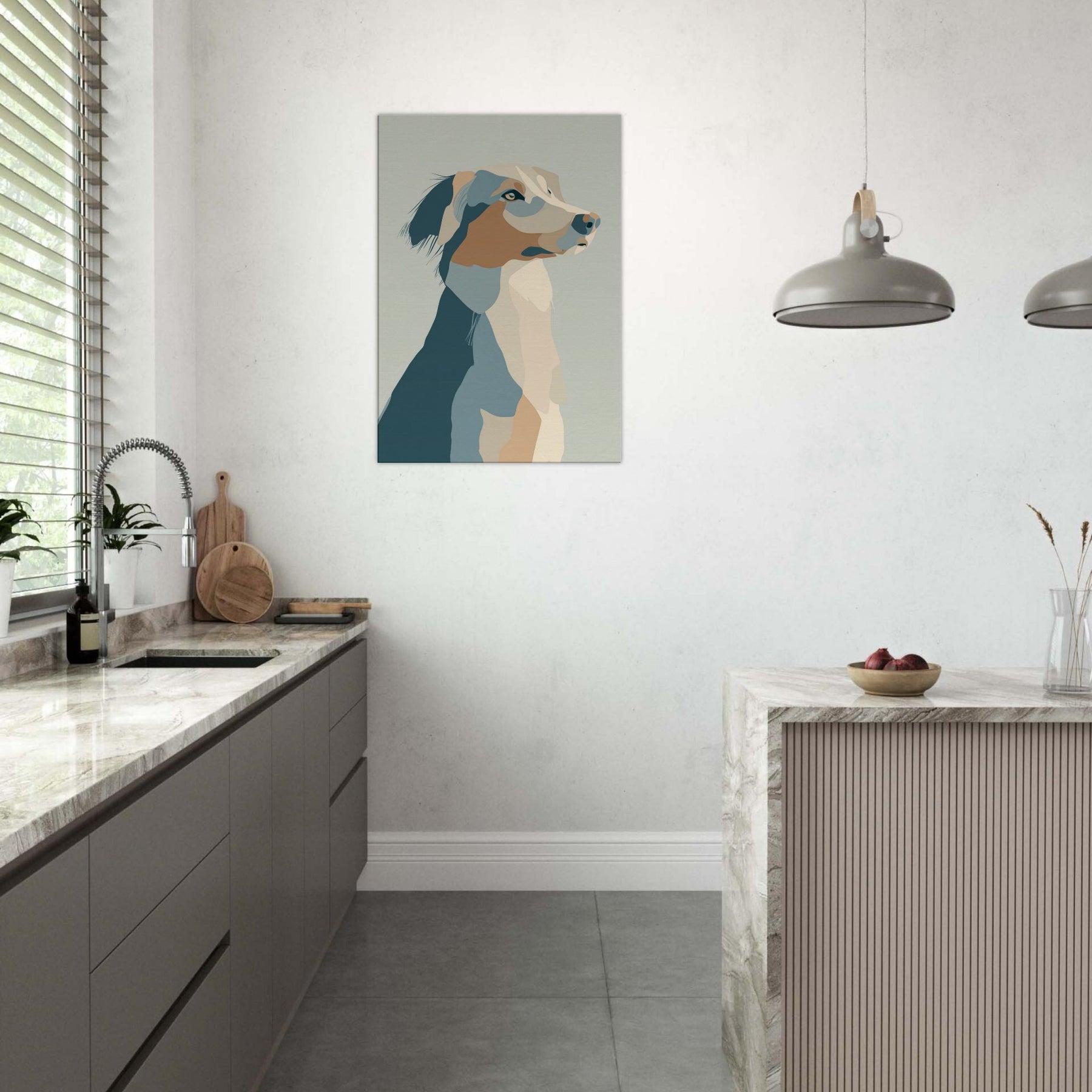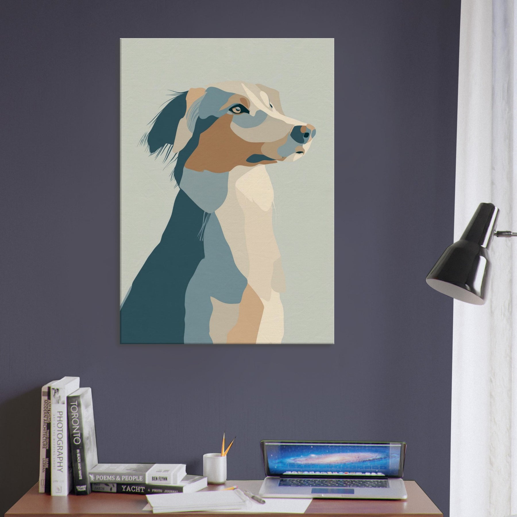 In a hush of color and line, this minimalist study of a dog radiates calm and quiet confidence. The soft palette of sage, slate, and warm sand evokes morning light brushing along a sun drenched wall, turning space into a breathing . The Dog's poised, forward gaze anchors a room, inviting pause and reflection without shouting. Perfect for a living room or study, it pairs with natural textures and clean furniture to create a serene corner where everyday moments feel elevated.