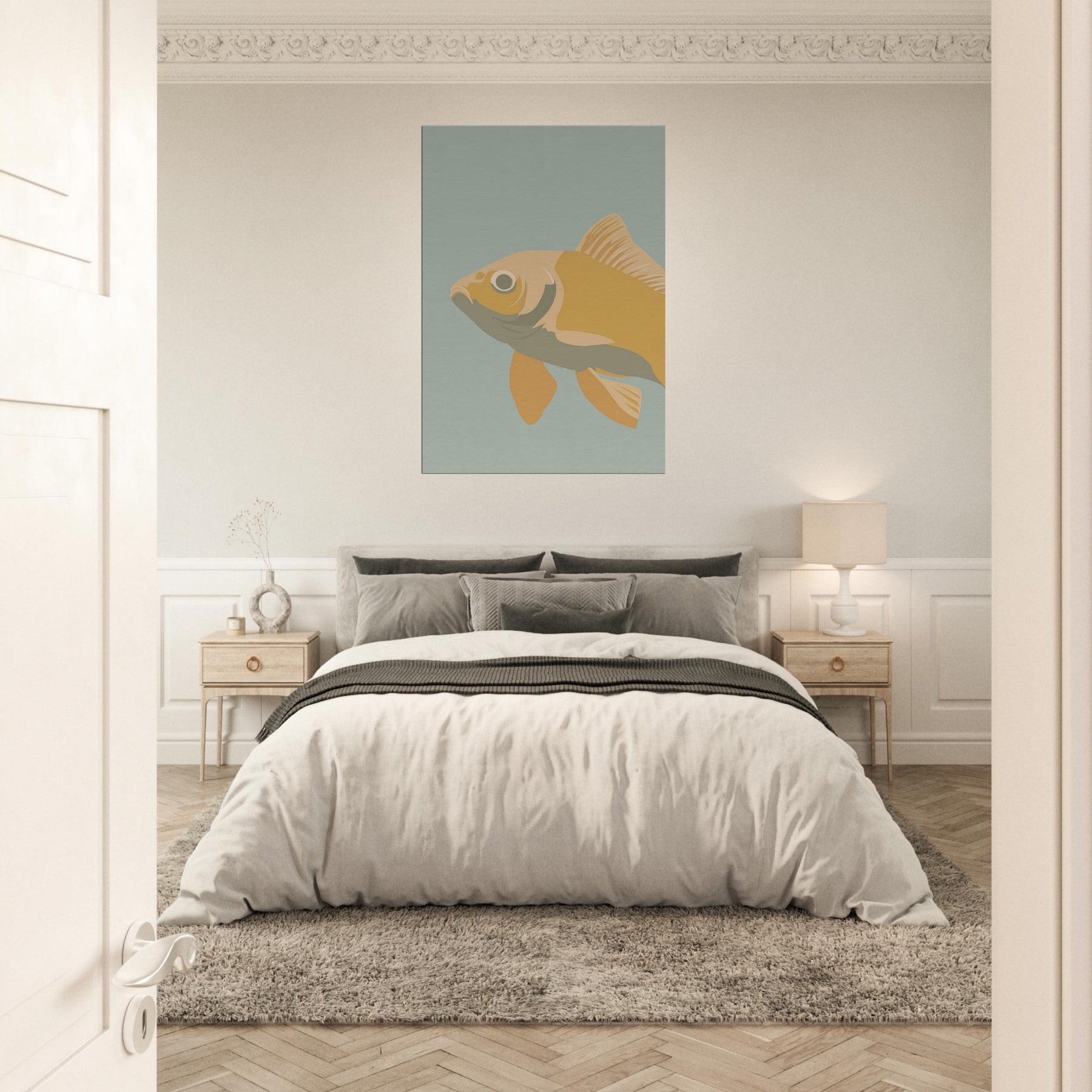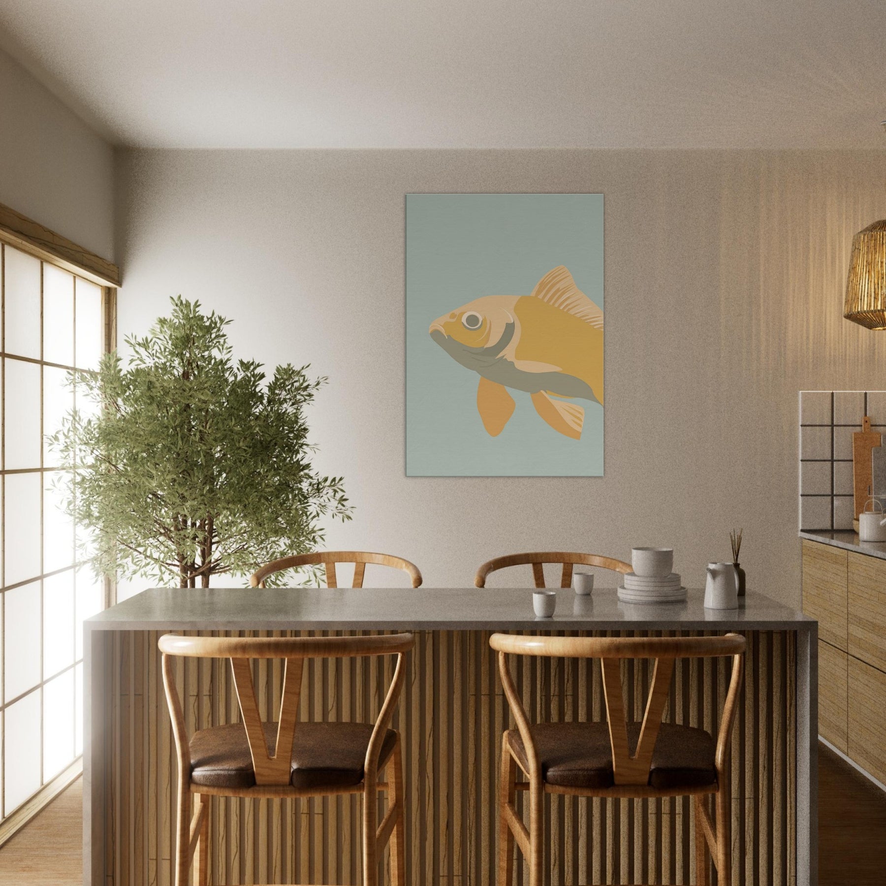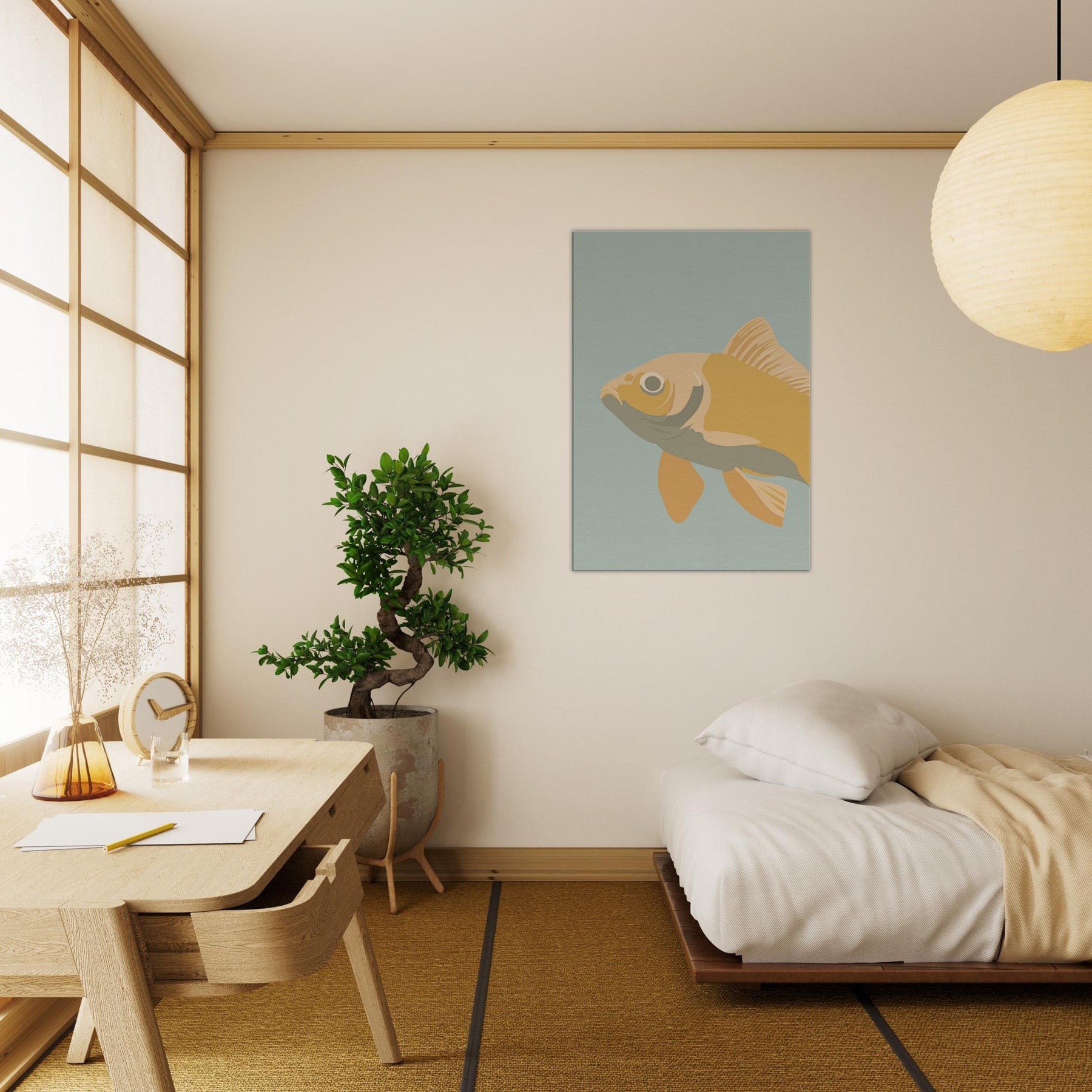 Softly illuminated by a gentle palette, this Koi Fish minimalist piece invites a breath of stillness into any room. The clean silhouette, warm terracotta tones, and playful curve of the fins glide across a quiet sea of sage, creating a sense of balance and motion without noise. Hang it above a sofa or in a hallway to soften chrome and wood with a serene, contemplative mood a refined focal point that transforms the space into a sanctuary of calm.