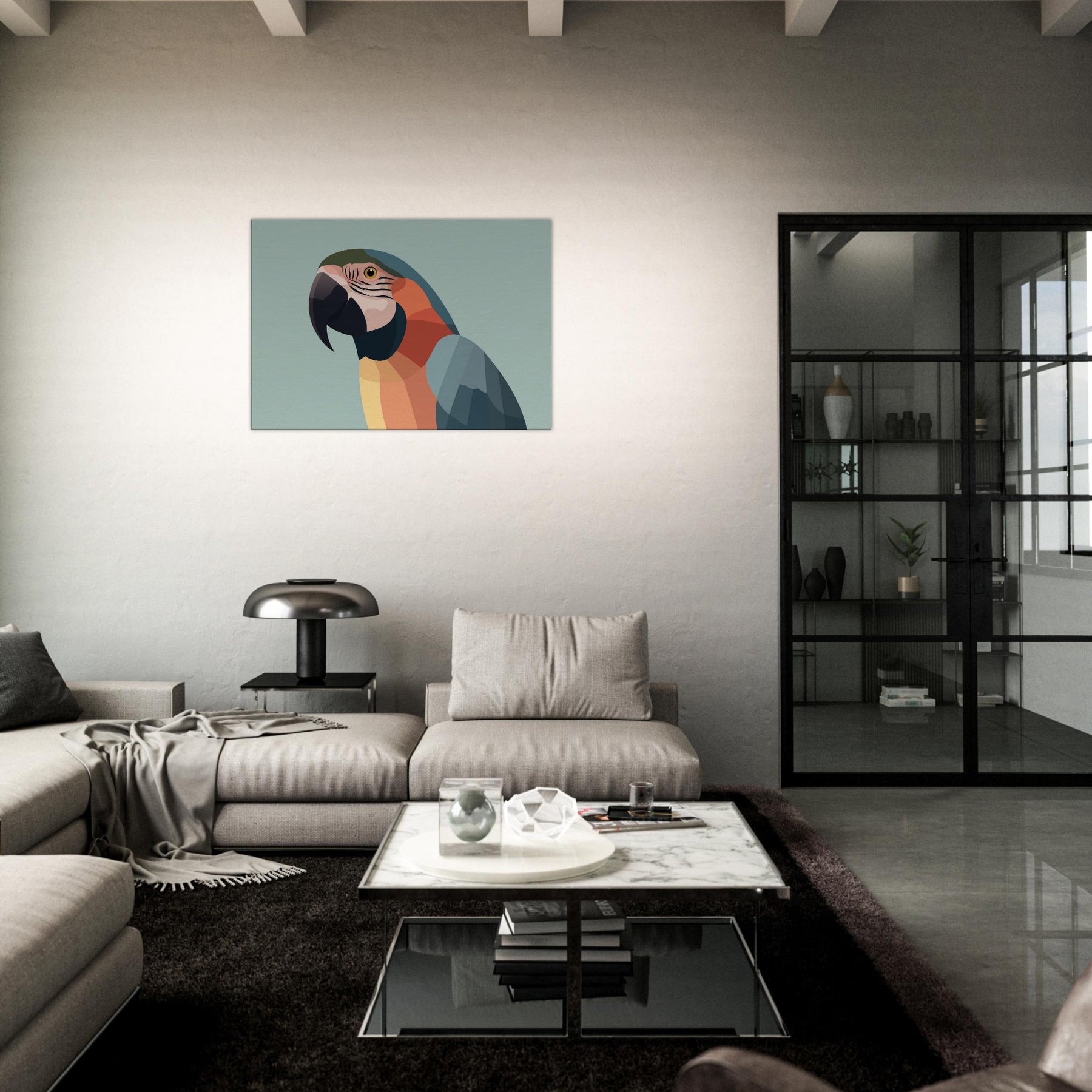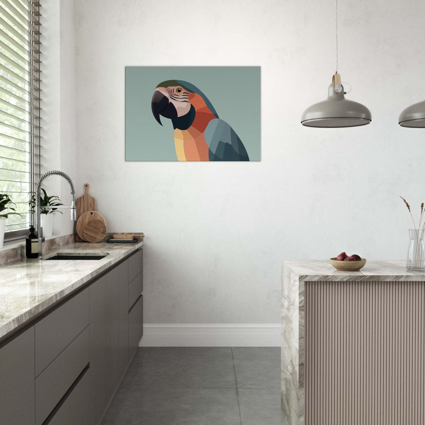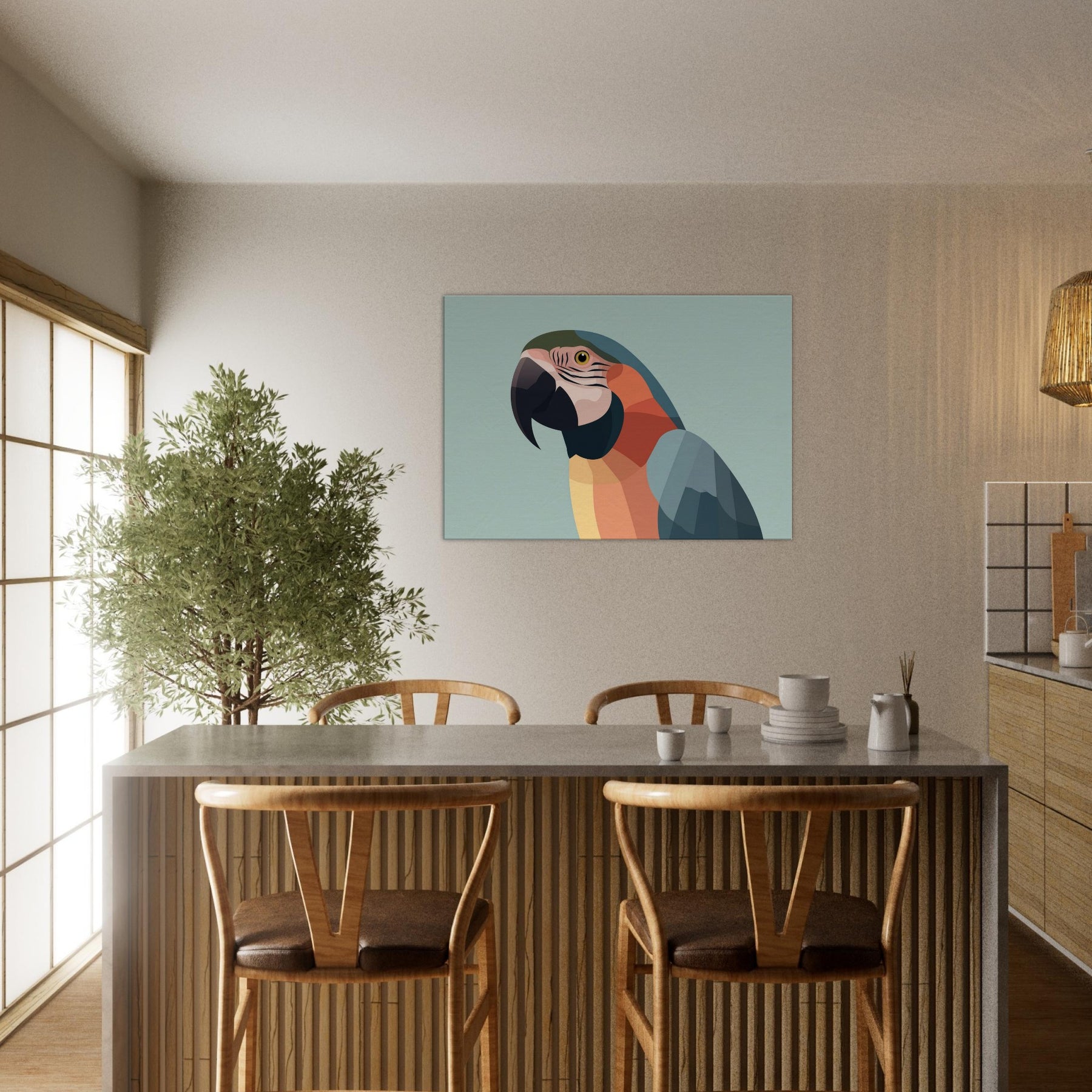 Invite a breath of calm into your living room with this minimalist Parrot print. The pared down palette and clean geometry evoke a sunlit afternoon where color blocks breathe and the bird's presence feels intimate yet unobtrusive. The Parrot's poised eye anchors the composition, while soft greens and warm terracotta hues wash across the wall, creating a tranquil atmosphere that enhances daily rituals coffee, conversation, quiet reading without shouting for attention.