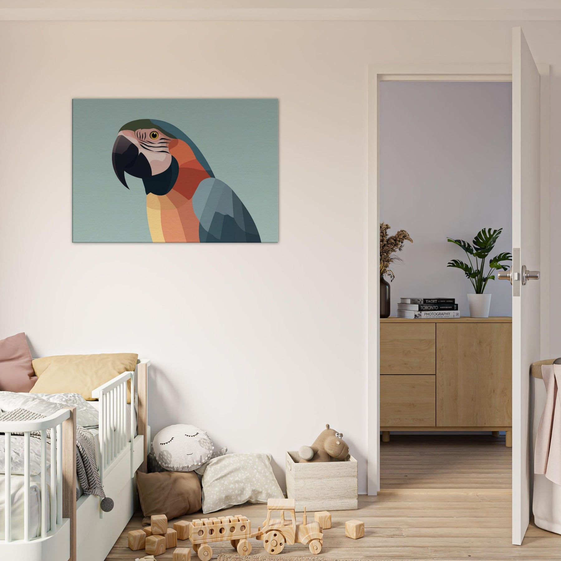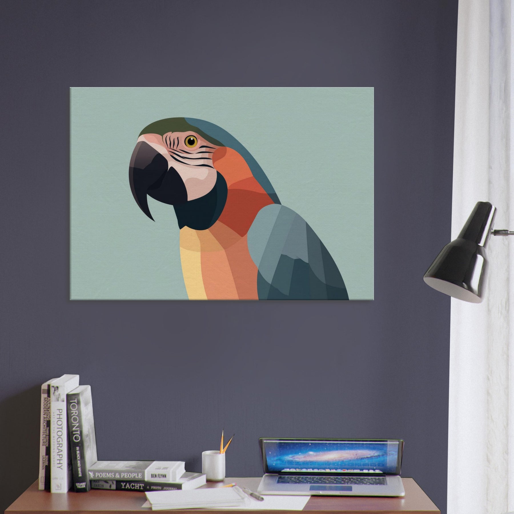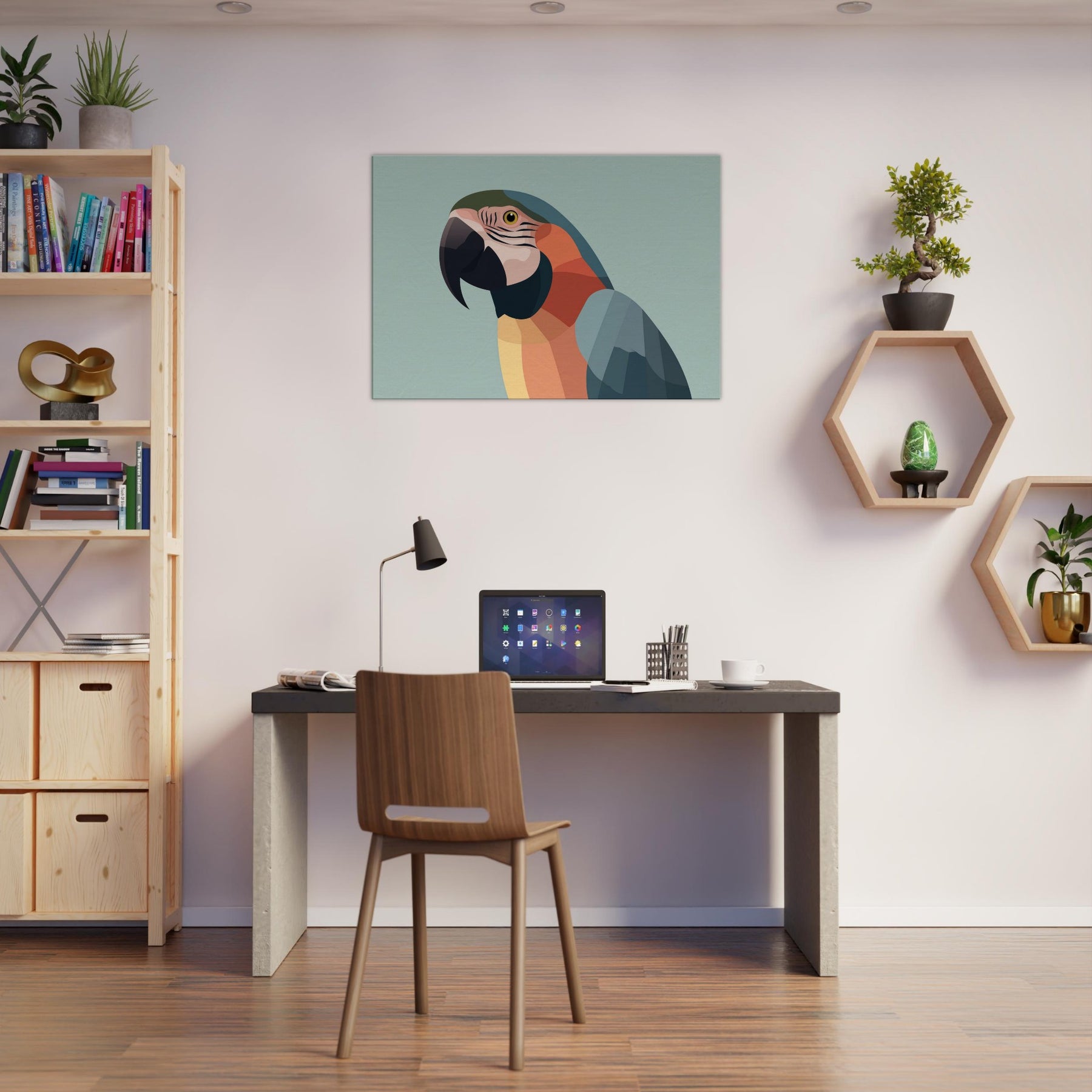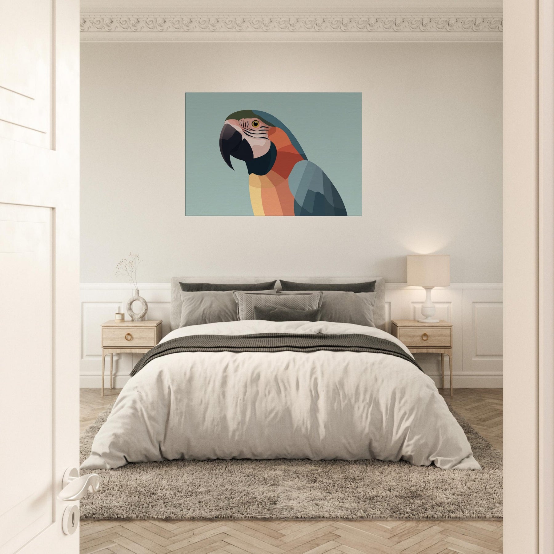 Invite a breath of calm into your living room with this minimalist Parrot print. The pared down palette and clean geometry evoke a sunlit afternoon where color blocks breathe and the bird's presence feels intimate yet unobtrusive. The Parrot's poised eye anchors the composition, while soft greens and warm terracotta hues wash across the wall, creating a tranquil atmosphere that enhances daily rituals coffee, conversation, quiet reading without shouting for attention.