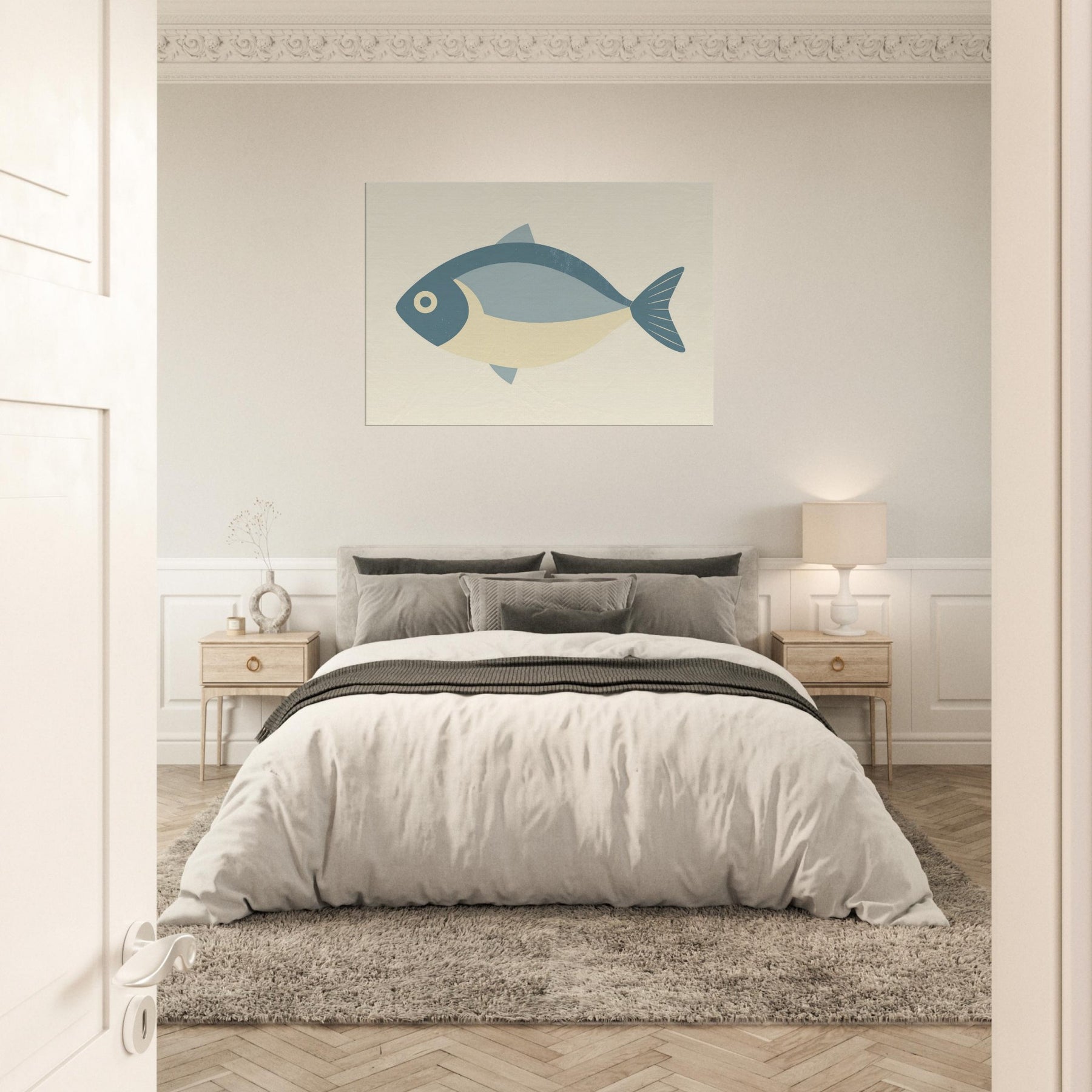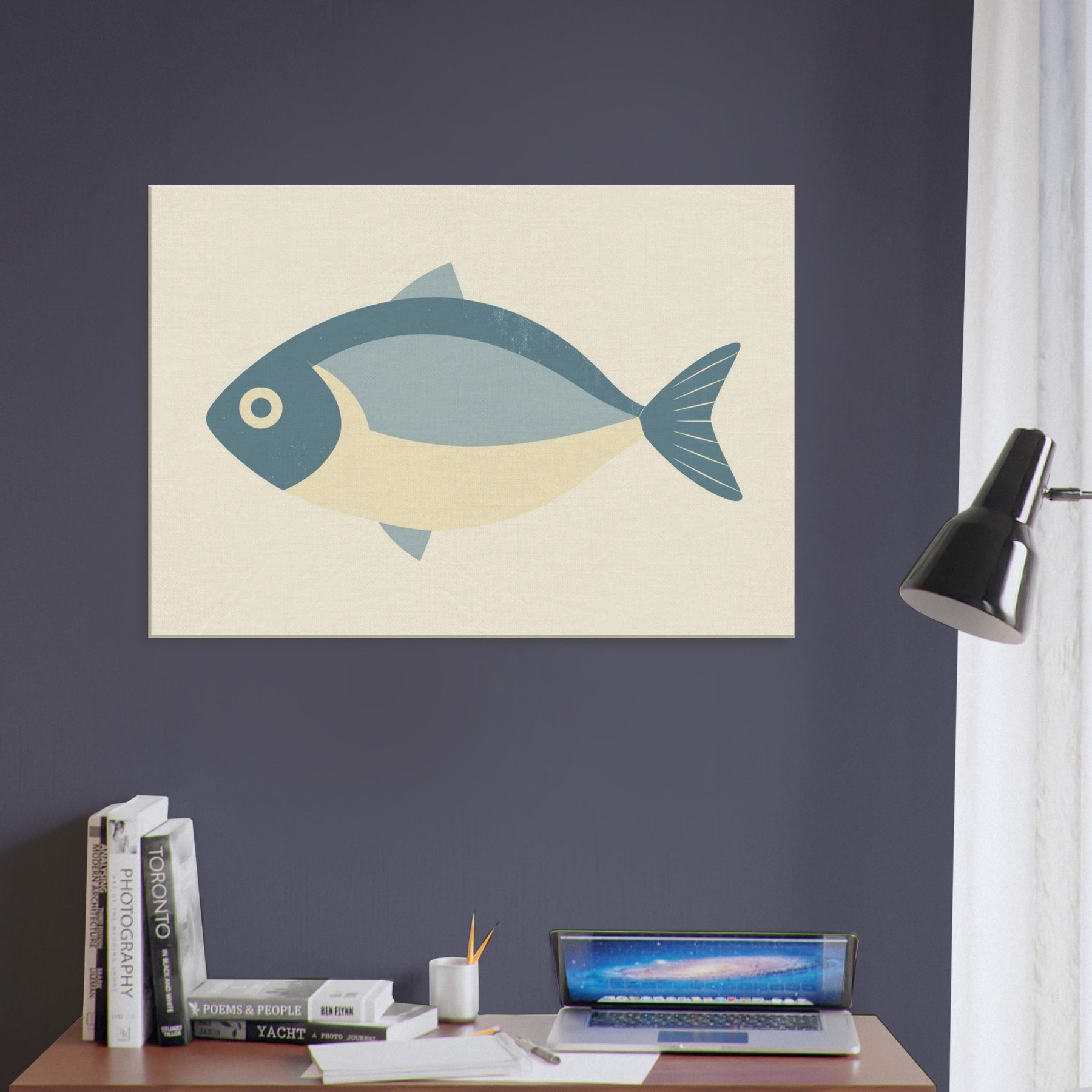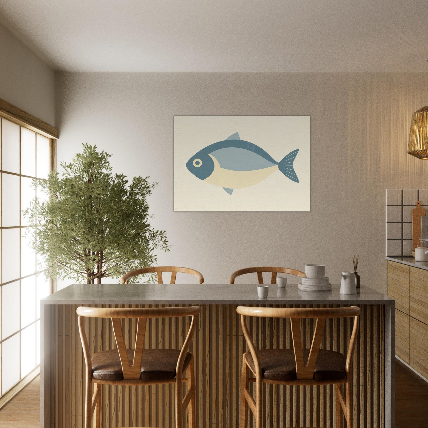 Float into a quiet reef of calm. This minimalist study of Tropical Fish distills motion to a gentle arc of blue and sunlit cream, where each shape breathes like a slow current. The subject glides with simplicity, inviting breath and balance into a room. Hung on a wall, its restrained palette casts soft, shifting shadows, turning everyday spaces into a serene shoreline. It pairs sophistication with warmth, elevating living rooms, bedrooms, or hallways with underwater grace.