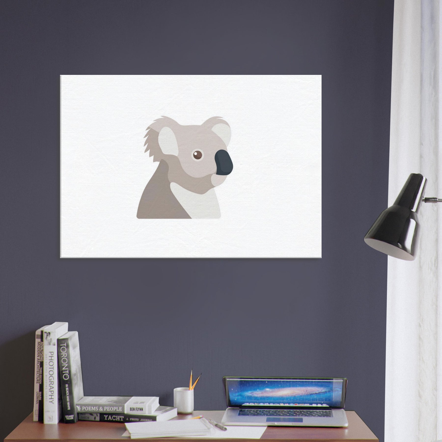 Whisper soft tones gather in this Koala study, where simple lines and tender shapes breathe calm into a room. The palette taupe, ivory, and a touch of charcoal evokes a quiet dawn, turning any wall into a refuge. Perfect for a living room or bedroom, this piece invites slow breaths, warm light, and thoughtful stillness. Let the Koala become a gentle companion at eye level, its unassuming presence enhancing modern furnishings with quiet elegance and a sense of spacious calm.