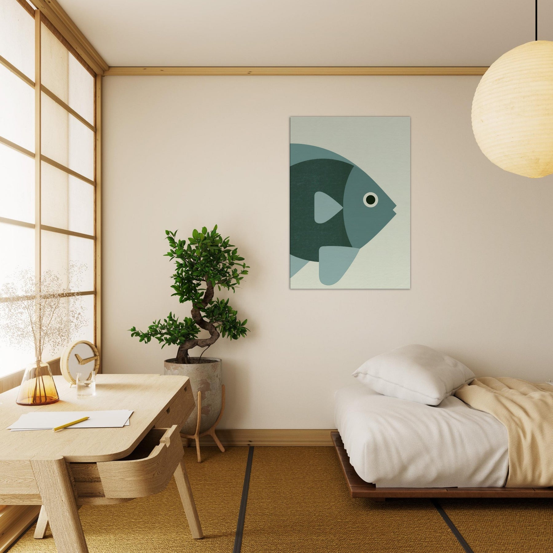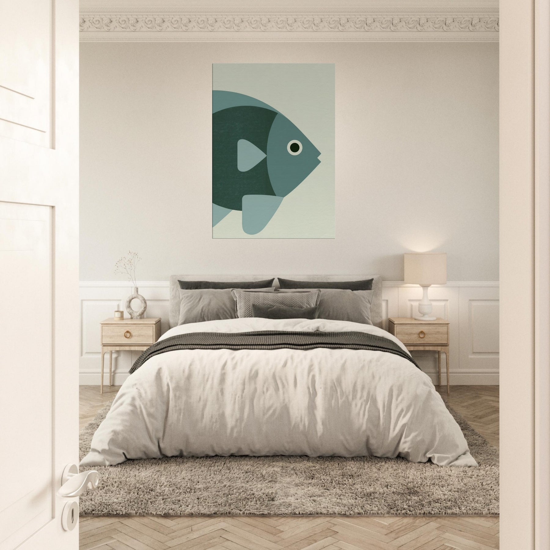 An airy meditation in restrained color, this piece captures the Tropical Fish with clean shapes and soft greens. The generous negative space creates a quiet current, inviting the eye to drift along the fins and curves. The minimalist forms glow with subtle warmth, turning any wall into a serene aquarium of understated elegance. Perfect for living rooms or bedrooms, it pairs with natural textures to evoke calm, clarity, and storytelling without loud detail.