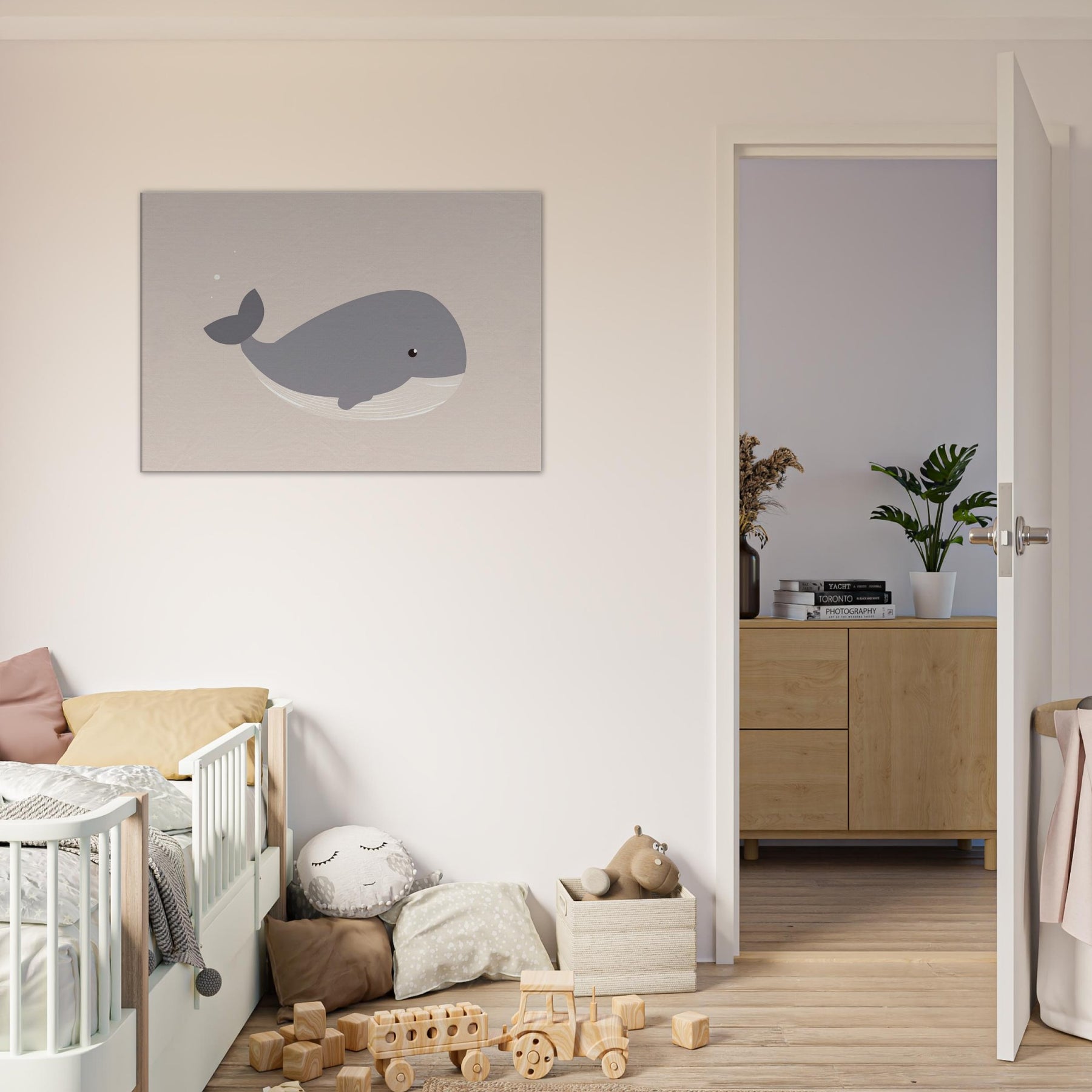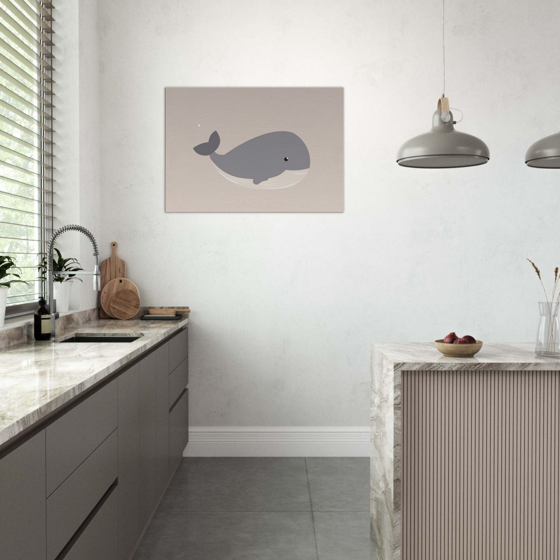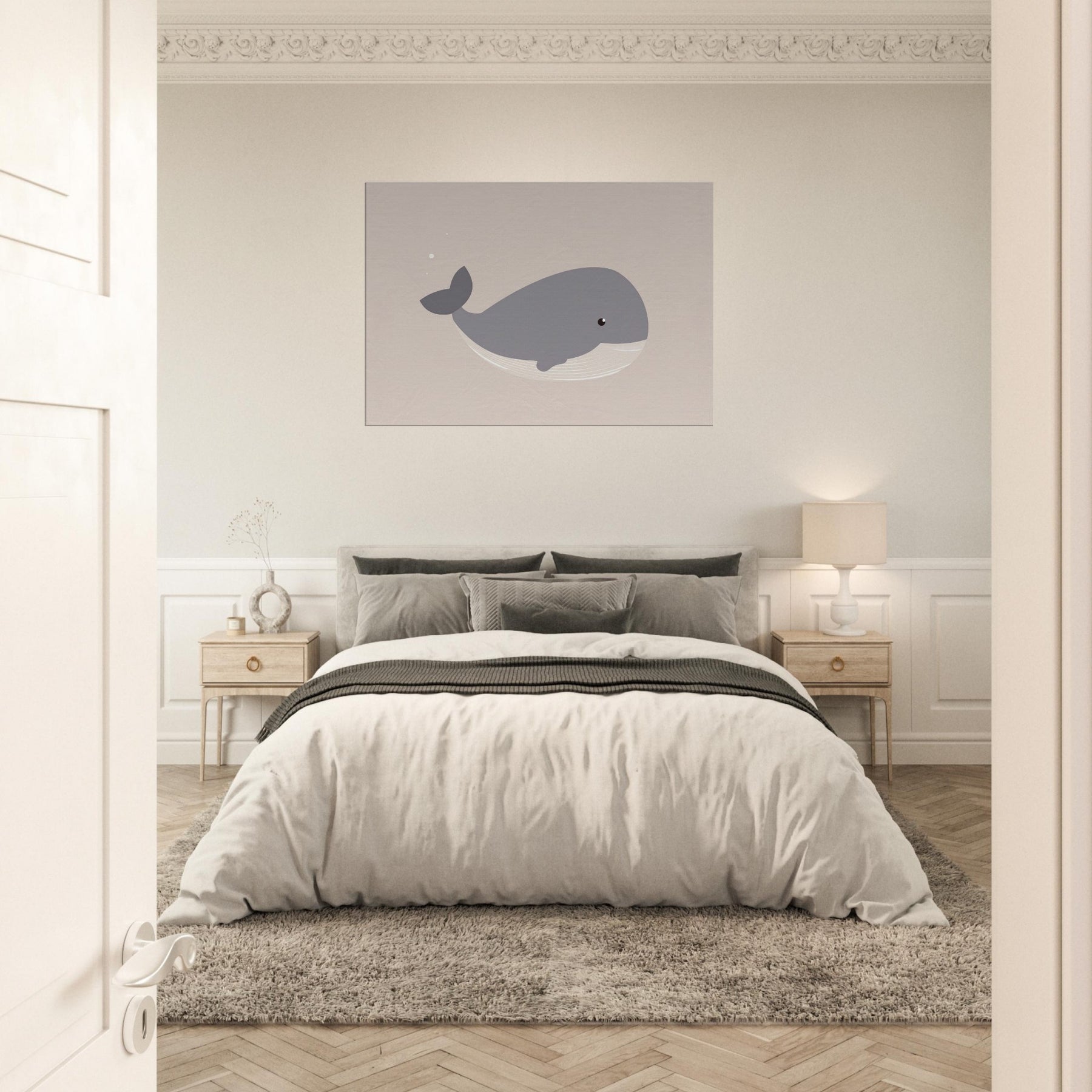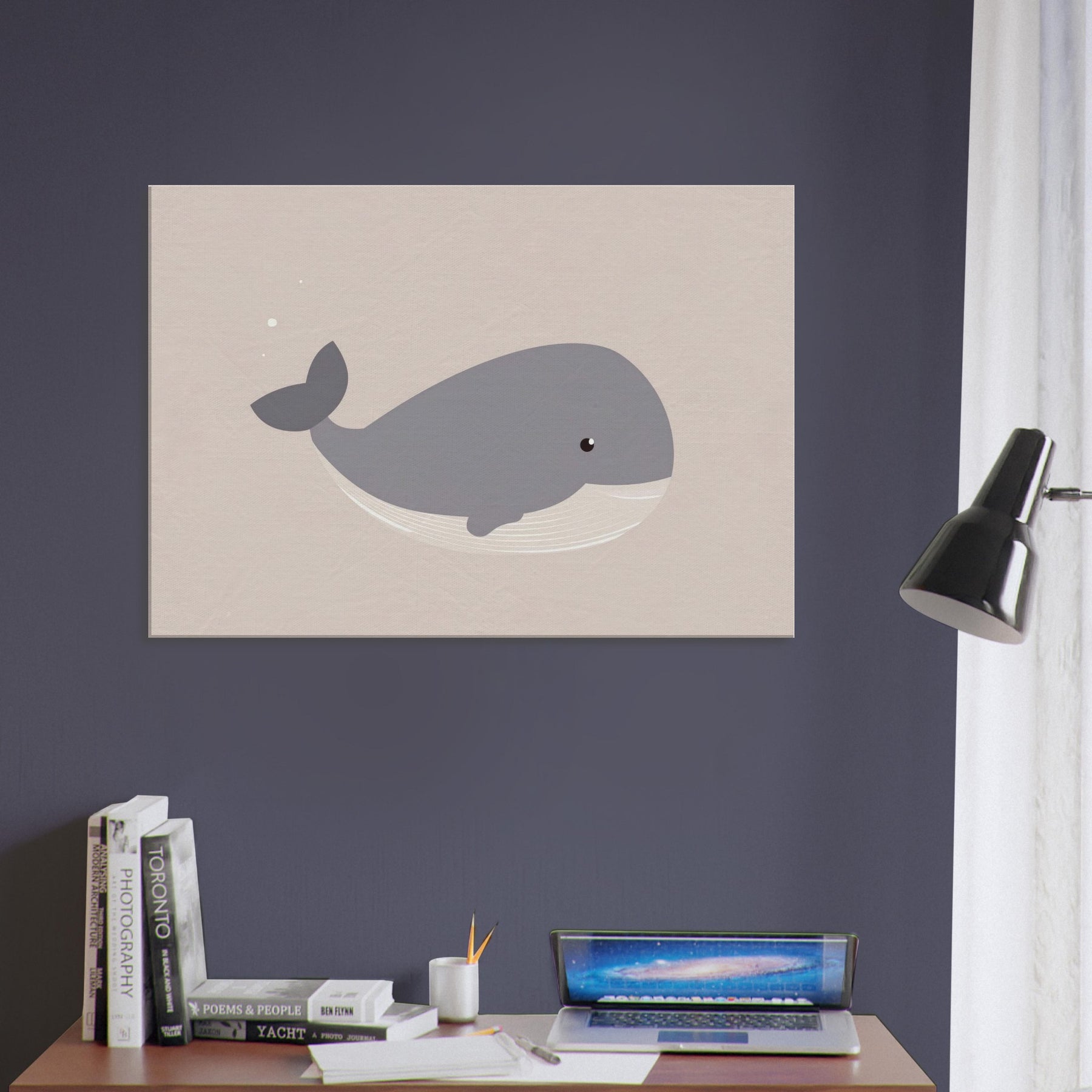 A soft, dusky gray Whale glides across a warm, sand toned canvas, where space and gesture speak in quiet breaths. The whale's rounded form and clean contours invite stillness, as if a gentle tide has paused to listen. This minimalist brings a serene anchor to any room soft light, tactile textures, and a sense of open horizon. Hang it above a sofa or bed to soften bold patterns and invite reflective, unhurried moments. It transforms walls into a calm harbor for everyday living.