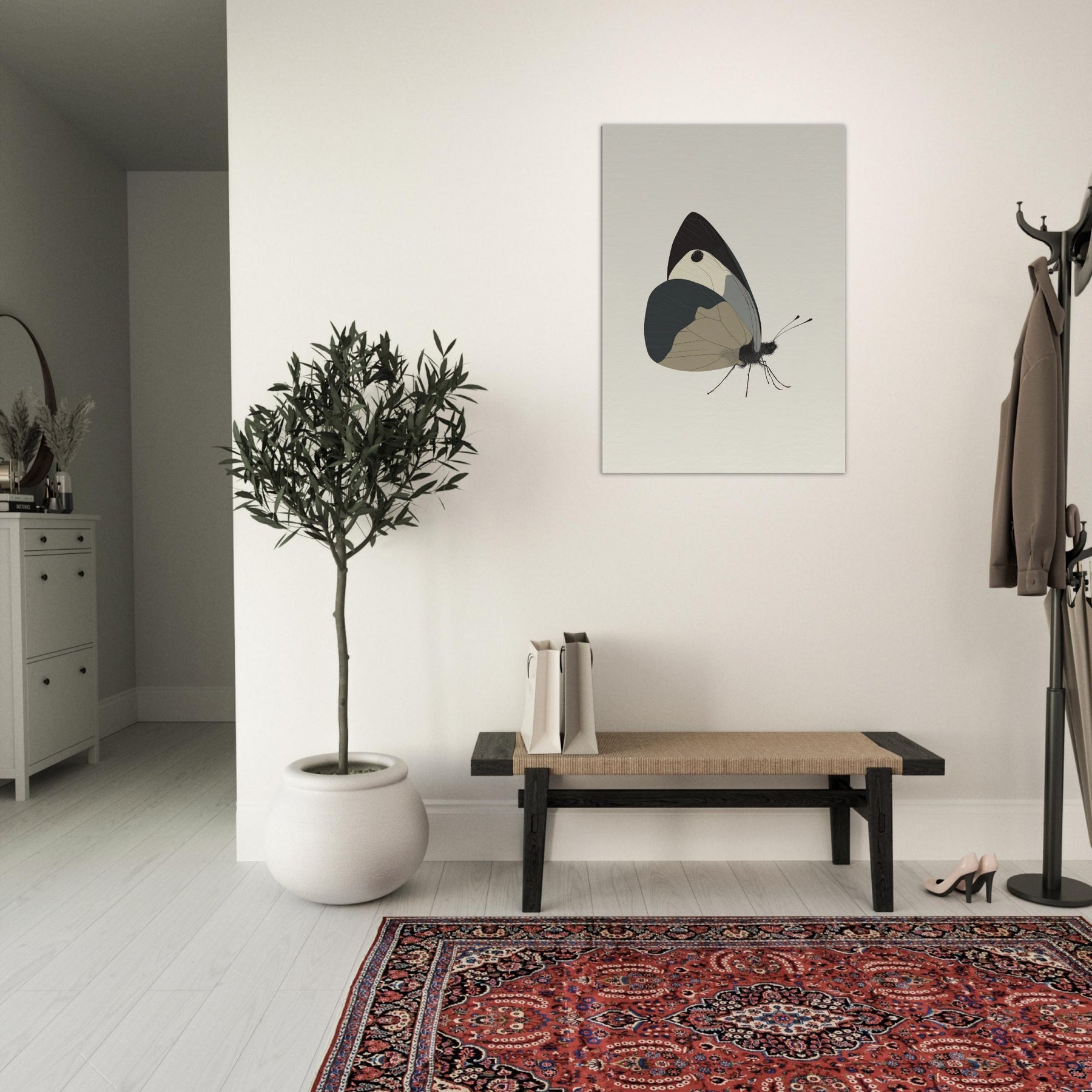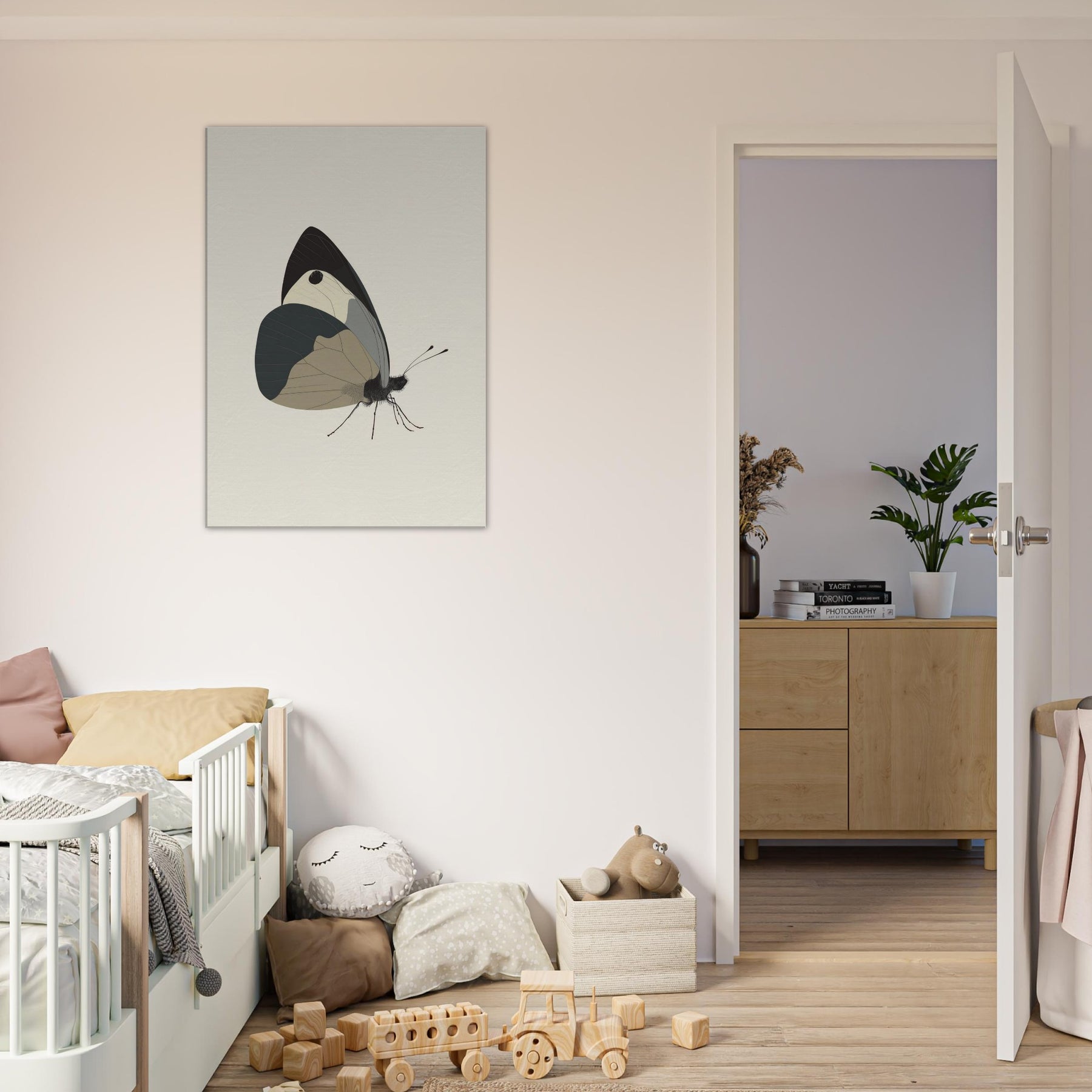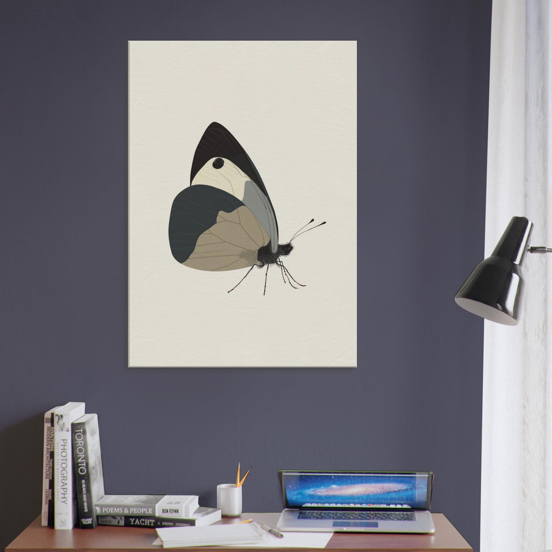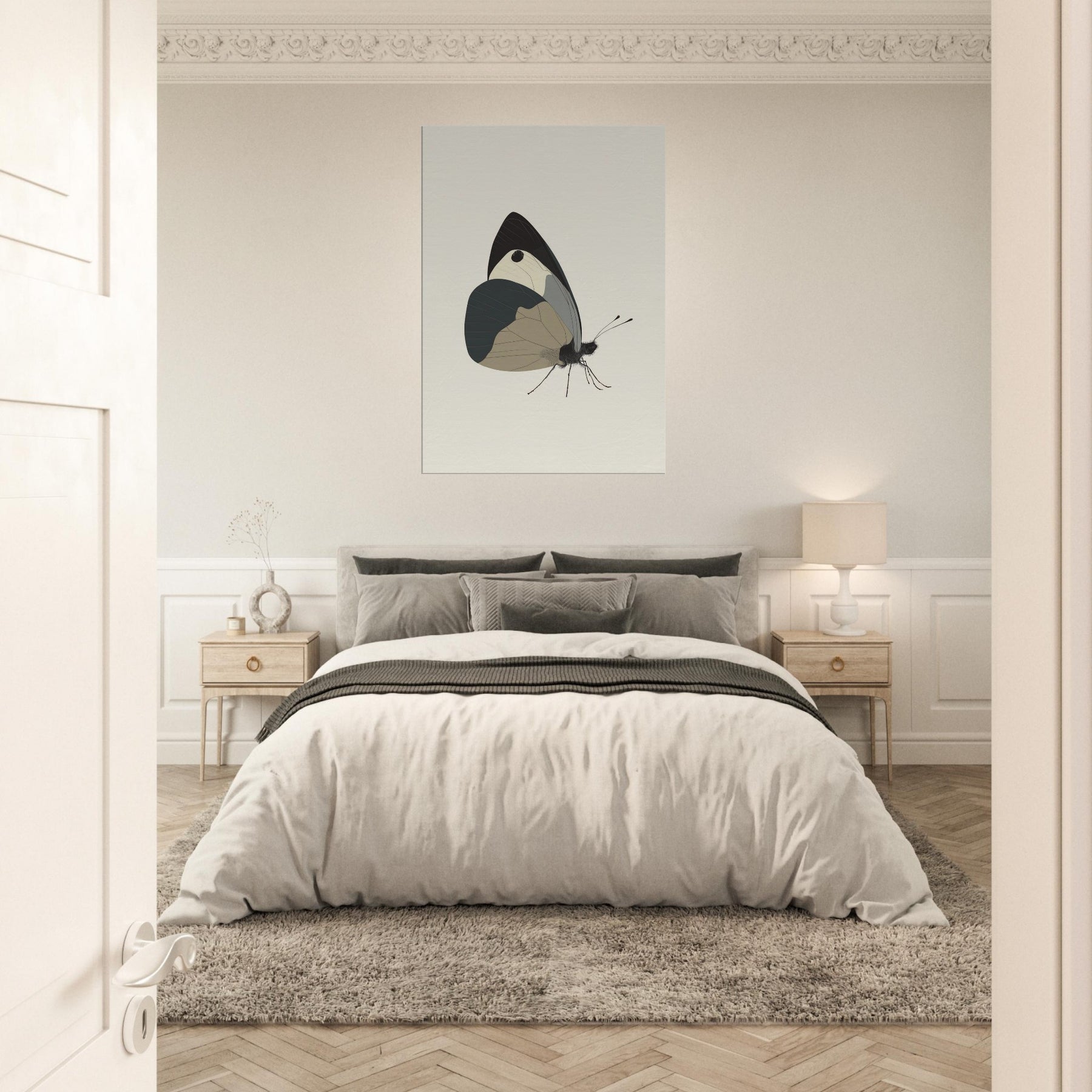 This minimalist Butterfly captures motion with a single, serene glance. Delicate lines contour the wings in muted taupe and charcoal, while soft ivory fields breathe calm into any room. The Butterfly seems to hover at the edge of perception, inviting quiet reflection and slow admiration. In a living space, its restrained elegance pairs with warm light and clean surfaces to soften edges and elevate mood. Perfect solo or among other calm works, it brings nature's quiet grace indoors.
