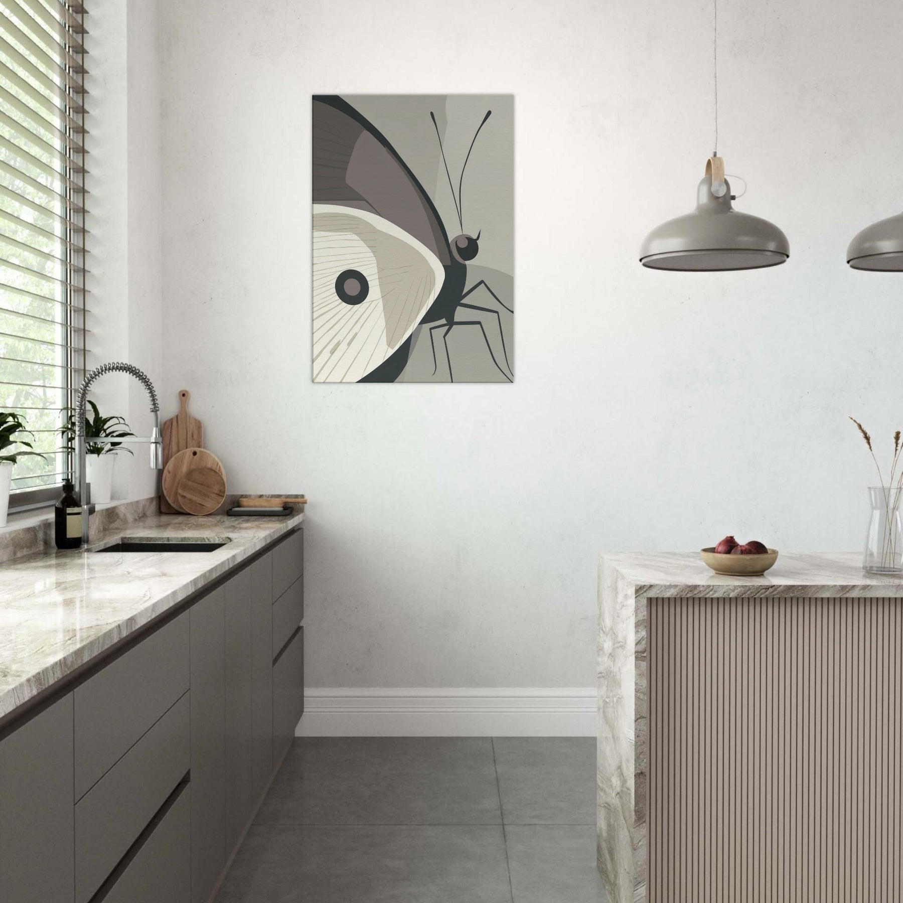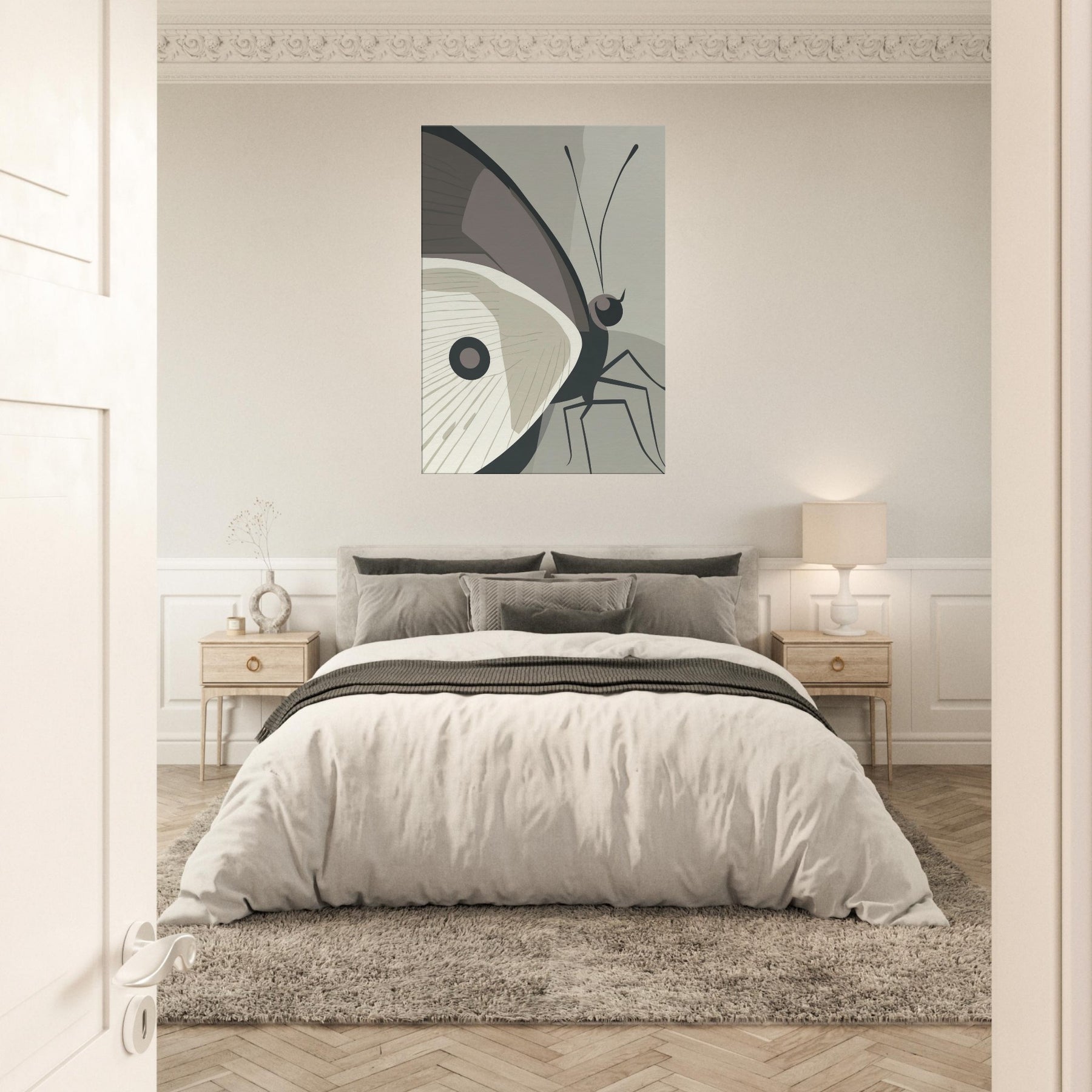 An intimate study of serenity, this butterfly inspired print invites the eye to rest on clean lines and soft tonal shifts. The subject (Butterfly) appears with quiet precision, its wings unfolding in a muted palette of ivory, taupe, and charcoal. Hang it in a living room or bedroom to conjure a moment of stillness, where light plays across the surface and breath slows. Subtle contrasts, gentle movement, and timeless balance make the space feel brighter, more expansive, and effortlessly elegant.