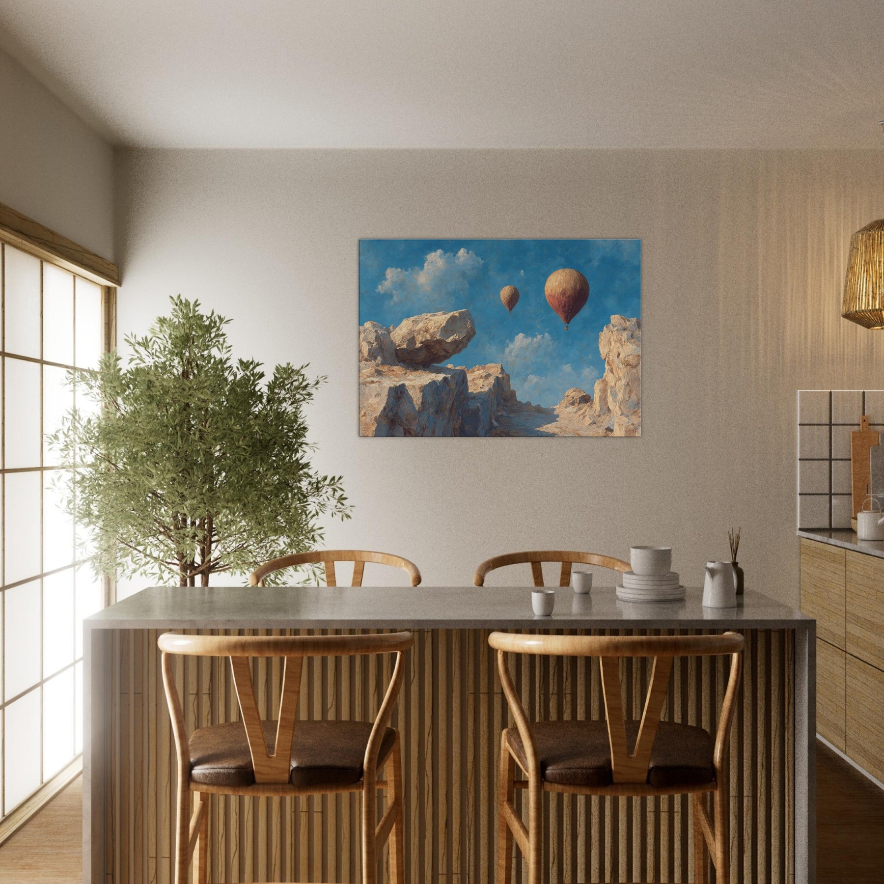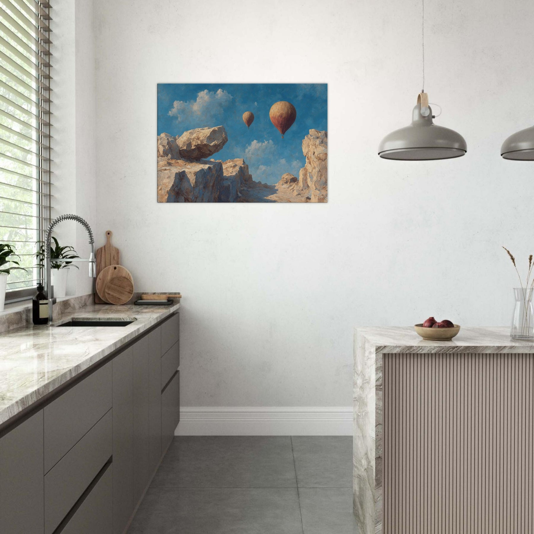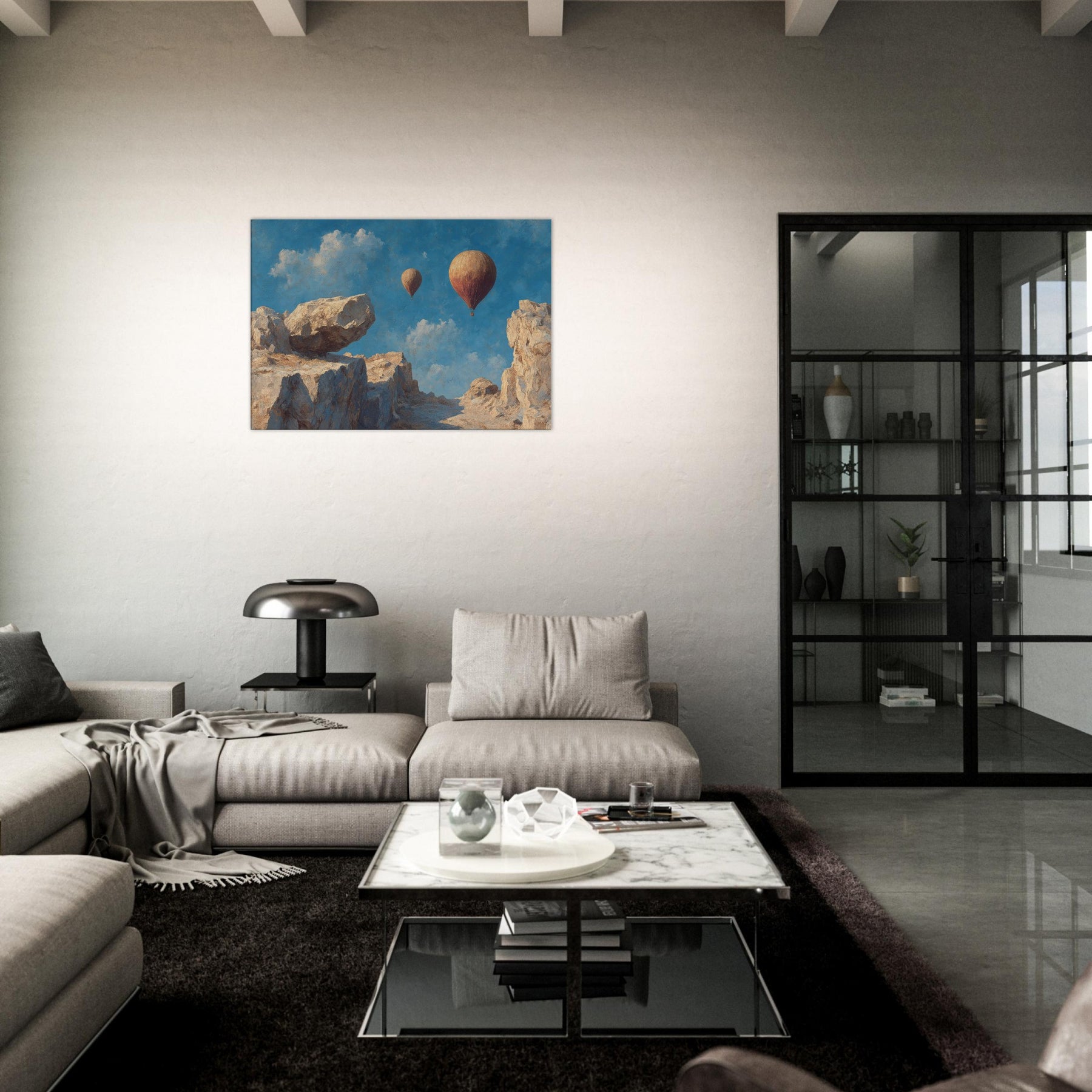 Like a dream sketched across a sunlit canyon, this piece invites the eye to wander the edge between how the earth holds its weight and how the sky releases it. The primary subject, Hot Air Balloons, floats above rugged cliffs in a hush of color, turning a natural scene into a gently surreal meditation. The atmosphere is cinematic: warm ochres, cool blues, and a whisper of wind that makes a living room feel spacious, contemplative, and alive.