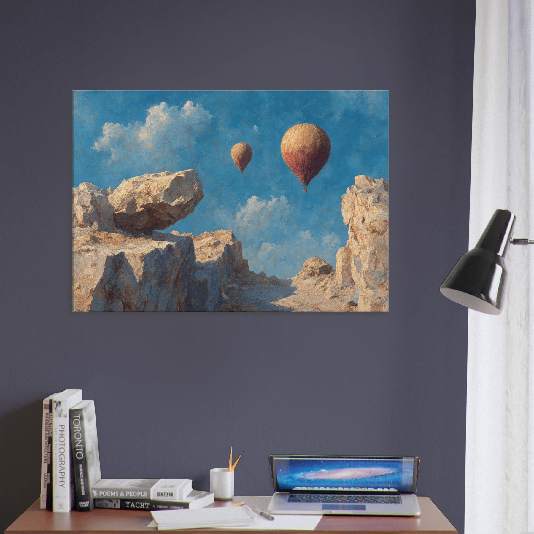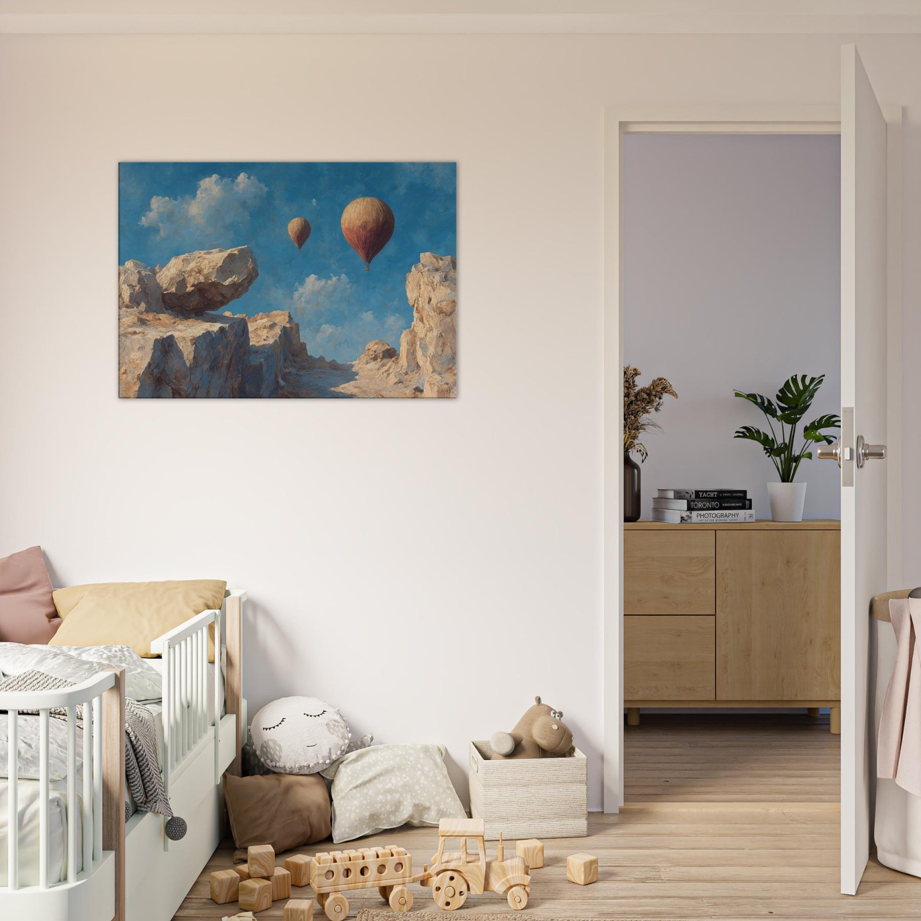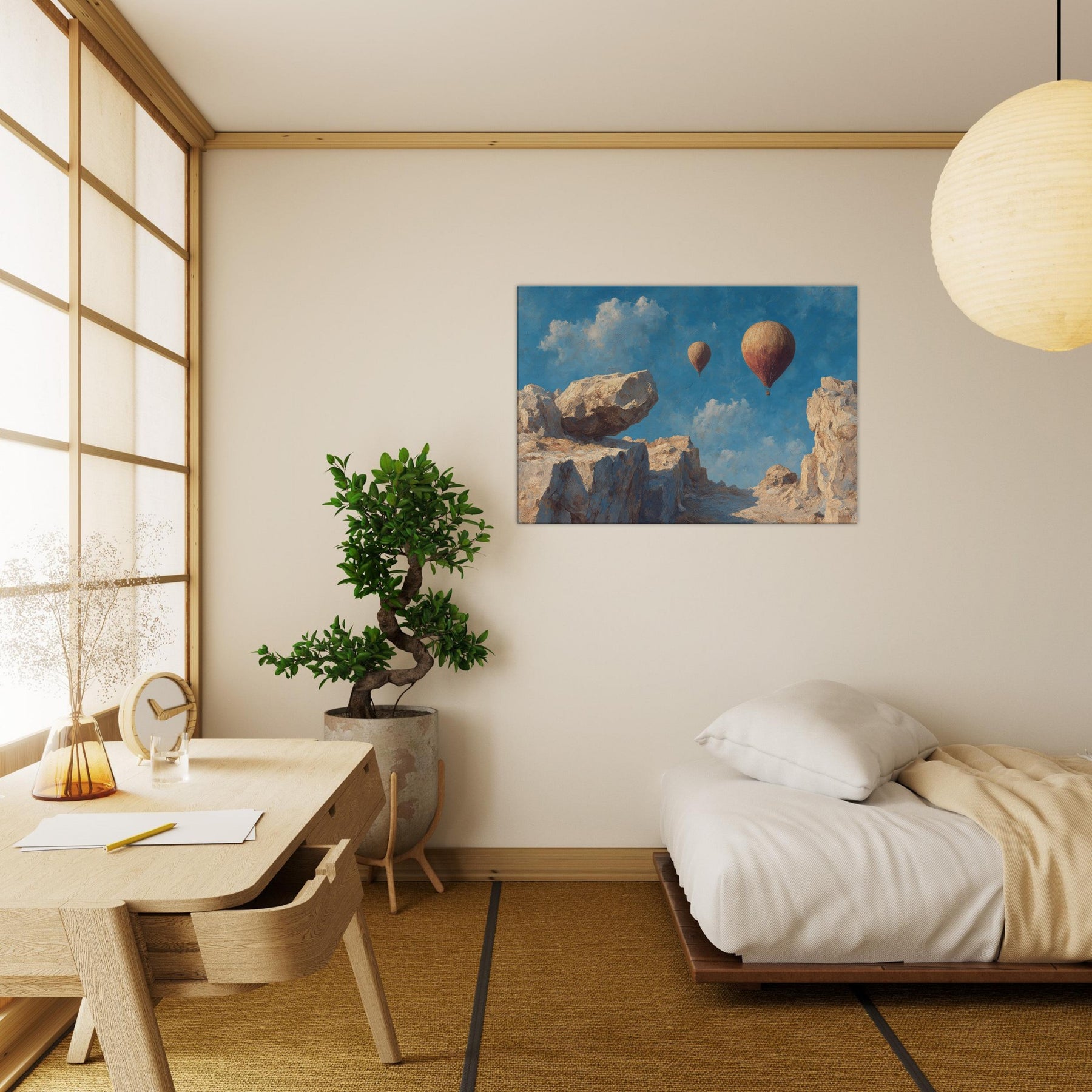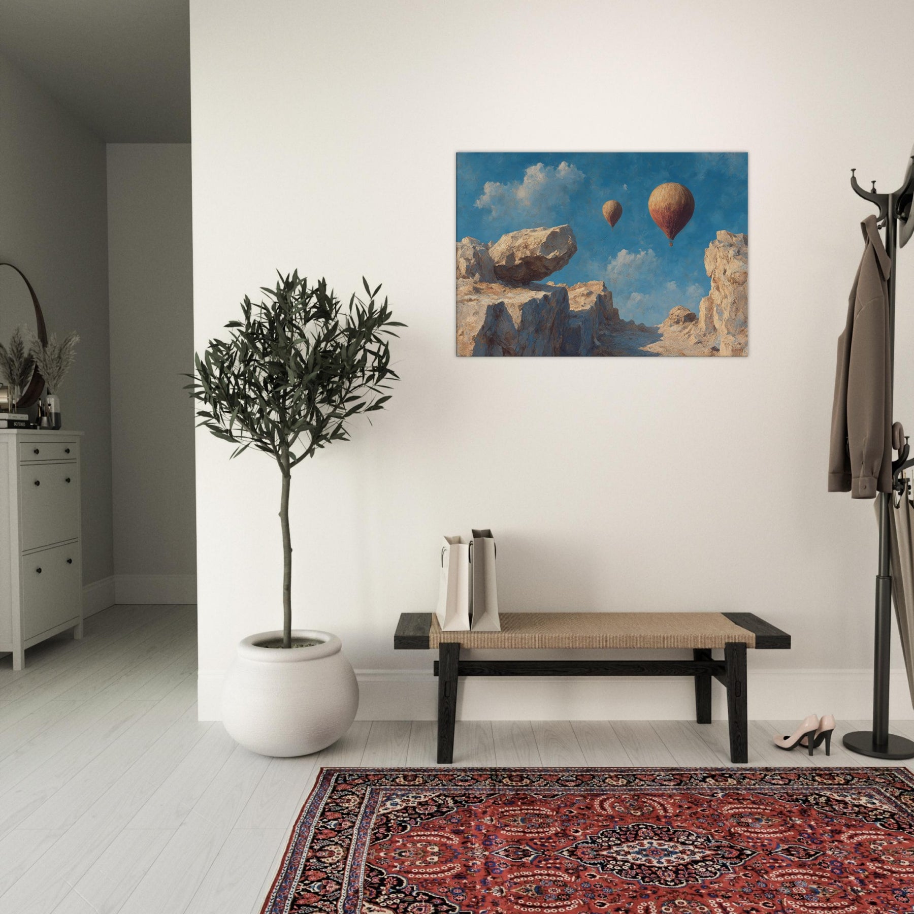 Like a dream sketched across a sunlit canyon, this piece invites the eye to wander the edge between how the earth holds its weight and how the sky releases it. The primary subject, Hot Air Balloons, floats above rugged cliffs in a hush of color, turning a natural scene into a gently surreal meditation. The atmosphere is cinematic: warm ochres, cool blues, and a whisper of wind that makes a living room feel spacious, contemplative, and alive.