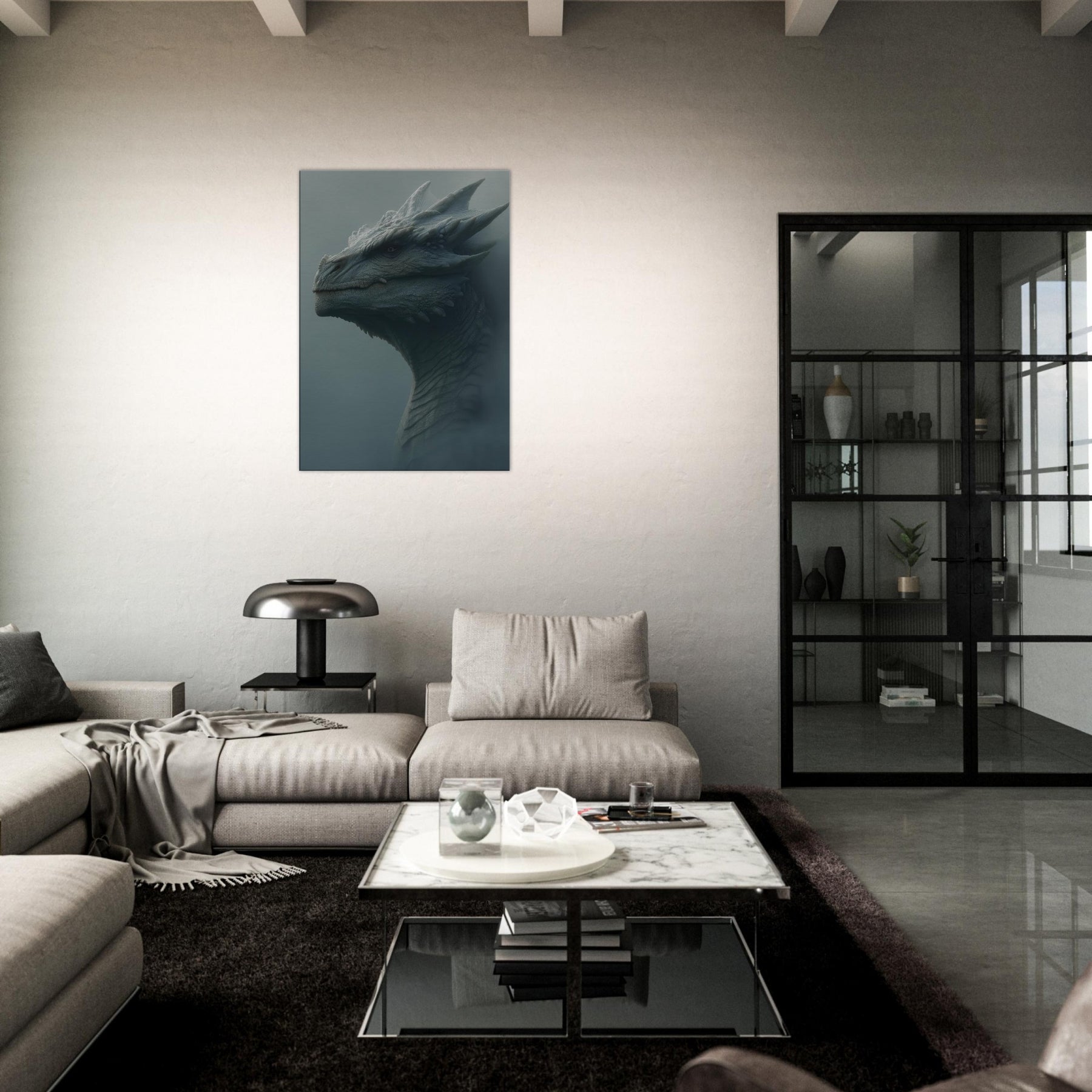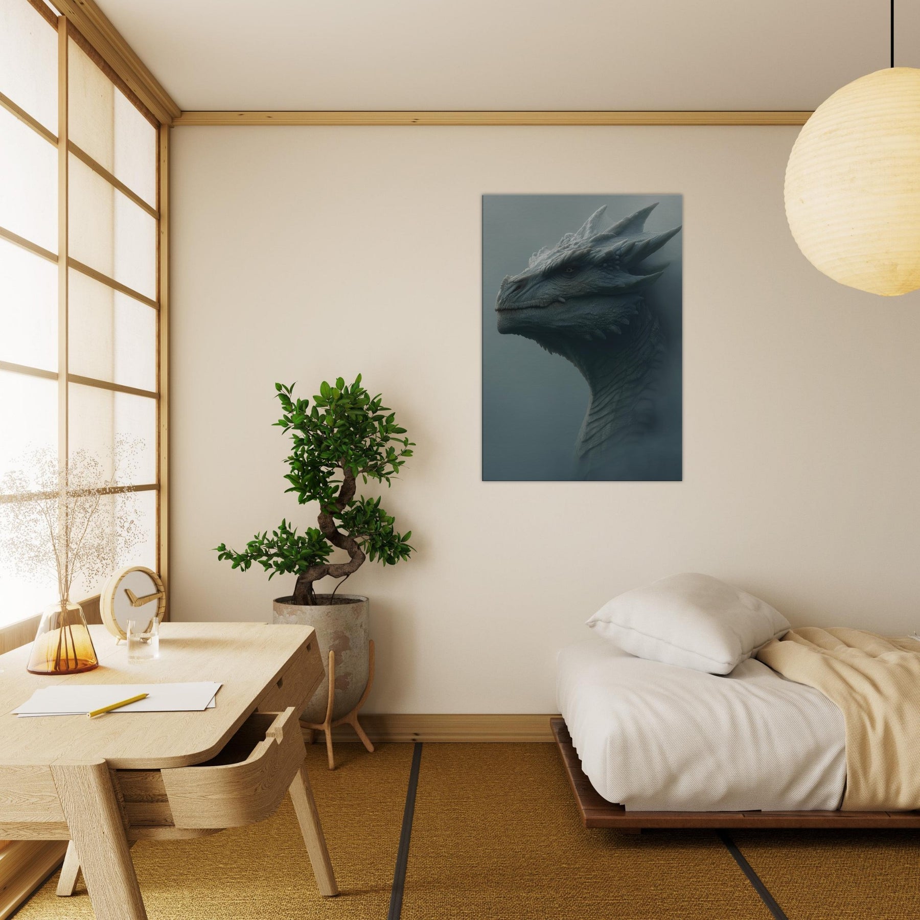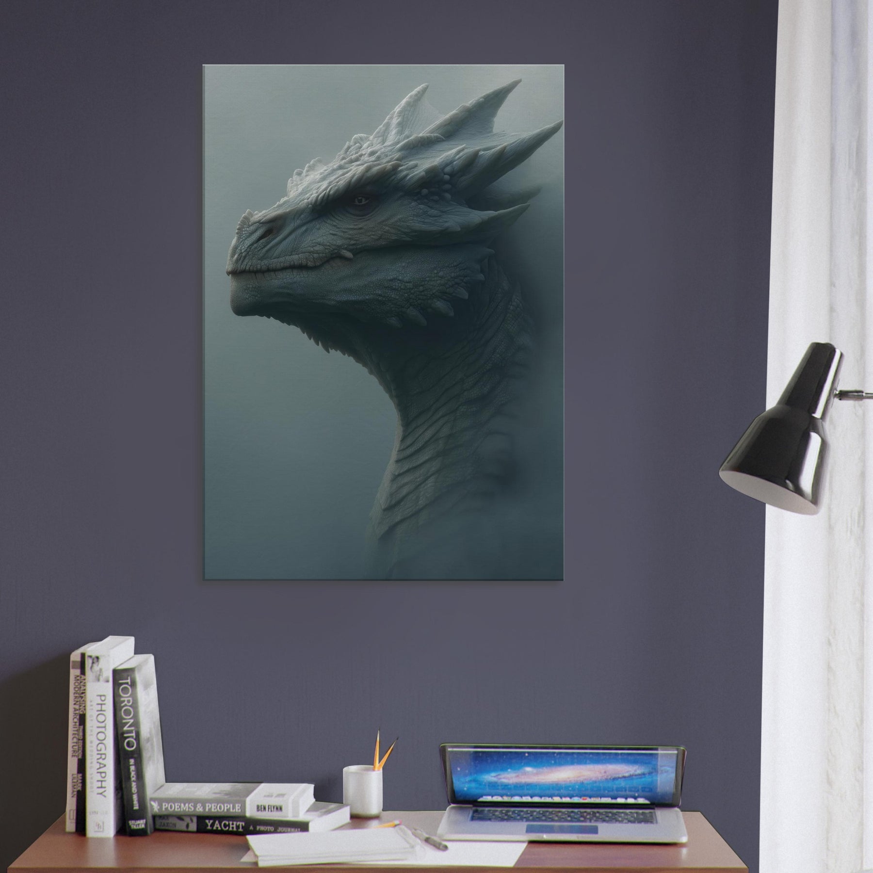Majestic Dragon rises from a fog lit dawn, a surreal sentinel whose scales gleam like frost on stone. The atmosphere breathes with quiet thunder, turning walls into a portal of myth and memory. Soft, sculptural textures invite fingertips and eyes to wander, while the muted palette evokes quiet power and timeless wonder. Place this piece in a living space to anchor moods of awe, imagination, and serene bravado, inviting conversation and a daily sense of adventure.