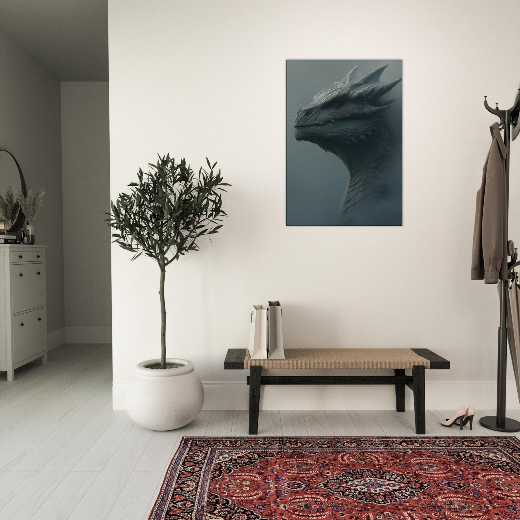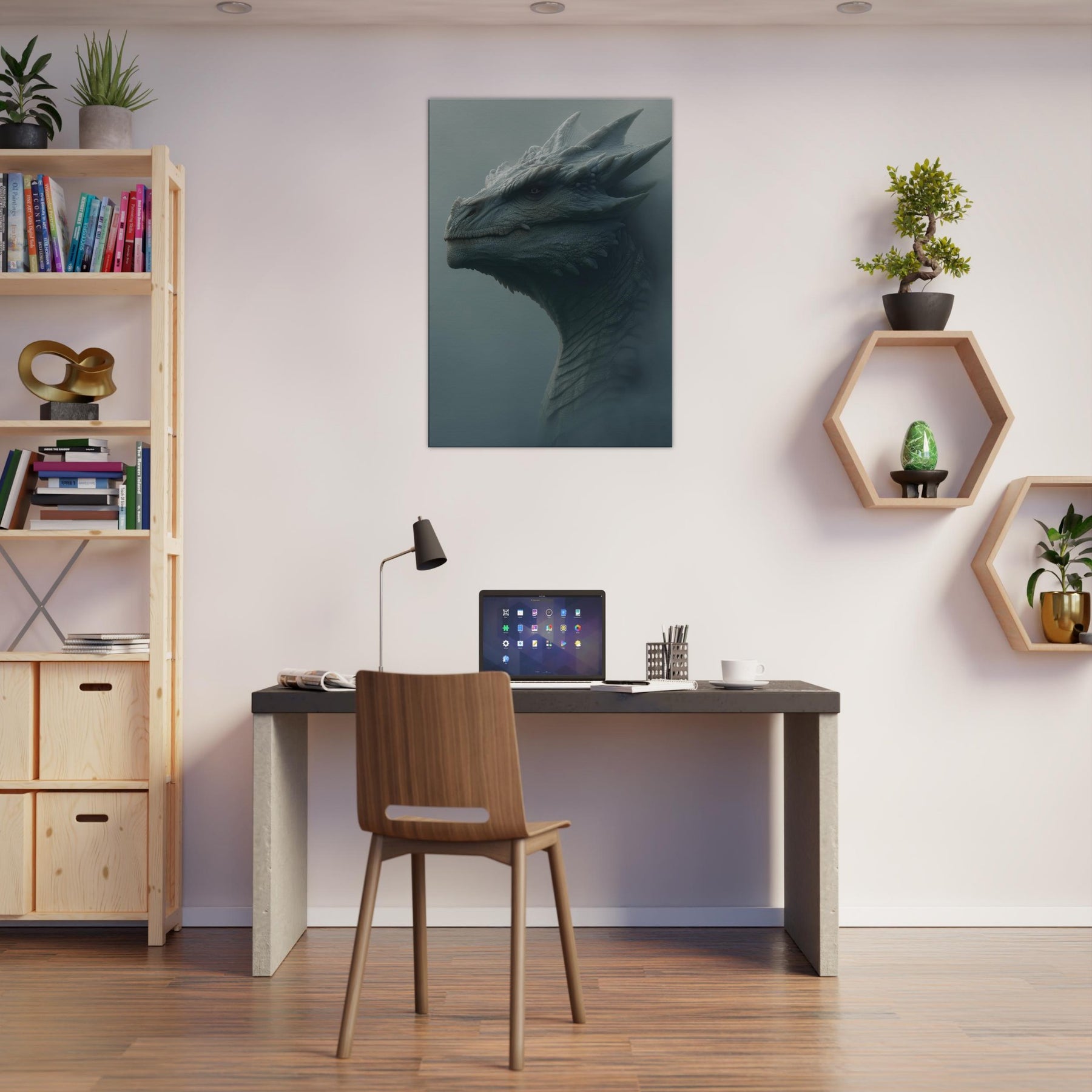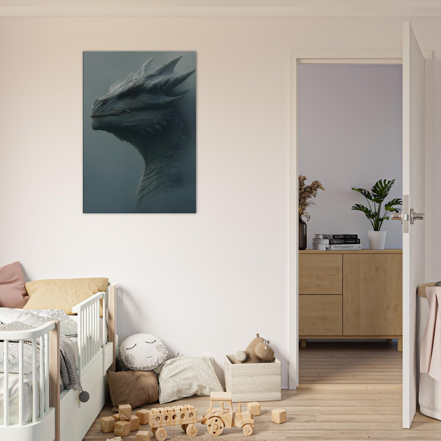 Majestic Dragon rises from a fog lit dawn, a surreal sentinel whose scales gleam like frost on stone. The atmosphere breathes with quiet thunder, turning walls into a portal of myth and memory. Soft, sculptural textures invite fingertips and eyes to wander, while the muted palette evokes quiet power and timeless wonder. Place this piece in a living space to anchor moods of awe, imagination, and serene bravado, inviting conversation and a daily sense of adventure.