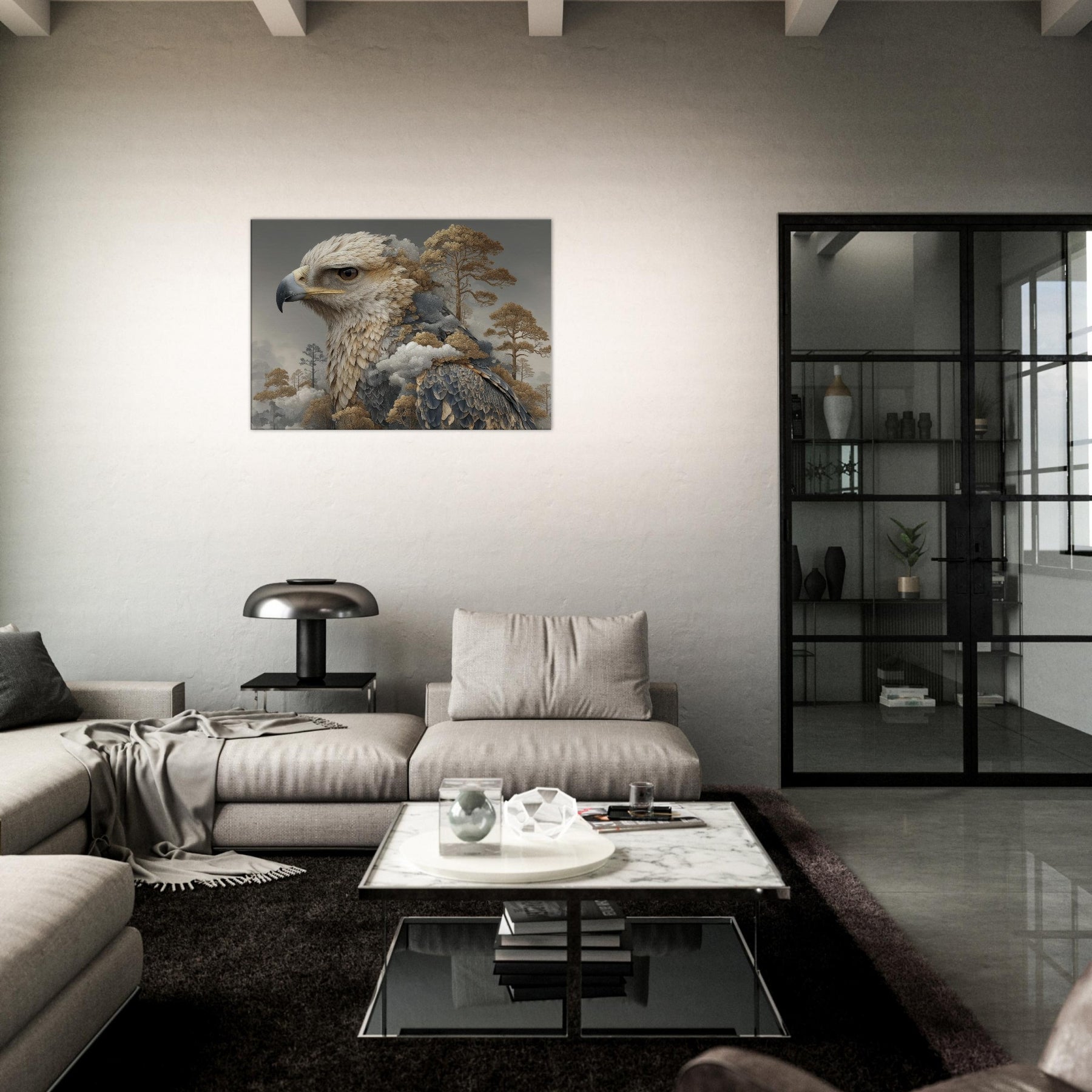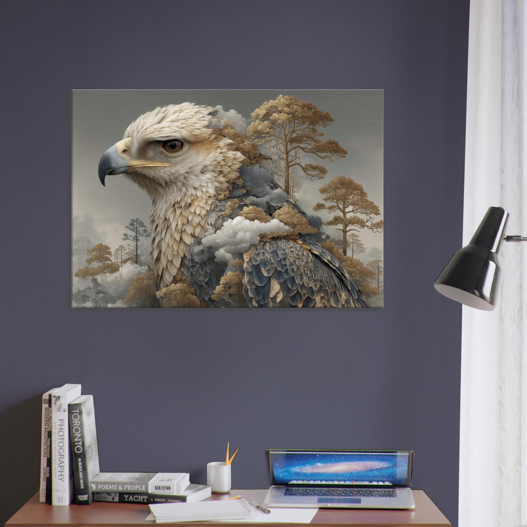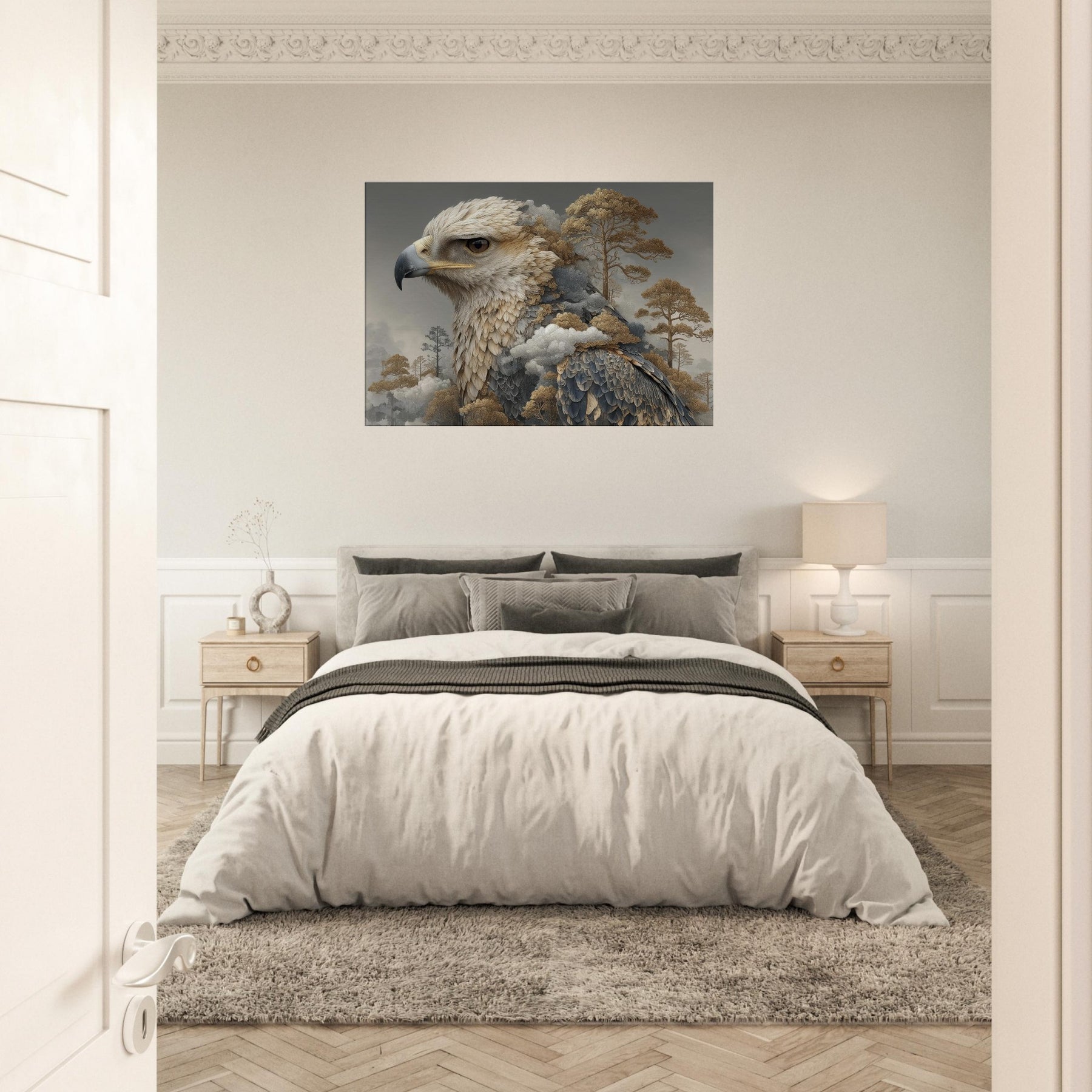 Where wind and wonder meet, this surreal composition casts the Eagle as a living emblem, its plumage dissolving into mist and cloud, while bronze toned trees rise like sentinels. The scene hums with quiet drama, inviting a room to breathe and dream: a focal point that feels both timeless and intimate. Printed in lush detail, it anchors a living space with tactile depth, inviting conversation and a slow, meditative pace.