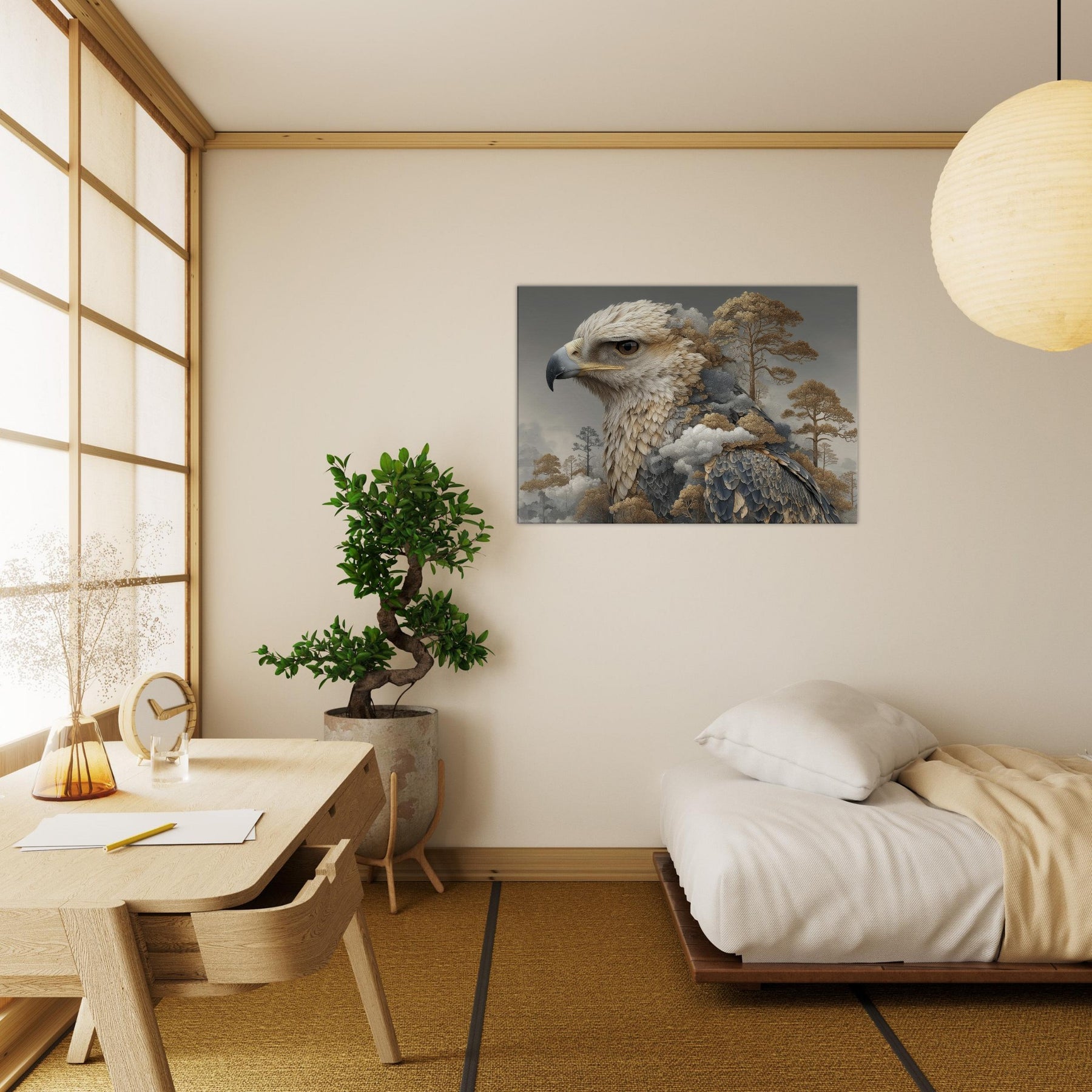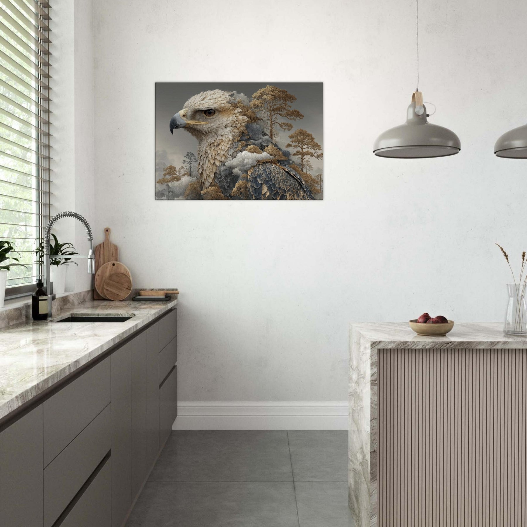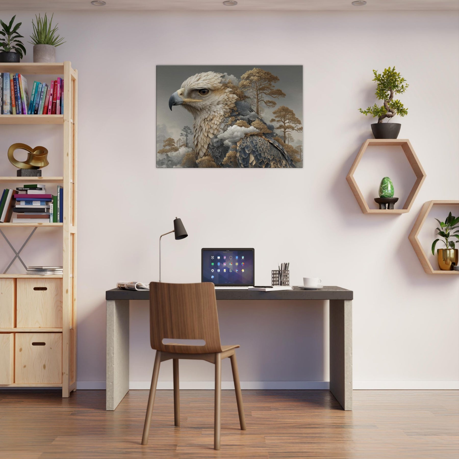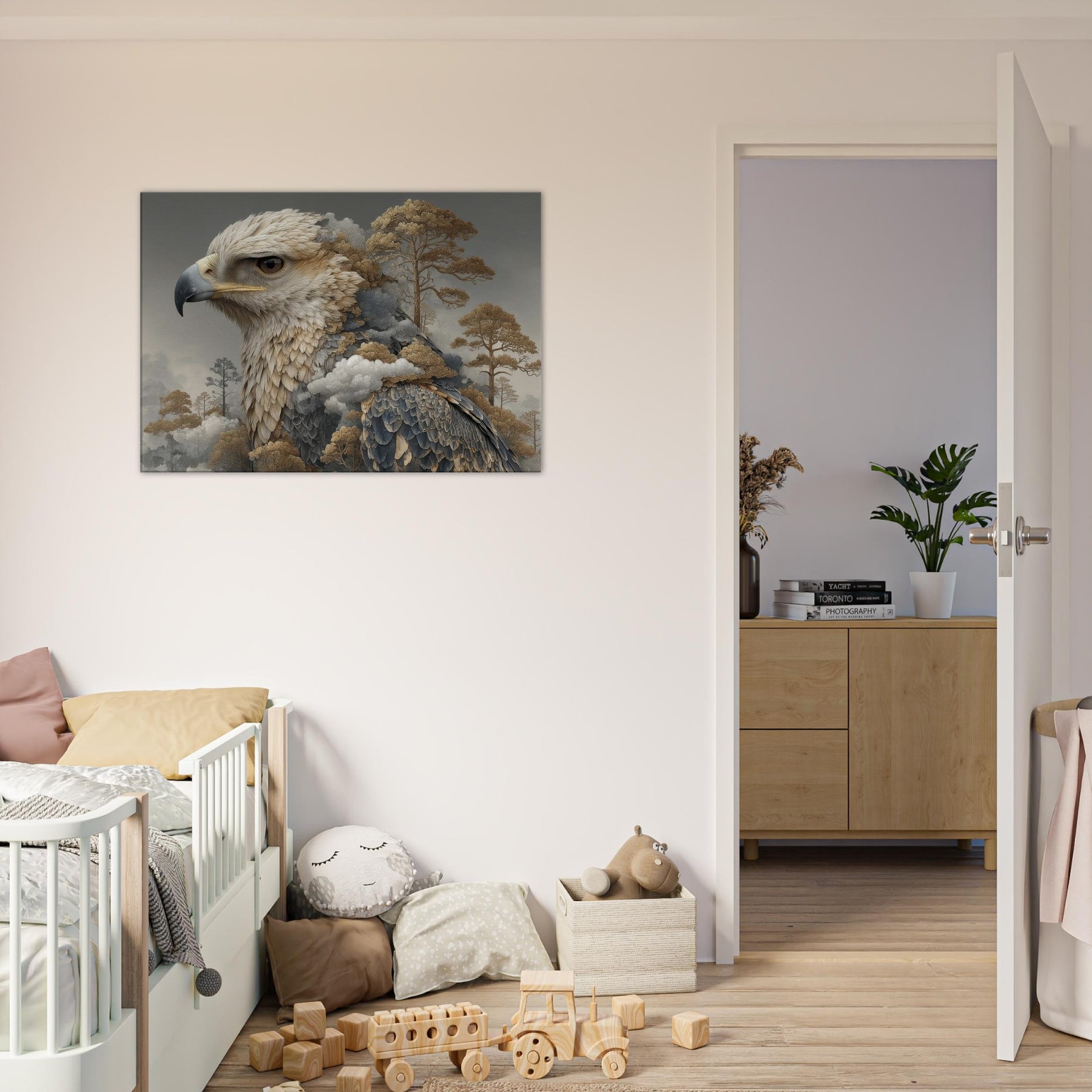 Where wind and wonder meet, this surreal composition casts the Eagle as a living emblem, its plumage dissolving into mist and cloud, while bronze toned trees rise like sentinels. The scene hums with quiet drama, inviting a room to breathe and dream: a focal point that feels both timeless and intimate. Printed in lush detail, it anchors a living space with tactile depth, inviting conversation and a slow, meditative pace.