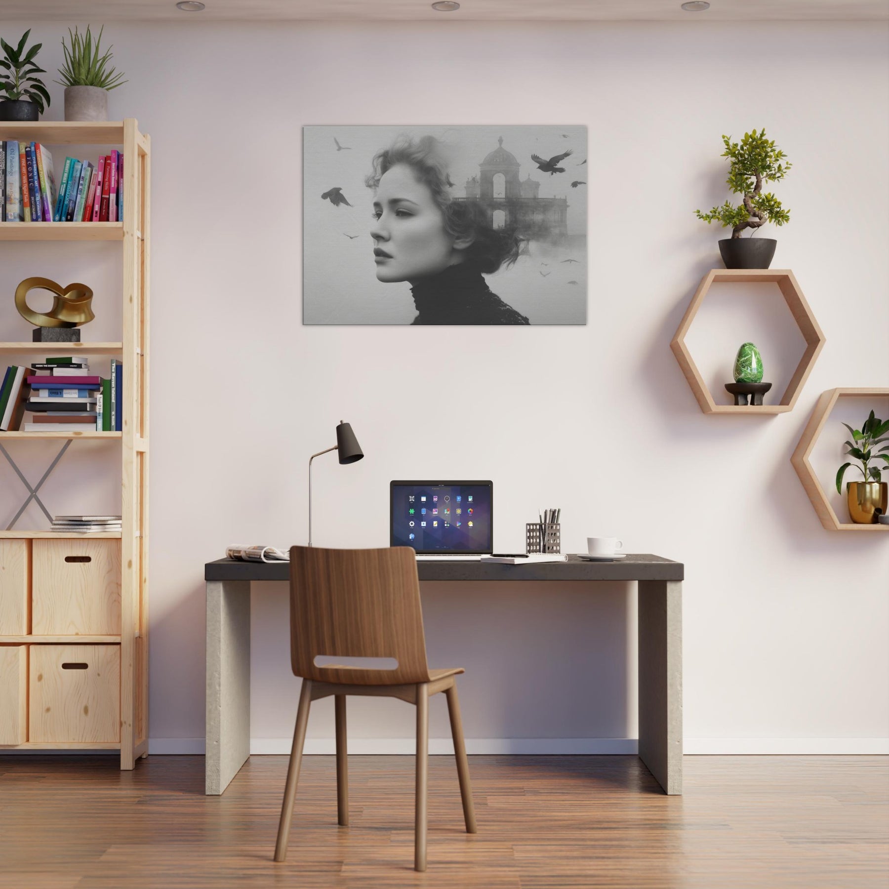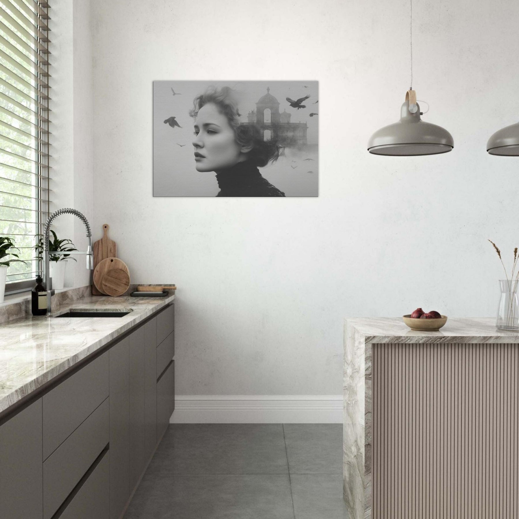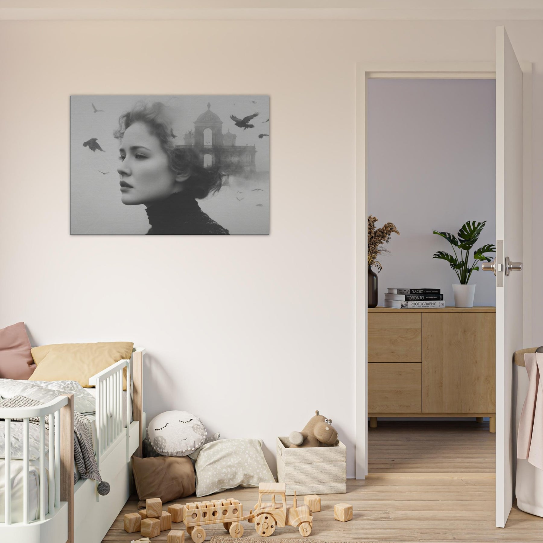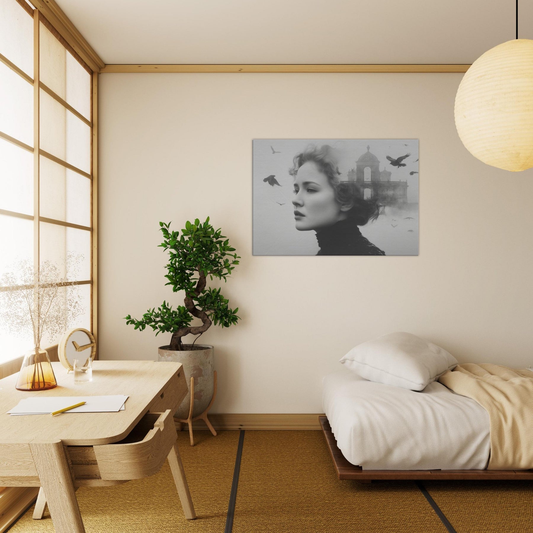 Mist wraps a poised European Woman in a hush of memory and wind. Surrounded by a ghostly arch and flocking crows, the scene dissolves the line between sitter and place, inviting quiet contemplation. Printed on archival fine art paper, the image carries a subtle, cinematic glow that enriches a living room or study with ethereal atmosphere. Ideal for spaces craving introspection, romance, and otherworldly grace, it becomes a focal point for conversation and reflection.