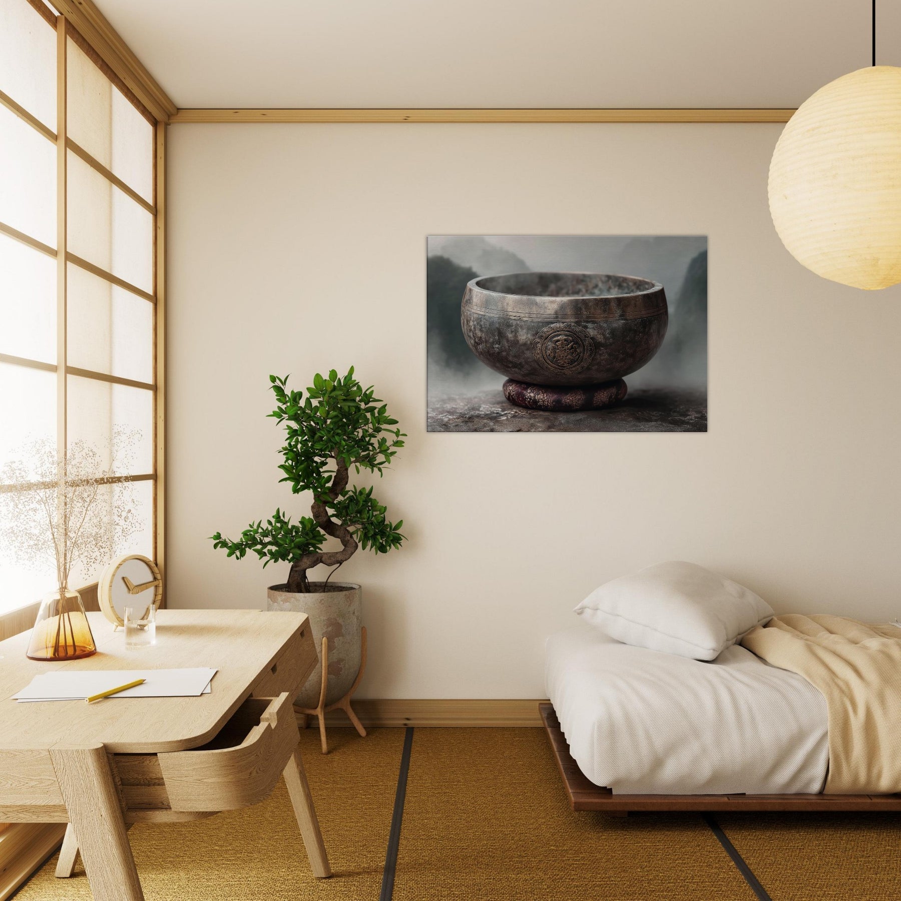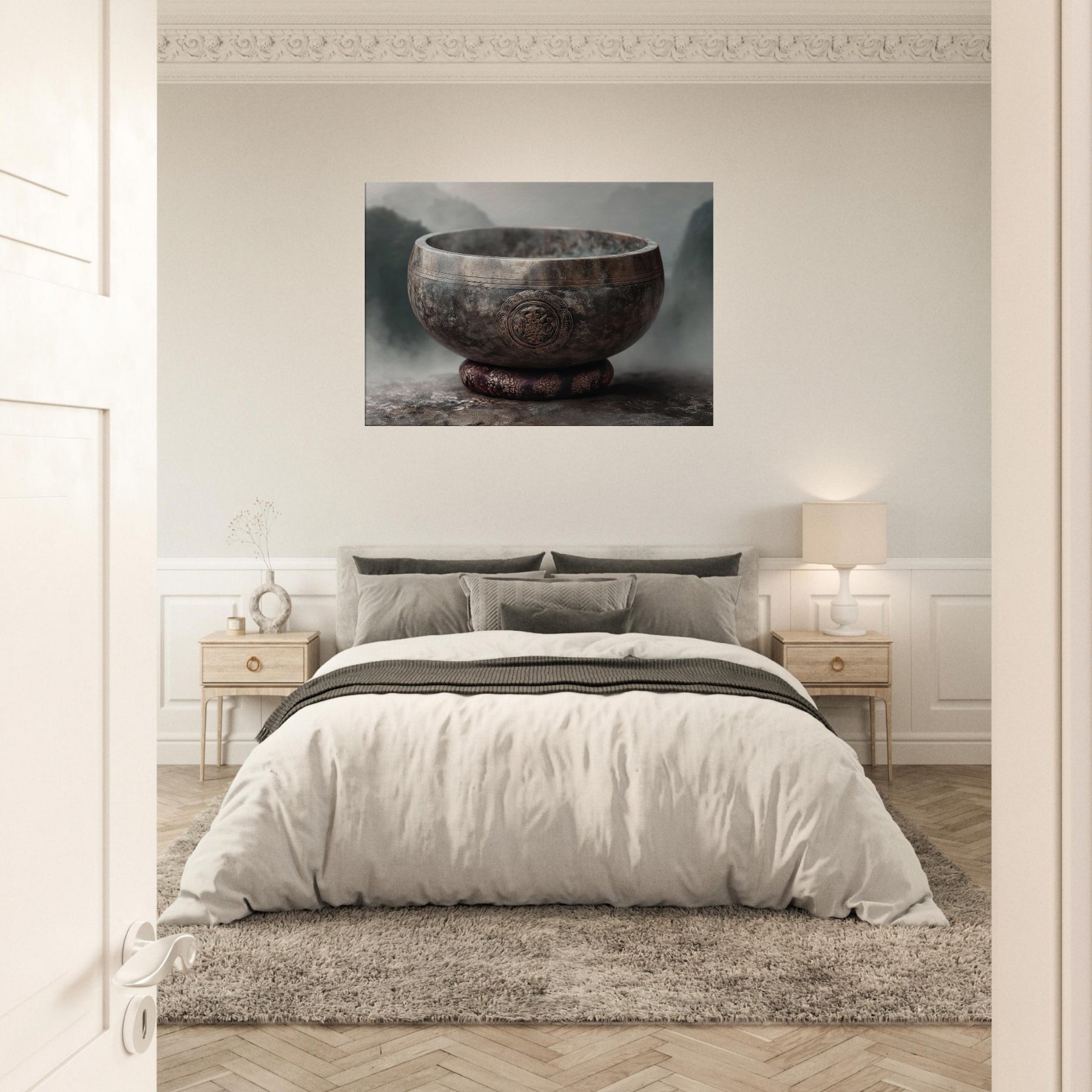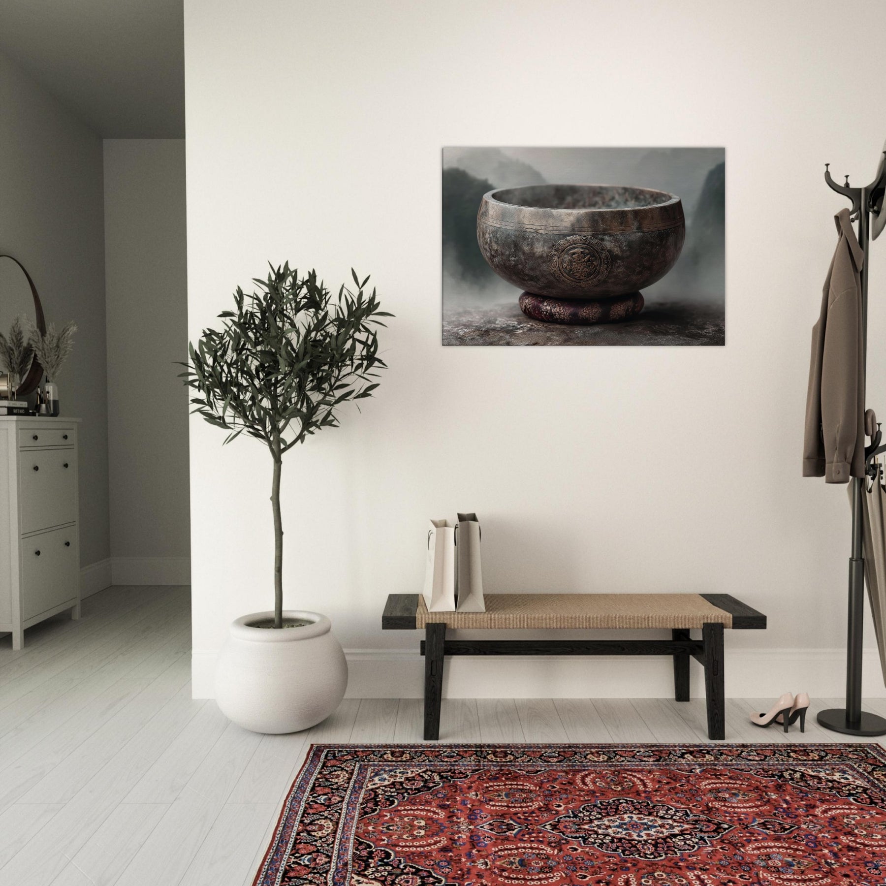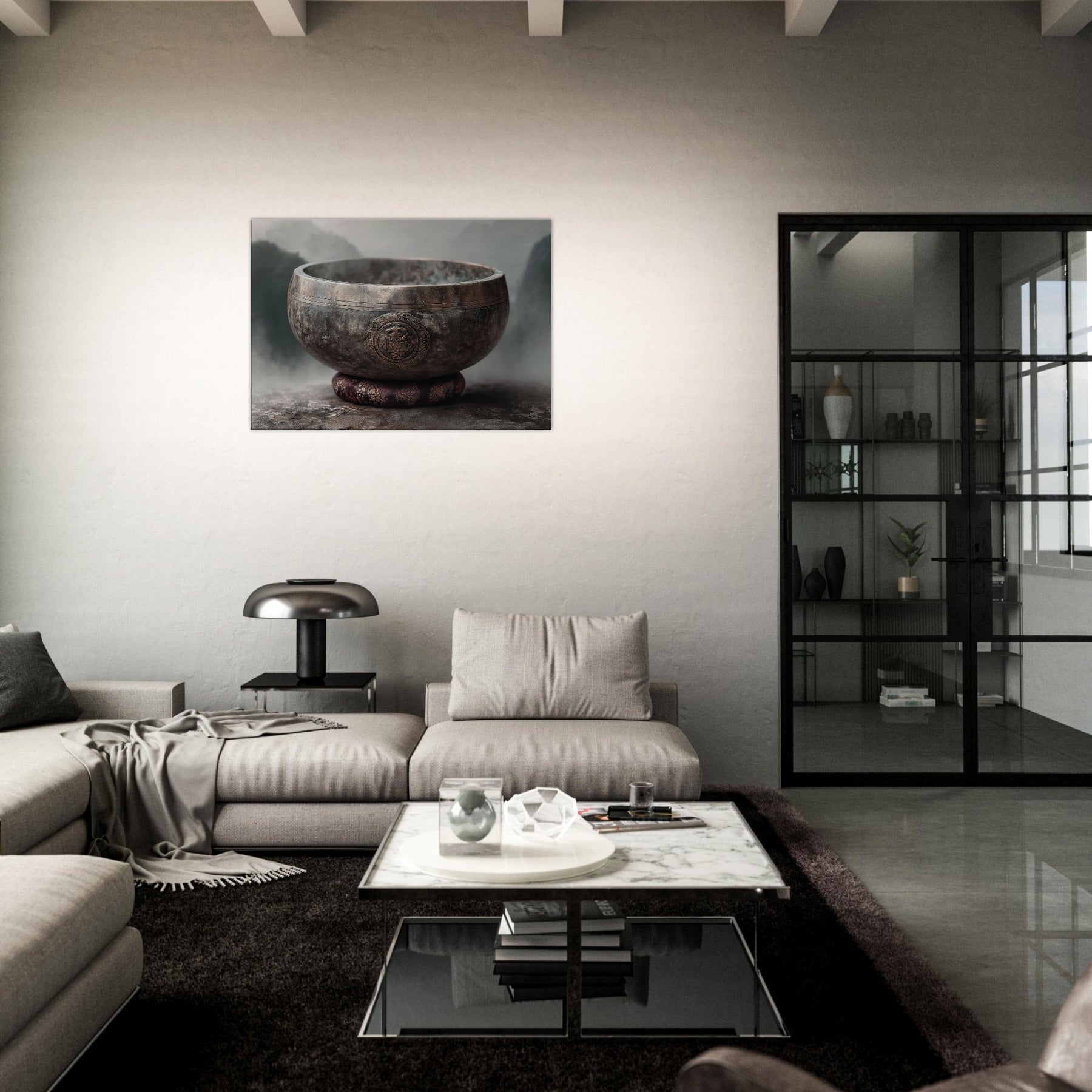 Within a mist kissed , the Singing Bowl emerges as a vessel of silence and sound. Its weathered patina glints with bronze twilight, while delicate engravings cradle a memory at the center. Framed by dreamlike fog, the sculpture invites breath to slow, thoughts to soften, and daily spaces to become sanctuaries of quiet awe. This piece anchors a living room with ritual calm, turning ordinary moments into a meditation on resonance and wonder.