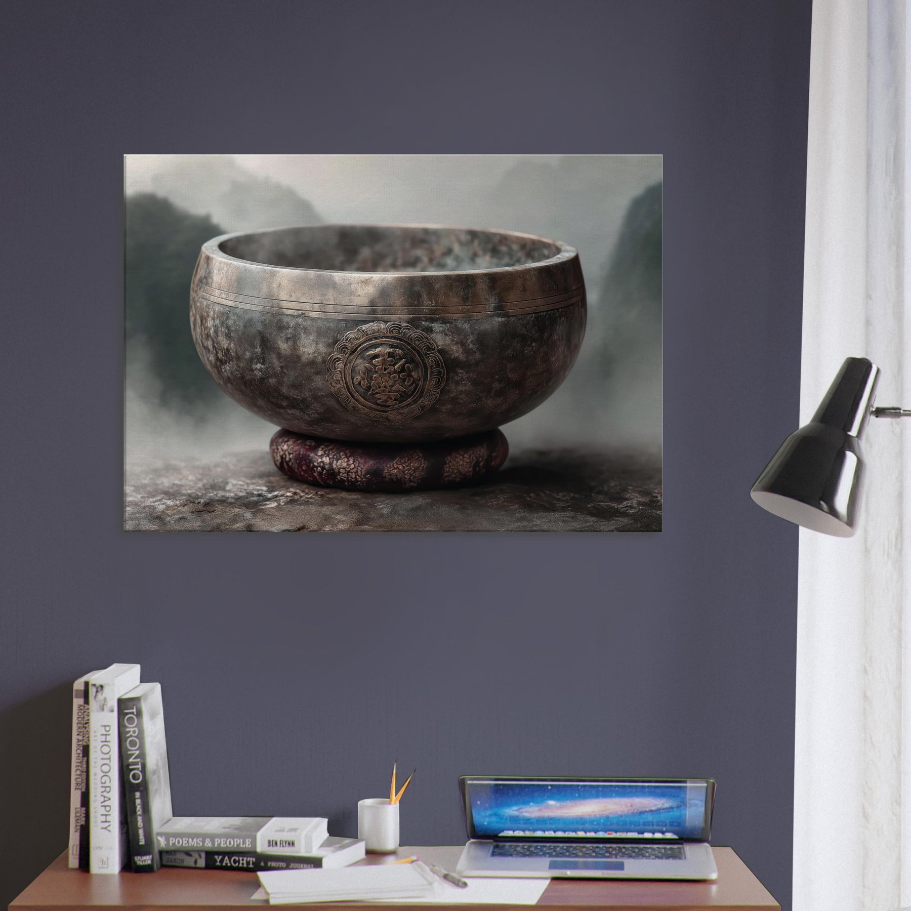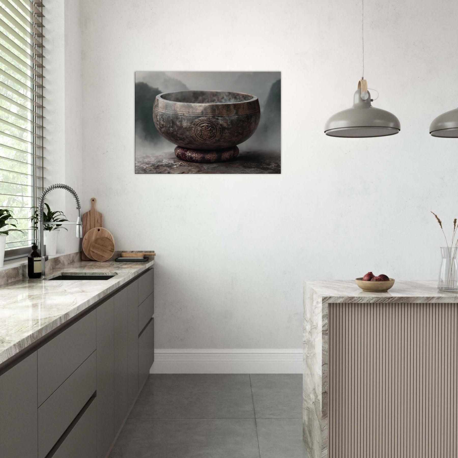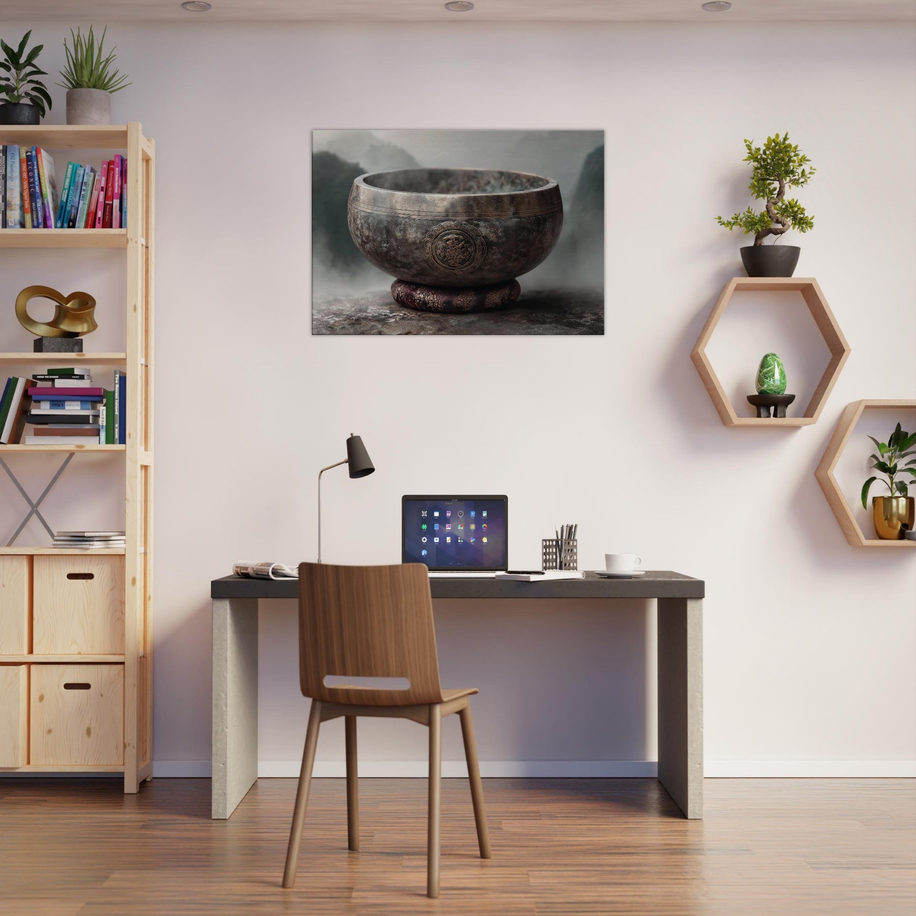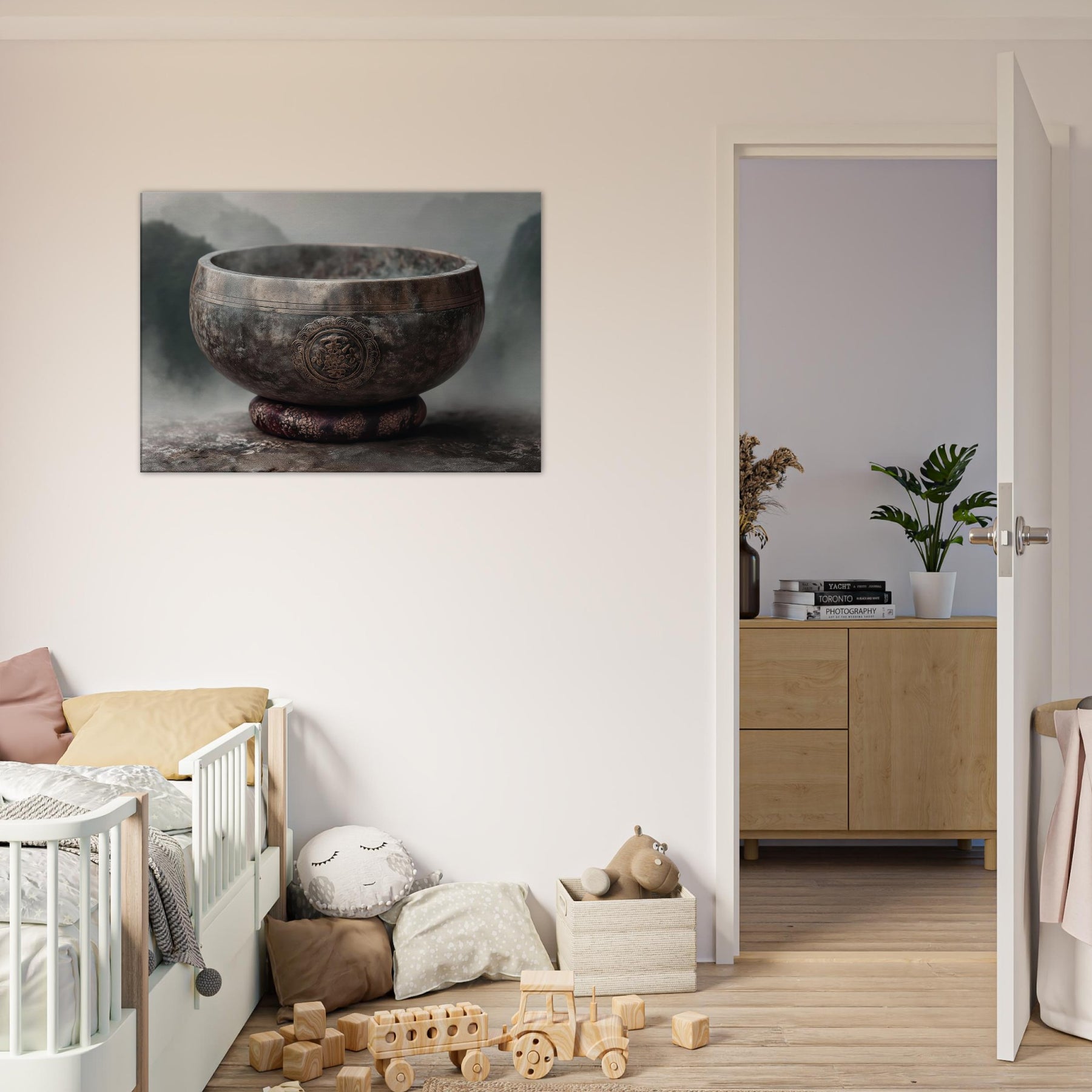 Within a mist kissed , the Singing Bowl emerges as a vessel of silence and sound. Its weathered patina glints with bronze twilight, while delicate engravings cradle a memory at the center. Framed by dreamlike fog, the sculpture invites breath to slow, thoughts to soften, and daily spaces to become sanctuaries of quiet awe. This piece anchors a living room with ritual calm, turning ordinary moments into a meditation on resonance and wonder.