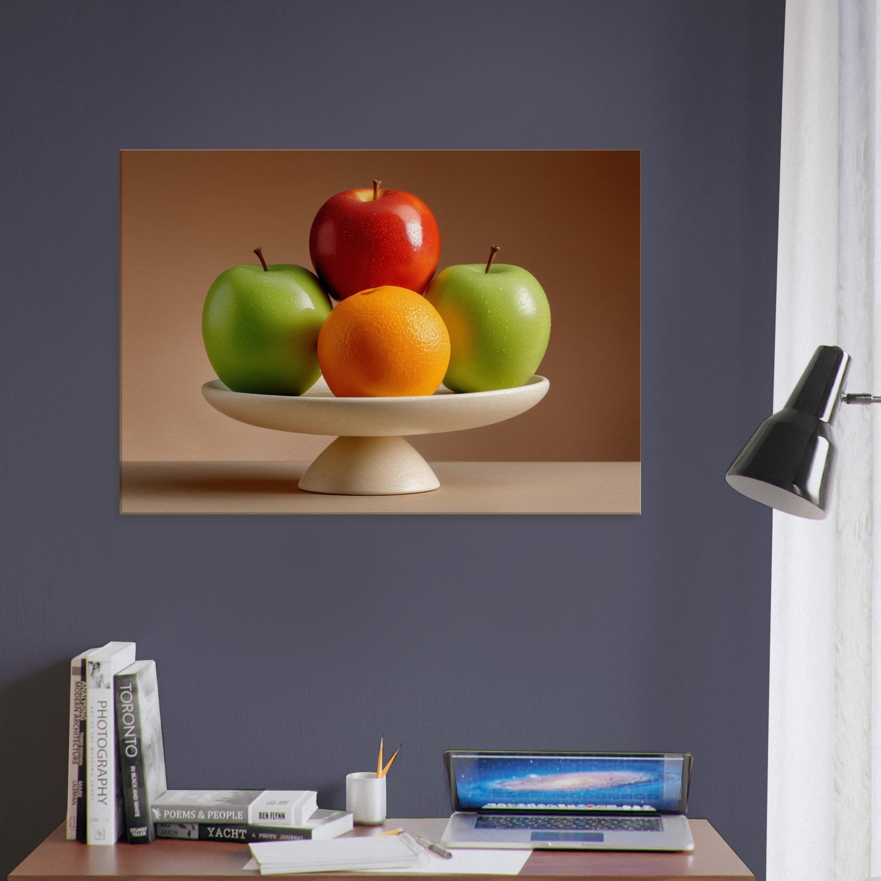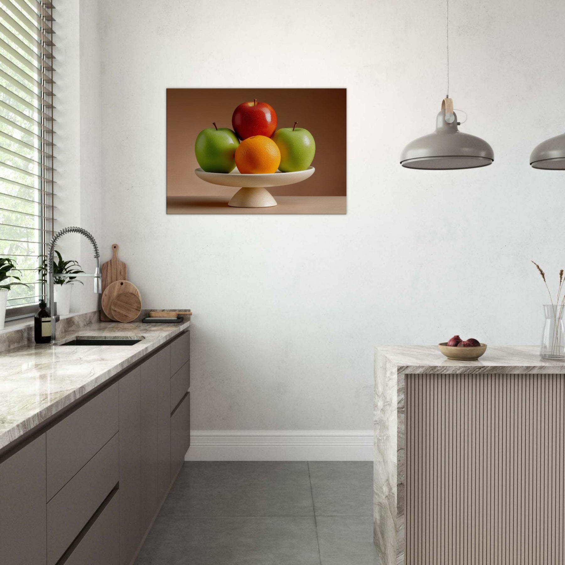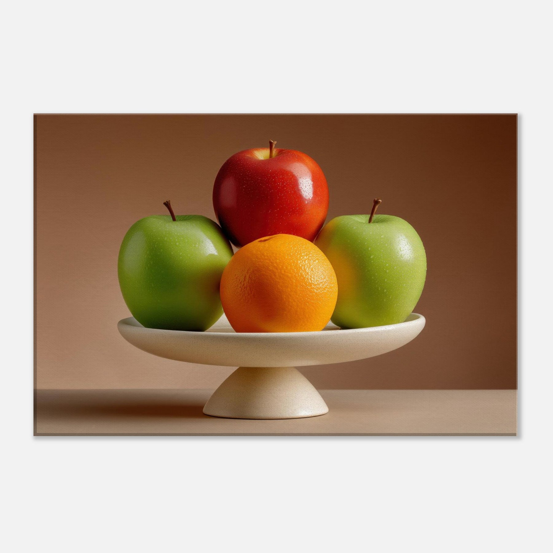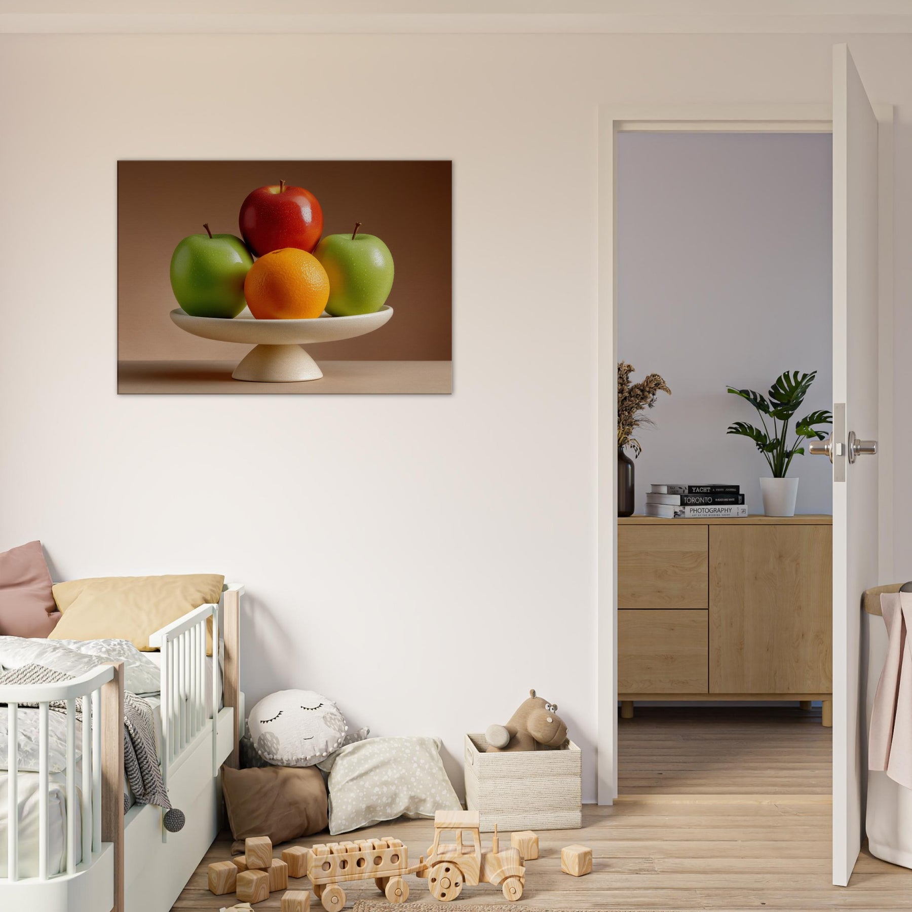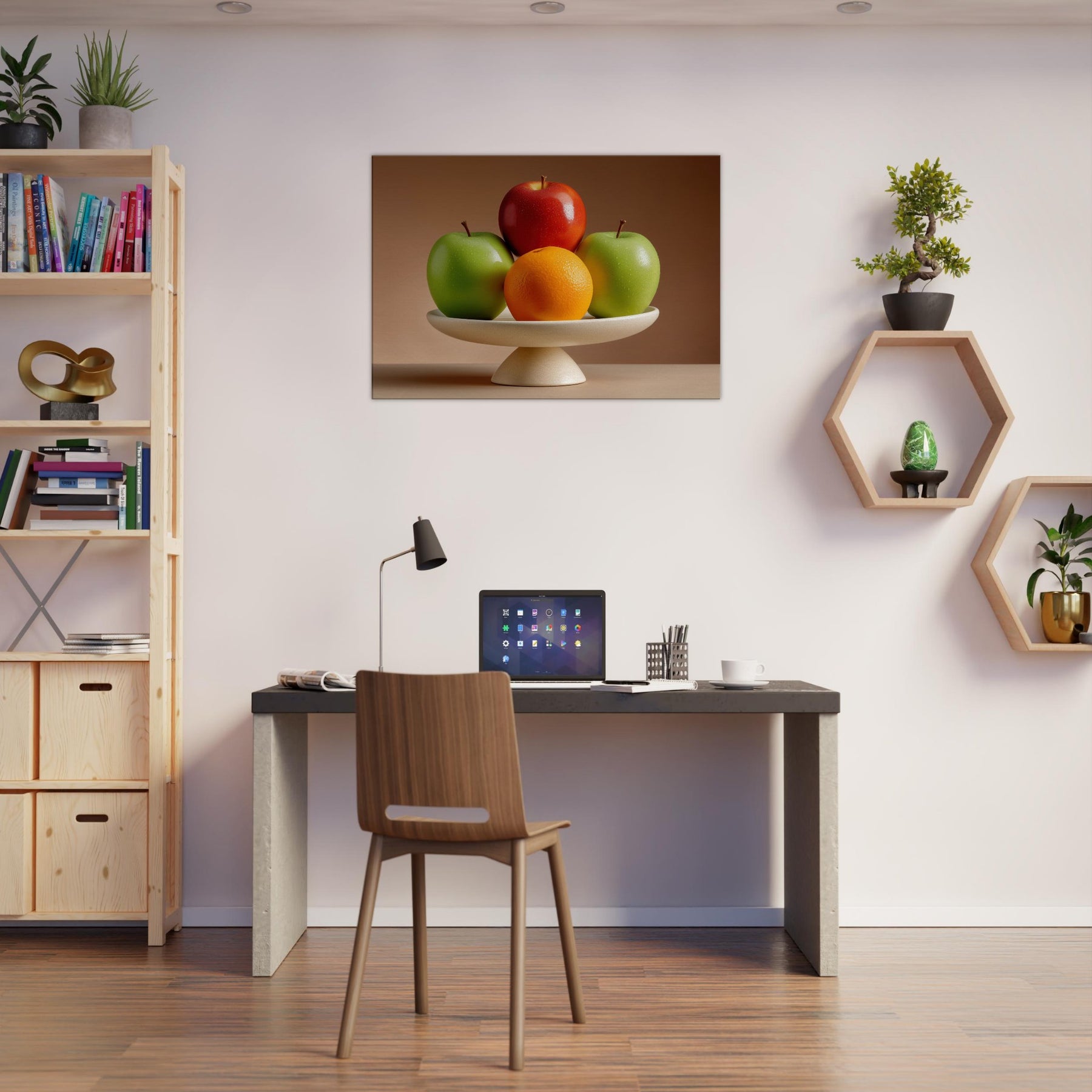 Like a dream you can hang on the wall, this Fruit Bowl gathers familiar colors into an impossible still life. Apples in jade and ruby cradle an orange within a pale pedestal, set against a warm, sun kissed backdrop that seems to breathe. The surreal arrangement invites quiet reflection and a touch of whimsy, transforming a simple everyday scene into mood and meaning. Perfect for a living room or study, it adds color, texture, and a calm, cinematic atmosphere.