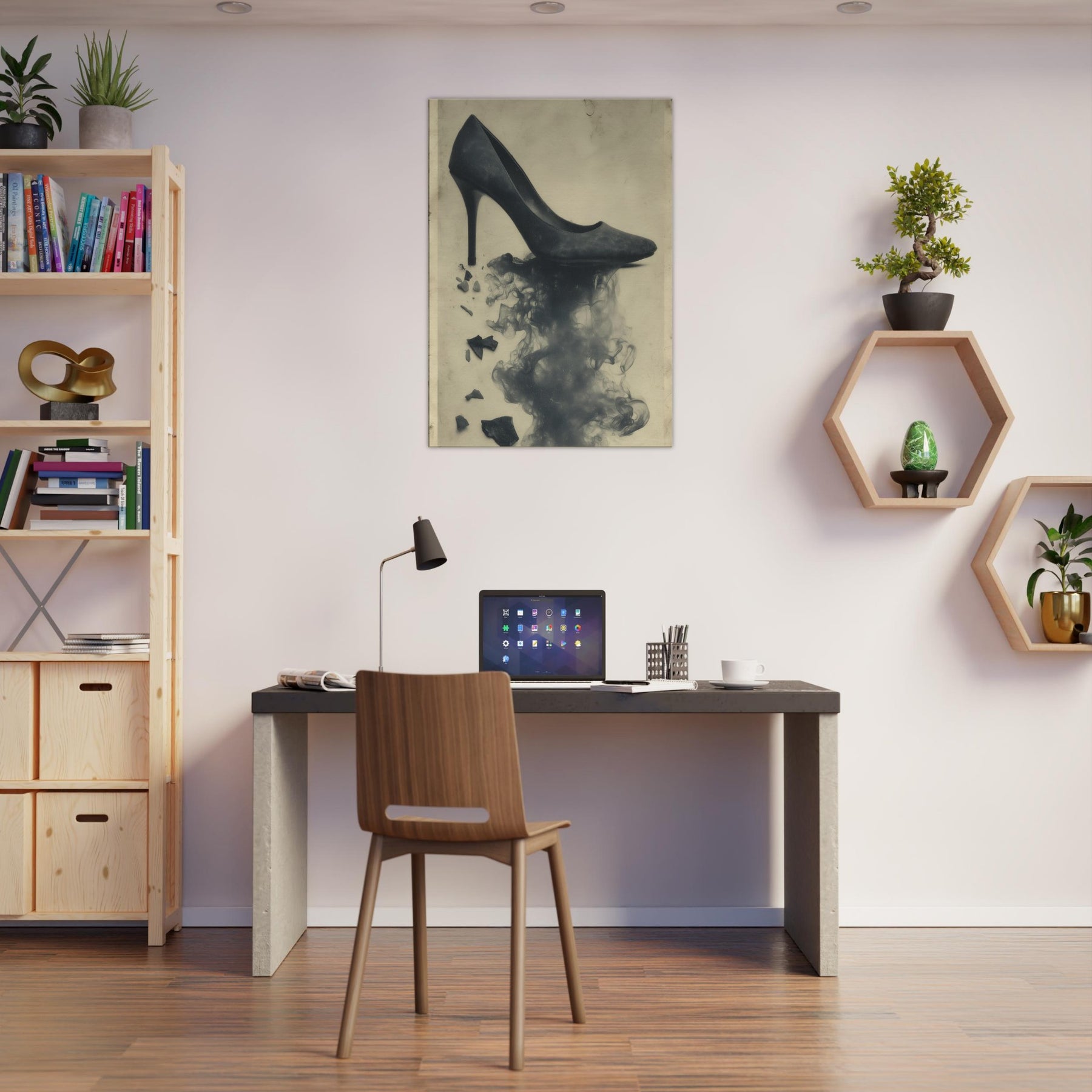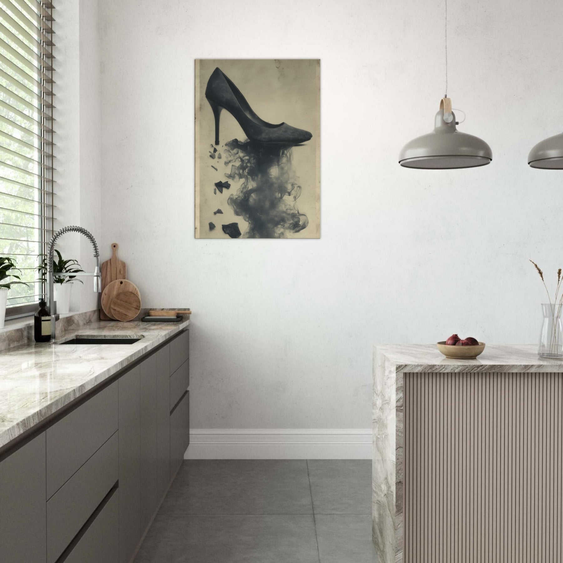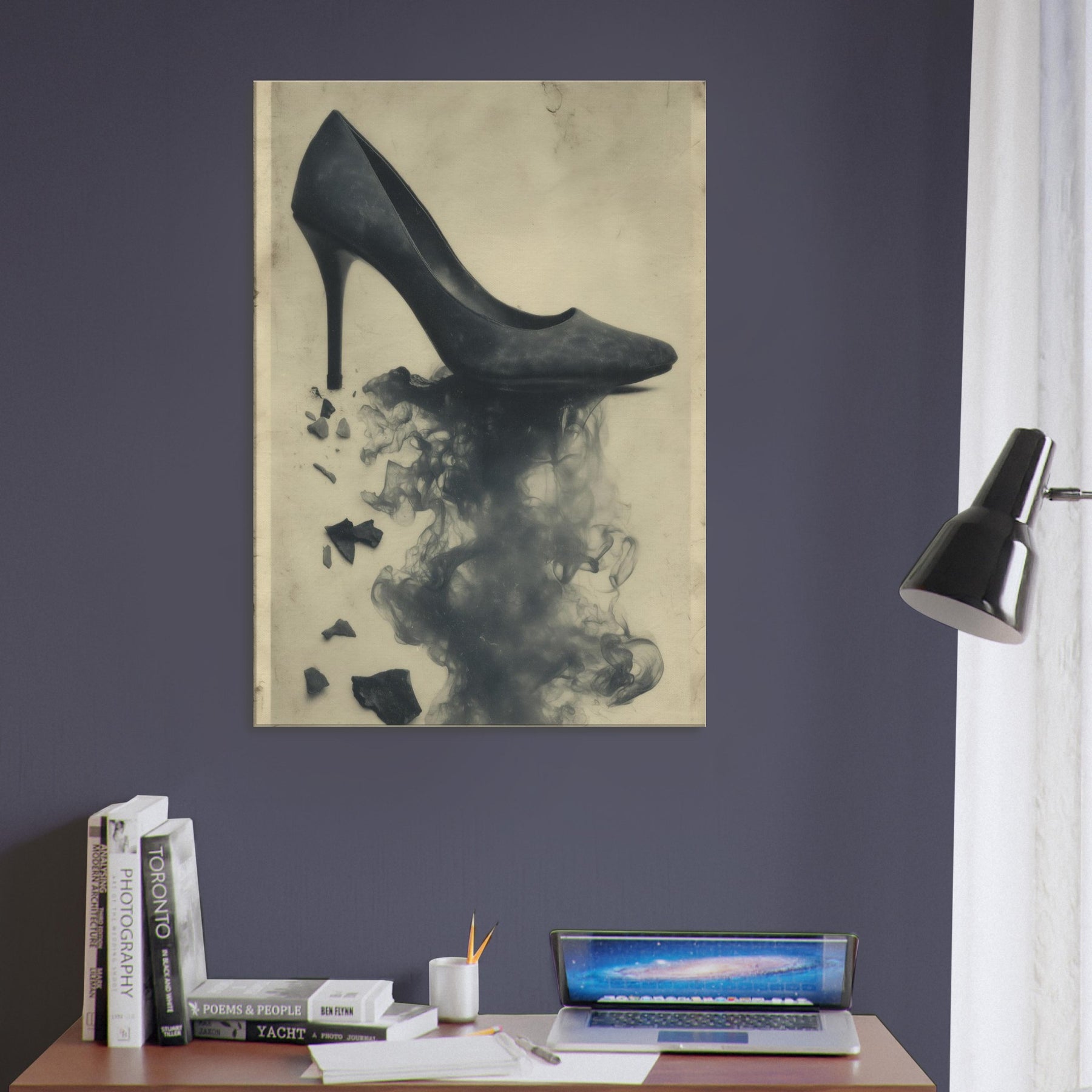 Echoing beyond the glassy surface, this piece situates a poised High Heel as a siren of memory, hovering over a veil of ink that blooms into smoke and fragments. The High Heel, a hallmark of Iconsandobjects, becomes an icon of desire and rupture, a paradox that invites conversation as rooms drift between dream and waking. Its muted sepia tones soften edges, while the shifting wisps invite touch and movement, making any living space feel cinematic, intimate, and alive with a quiet, nocturnal glamour.