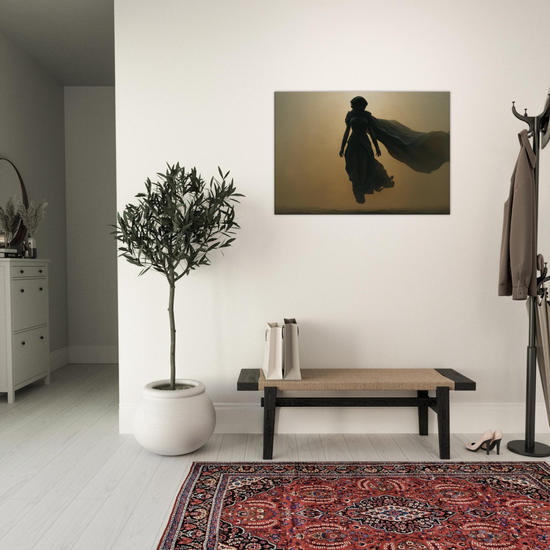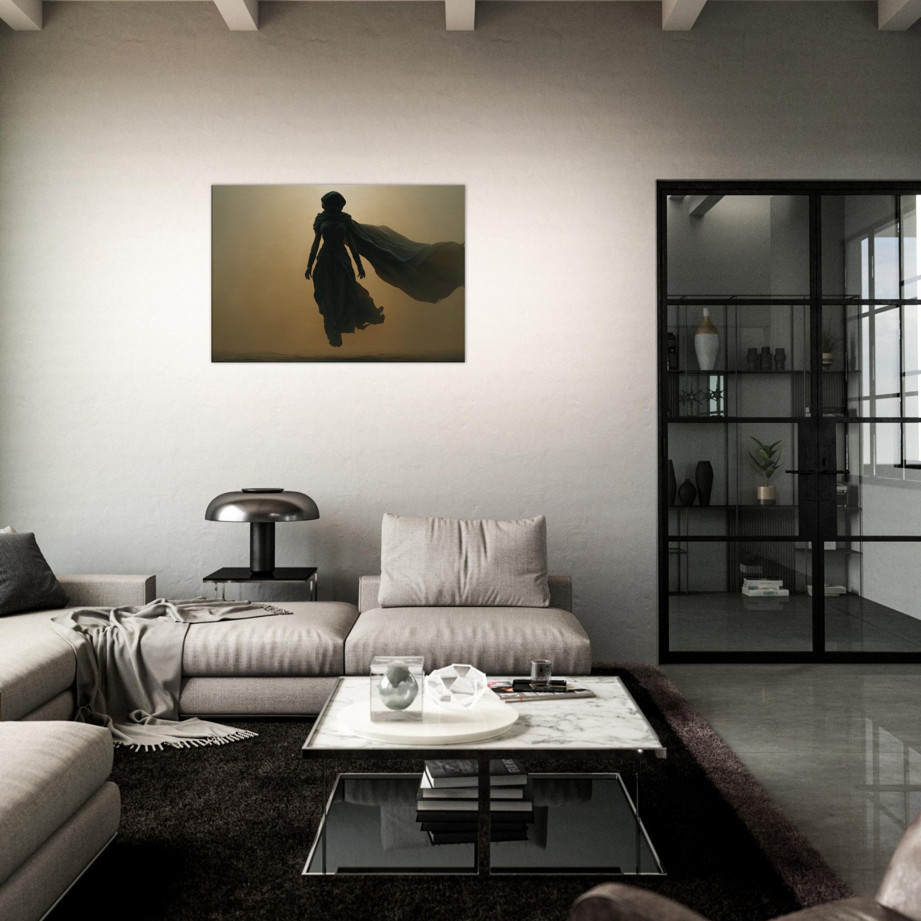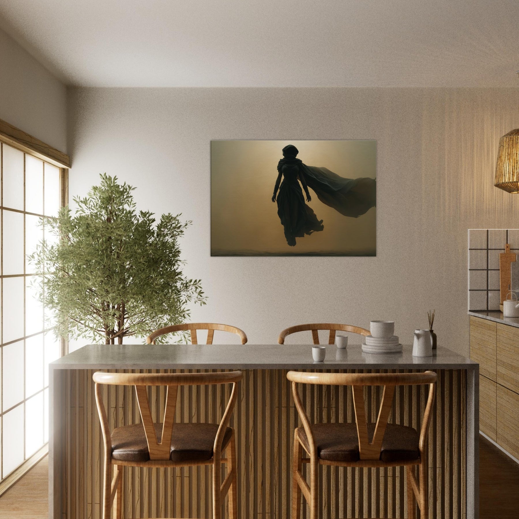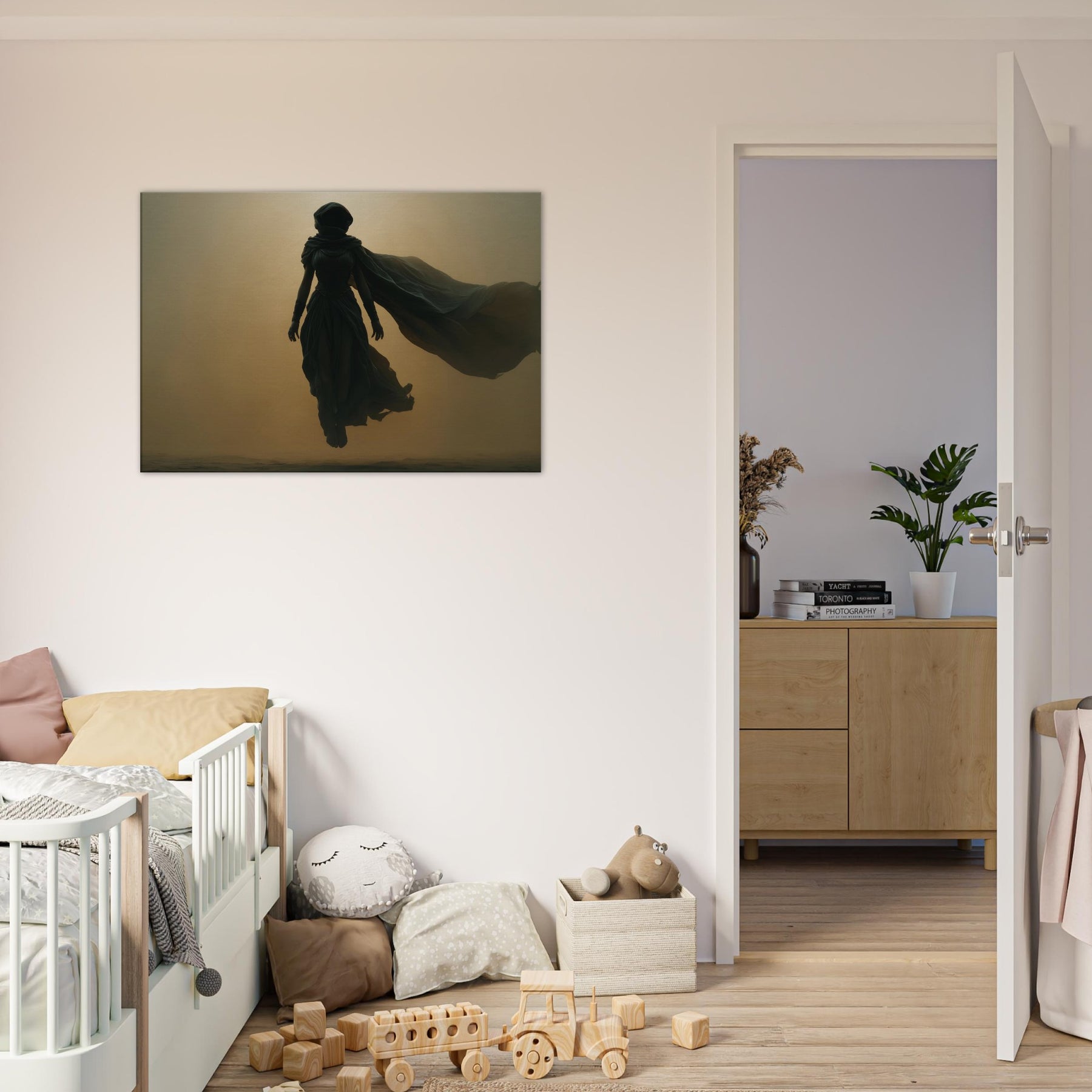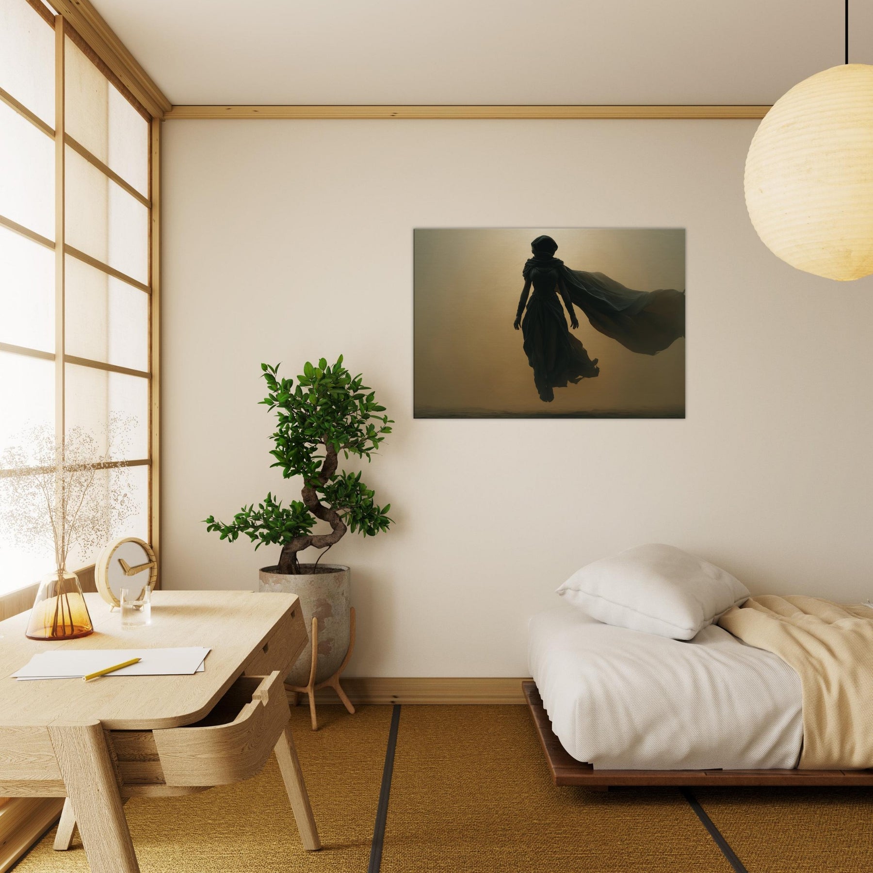 Isis, the Egyptian Goddess of Magic and Motherhood, steps from myth into your living space in a glow and shadow. This Surrealist composition halos her with a warm, amber haze, her robes billowing like a dream, uniting protection with wonder. Hang this centerpiece where morning light can play across layered textures, and let the room breathe with ancient quiet and modern poetry. A transformative image that invites reflection, conversation, and a sense of timeless guardianship.