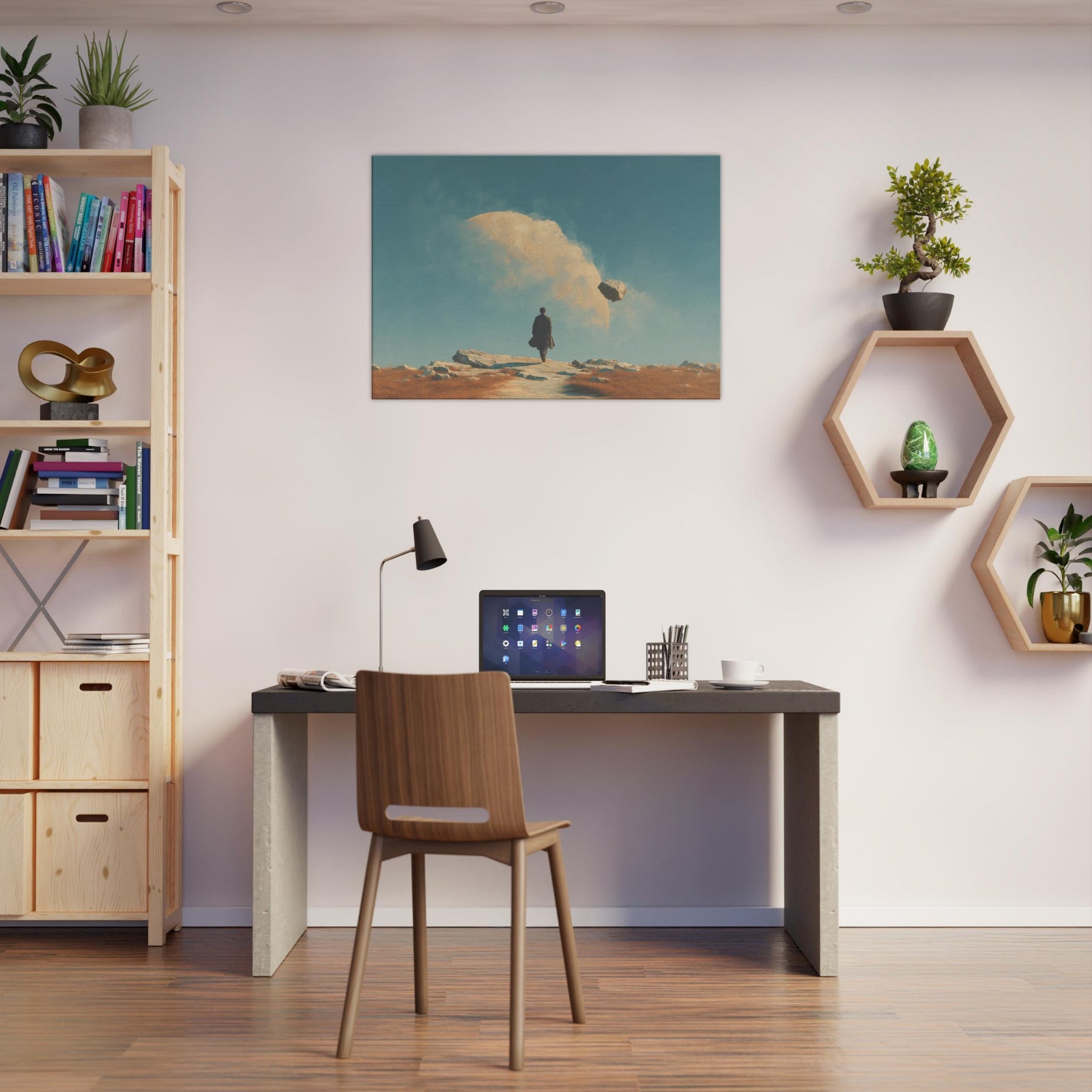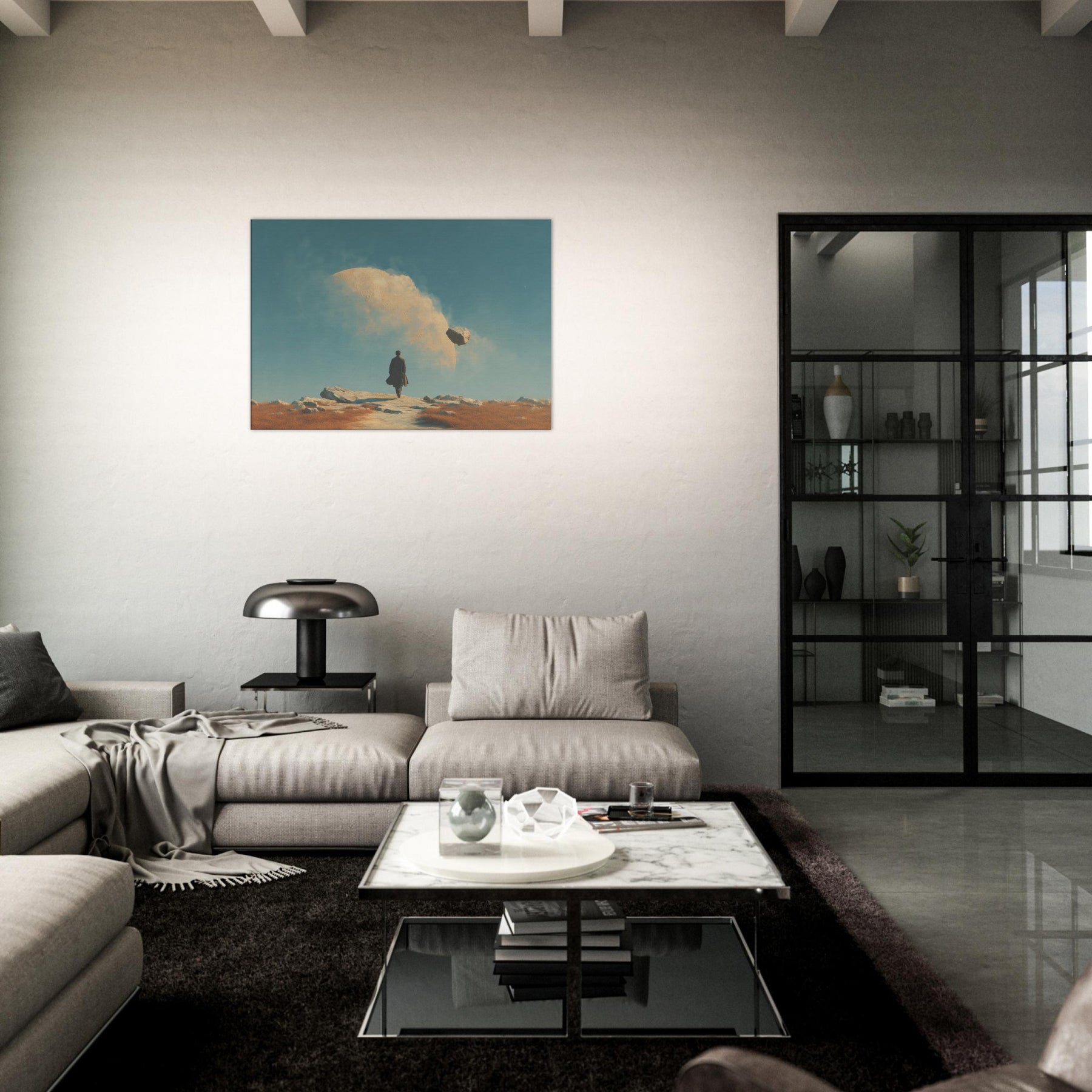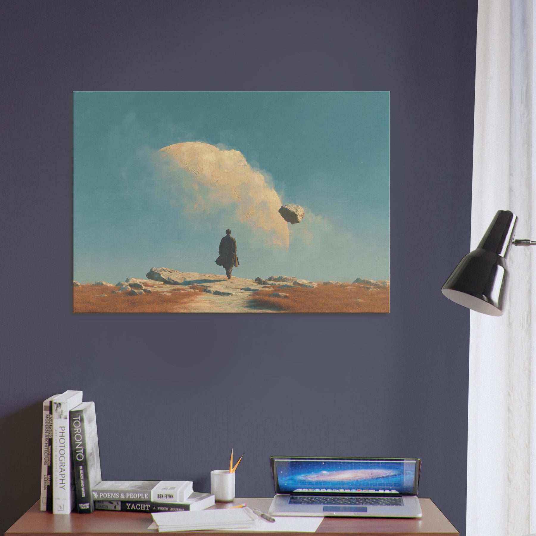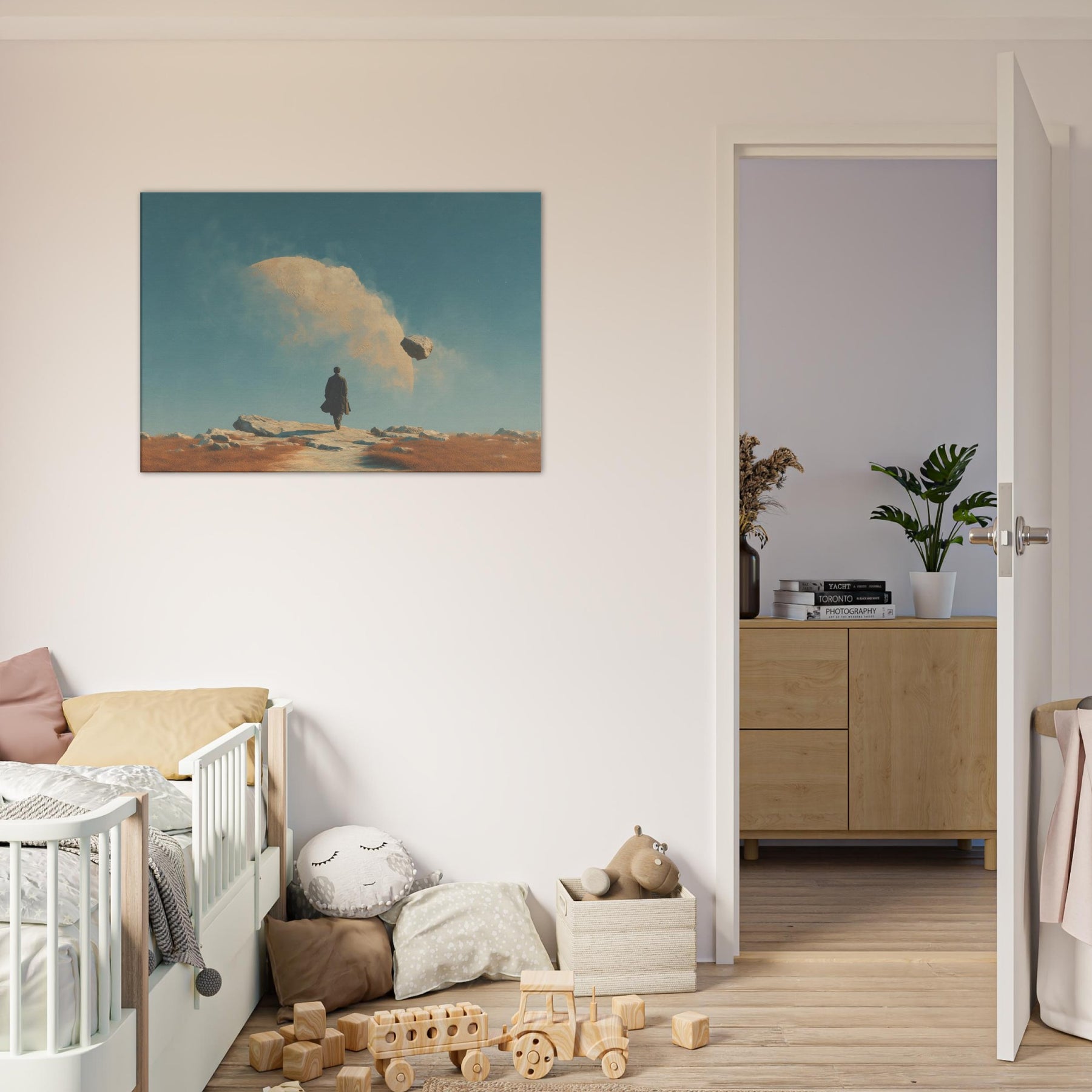Step into a hush of dusk and light where the Aurora Borealis unfolds as a celestial river. This surreal places a lone wanderer on a wind washed shore, the sky vaulted with dreams and distant echoes. The color glow shifts from teal to pale gold, wrapping your room in a soft, almost listening atmosphere. Hang it to elevate a living space with quiet drama a focal point that invites contemplation, romance, and a sense of possibility every time you enter.