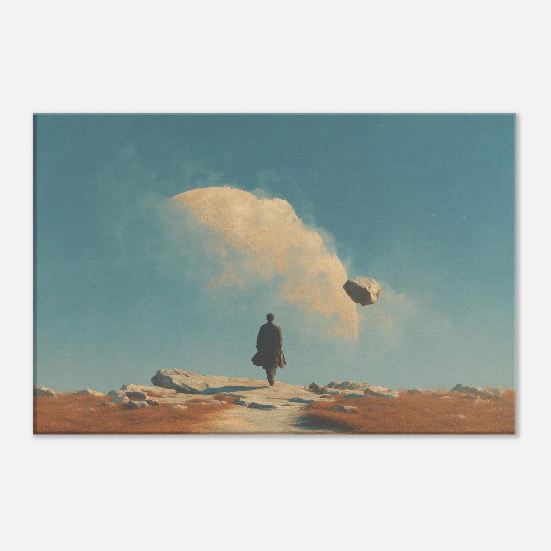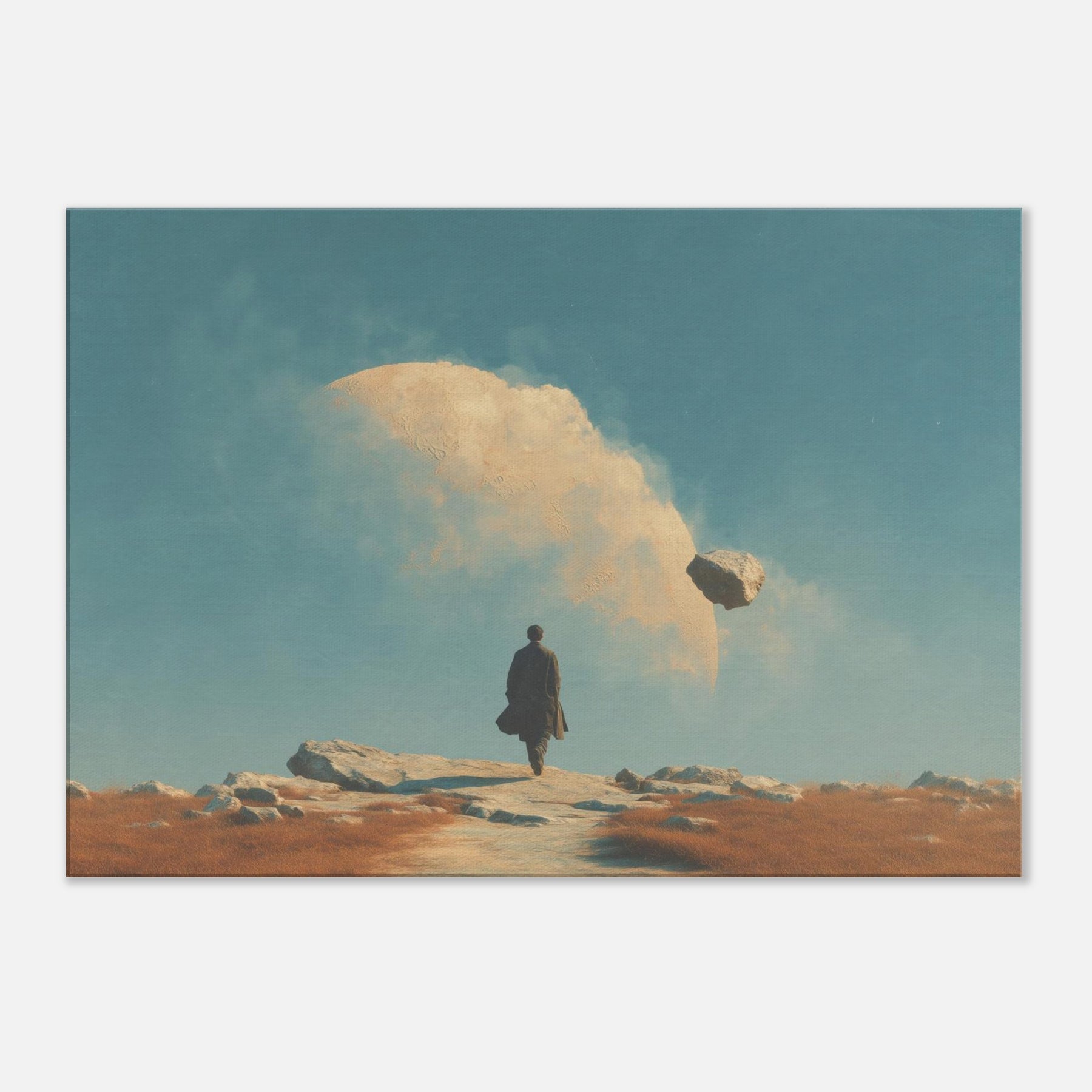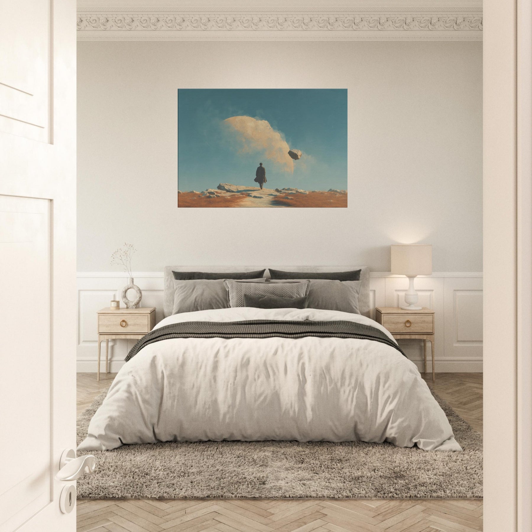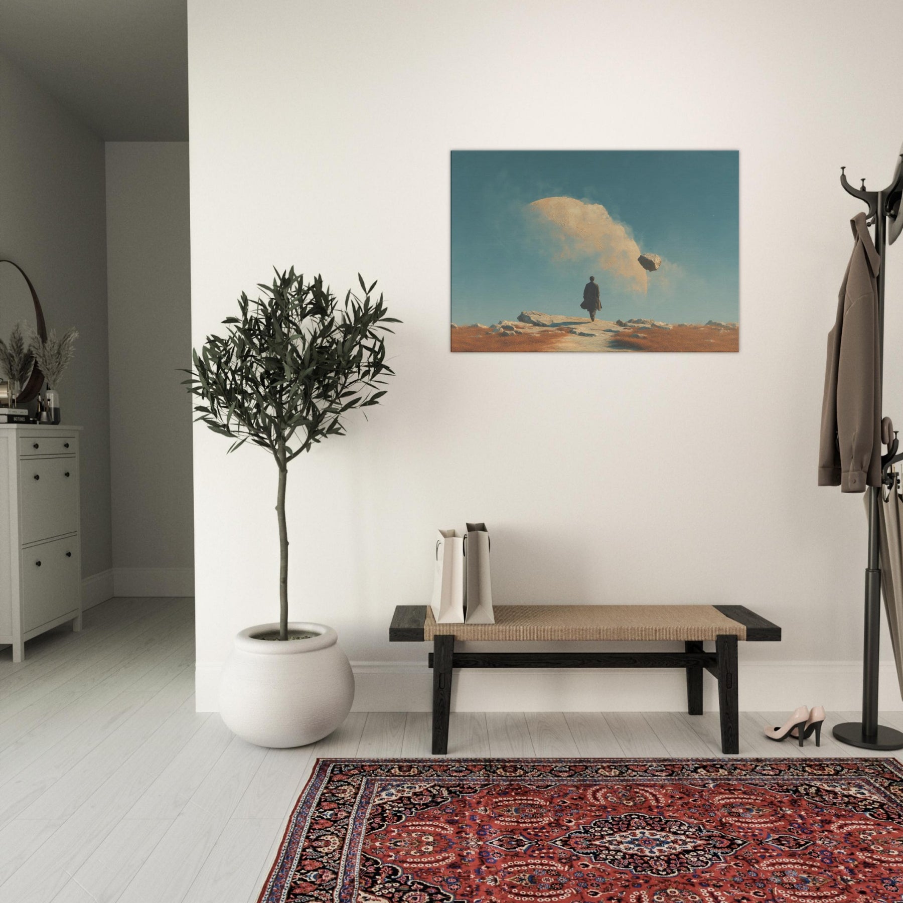 Step into a hush of dusk and light where the Aurora Borealis unfolds as a celestial river. This surreal places a lone wanderer on a wind washed shore, the sky vaulted with dreams and distant echoes. The color glow shifts from teal to pale gold, wrapping your room in a soft, almost listening atmosphere. Hang it to elevate a living space with quiet drama a focal point that invites contemplation, romance, and a sense of possibility every time you enter.
