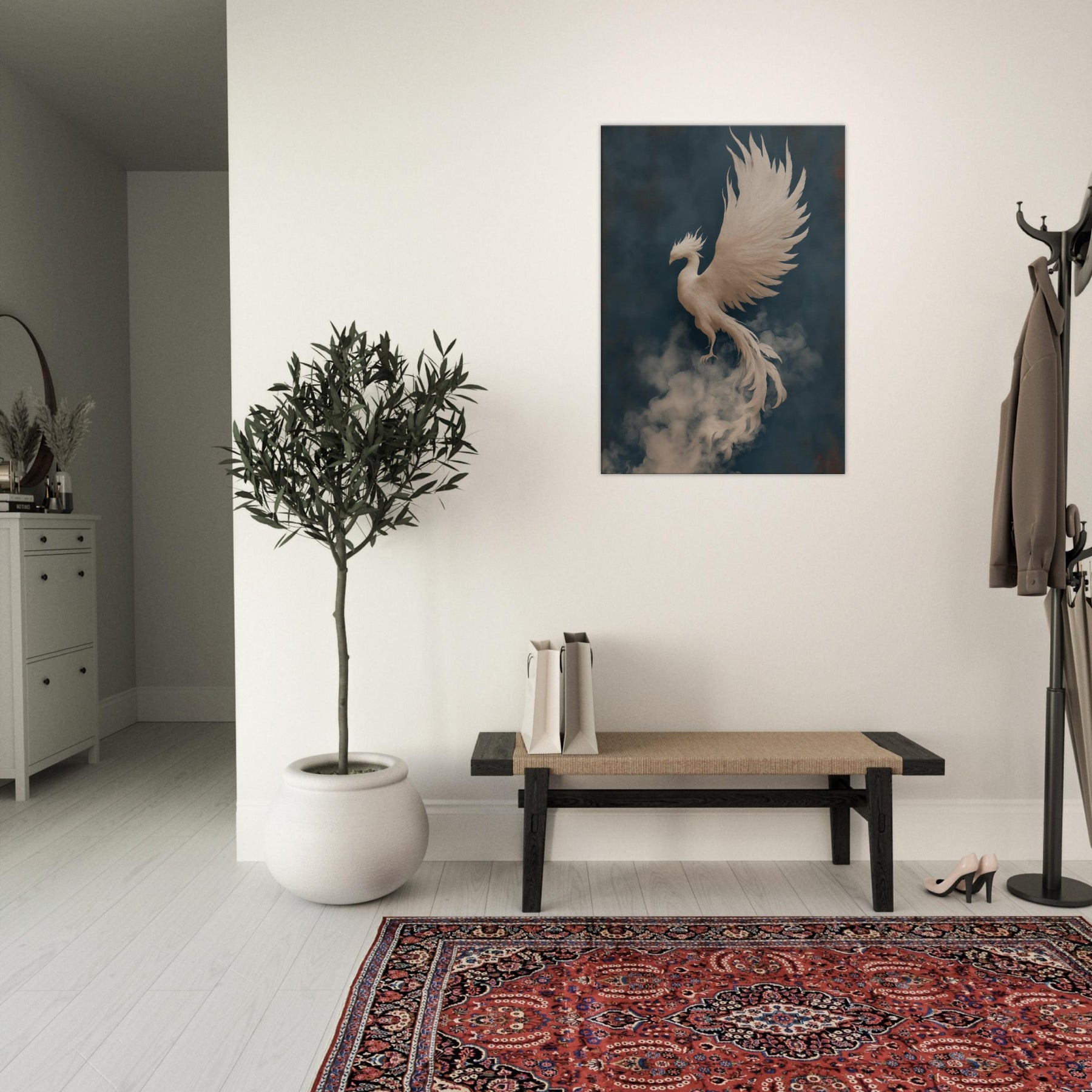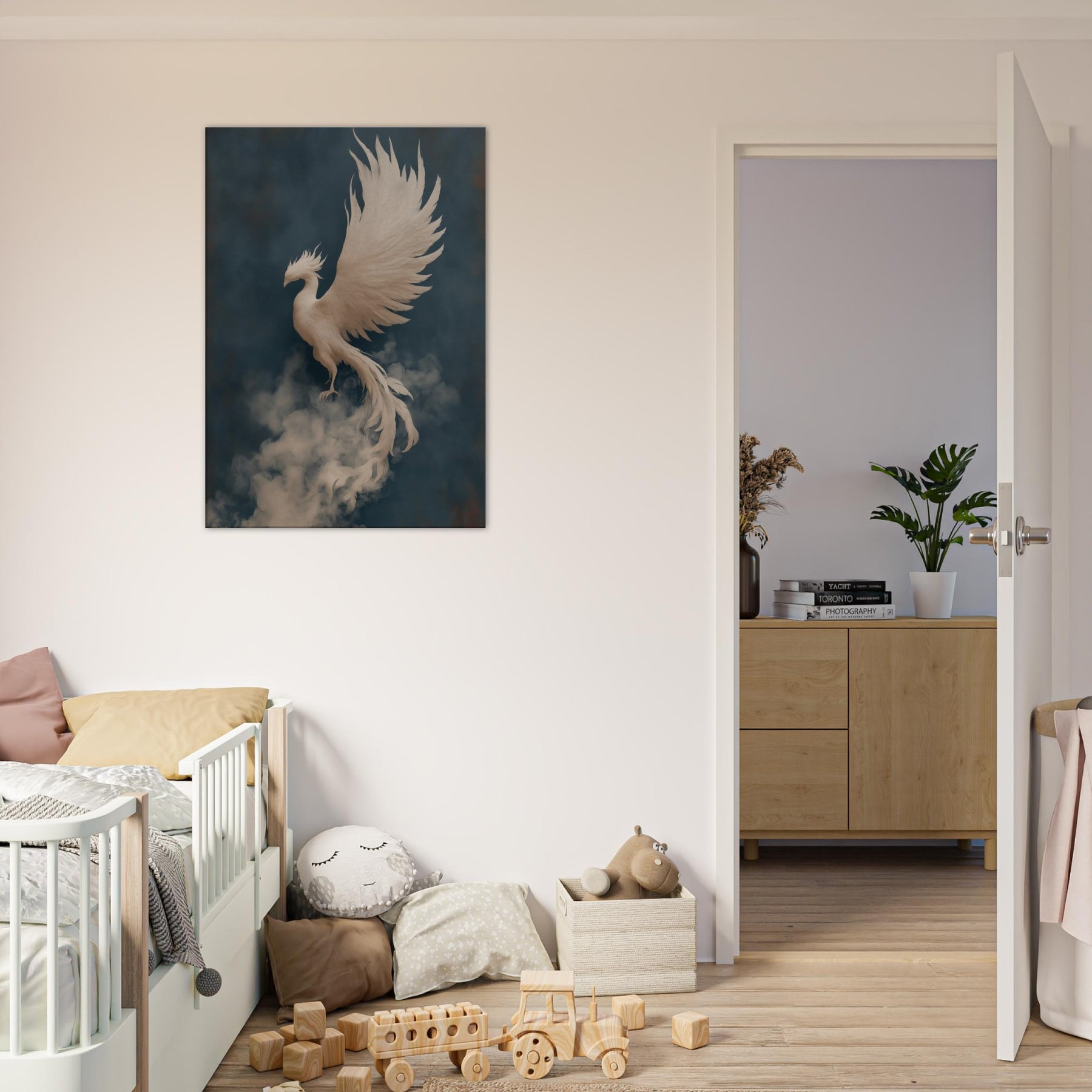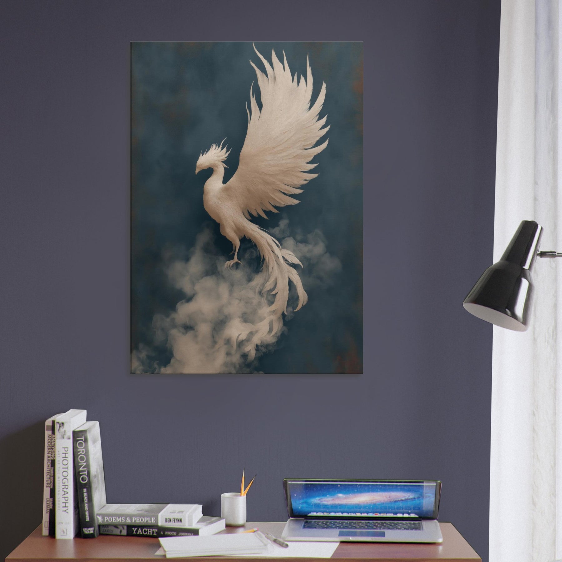 Suspended between flame and fog, the Fiery Phoenix rises in a dreamlike theater of color. This surreal celebration of myth moves with a quiet, primal energy, its sculpted wings slicing through the night like pale fire. The scene invites contemplation as if a legend were brushing your living room ceiling, filling space with breath and glow. The interplay of mist and flame gives the air a velvet hush, turning walls into a doorway for memory, myth, and awakening light.