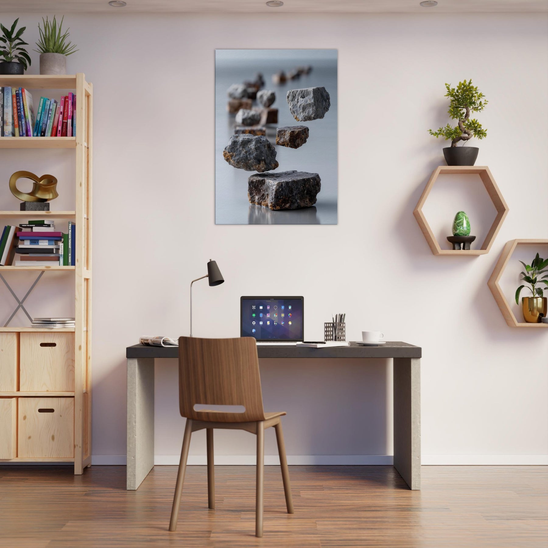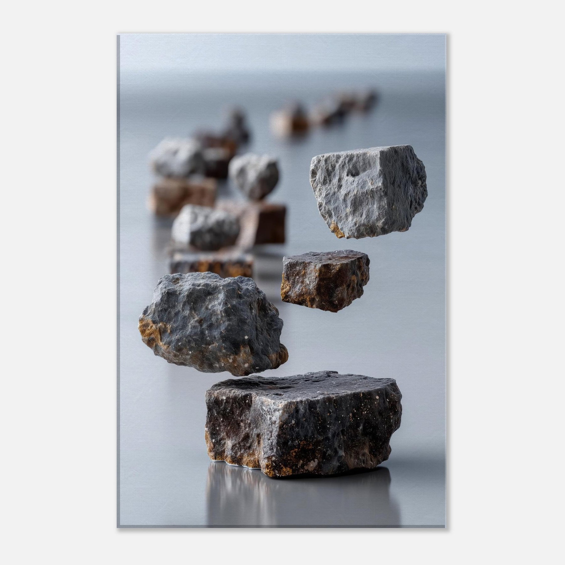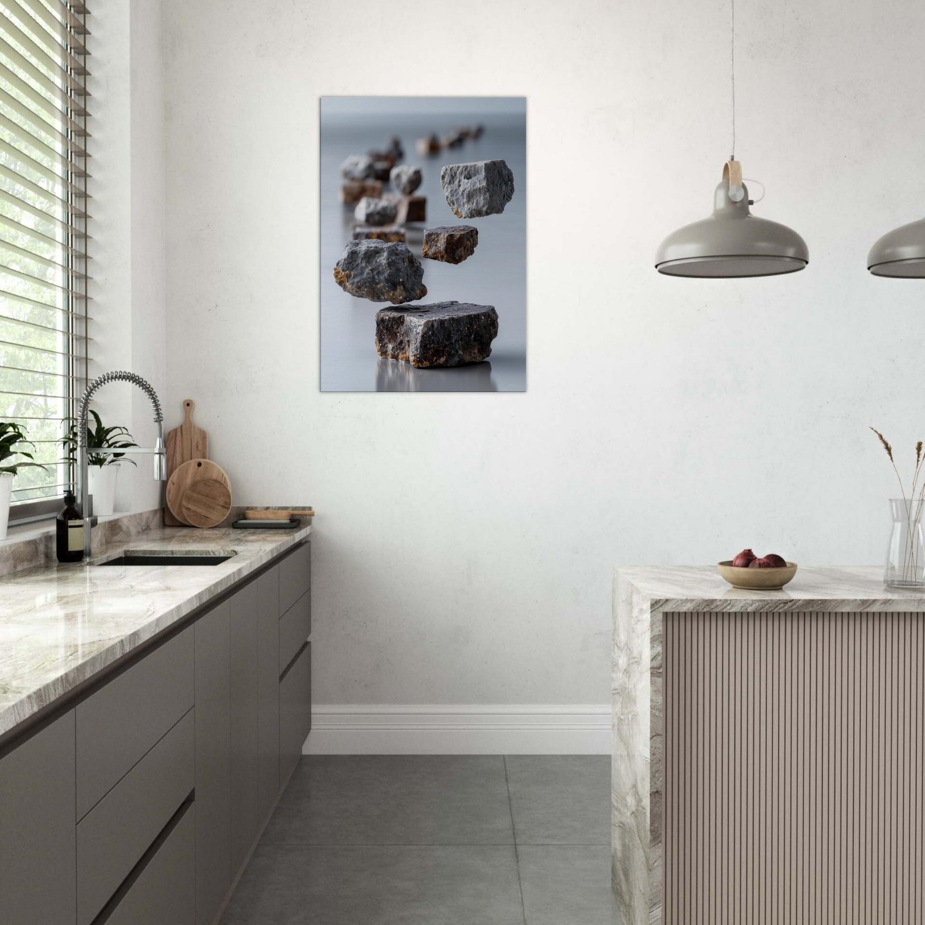 In this dreamlike scene, stones hover and balance above a tranquil Lake, turning a natural balance into a poetry of weightless moment. The soft, misty horizon and glassy water invite quiet reflection, as if color and memory have learned to breathe differently. This surreal composition fills walls with stillness and wonder, ideal for a sunlit living room or reading nook. Let it anchor conversations while you savor the hush of evening light.