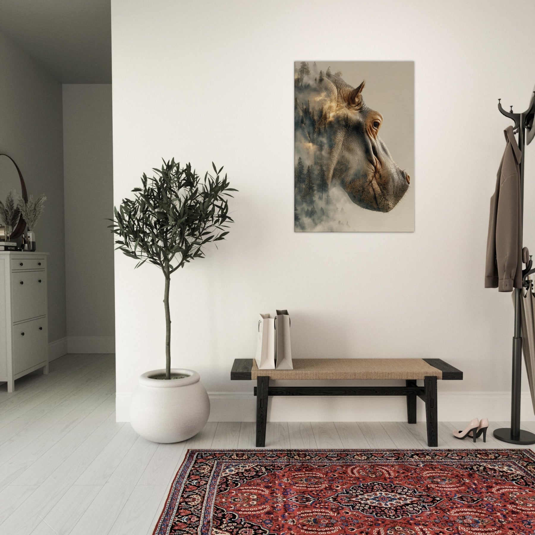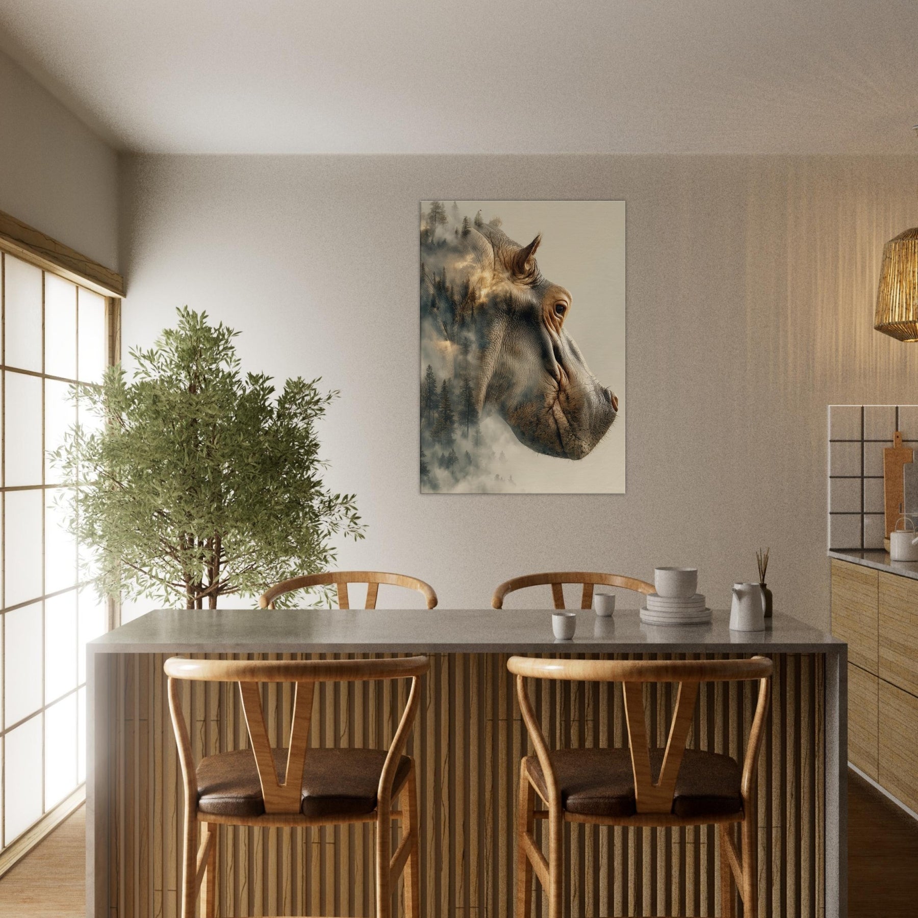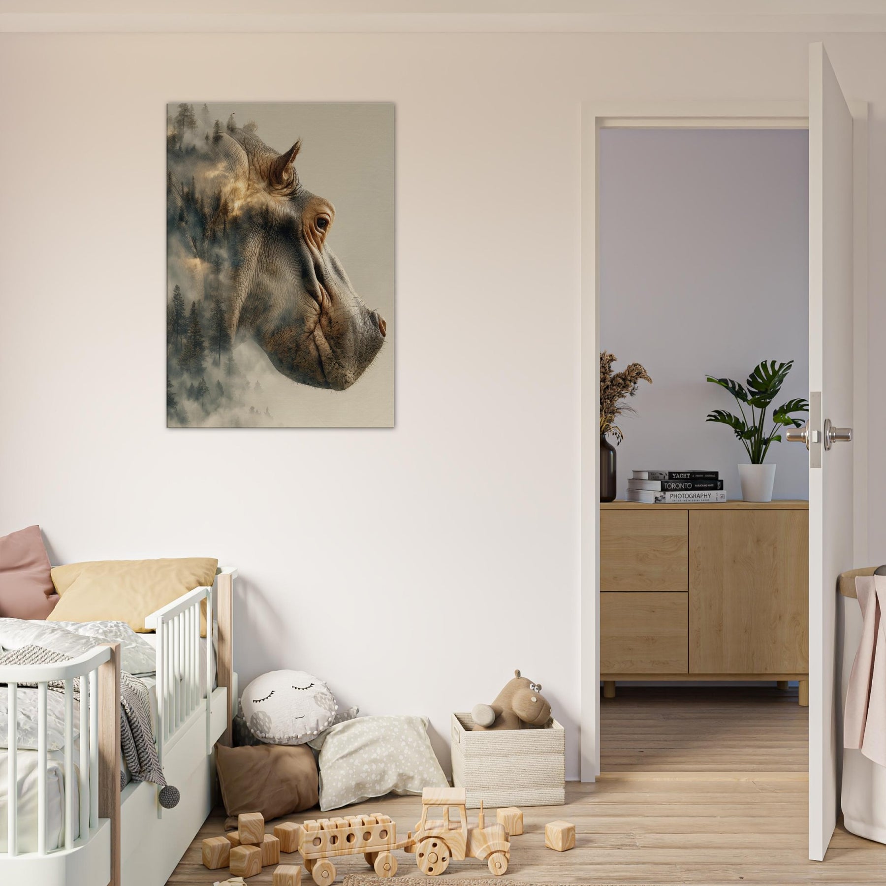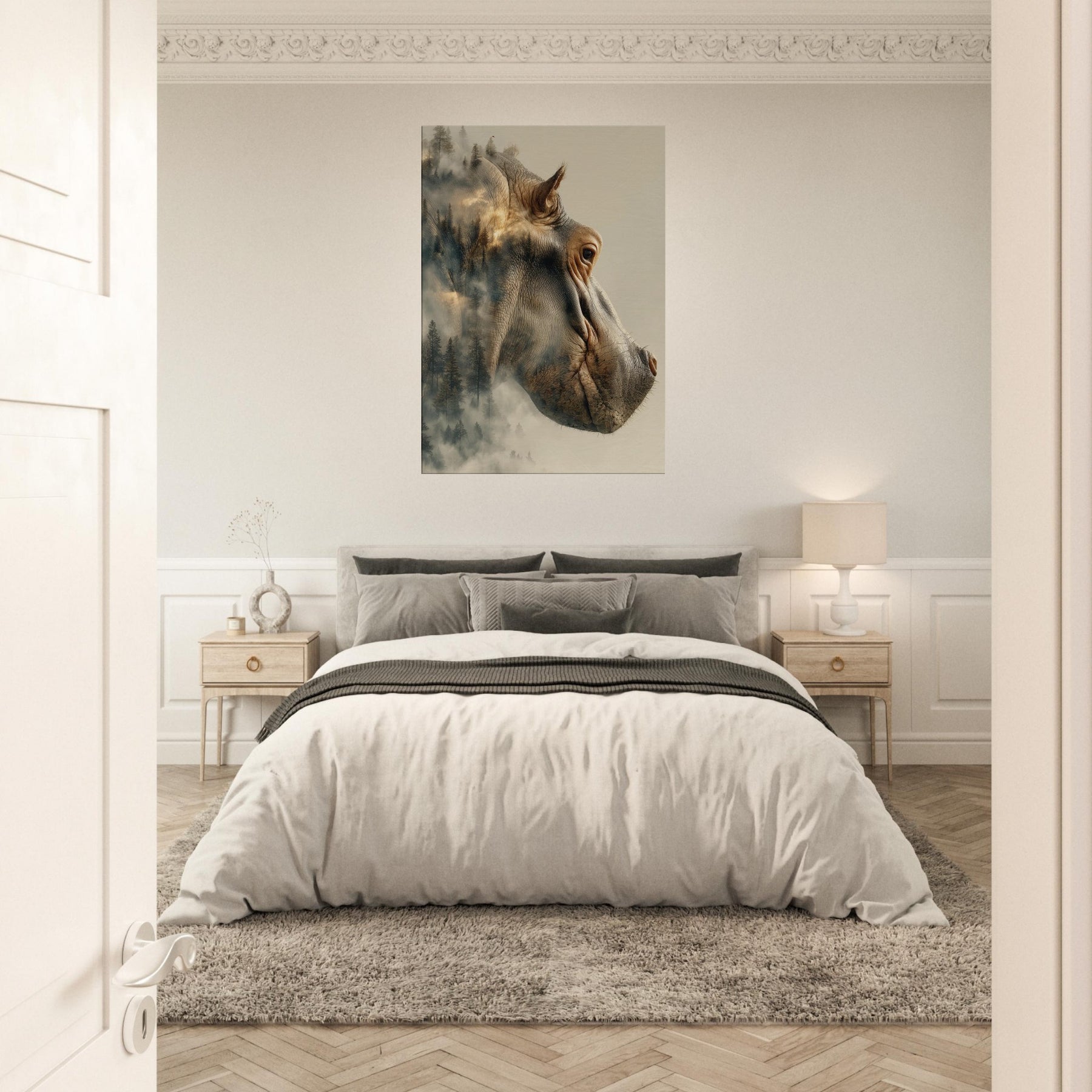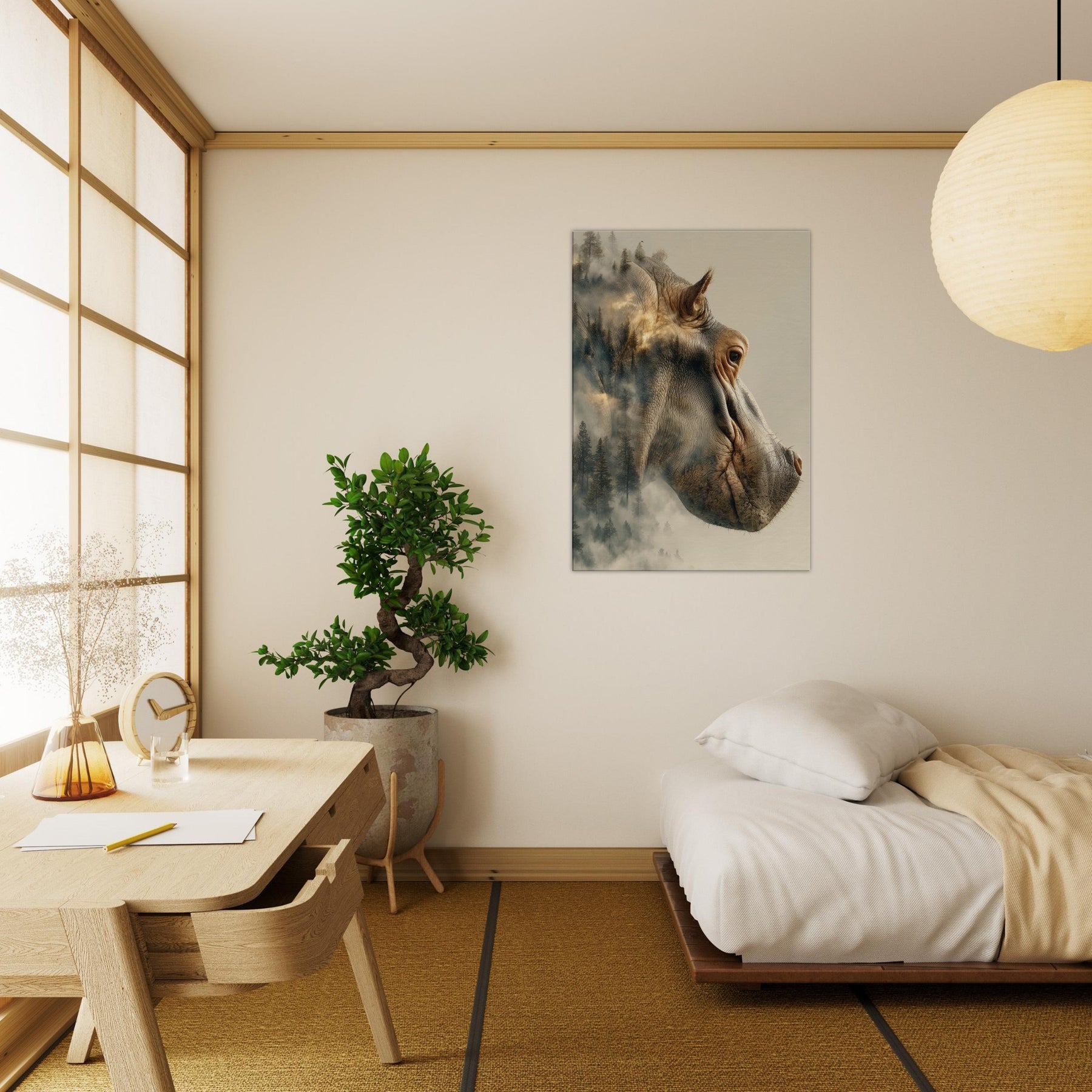 Let the Hippopotamus anchor your space in a dreamlike horizon where forest fog and colossal skin fold into a single, tranquil . This poetry of imagery invites a hush soft light, whispered pines, and a breathy blend of earth and mist that makes walls feel alive. With tactile texture and a warm, cinematic palette, it elevates any living room or bedroom, turning everyday walls into a contemplative sanctuary.
