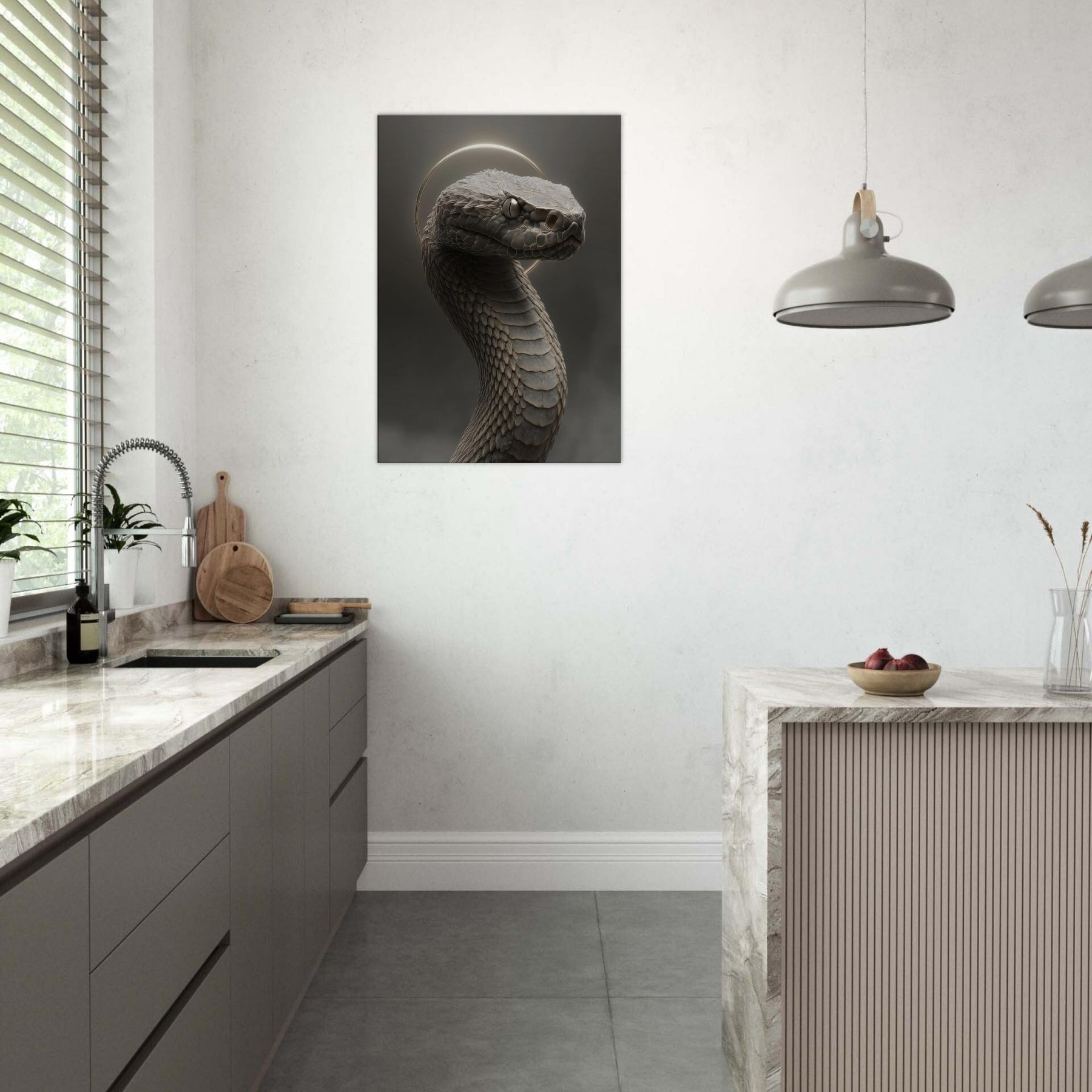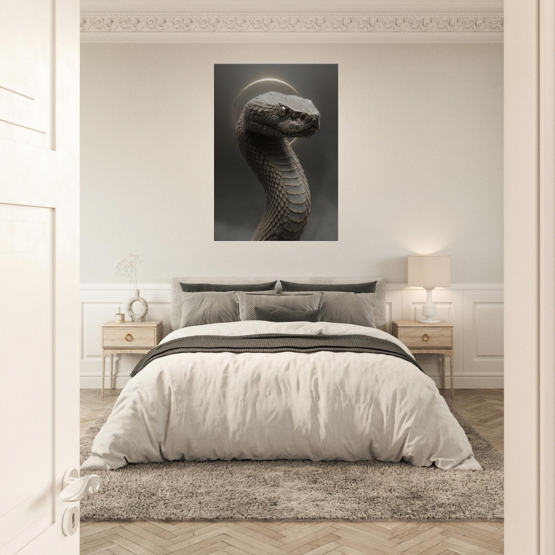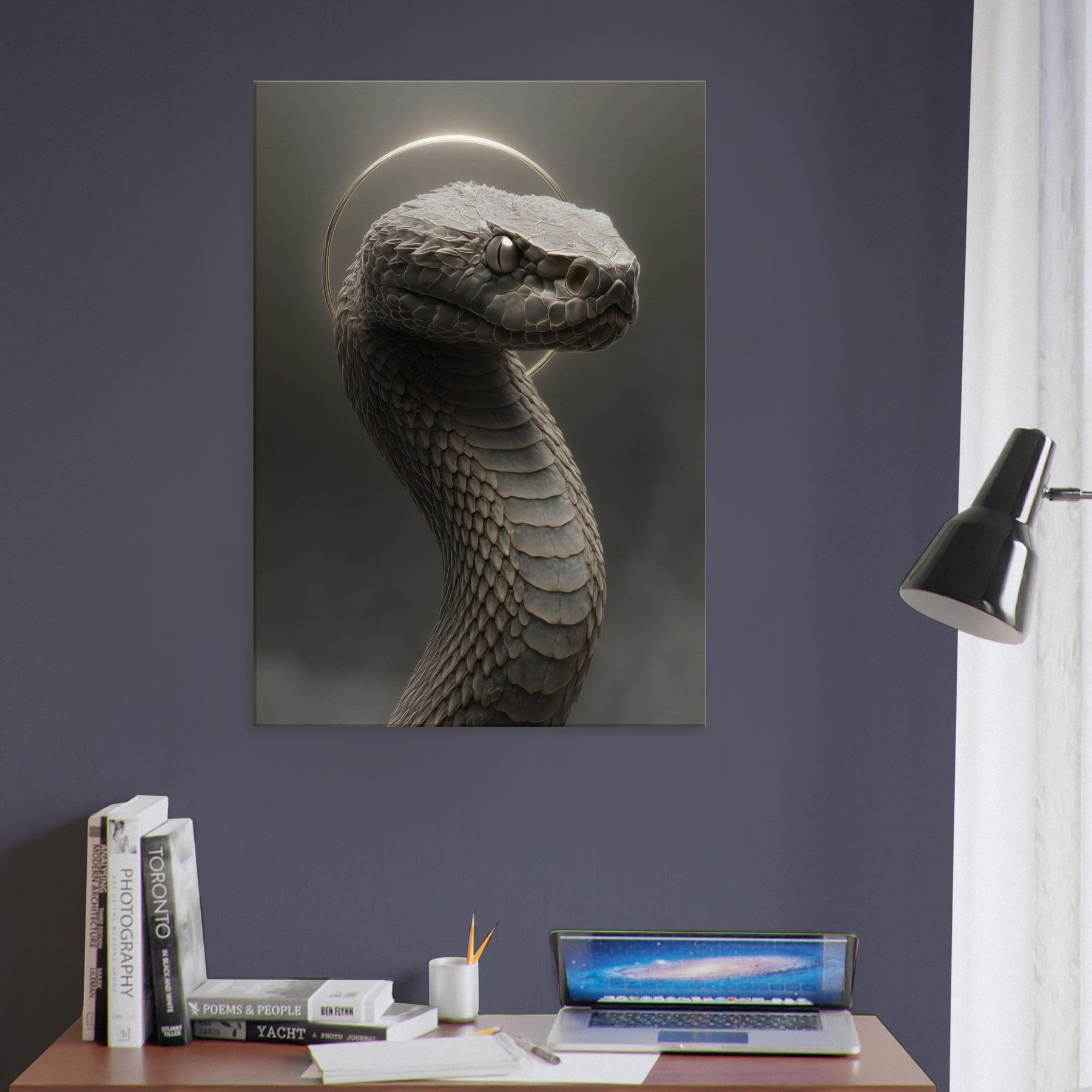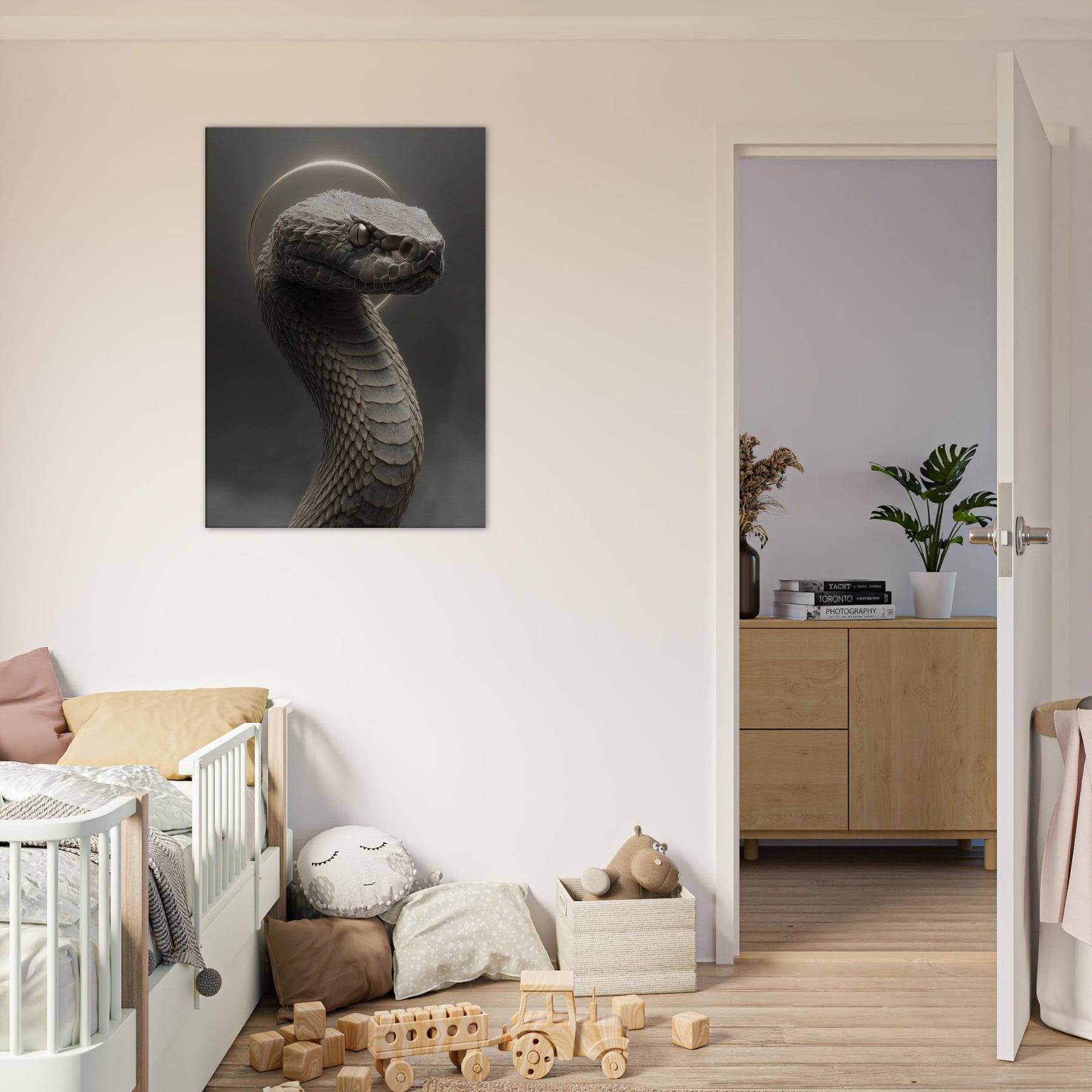 Infinity Serpent unfurls through a hush of shadow and light, its scales catching a halo of pale glow like a celestial ring. This single, sculptural creature invites quiet contemplation, weaving texture and breath into a living room's atmosphere. The Primary Subject Infinity Serpent speaks of endurance and mystery, while the misty backdrop amplifies color and depth, turning any wall into a doorway to other realms. Displayed alone or paired with soft furnishings, it enriches a space with timelessness and tactile drama.