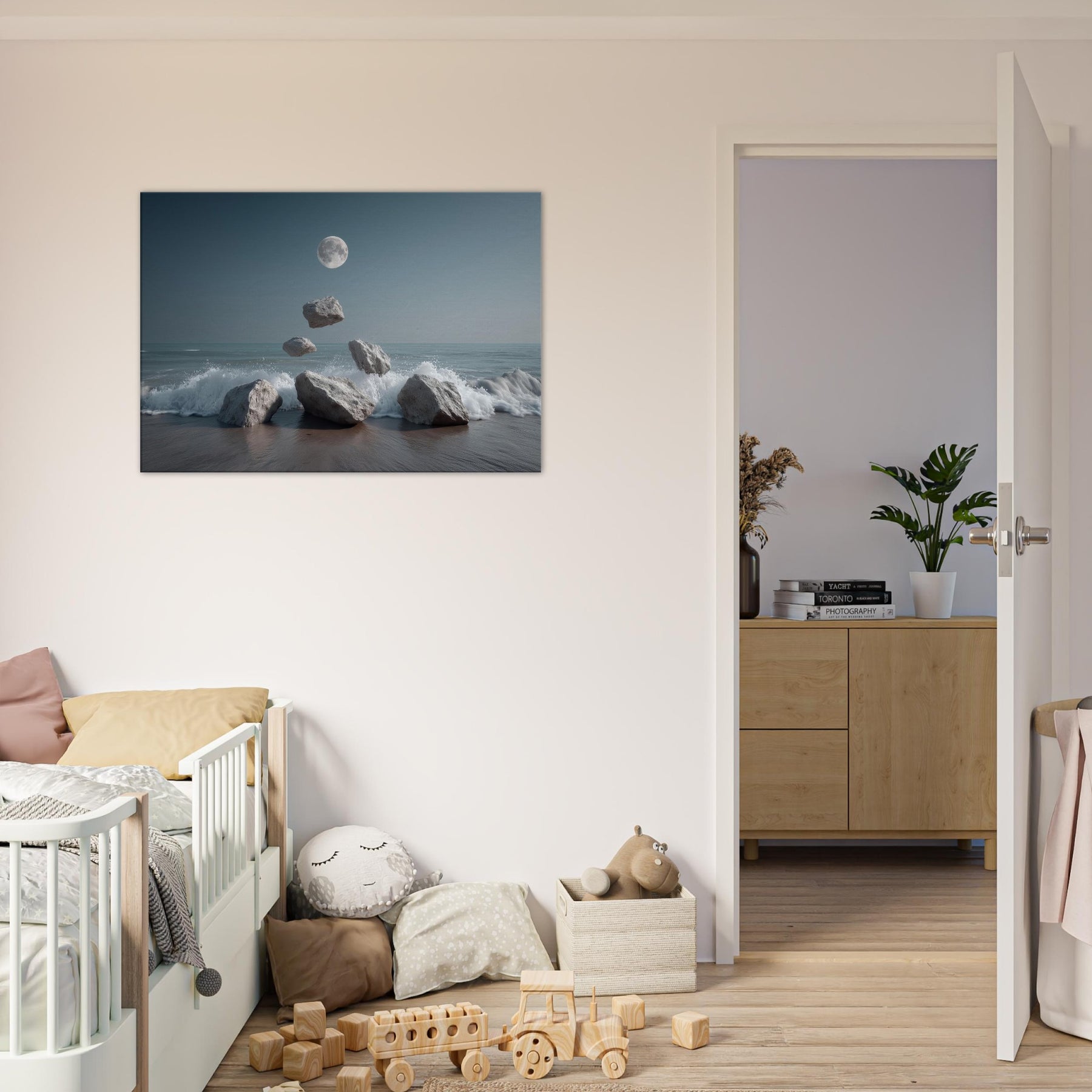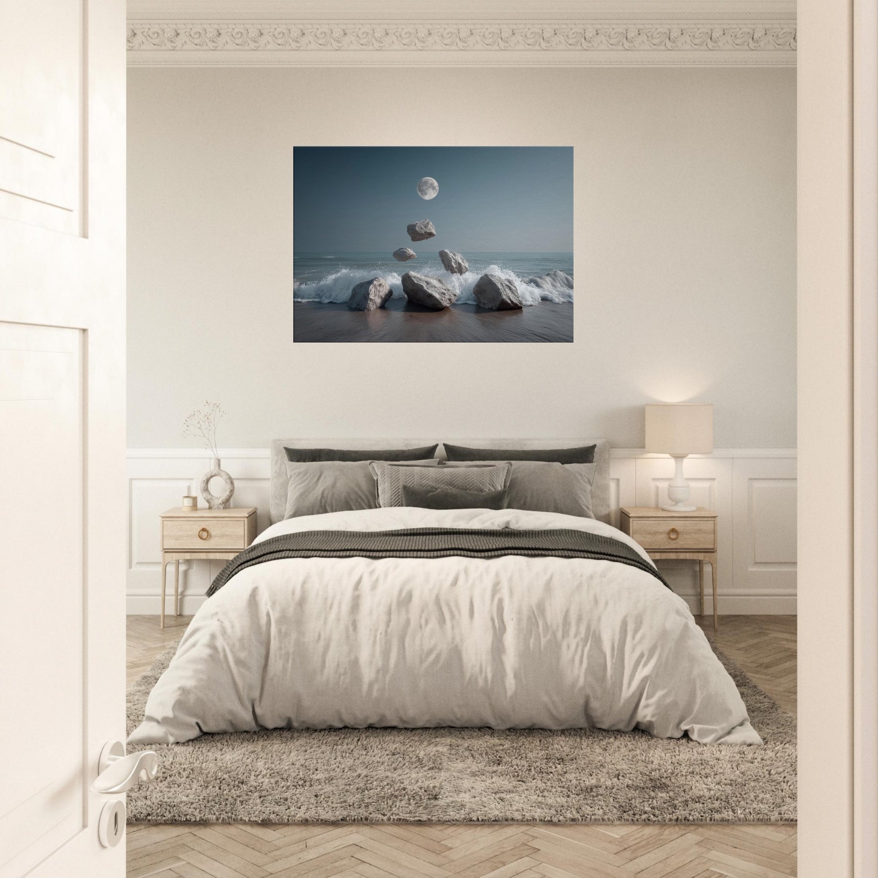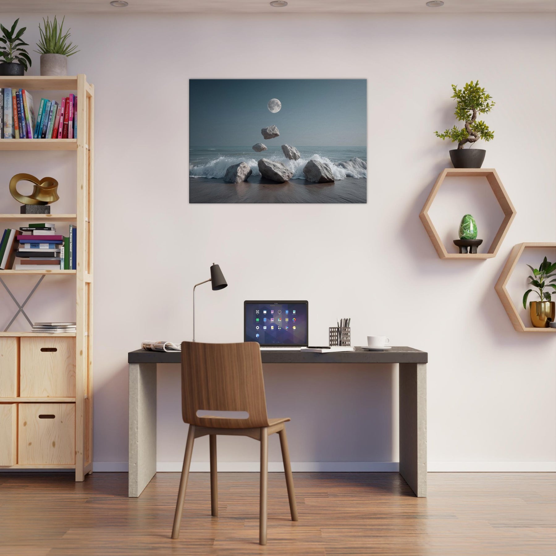 Let the Stormy Sea unfurl across your living space in a dreamlike procession of floating boulders and pale surf. This surreal composition invites the mind to wander between tide and sky, turning turmoil into a meditative rhythm. The cool palette slate, ash, and sea glass wraps the room in quiet intensity, while the suspended rocks anchor energy and curiosity. Hang it where you seek drama without noise: a study, a gallery wall, a serene corner that longs for tides of memory.