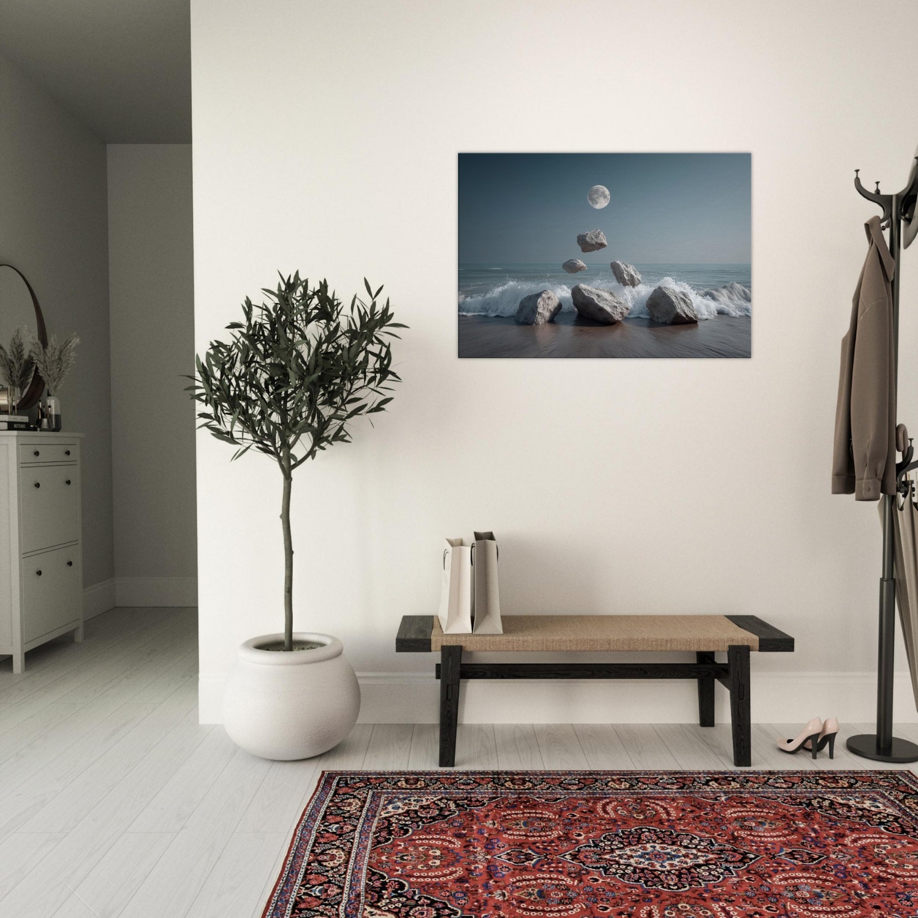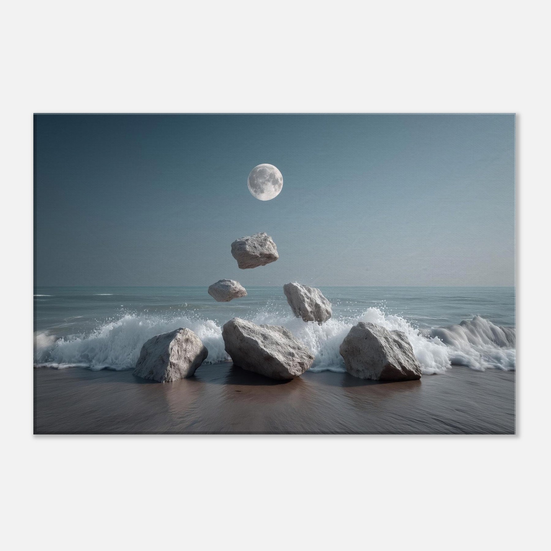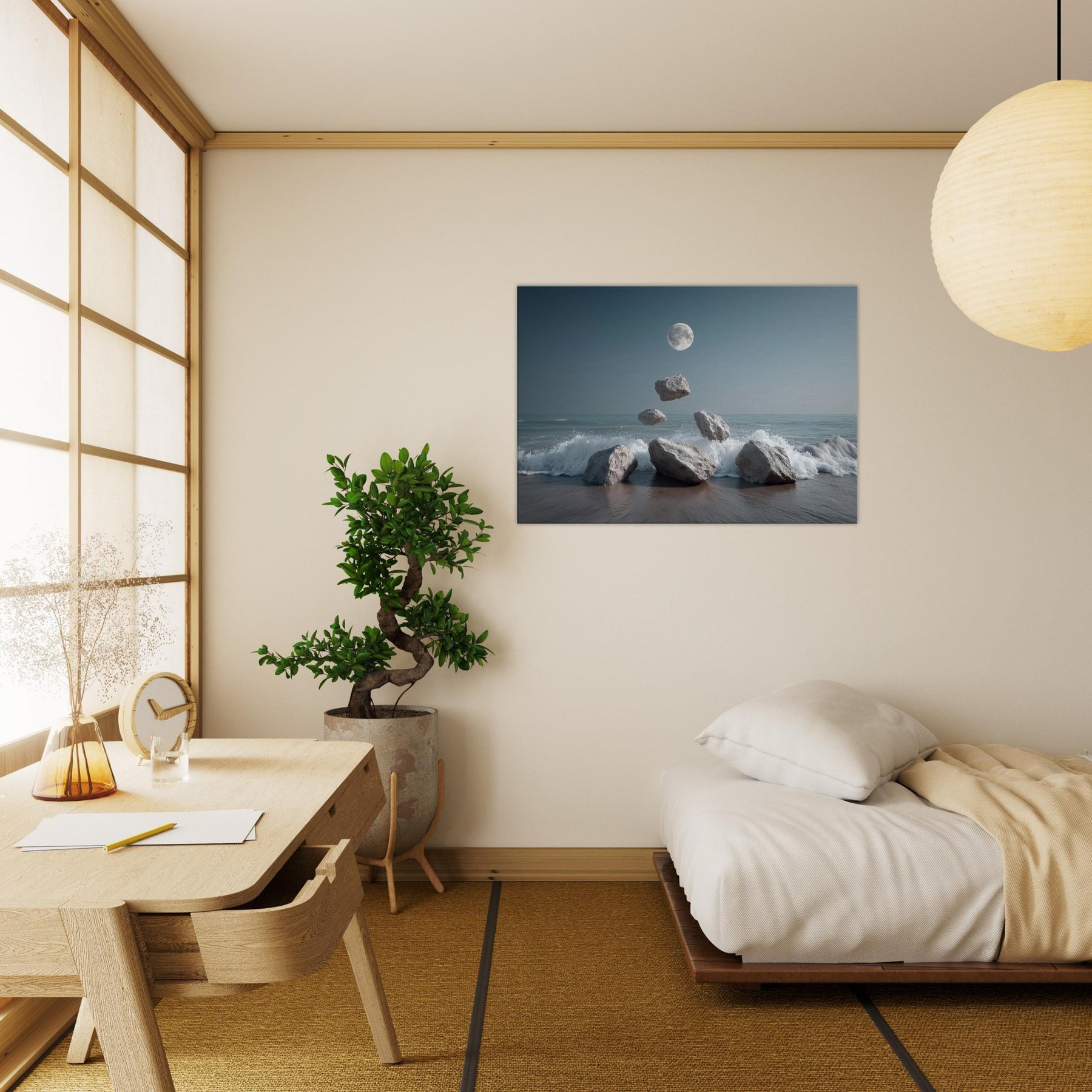 Let the Stormy Sea unfurl across your living space in a dreamlike procession of floating boulders and pale surf. This surreal composition invites the mind to wander between tide and sky, turning turmoil into a meditative rhythm. The cool palette slate, ash, and sea glass wraps the room in quiet intensity, while the suspended rocks anchor energy and curiosity. Hang it where you seek drama without noise: a study, a gallery wall, a serene corner that longs for tides of memory.