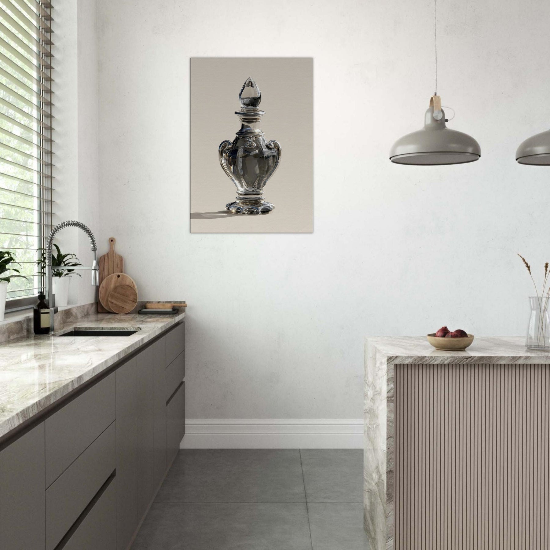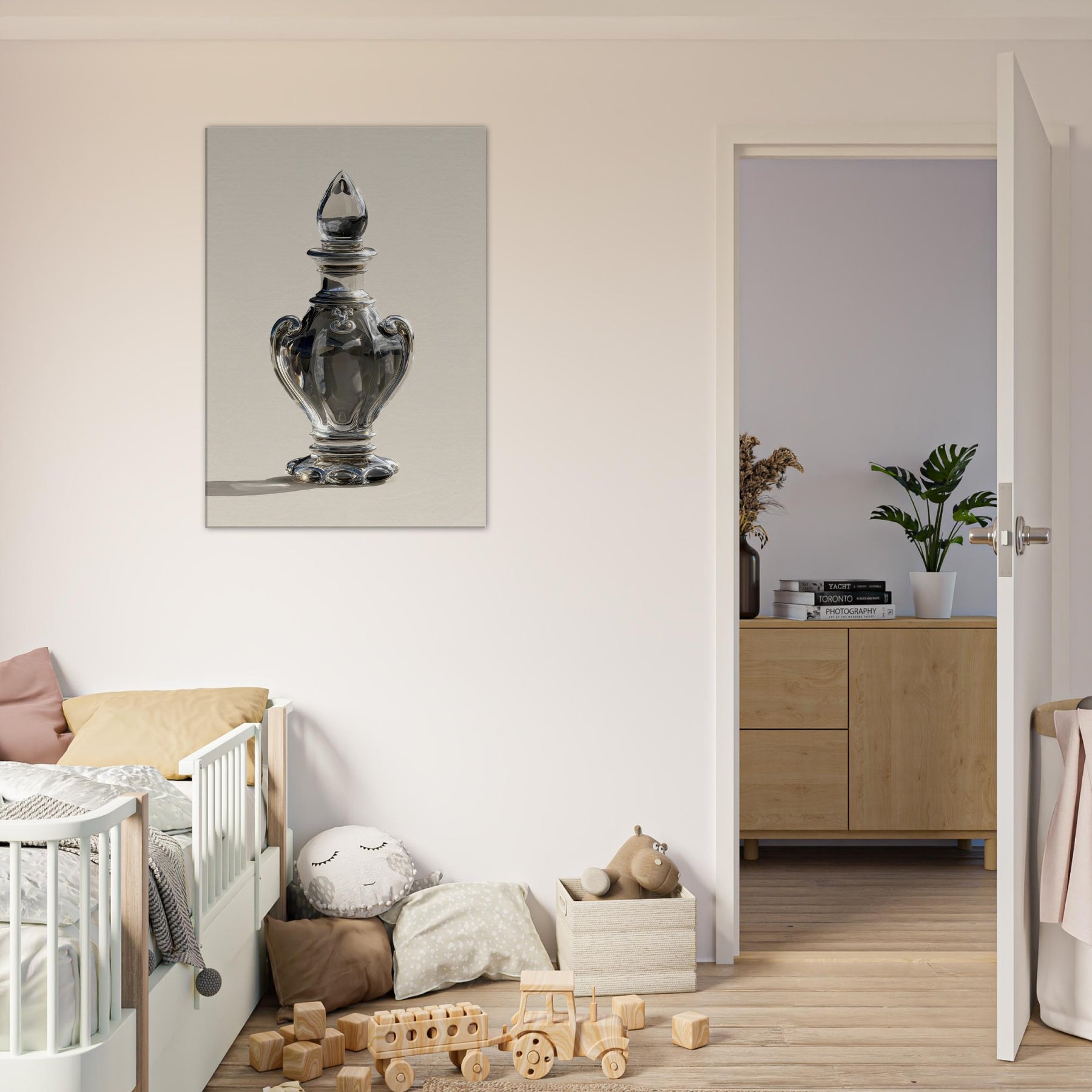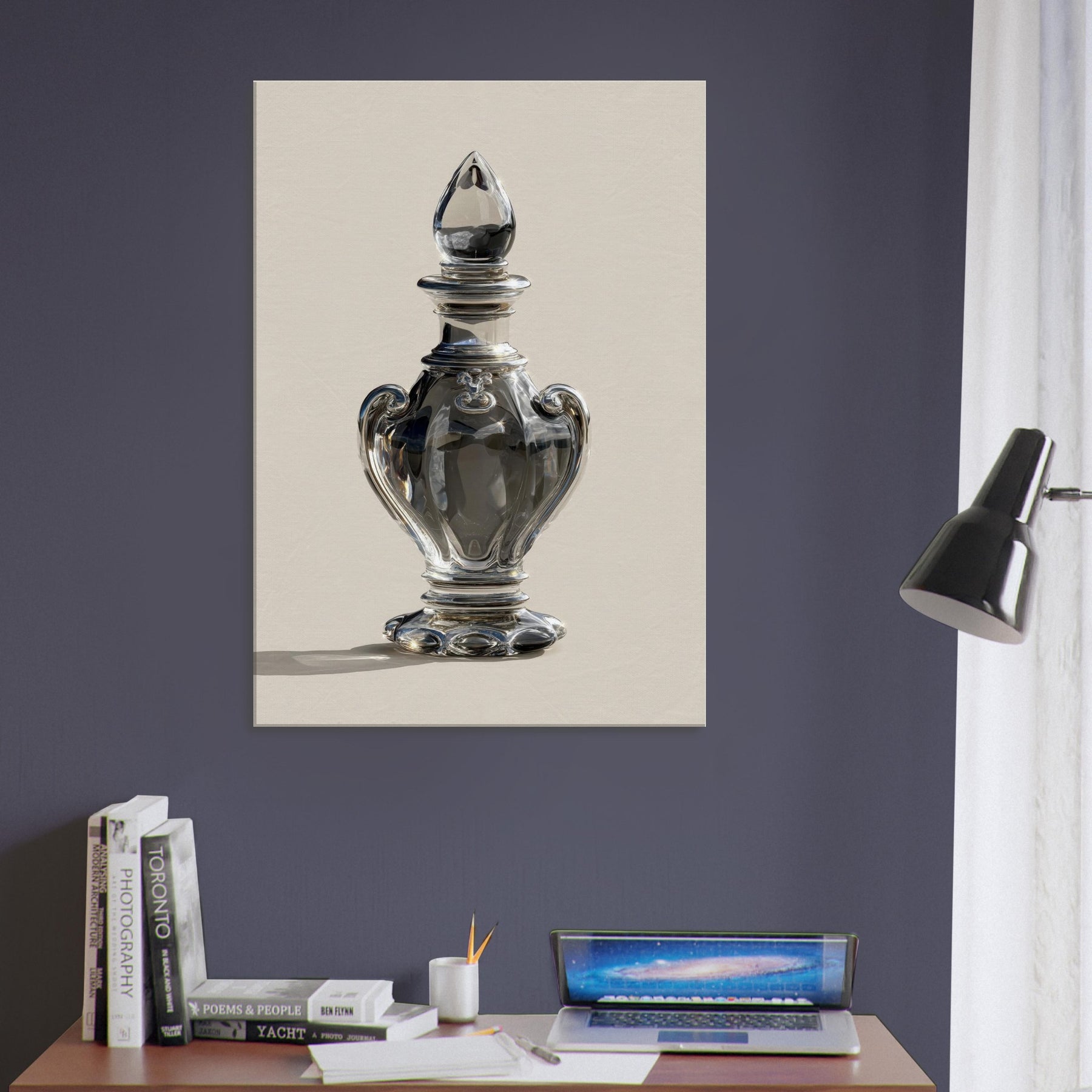 Like a relic of a dream, the Perfume Bottle stands both familiar and otherworldly, its glass body catching light and bending it into impossible forms. Surreal curves cradle the air, while delicate handles recall antique optics, turning a simple icon into a doorway of mood. This piece invites a quiet ceremony in the living room, a focal whisper that softens walls with metallic gleam and shadow. Place it where soft lamps meet midnight calm to awaken memory and imagination.
