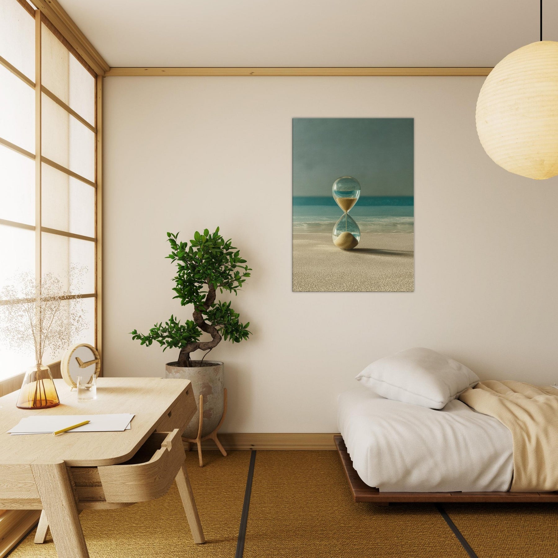 Hourglass of glass and gold stands where sea meets sand, a quiet beacon in a dream of time. The Hourglass refracts the sunlit horizon into soft rivers of color, inviting a momentary stillness that lingers in the room. Surreal and serene, it blends the cadence of tides with the hush of memory, turning any wall into a window of contemplation. Hang it in the living room or bedroom to awaken calm, curiosity, and a cinema like sense of wonder every day.