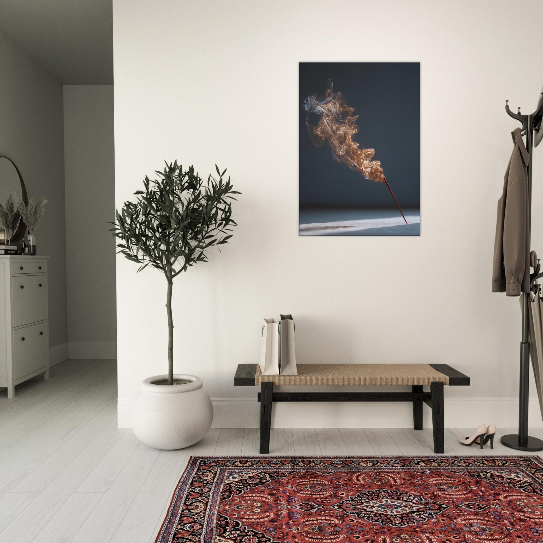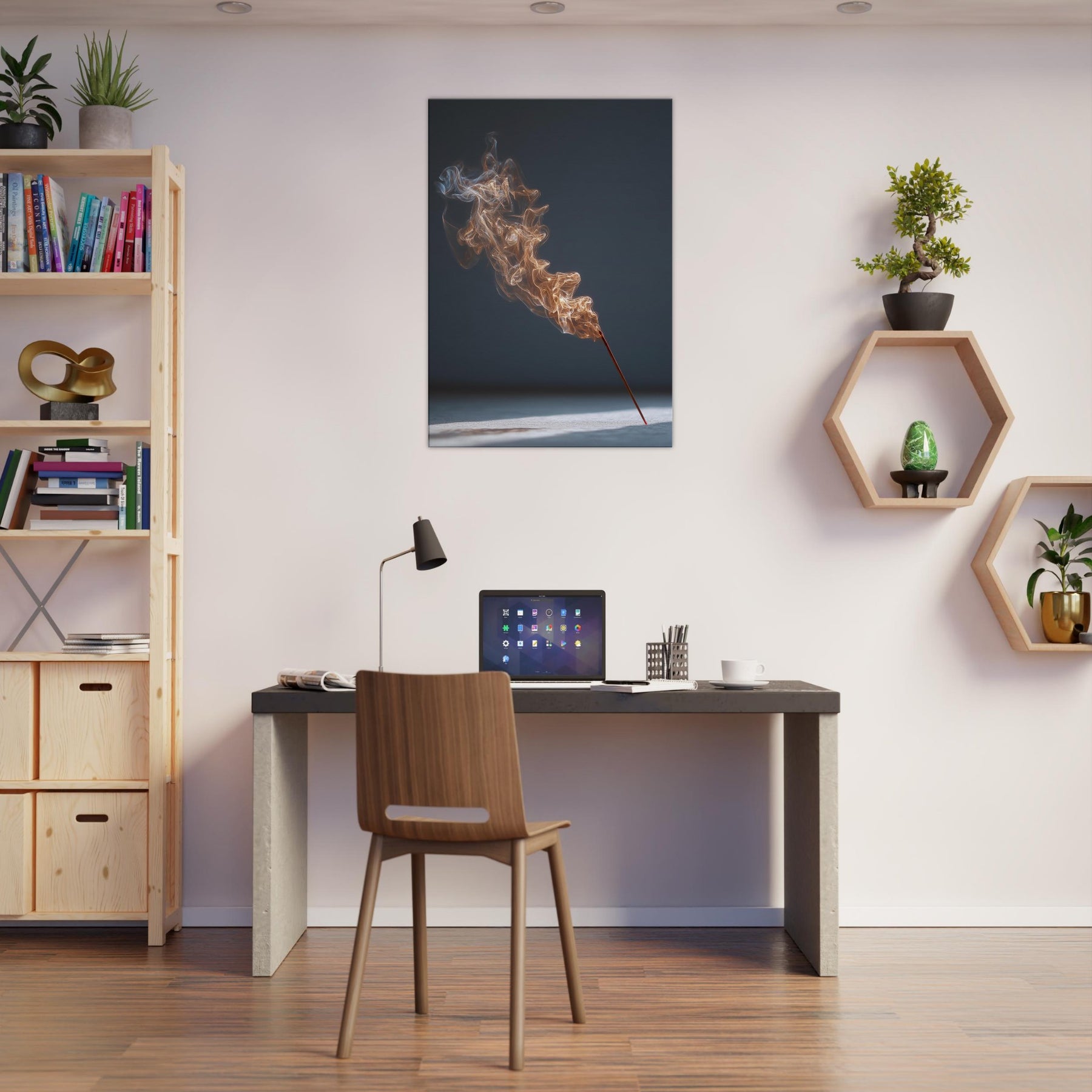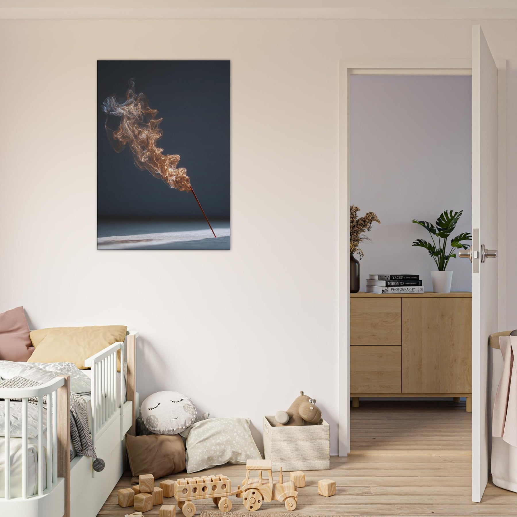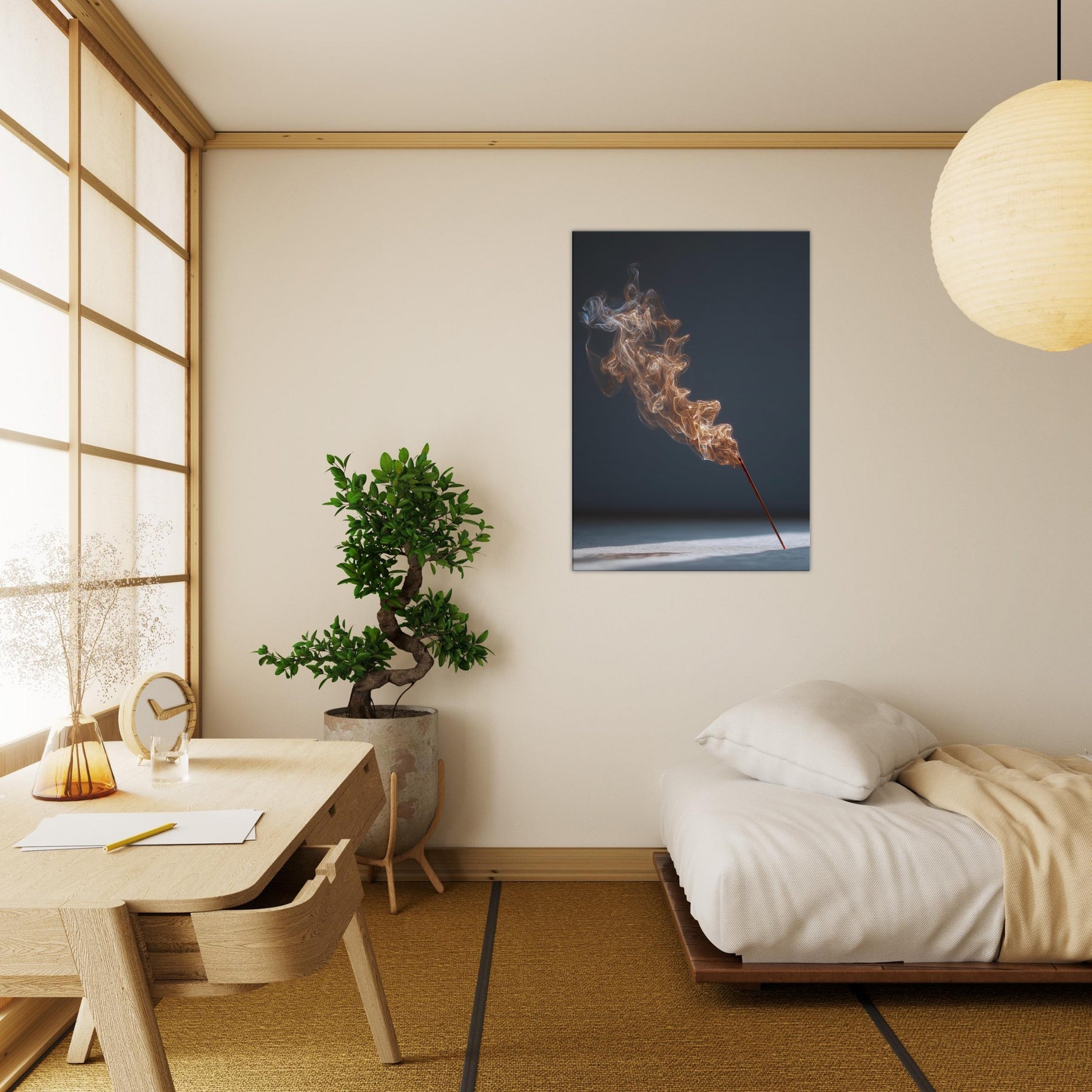 Step into a quiet room where fragrance becomes light and time loosens its grip. This painting, rendered in dreamlike tones, traces a curling incense plume as it wisps toward a pale horizon, turning a simple ritual into a surreal meditation. The scene invites slow viewing, a momentary pause that deepens mood and casts a soft glow across your living space. Hang it where you want conversation to drift like smoke and breath, letting Incense with Smoke guide the atmosphere.