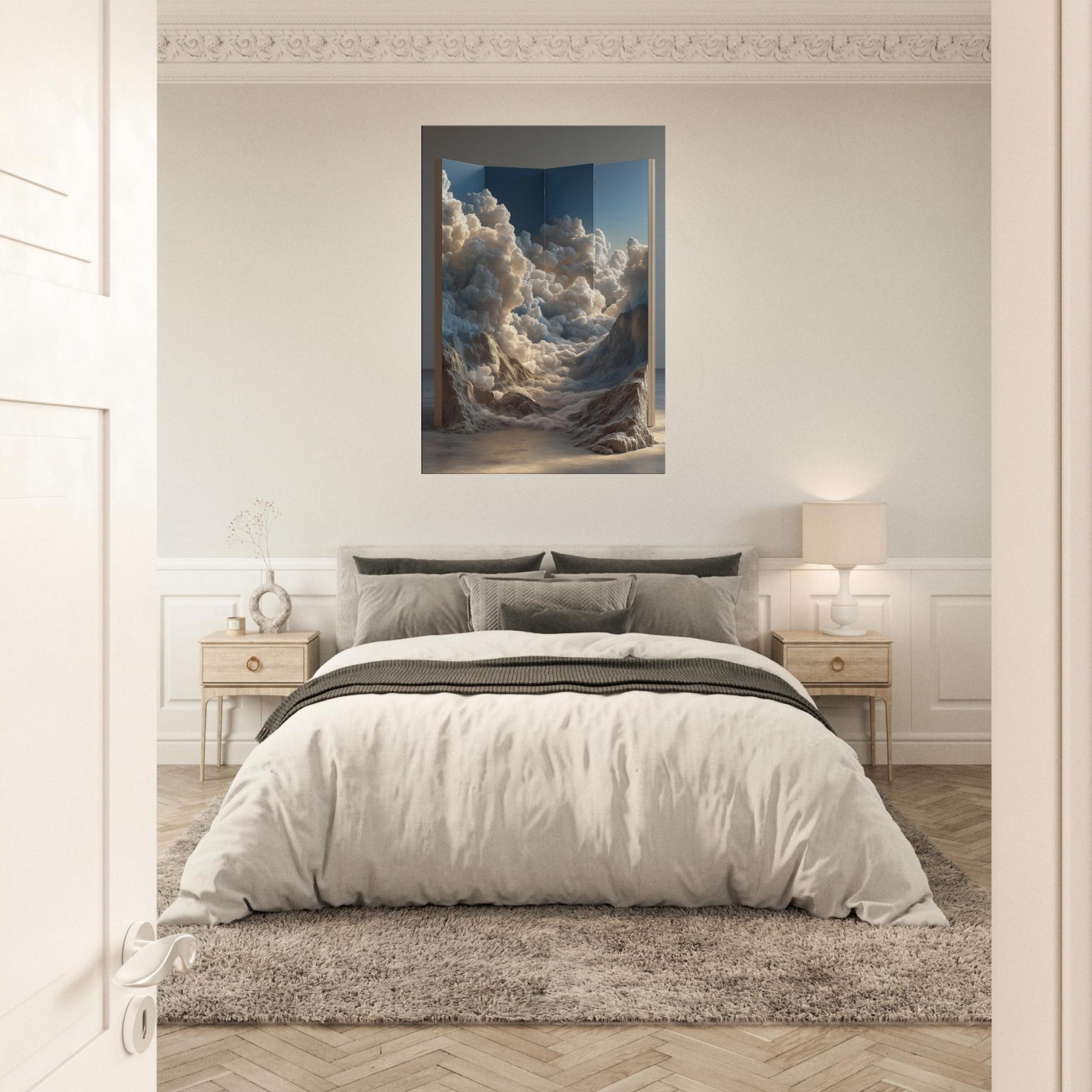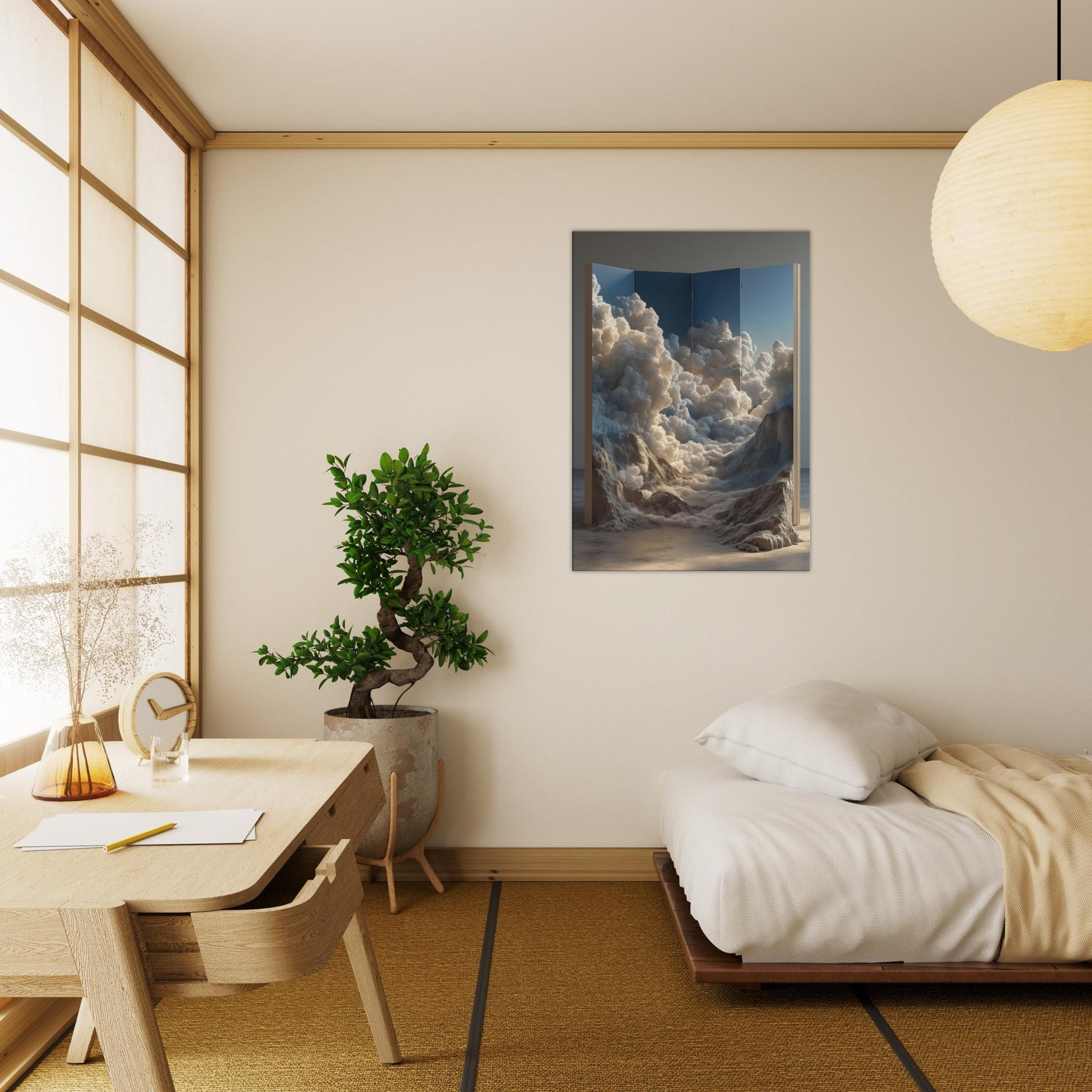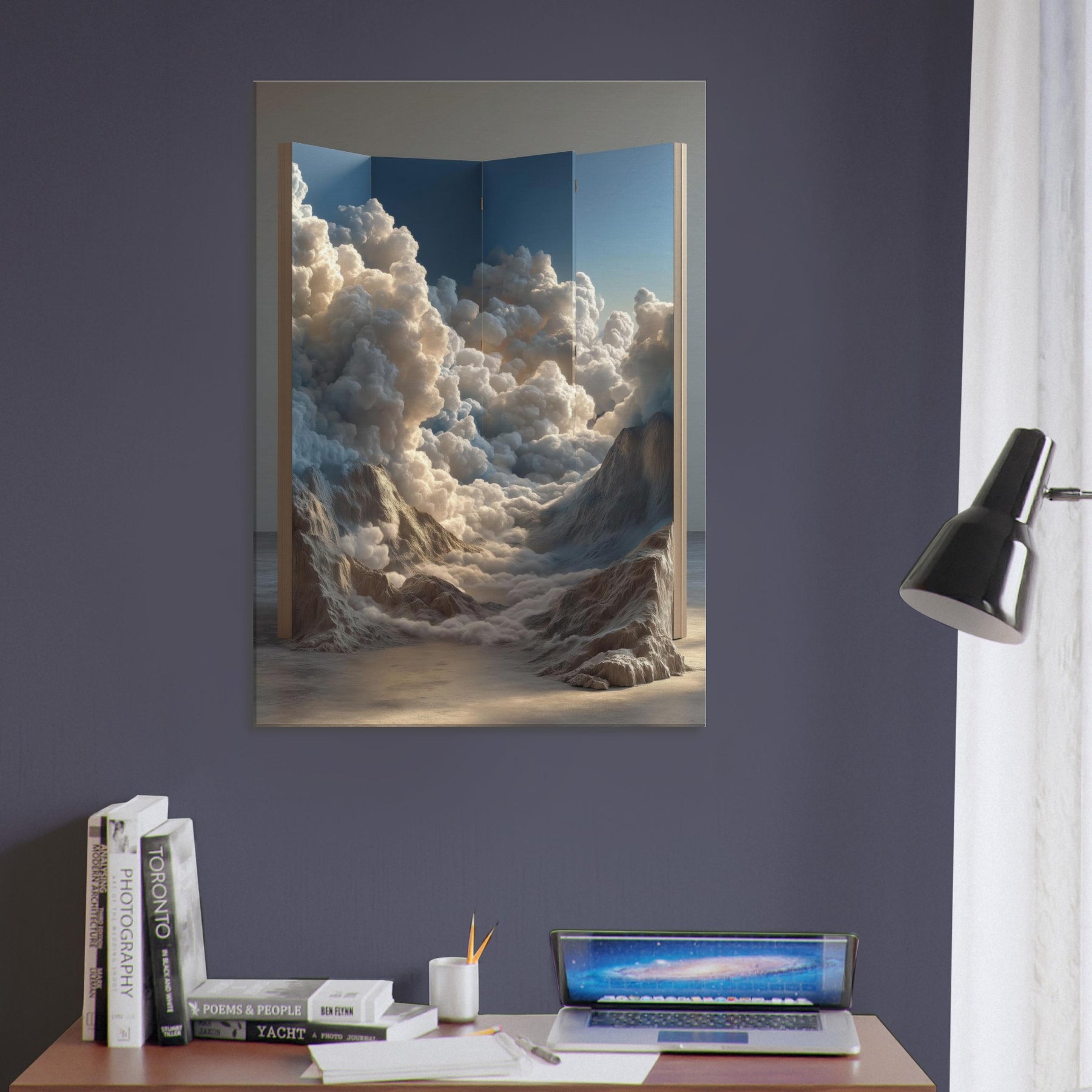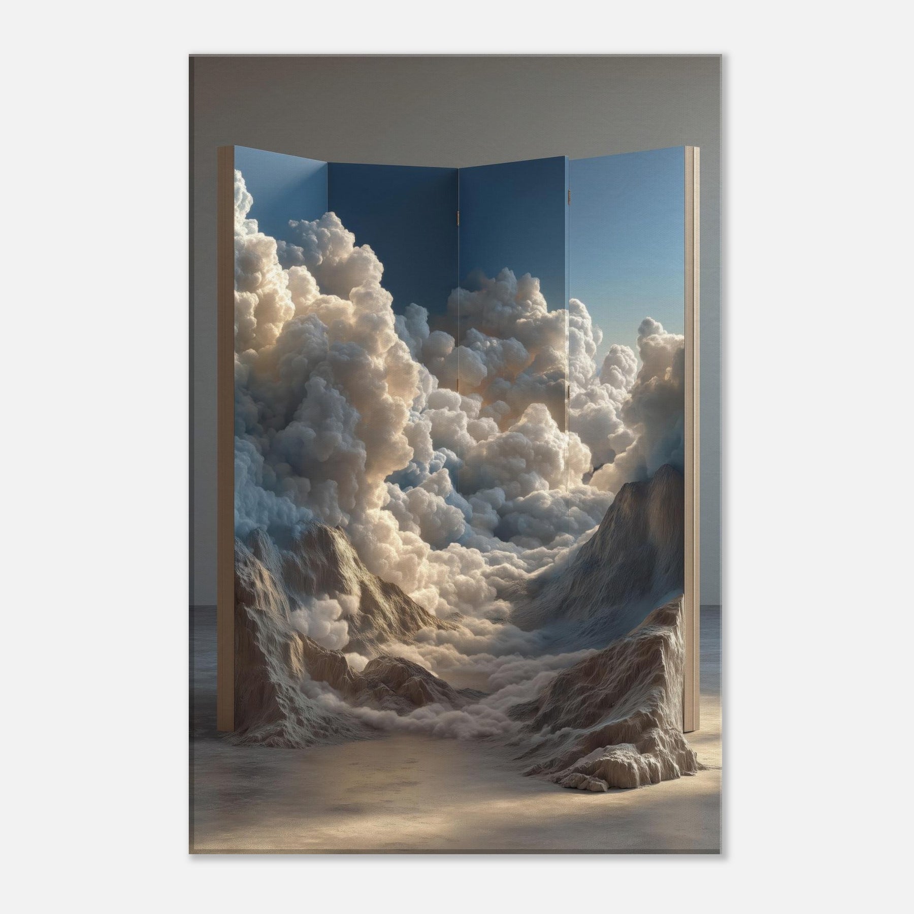Step into a dream with a folding screen that turns walls into a living horizon. This surreal panorama of billowing clouds and sculpted mountains folds space and light, inviting the eye to wander and the mind to breathe. Each panel captures shifting tones from cool blues to warm ambers so the room feels different with every hour. Perfect as a statement centerpiece in a living room or studio, it enlivens spaces with atmosphere, texture, and a quiet, contemplative glow.