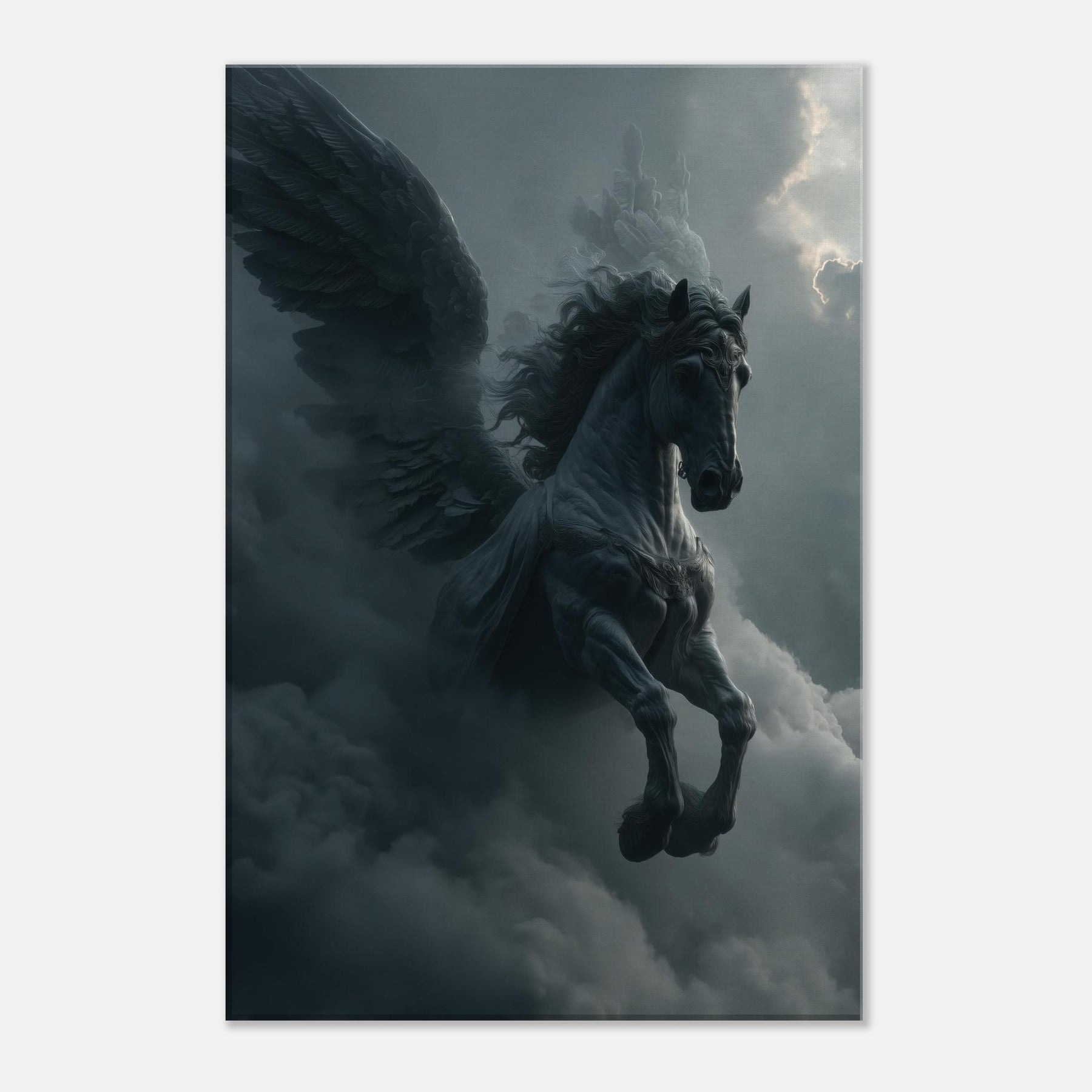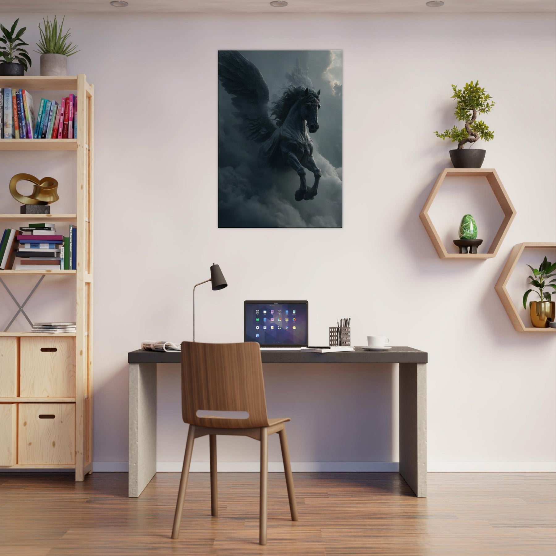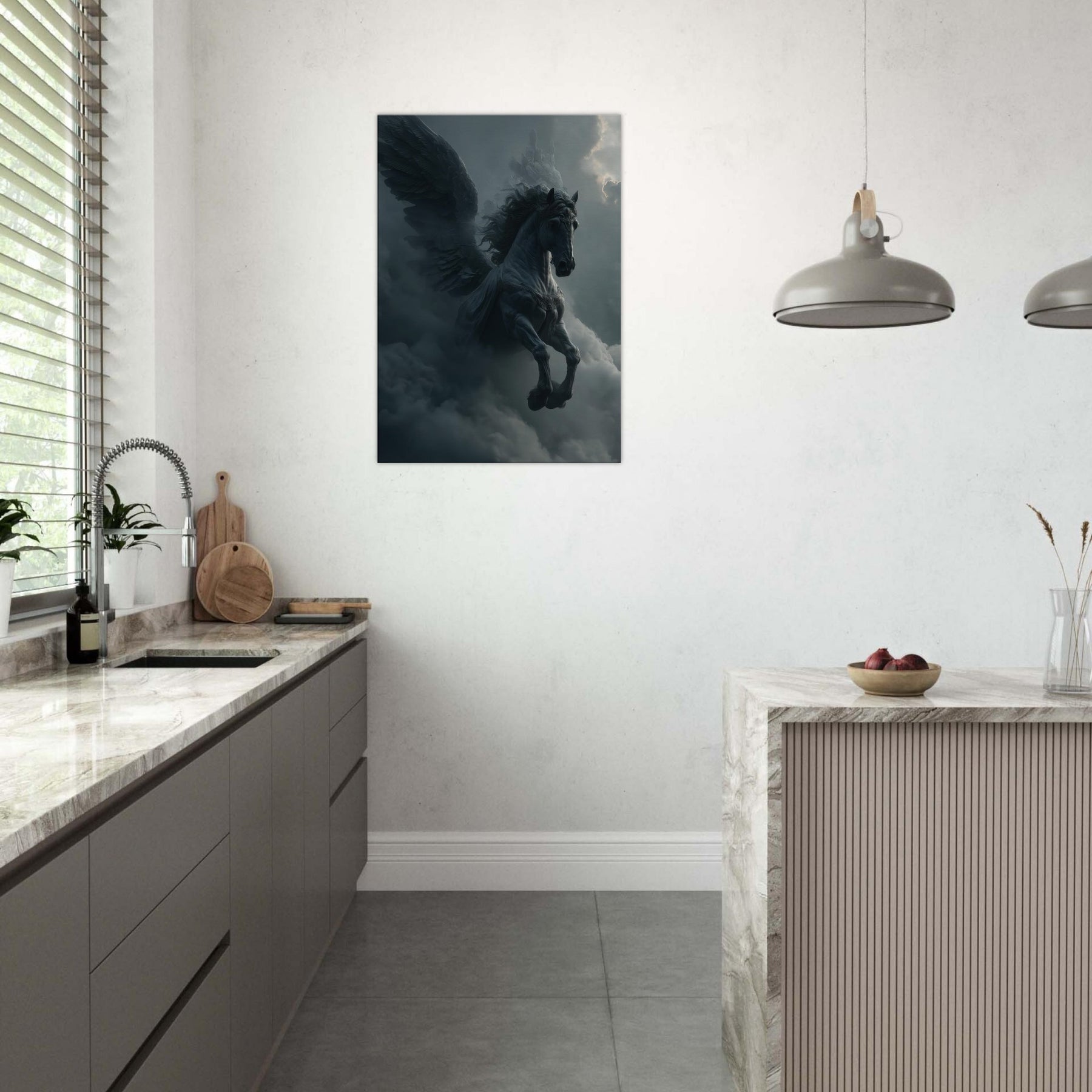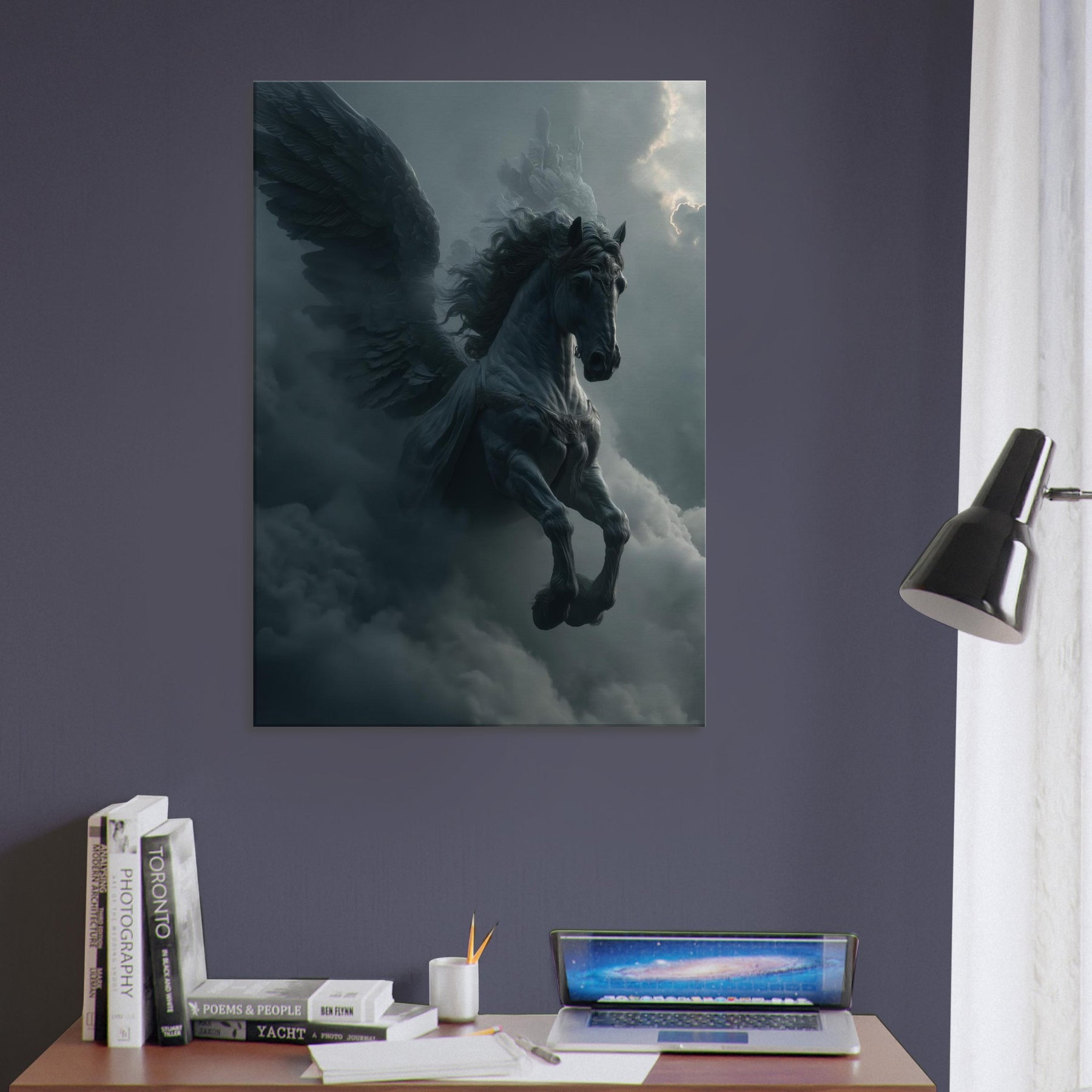 Let your wall greet a dreamlike ascent: a Celestial Pegasus Flying Through Clouds, wings spread through a mist of silver and cobalt as if weightless between thunder and starlight. This surreal scene blends myth with quiet airiness, inviting calm, wonder, and imaginative conversation. It elevates a living space with mood an ever present horizon that shifts from dusk to dawn. A striking focal point for a modern room, it breathes motion, luminosity, and myth into daily life.