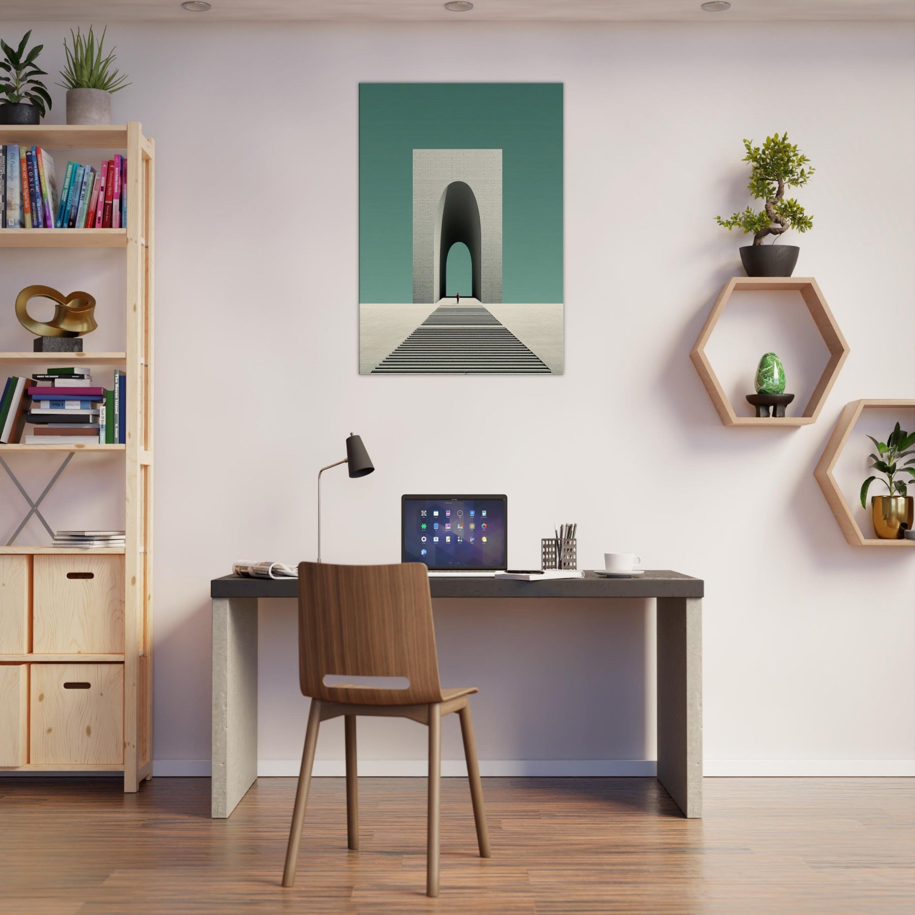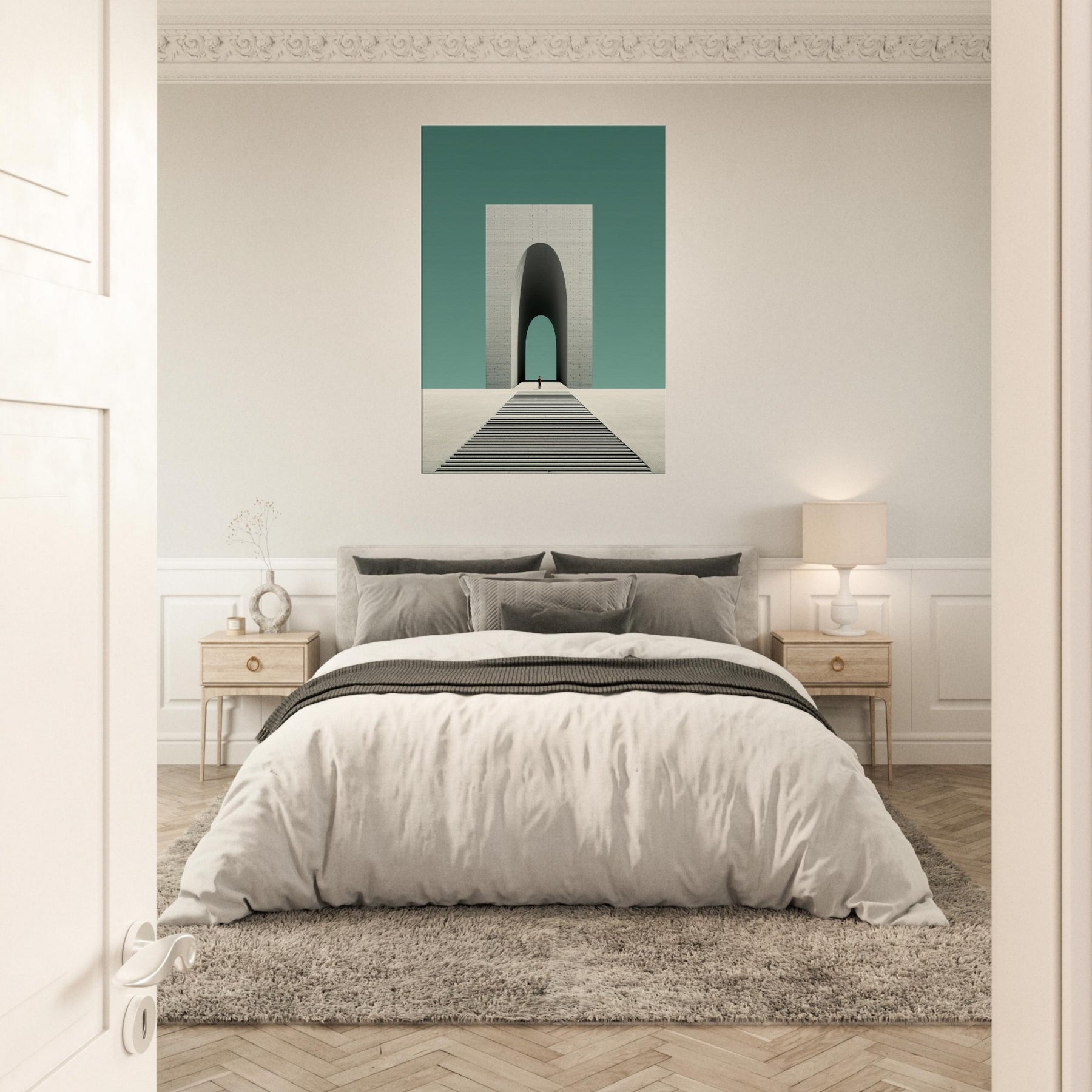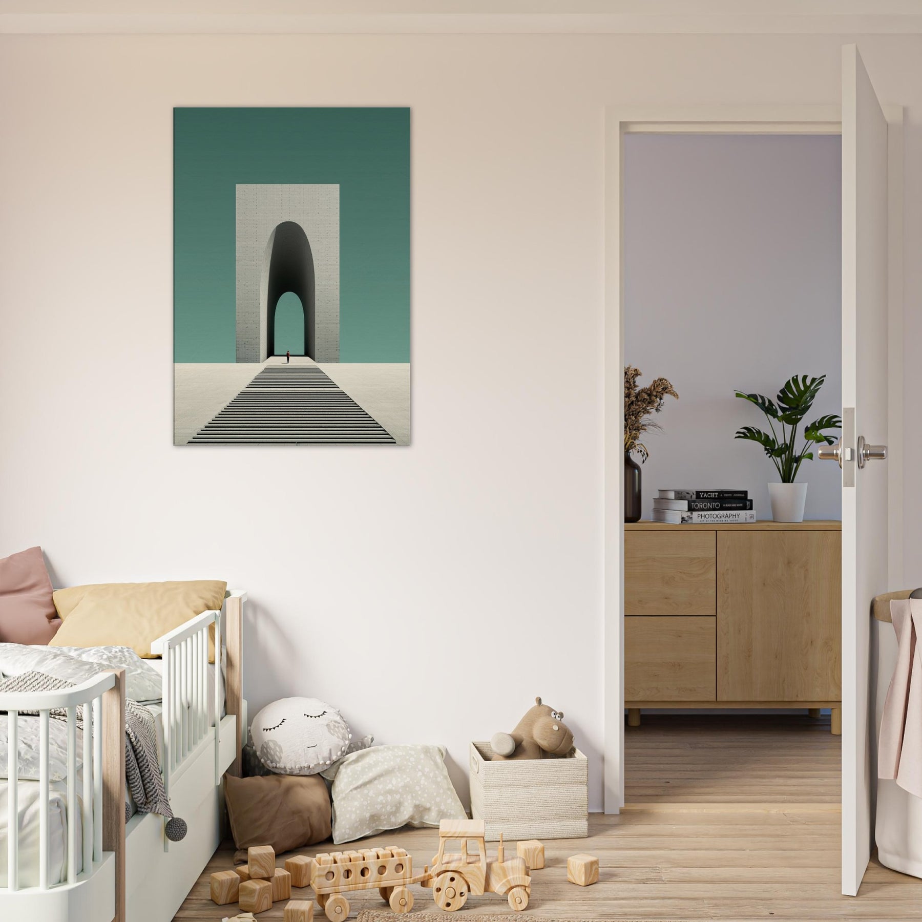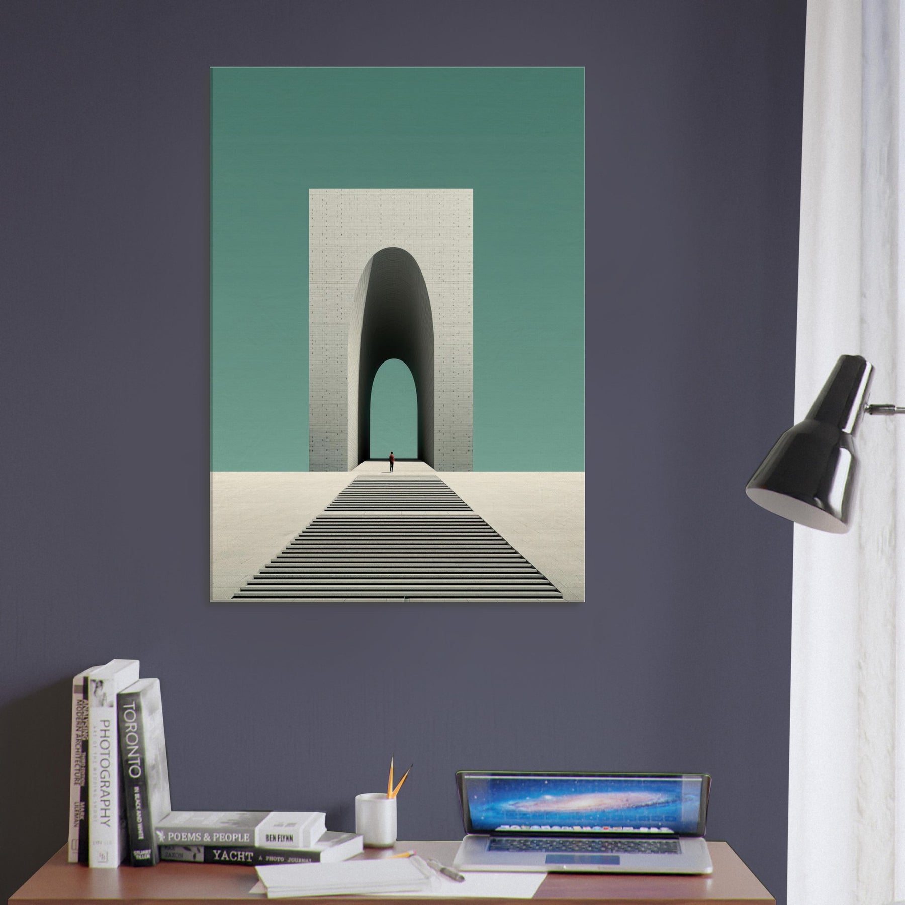 Toronto stands at the threshold of dream and steel in this monumental portal. A pale, sunlit field spills toward a colossal arch, inviting the eye to travel through a suspended corridor where shadows soften and time dilates. The scene folds the urban into the universal, turning a familiar skyline into a surreal gate that hums with quiet possibility. Hang it in a living room or studio to gift space a contemplative, cinematic calm and a whisper of Toronto's storytelling atmosphere.
