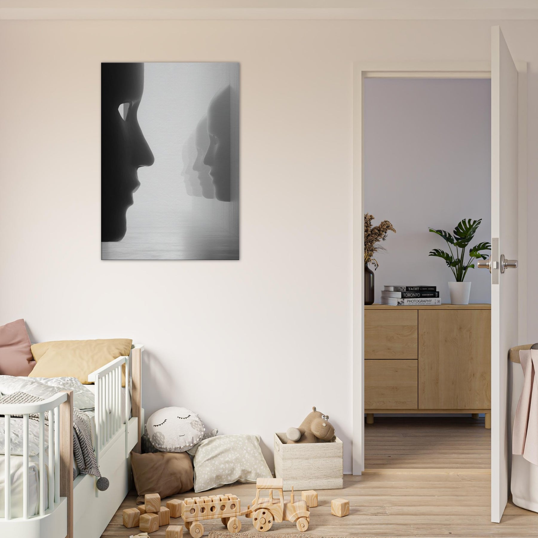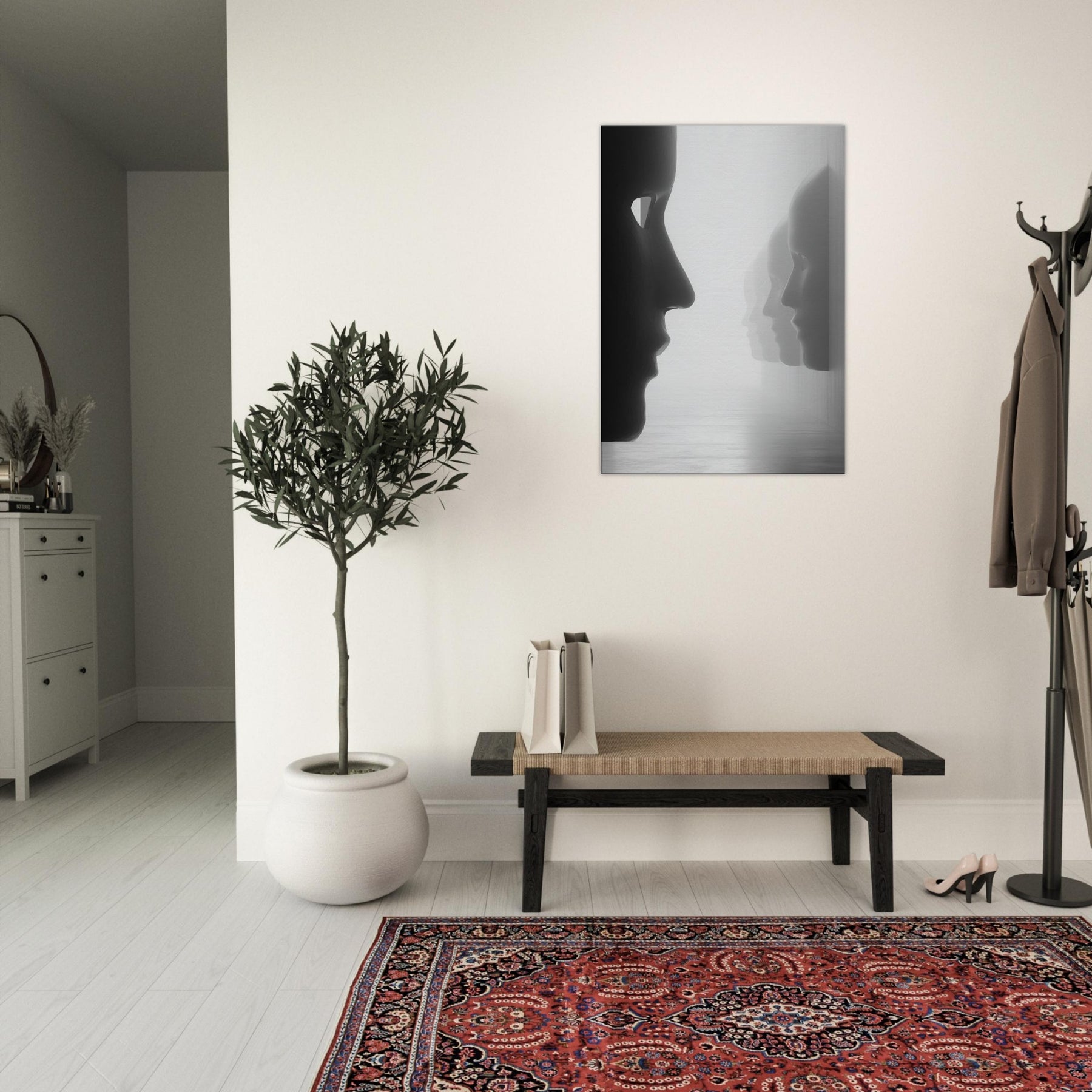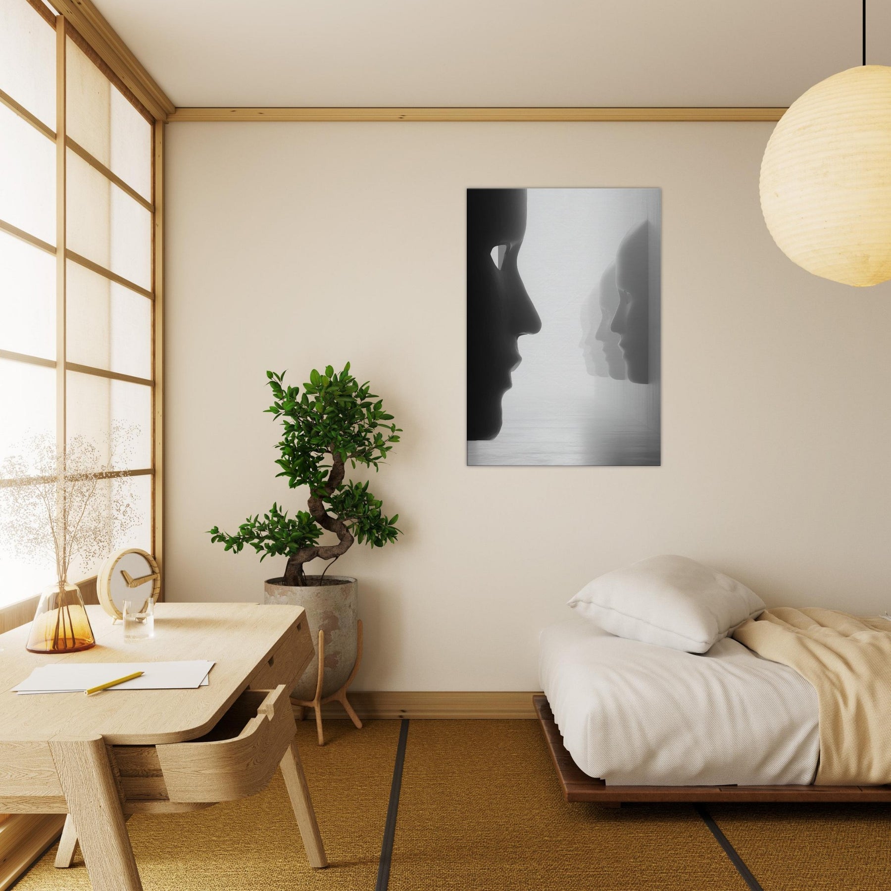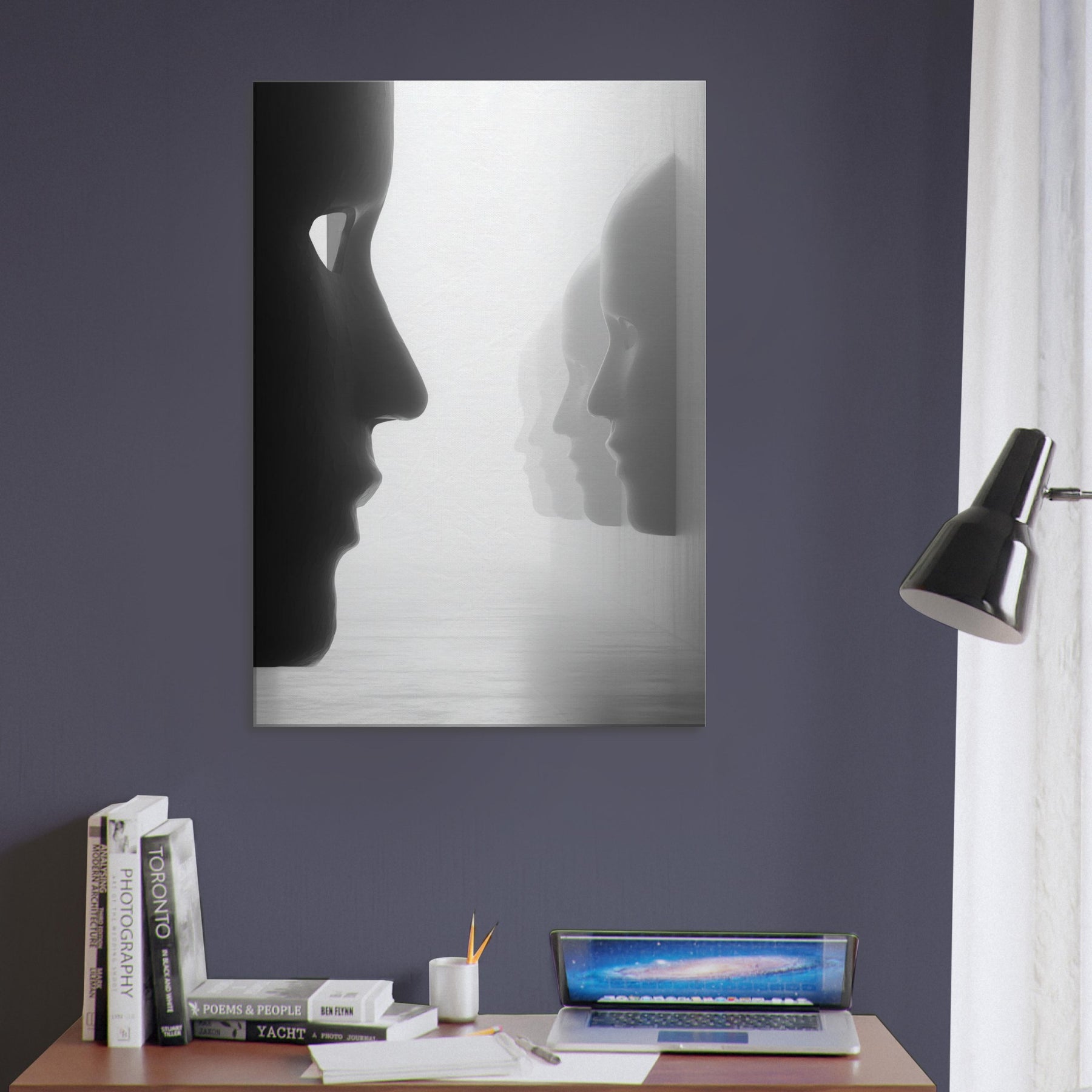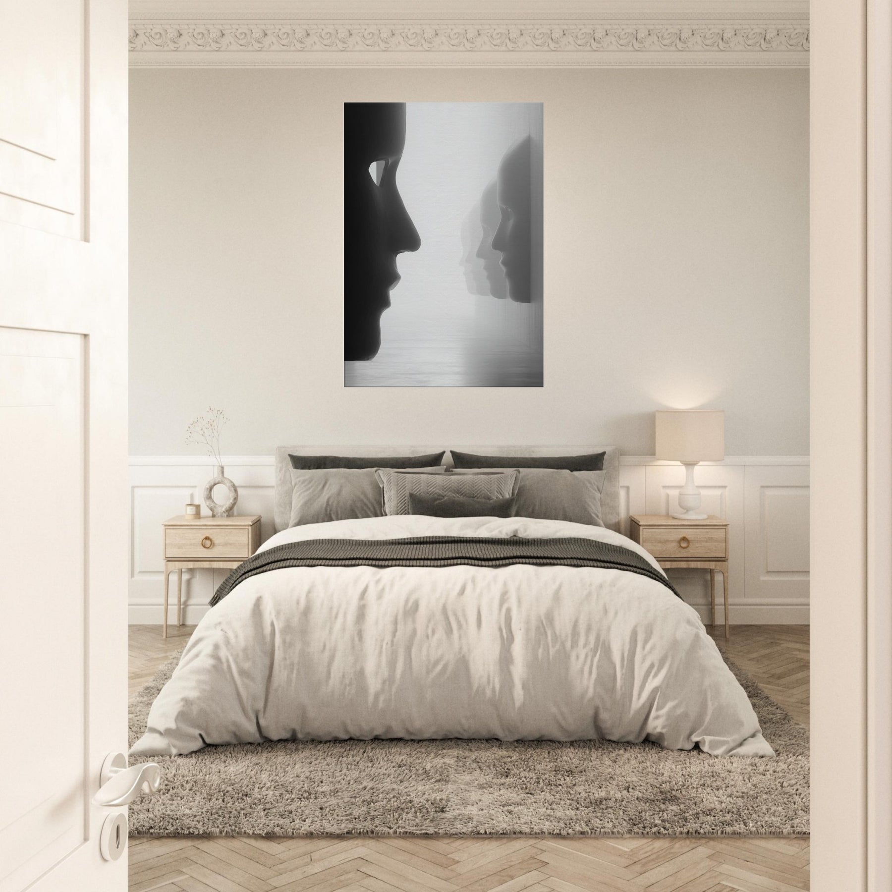 Immersed in a soft, monochrome hush, this work centers the Mask (Neutral Theater) Silhouette as a quiet observer of space and time. A procession of pale, overlapping faces dissolves into the background, inviting the eye to wander and linger. The surreal composition hums with restraint, offering a moment of drama without noise. In a living room or study, it becomes a contemplative focal point a doorway to memory and imagination where light, shadow, and intent mingle to frame your most intimate conversations with art.