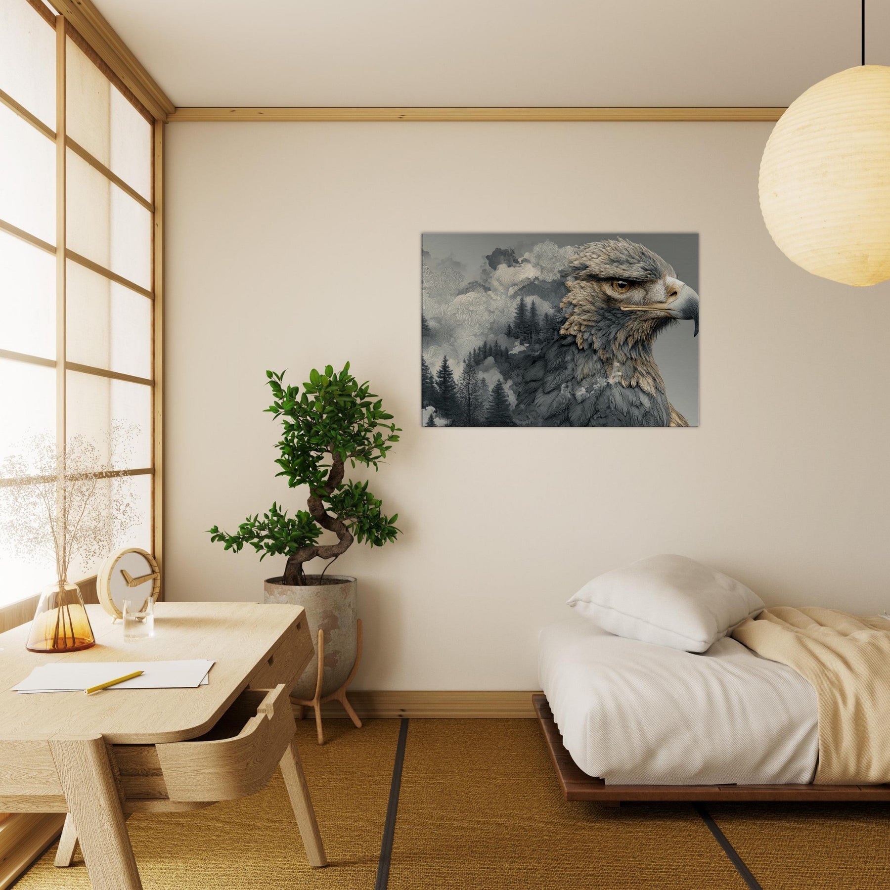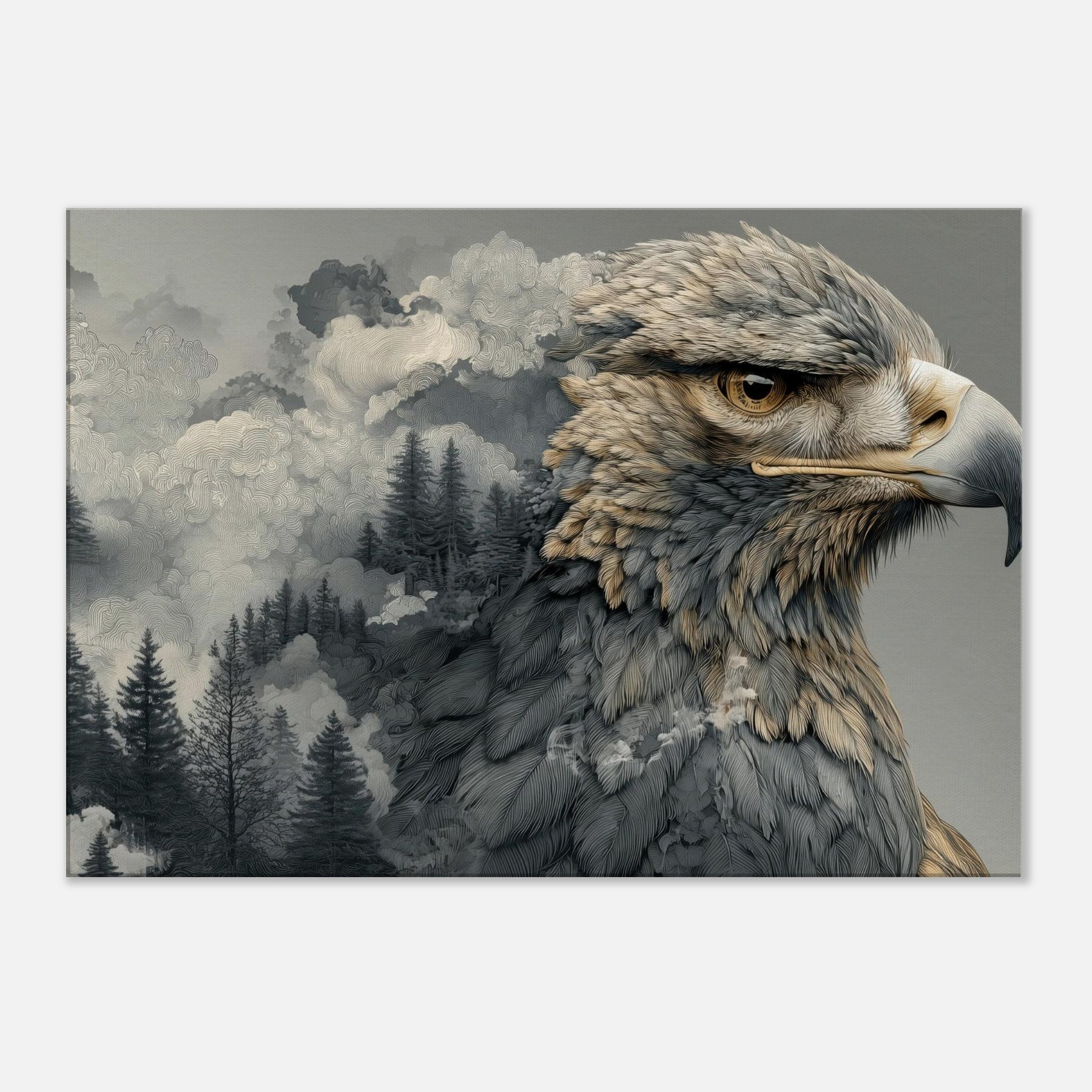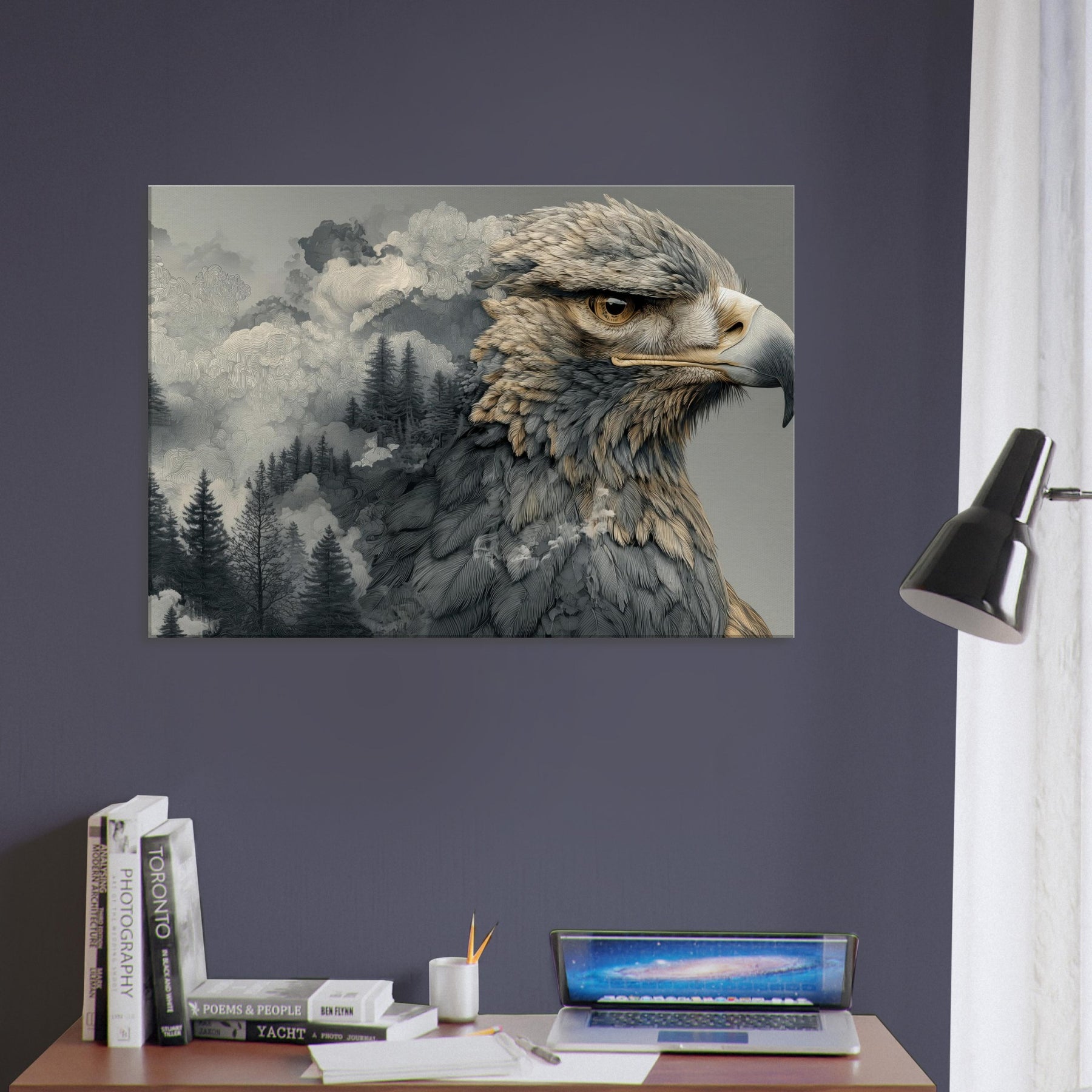 A dreamlike encounter where the natural world dissolves into a sculpted surreality, this piece centers an Eagle whose gaze slices through mist and memory. Clouds curl like delicate engravings, while evergreen silhouettes anchor the scene in a hush of twilight. The entwining textures invite touch and contemplation, turning a wall into a window of atmosphere. Hang it in a living space to evoke focus, wonder, and a cinematic mood, as if the room itself learns to fly alongside you.