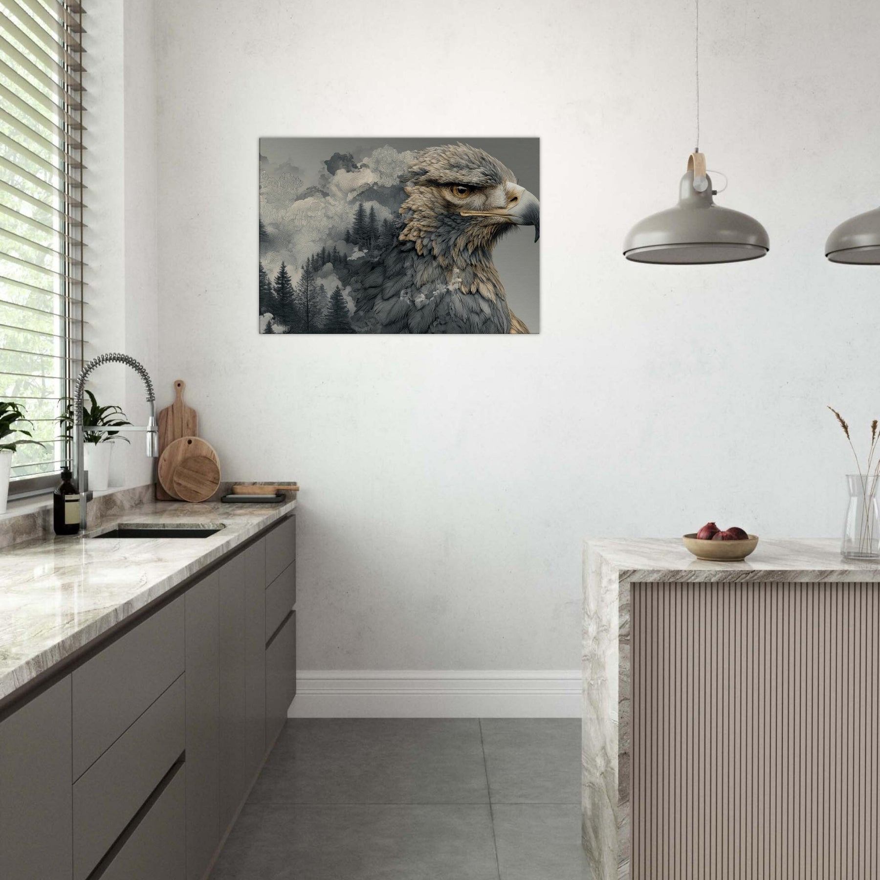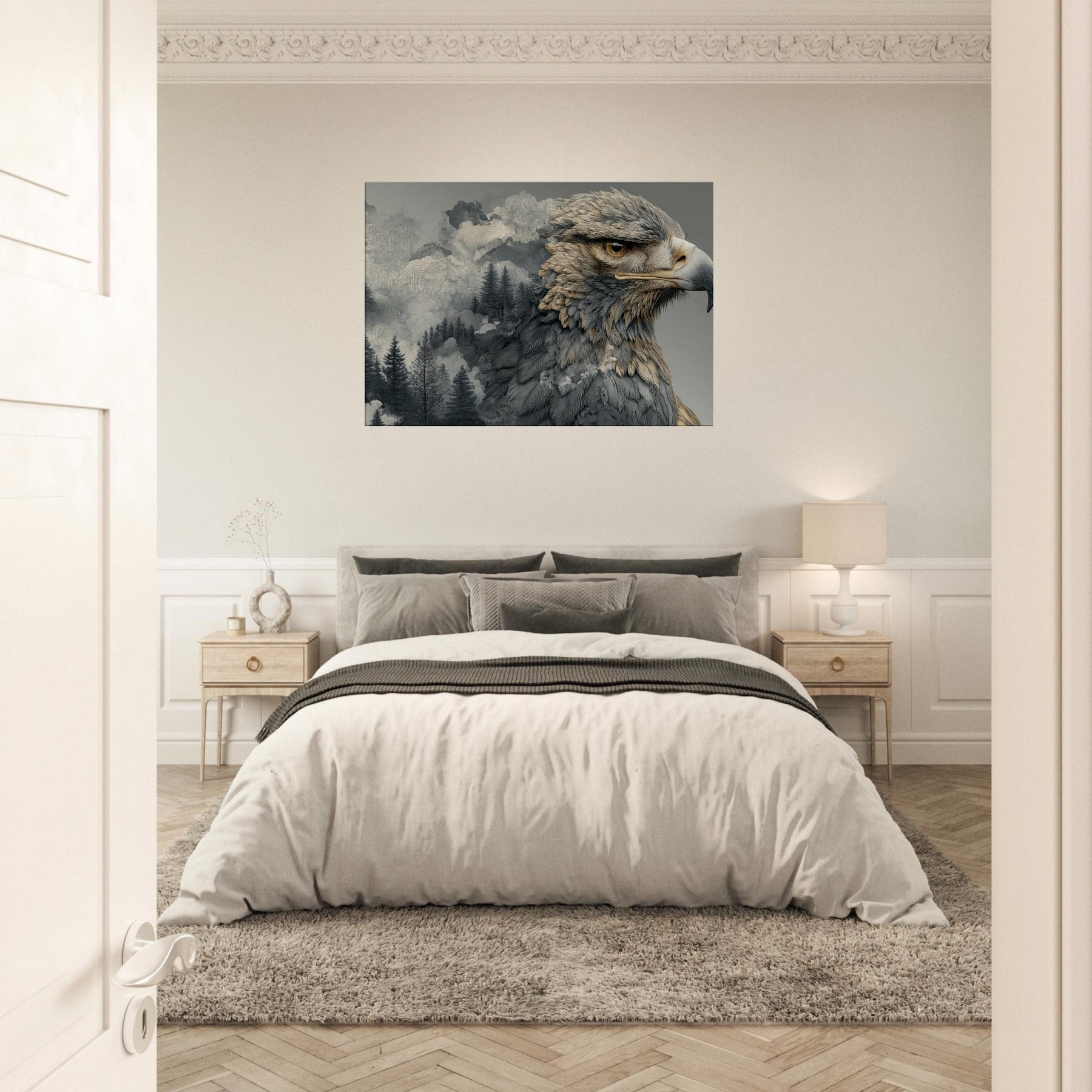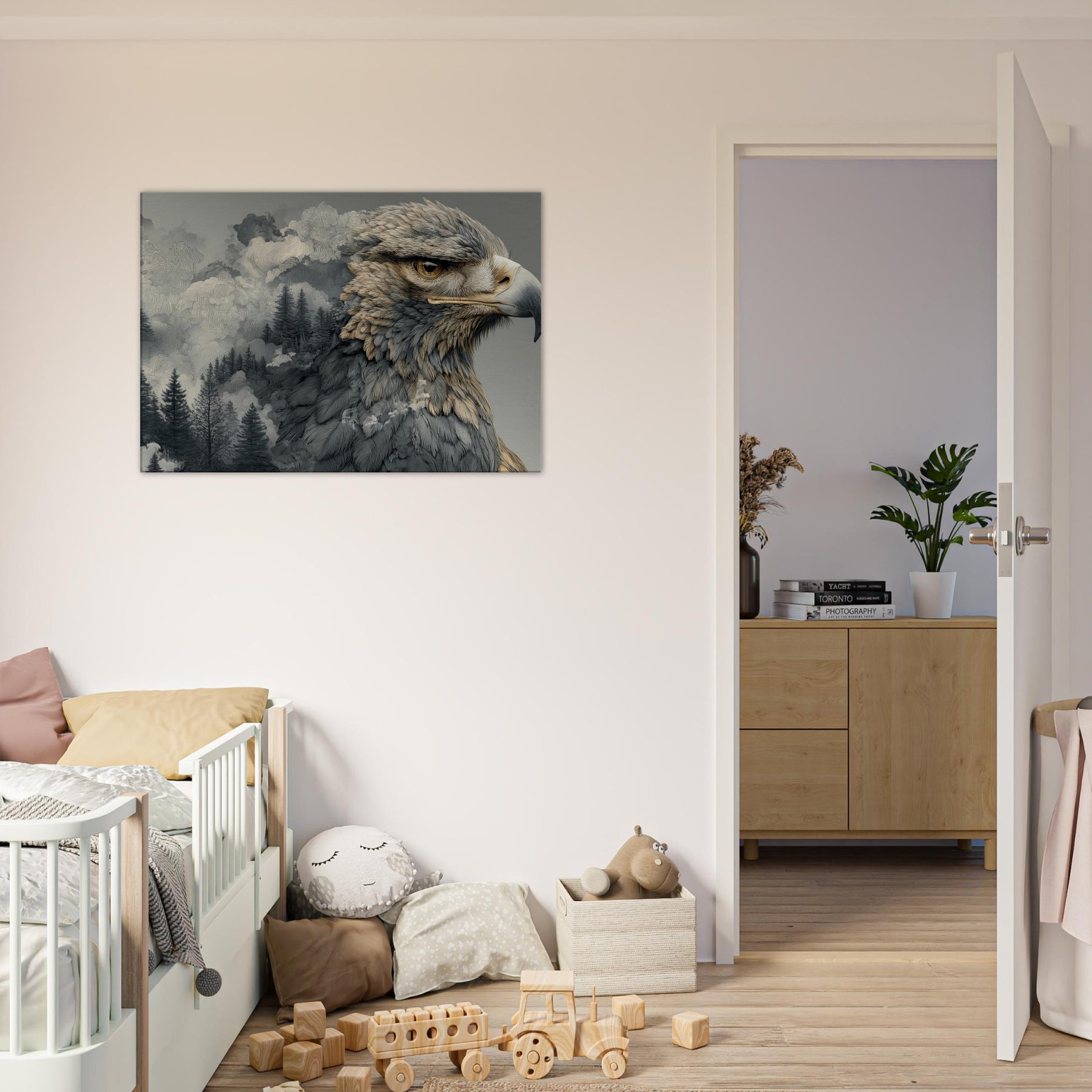A dreamlike encounter where the natural world dissolves into a sculpted surreality, this piece centers an Eagle whose gaze slices through mist and memory. Clouds curl like delicate engravings, while evergreen silhouettes anchor the scene in a hush of twilight. The entwining textures invite touch and contemplation, turning a wall into a window of atmosphere. Hang it in a living space to evoke focus, wonder, and a cinematic mood, as if the room itself learns to fly alongside you.