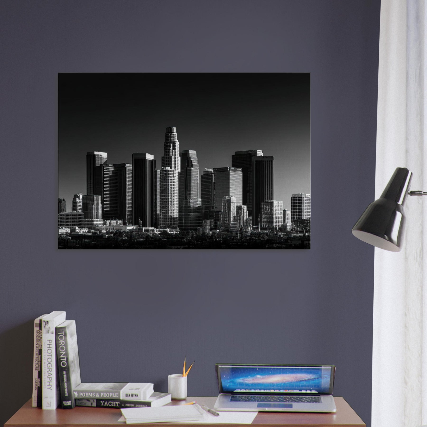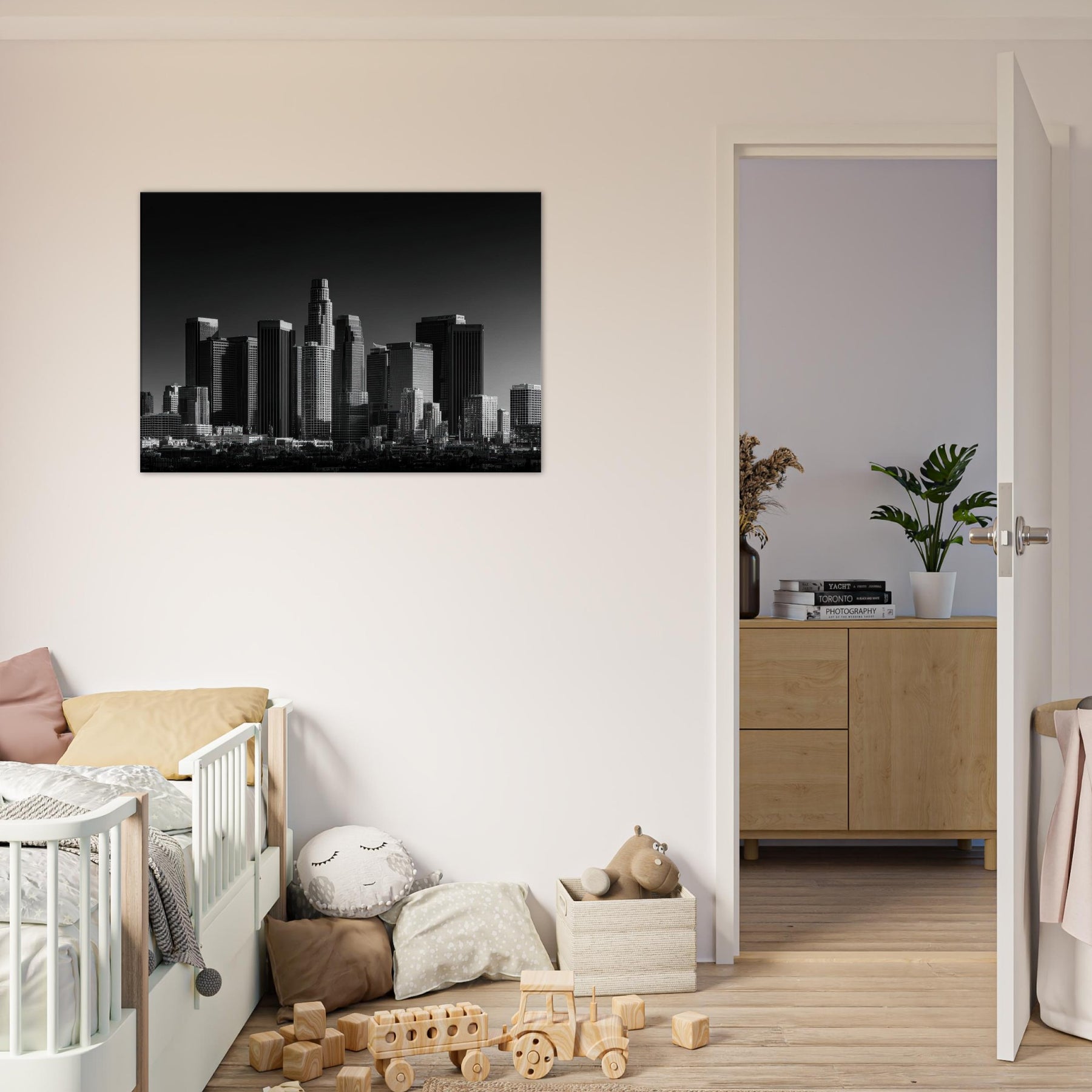 Los Angeles rises in quiet grandeur, rendered in precise grayscale that invites a slower gaze. The tallest towers slice into a velvet night, their silhouettes braided with light and shadow. This wall art breathes with a cinematic stillness, turning a living room into a nocturne of urban possibility. The monochrome palette amplifies texture from glass’s gleam to concrete’s weight while the quiet drama of the skyline makes every moment at home feel expansive and intentional.